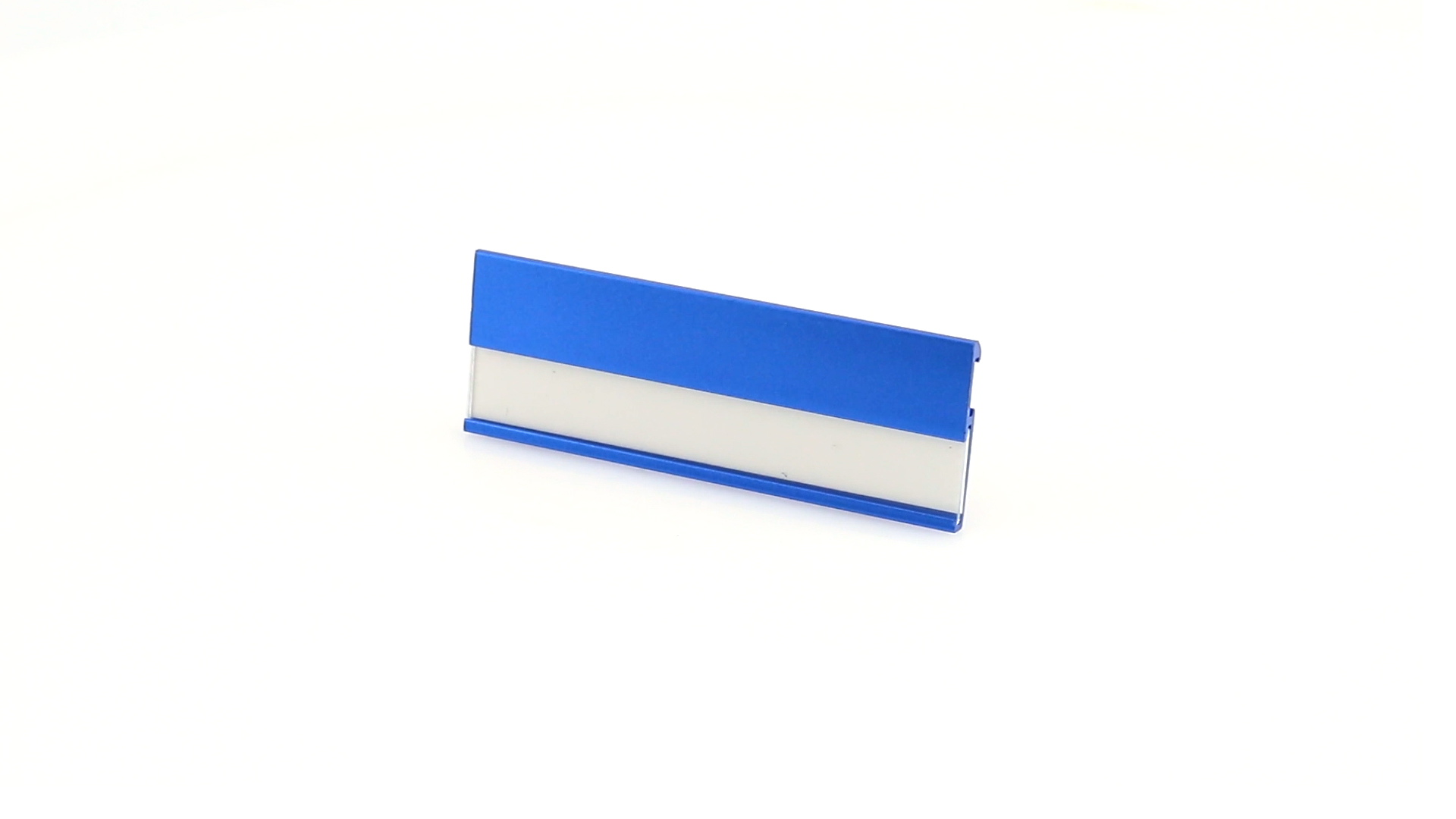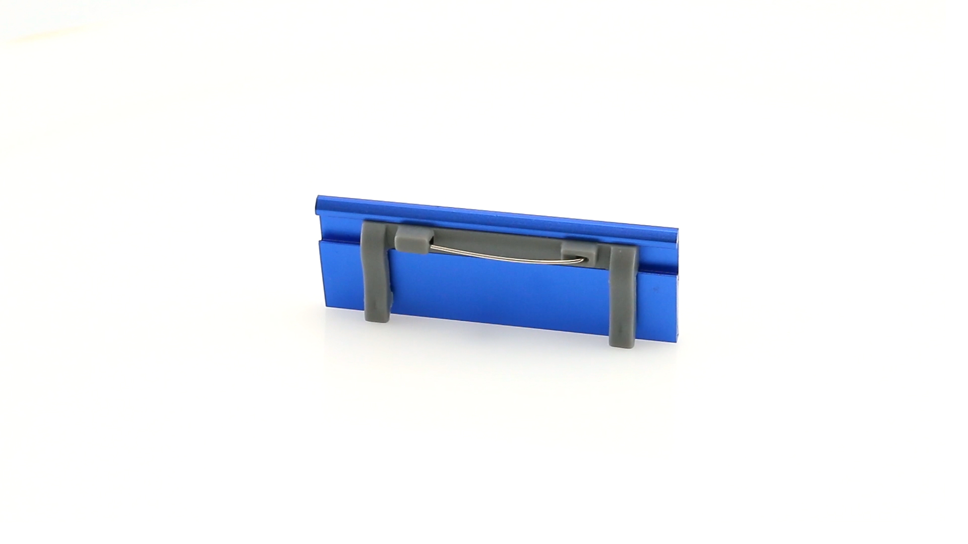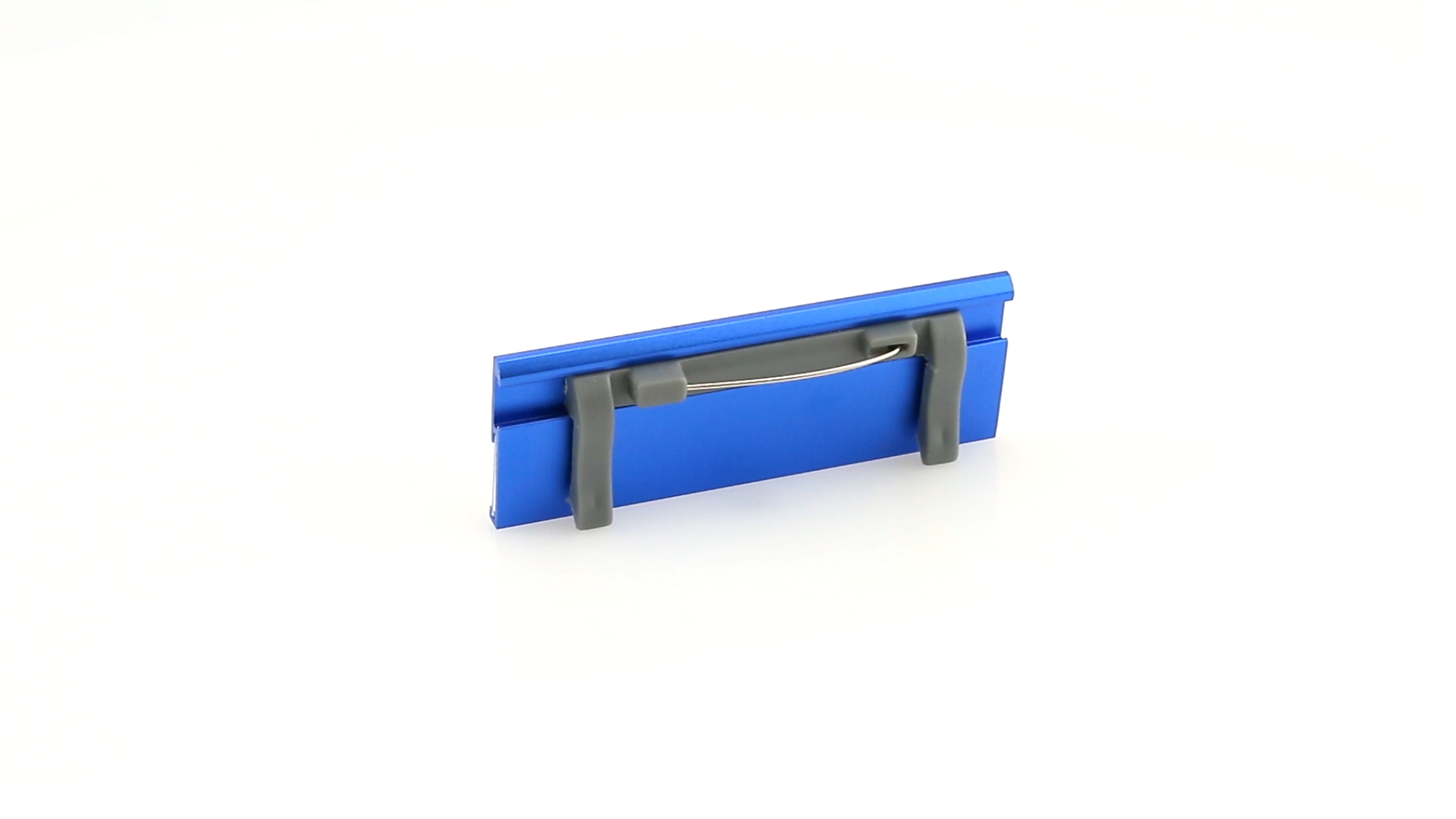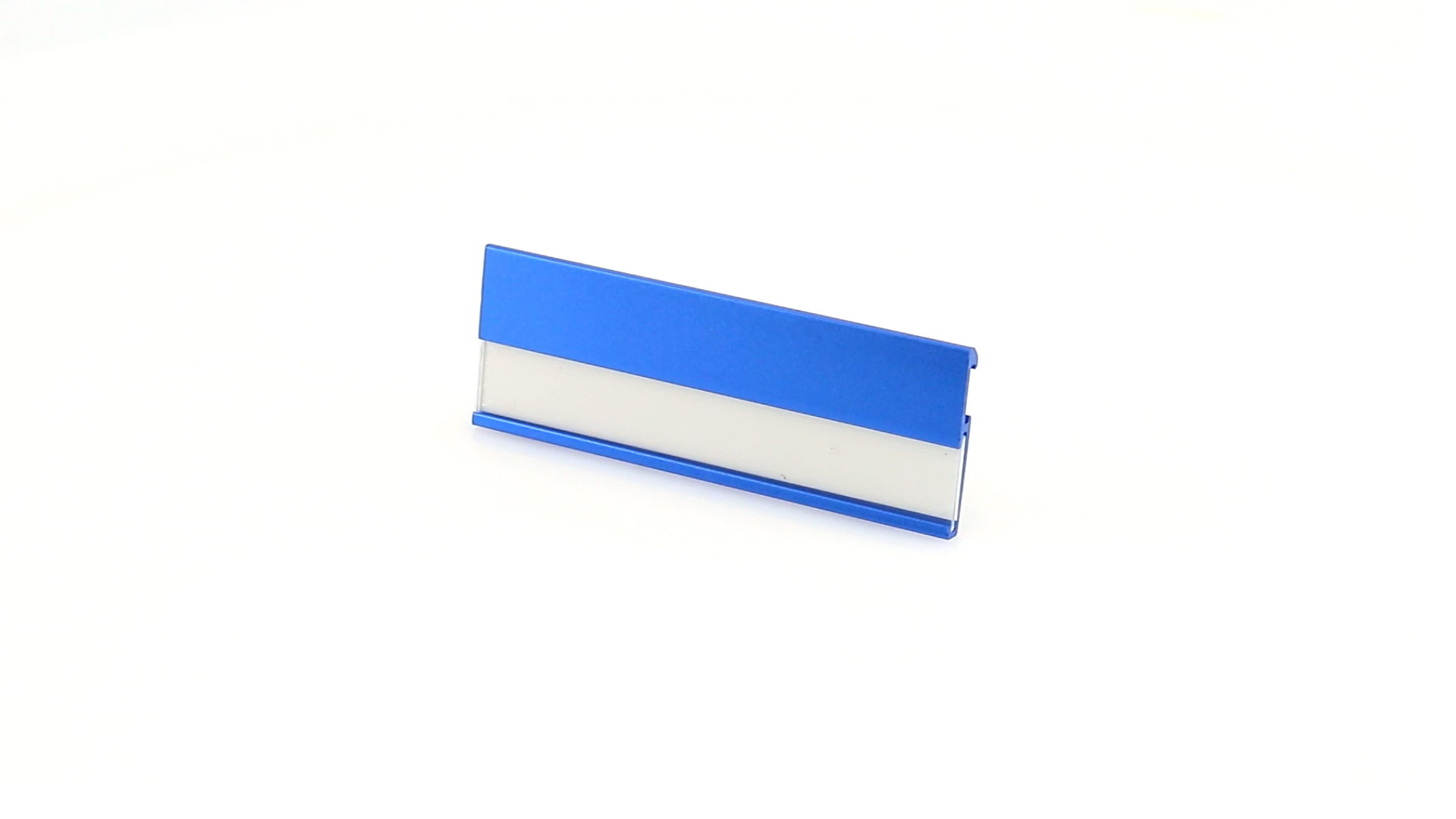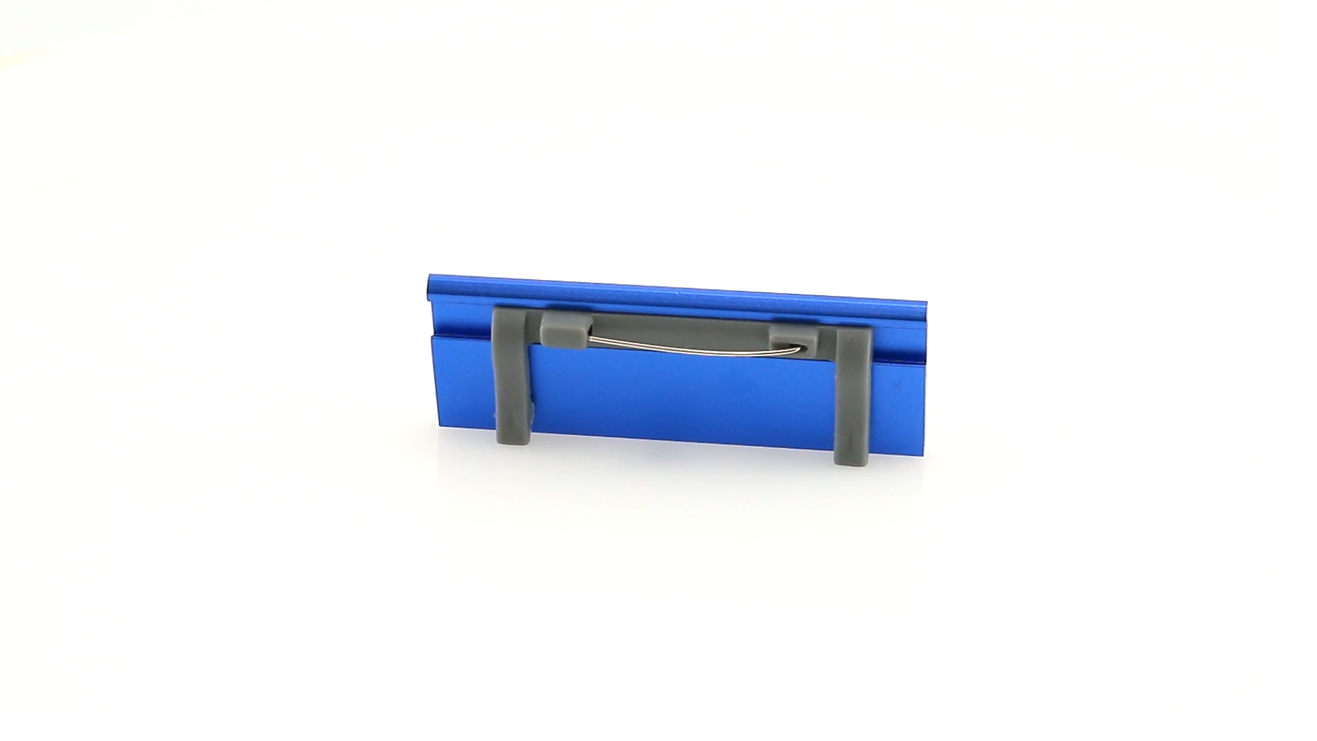 Aluminium-Namensschild in lebendigen Farben mit Befestigungsnadel auf der Rückseite.