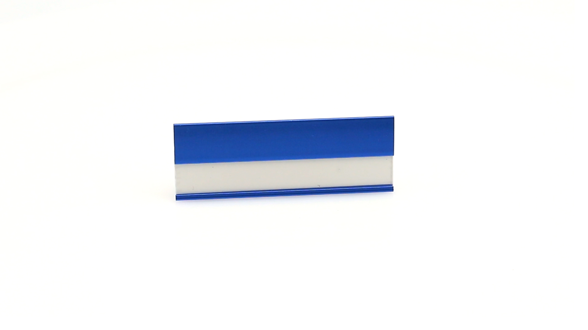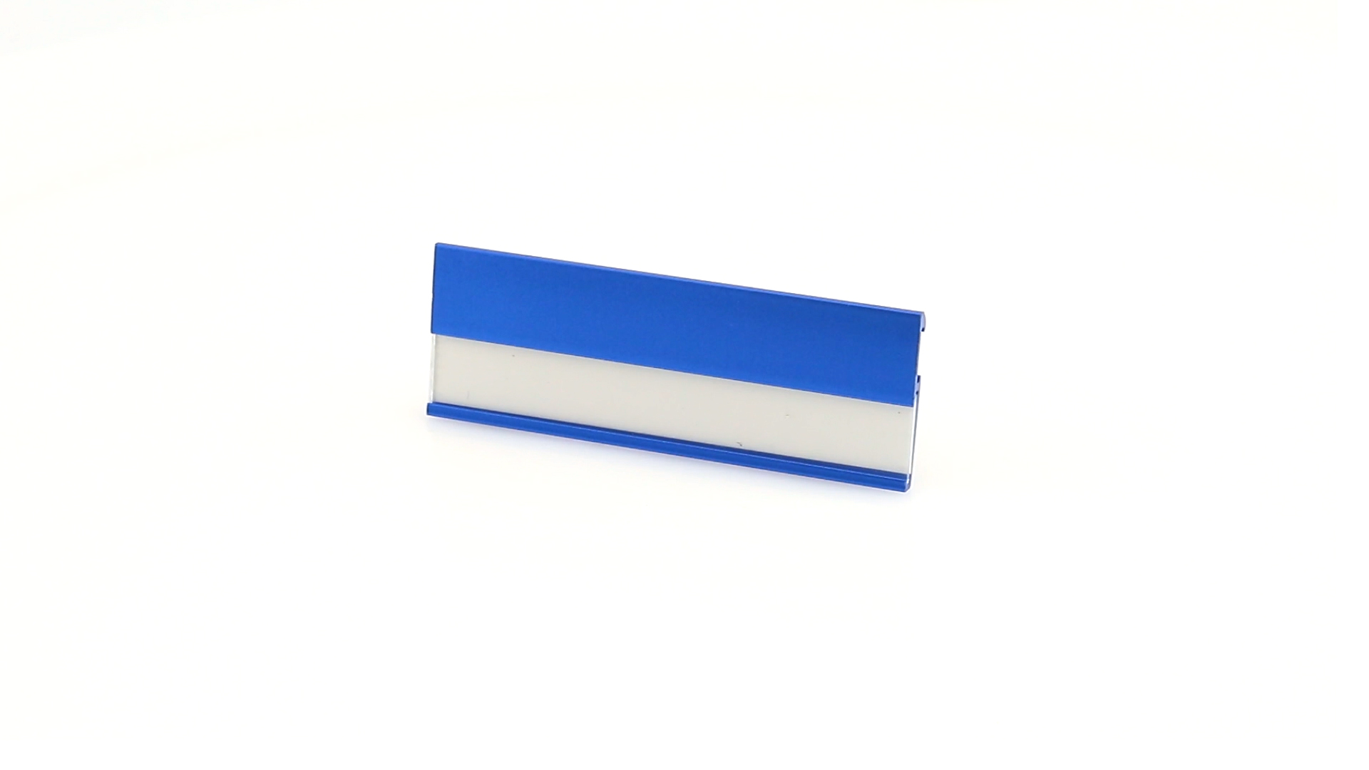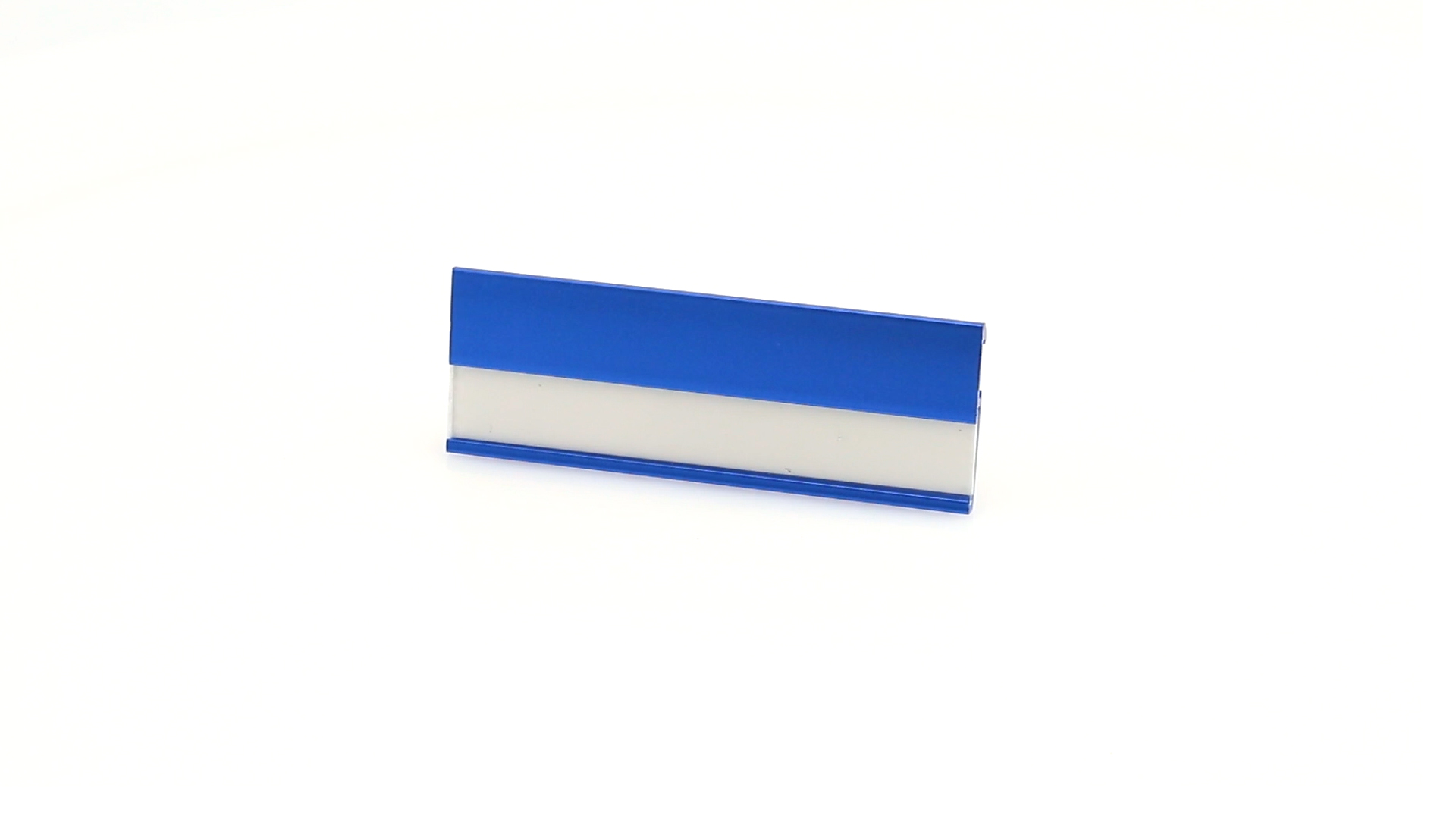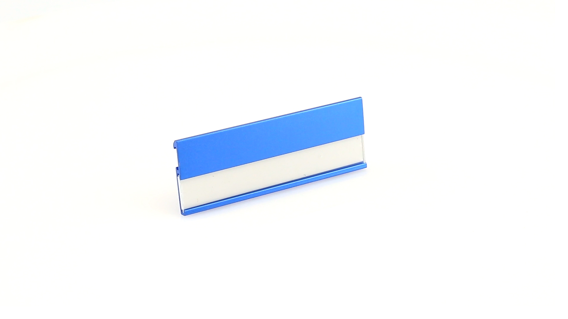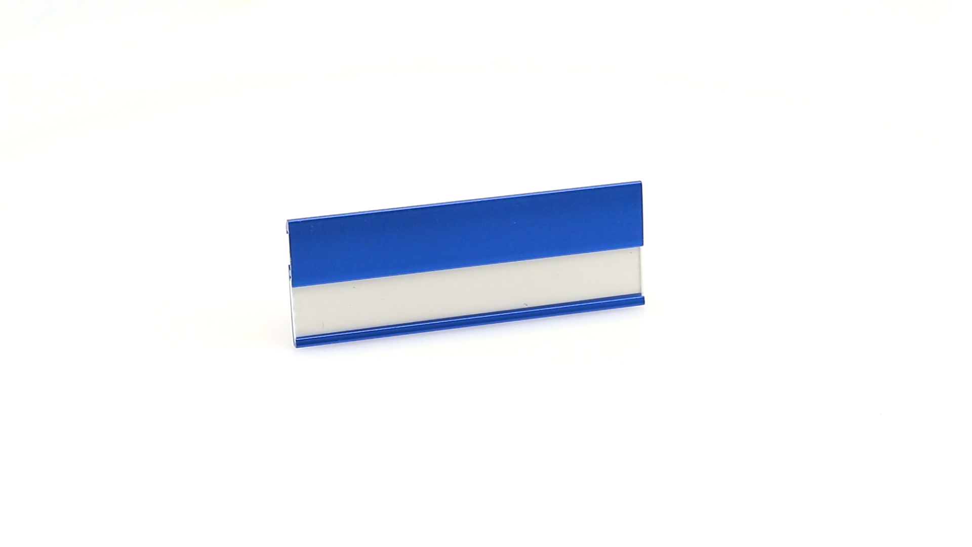Aluminium-Namensschild in lebendigen Farben mit Befestigungsnadel auf der Rückseite.