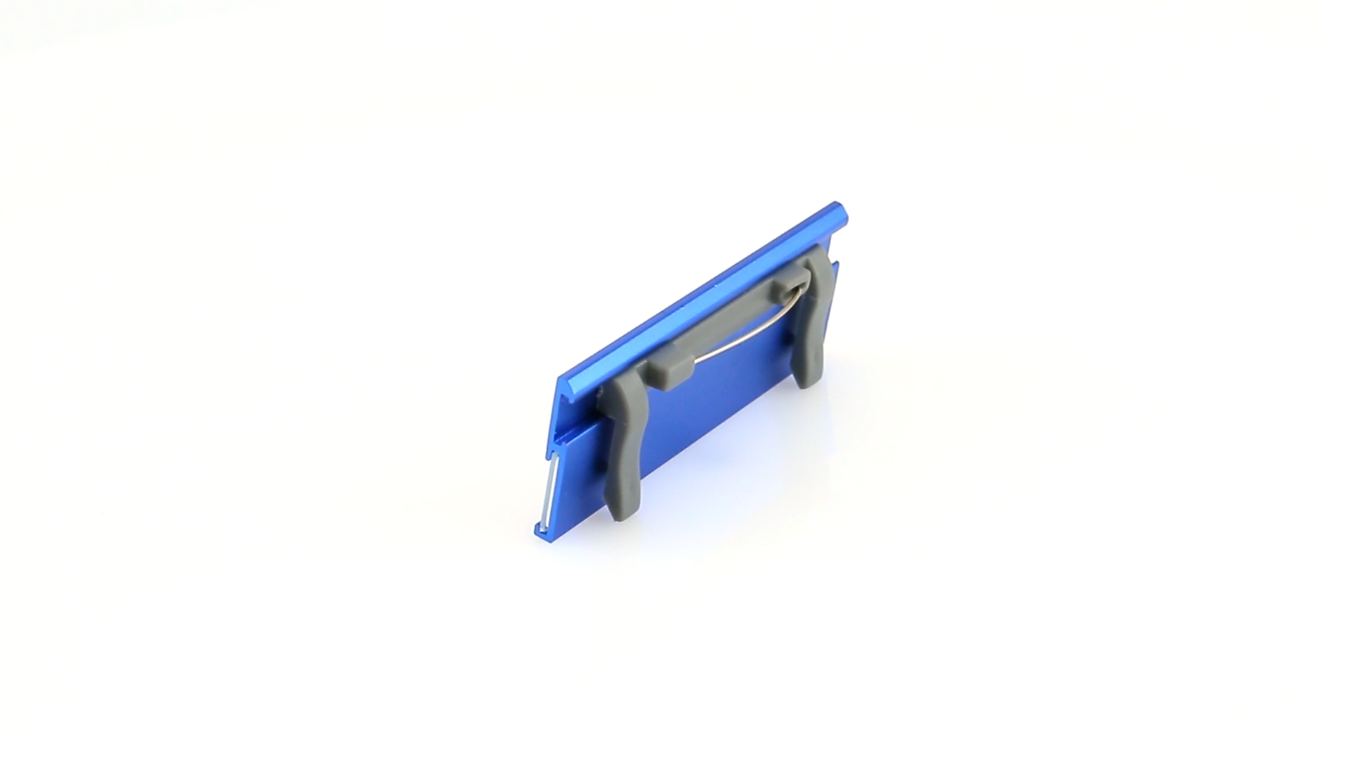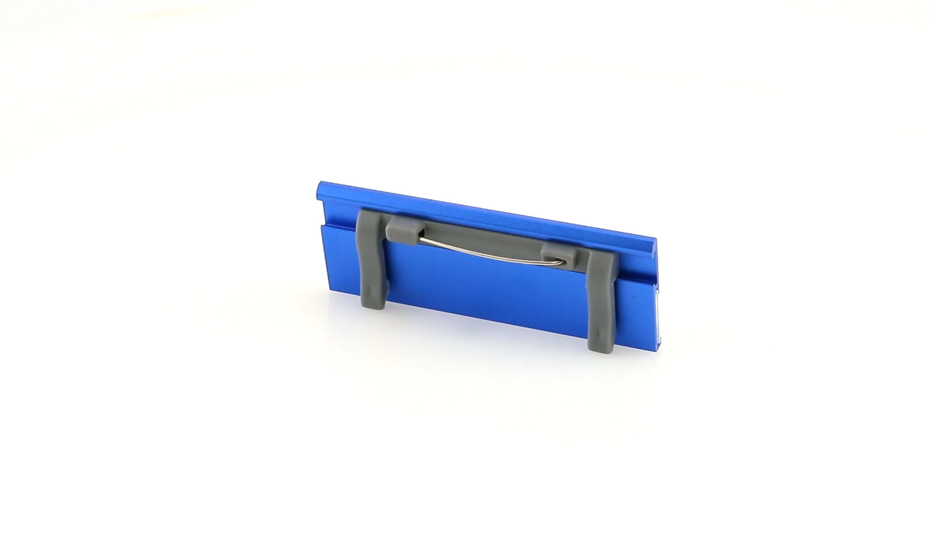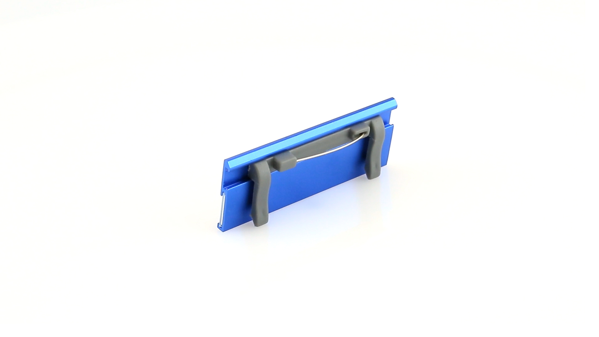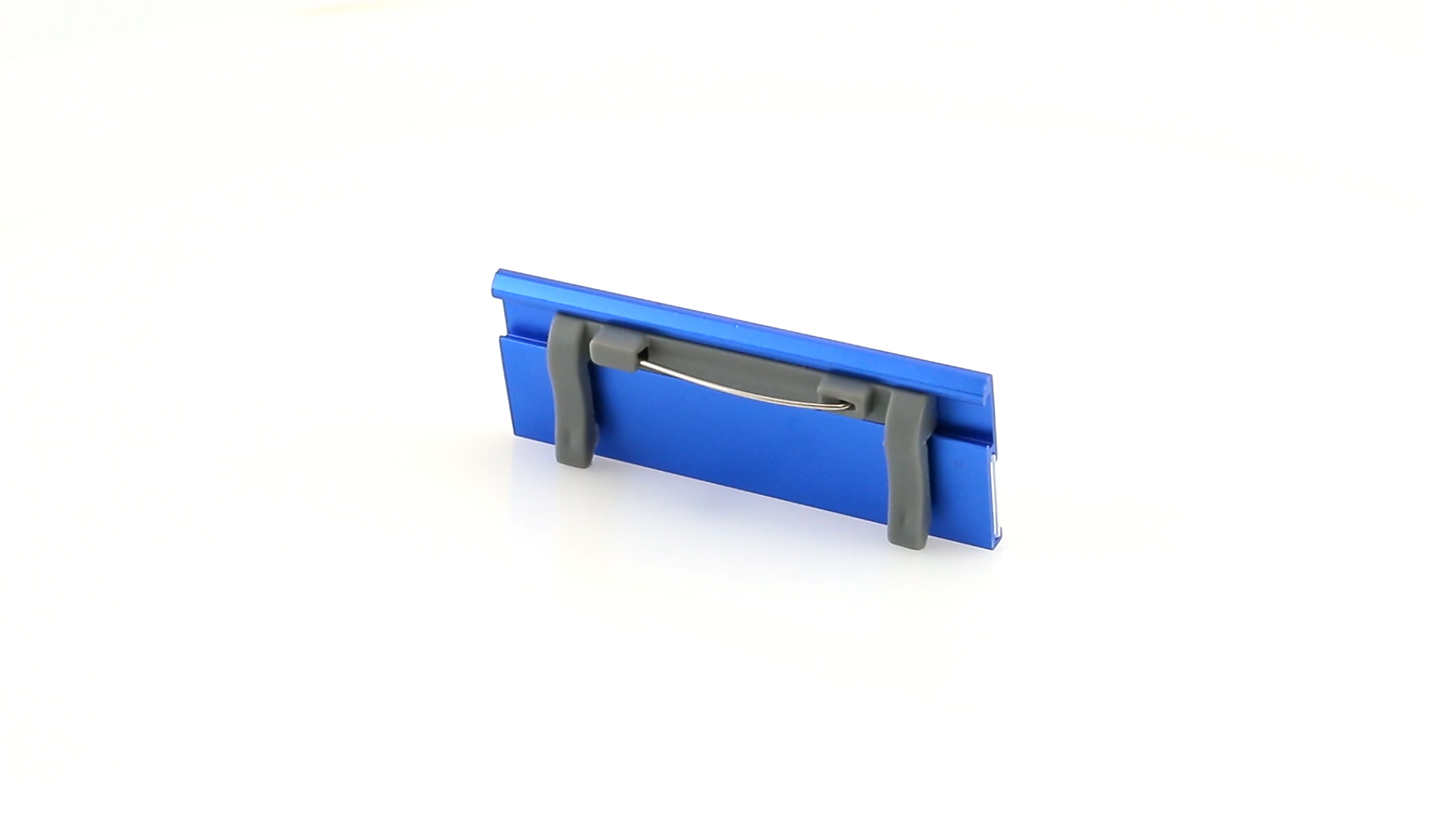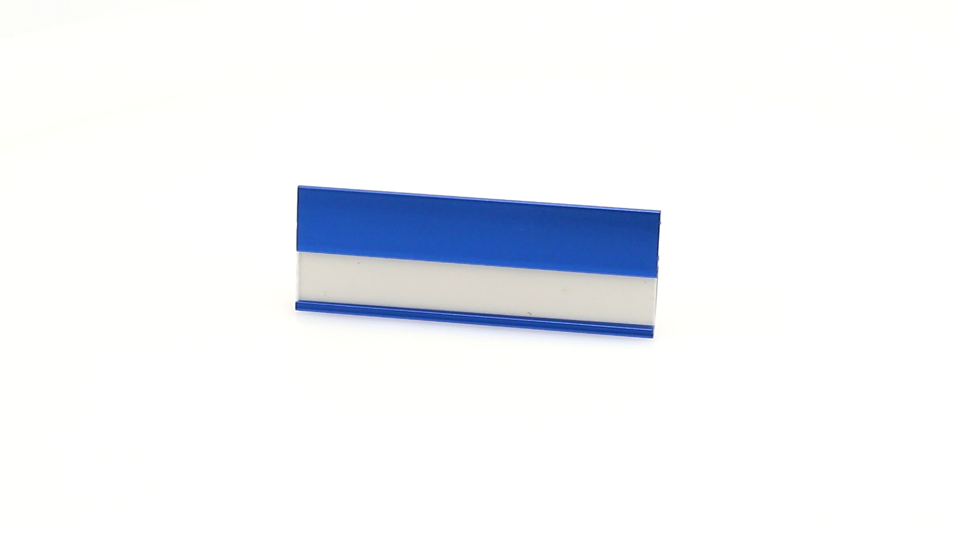 Aluminium-Namensschild in lebendigen Farben mit Befestigungsnadel auf der Rückseite.
