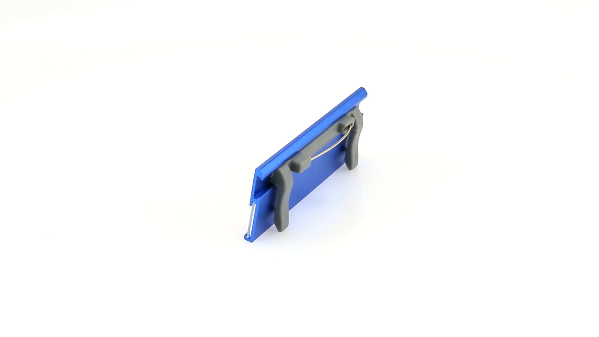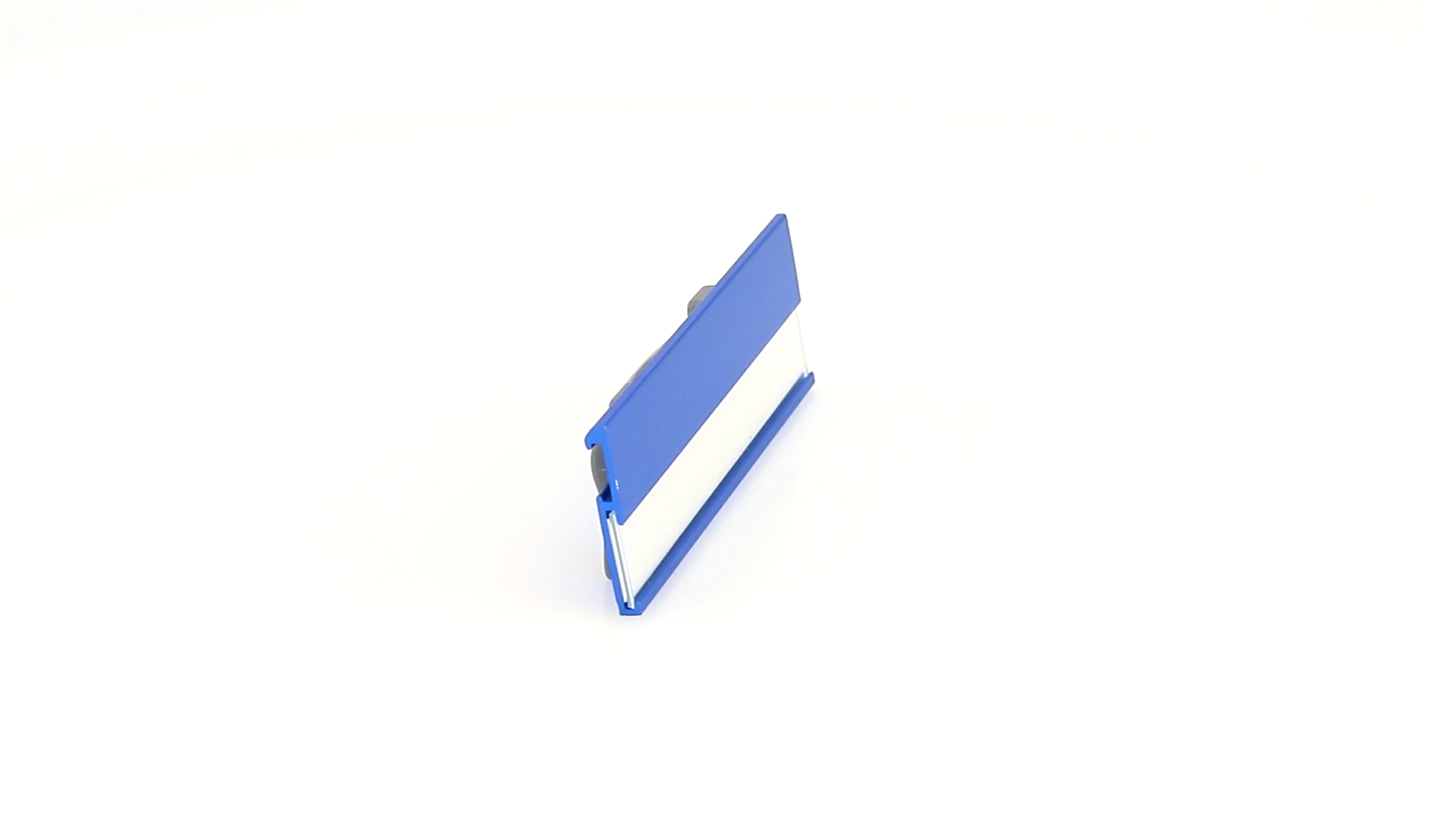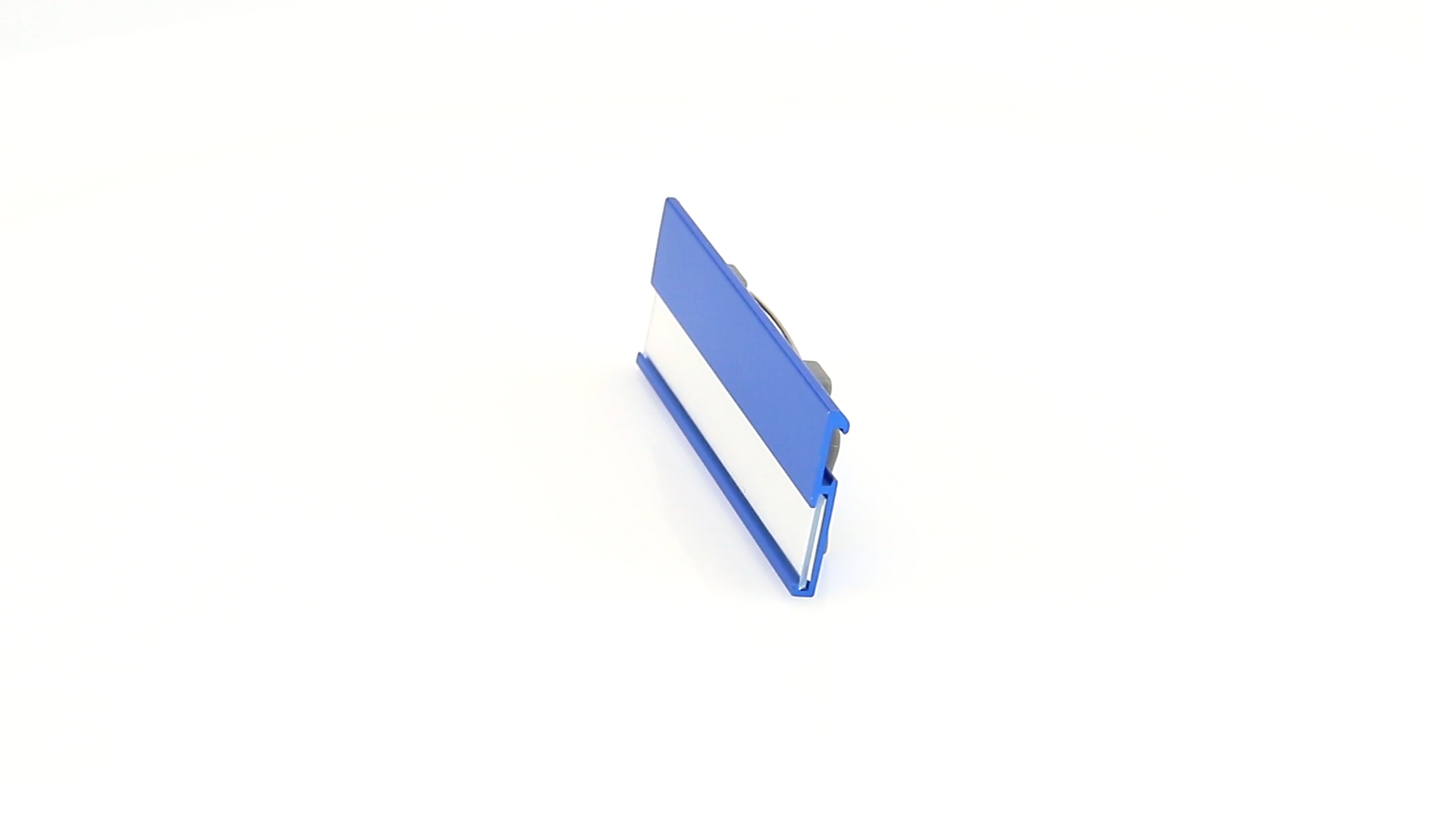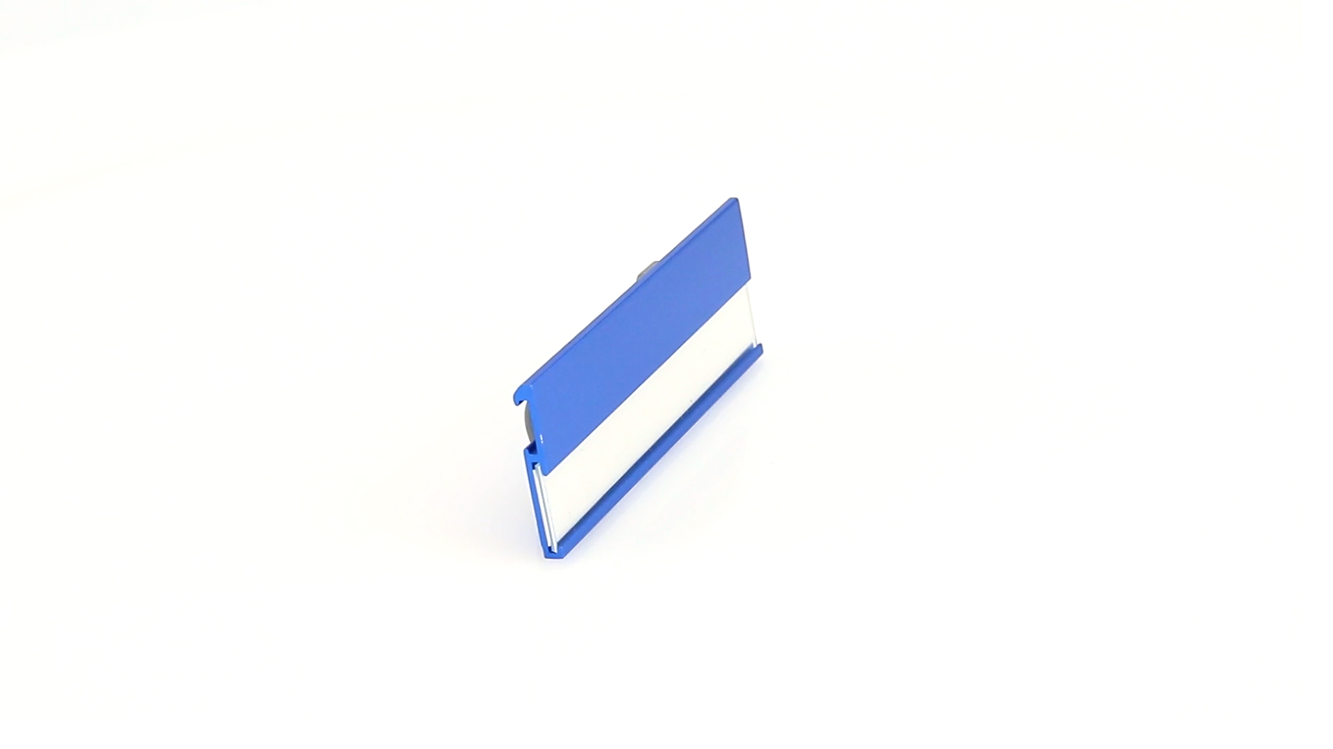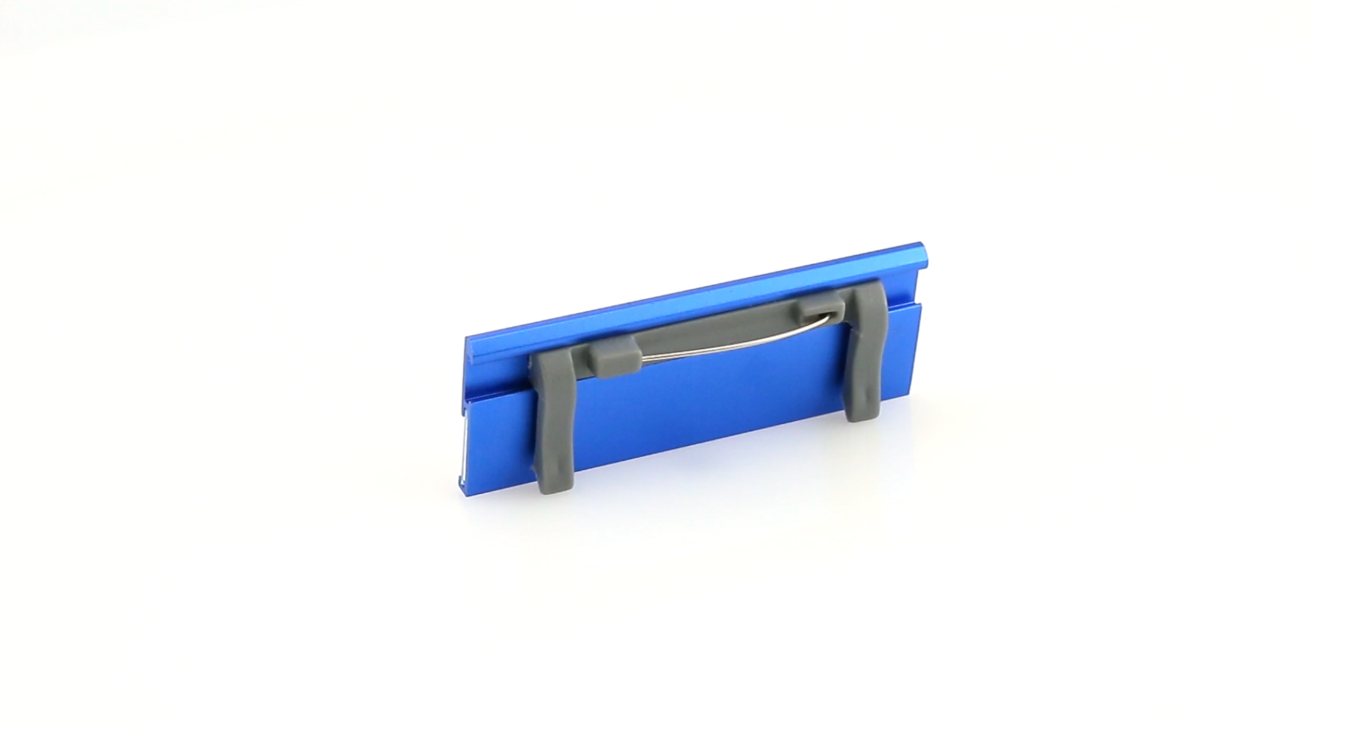 Aluminium-Namensschild in lebendigen Farben mit Befestigungsnadel auf der Rückseite.