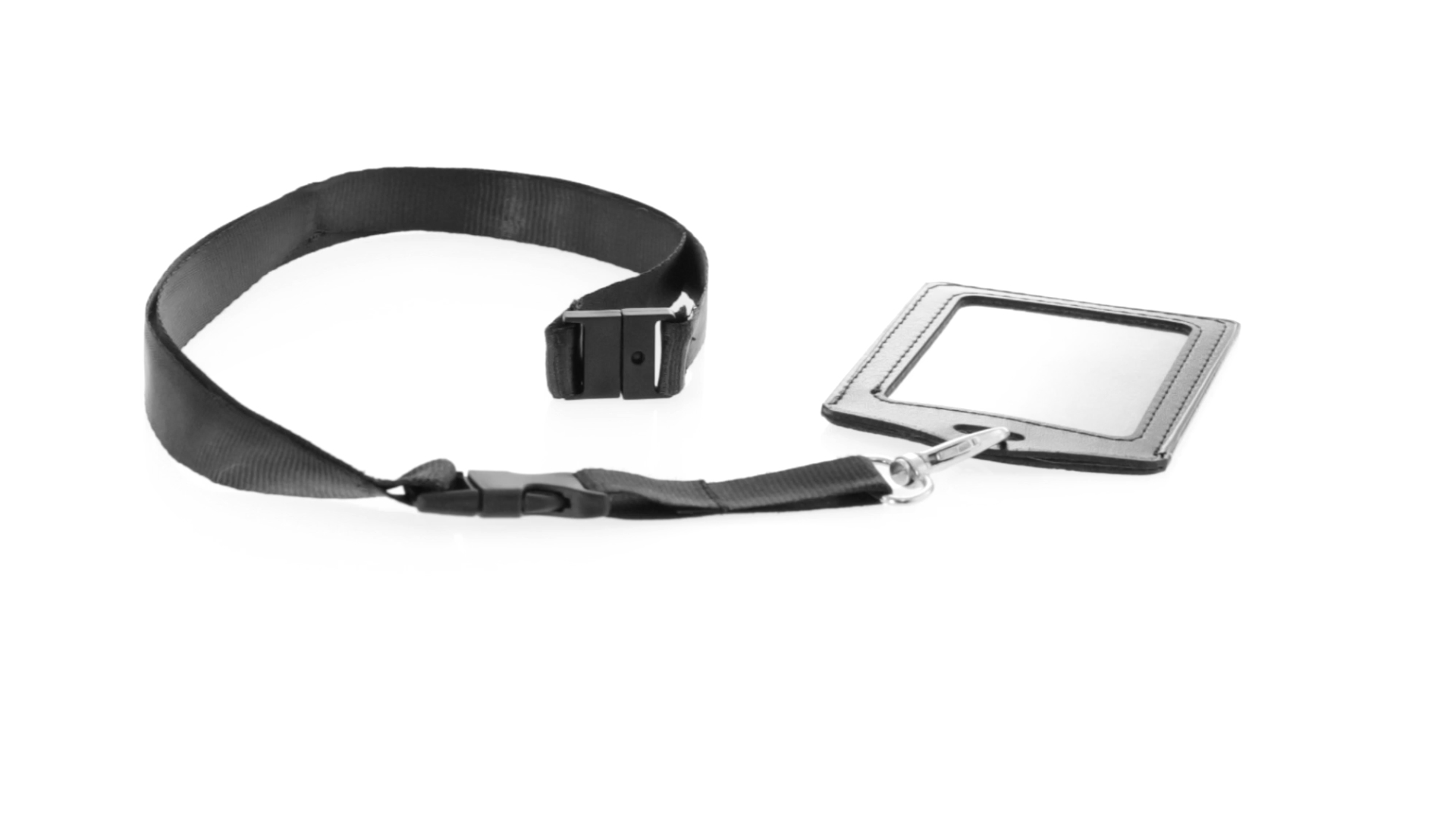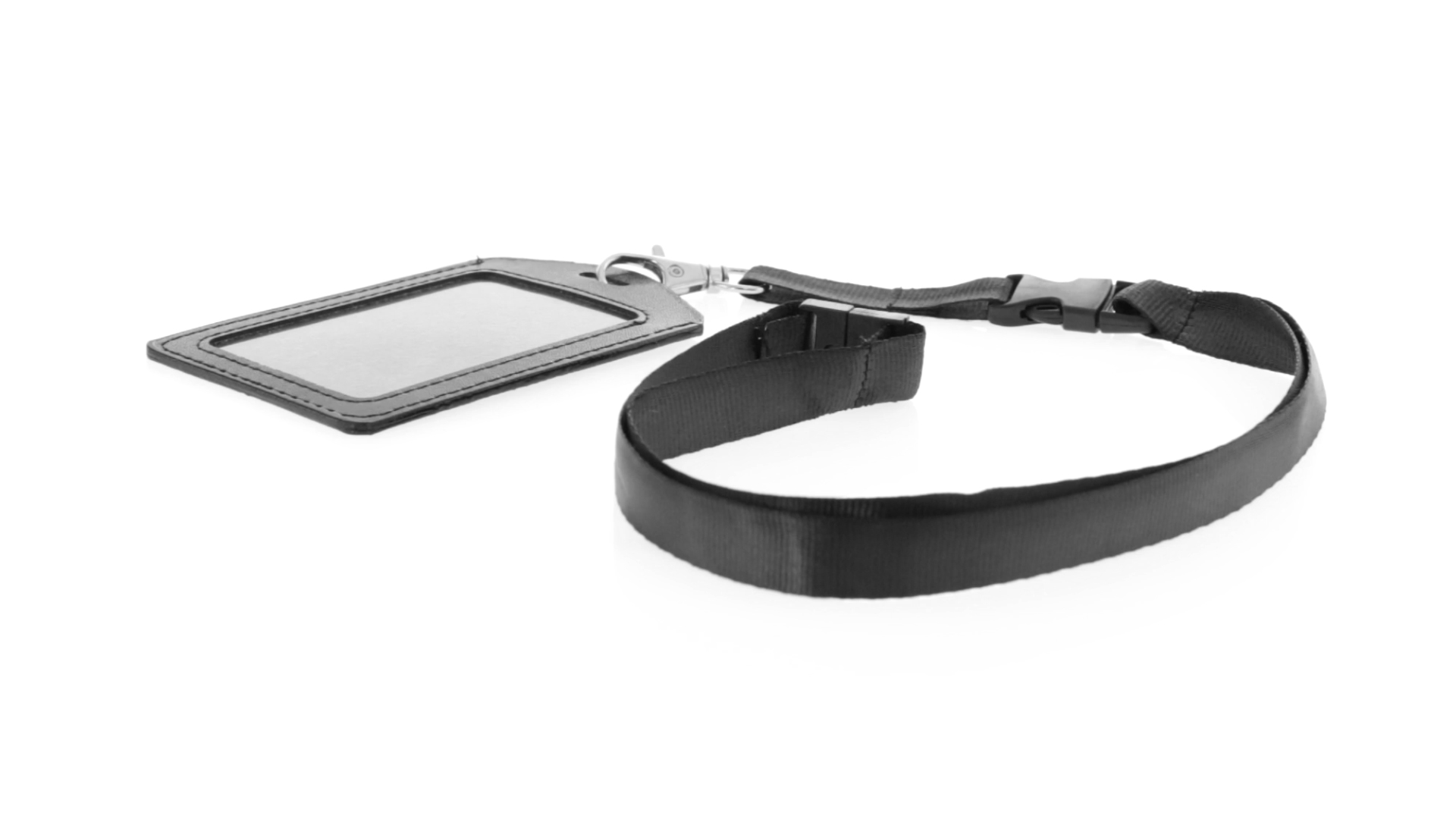 Lanyard mit farblich passender ID-Karte. Lanyard aus robustem Polyester, mit Sicherheitsverschluss im Nacken und Klickverschluss sowie Karabiner zur einfachen Handhabung der ID-Karte. Kartenhalter aus Kunstleder mit PVC-Fenster und Kartenschlitz für einfaches Einstecken. Erhältlich in Weiss und Schwarz.