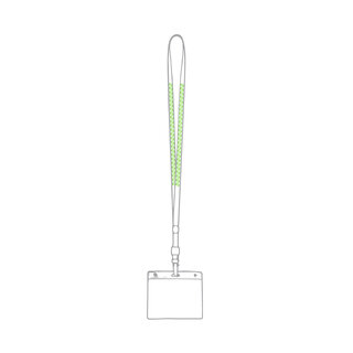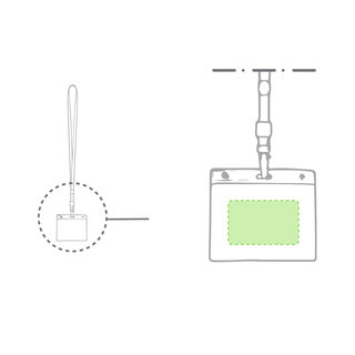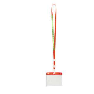 Identifikations-Hülle aus PVC mit farblich passendem Lanyard und Befestigungskarabiner. Runde Druckfläche.