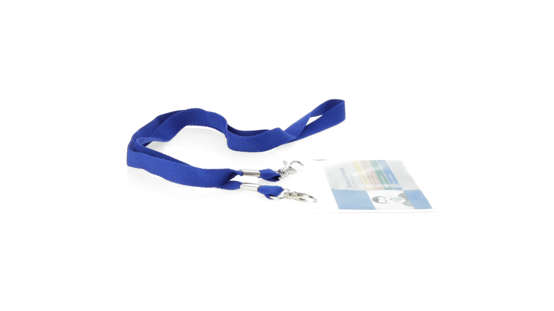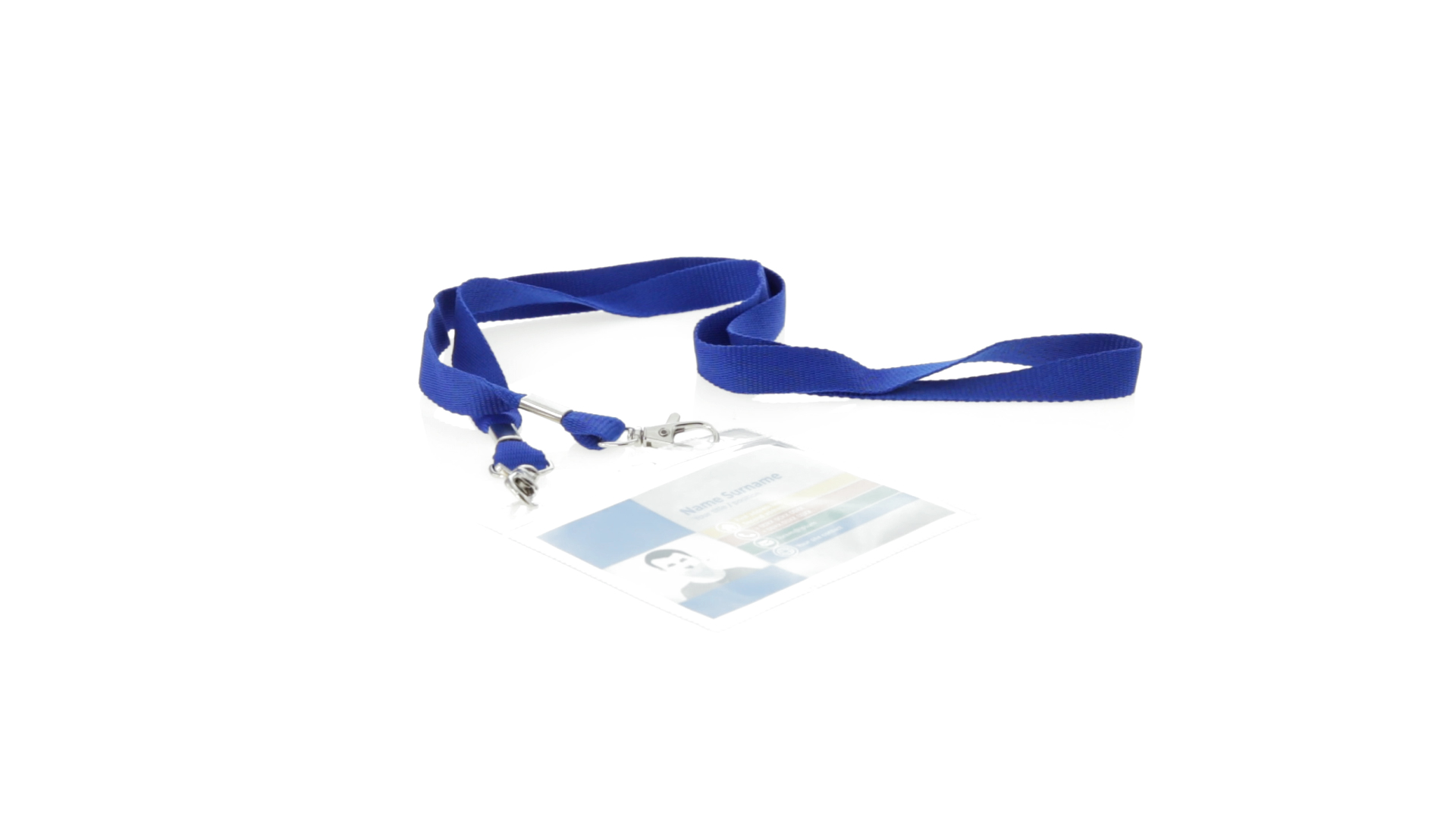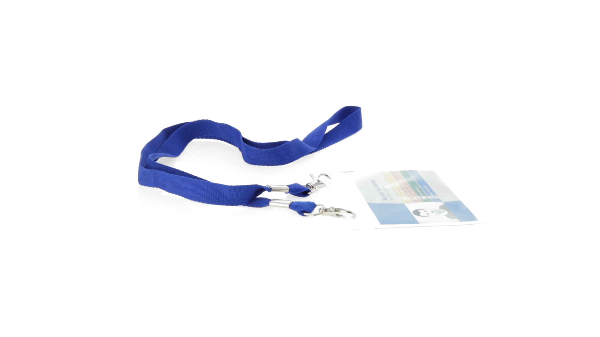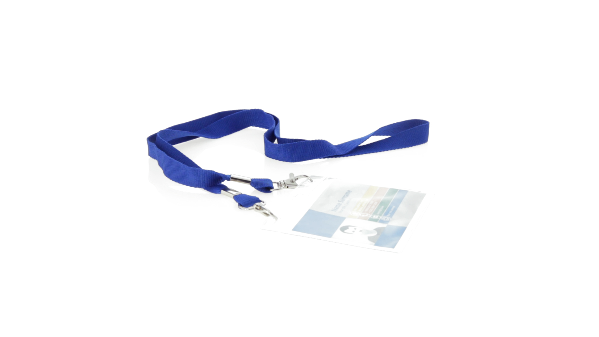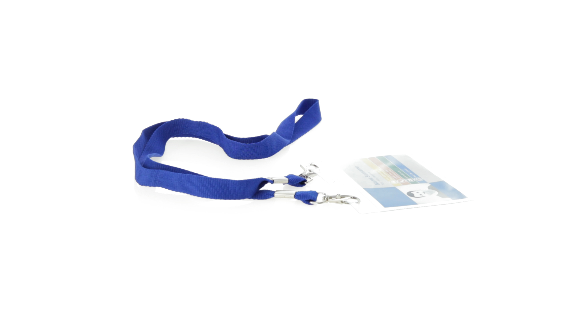 Gestanzter Ausweishalter aus PVC mit Lanyard in verschiedenen Farben und Metallkarabiner.