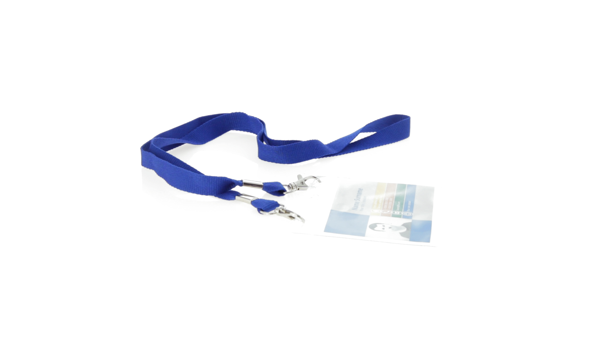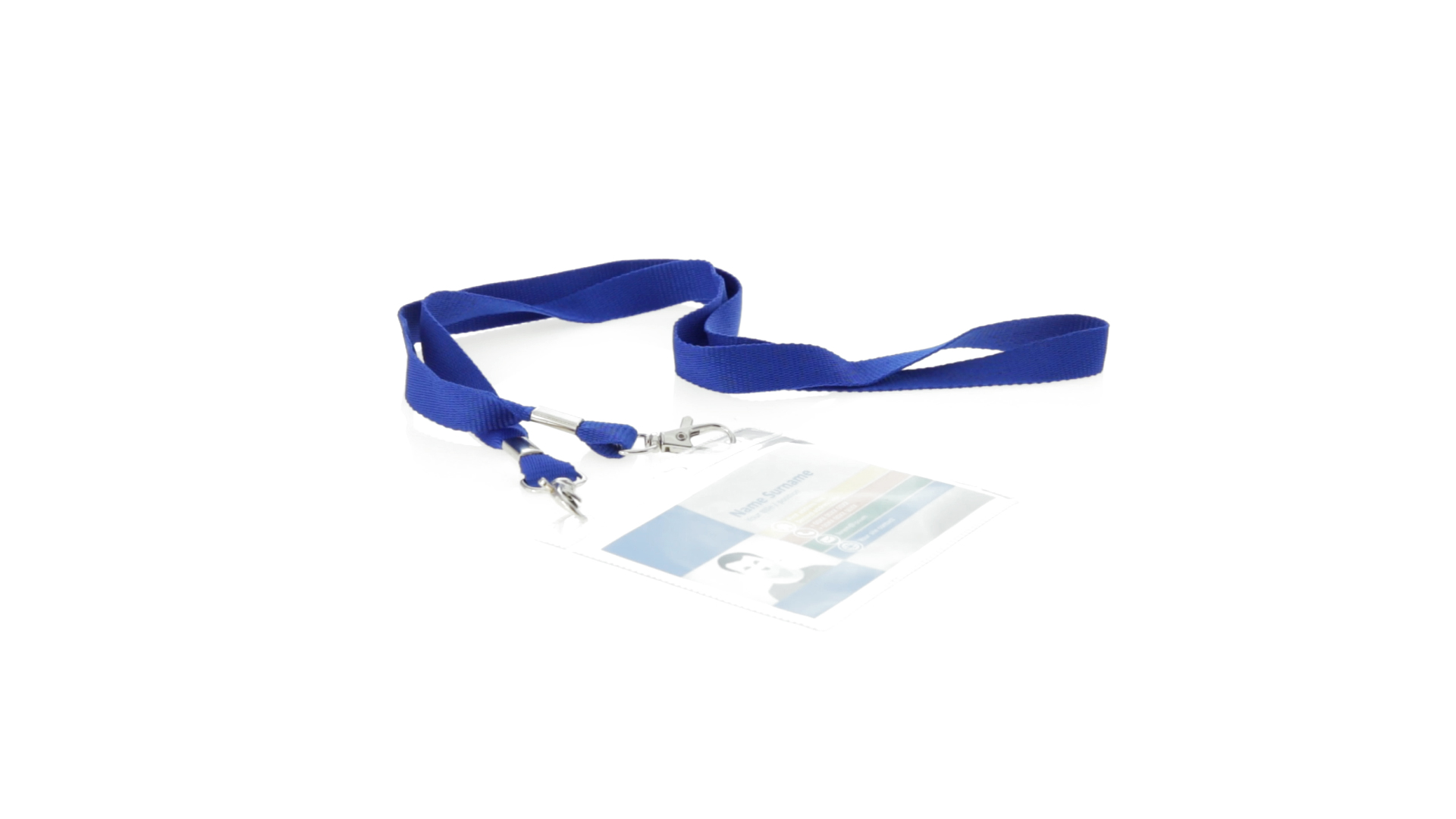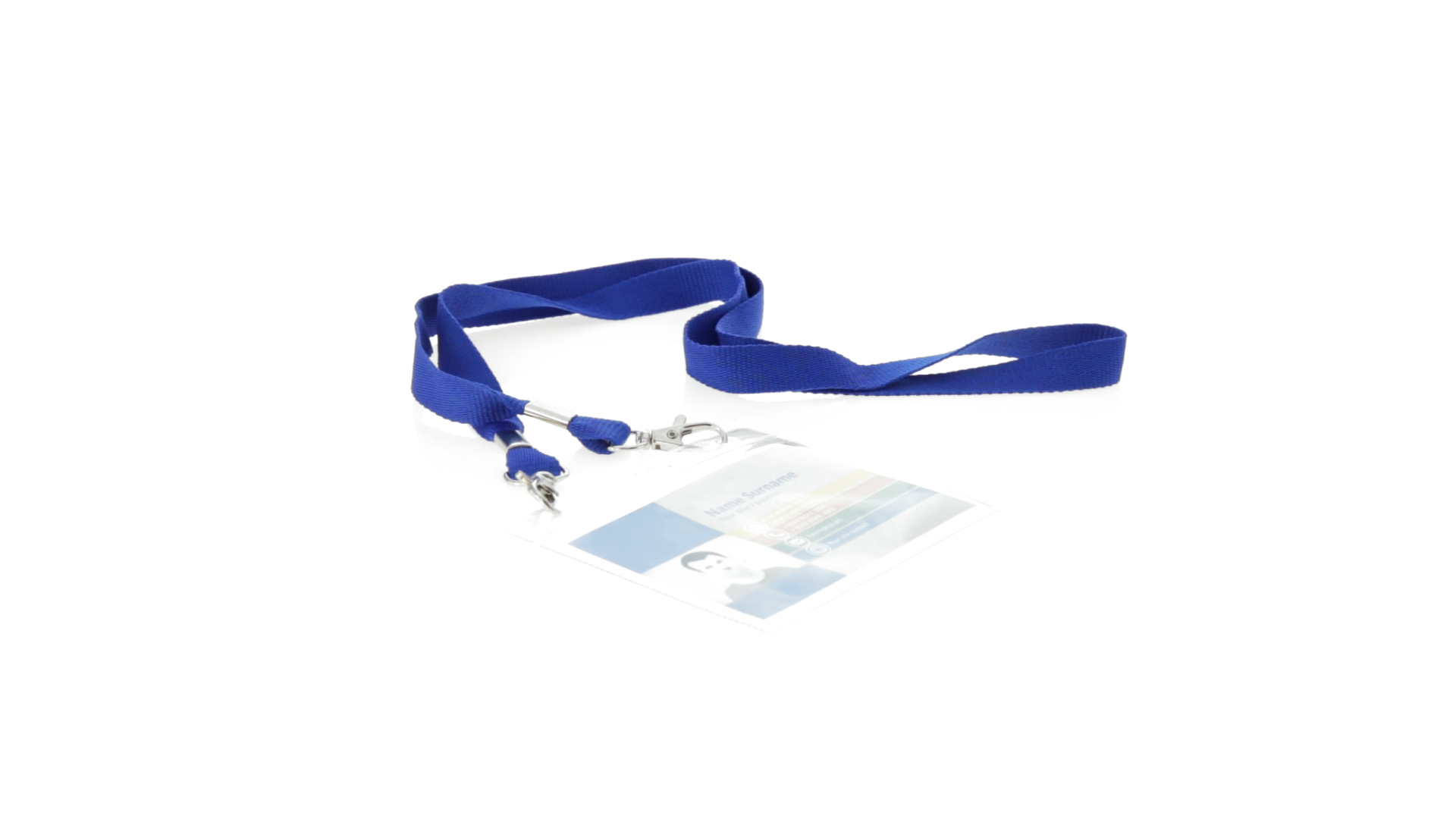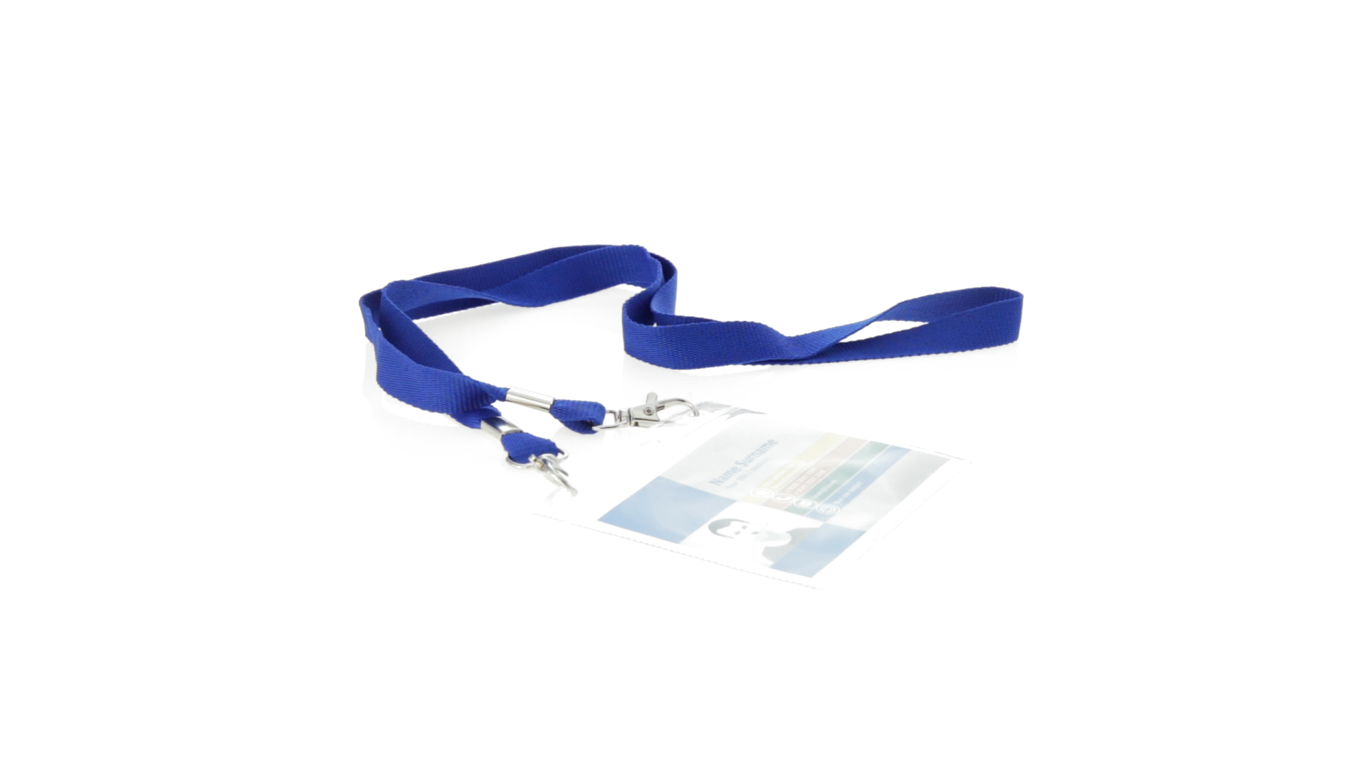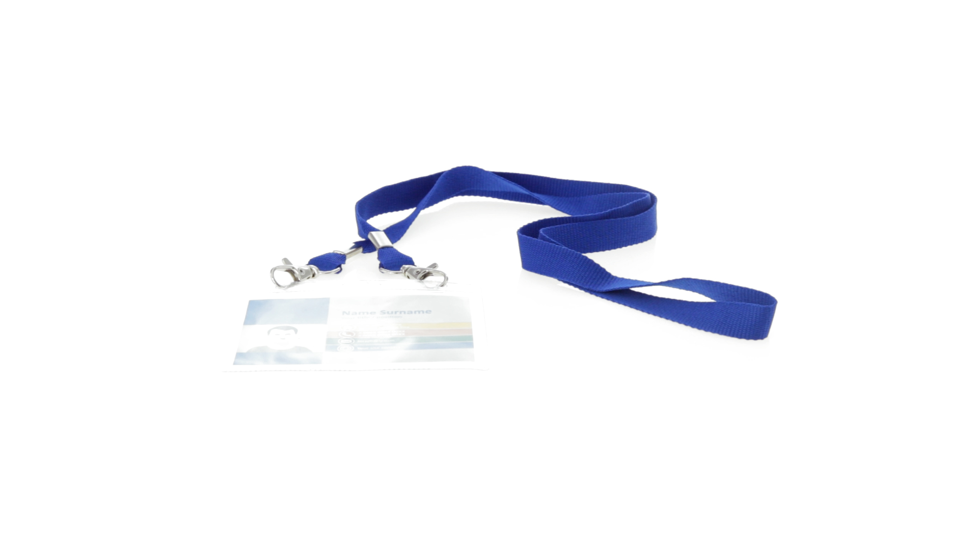 Gestanzter Ausweishalter aus PVC mit Lanyard in verschiedenen Farben und Metallkarabiner.
