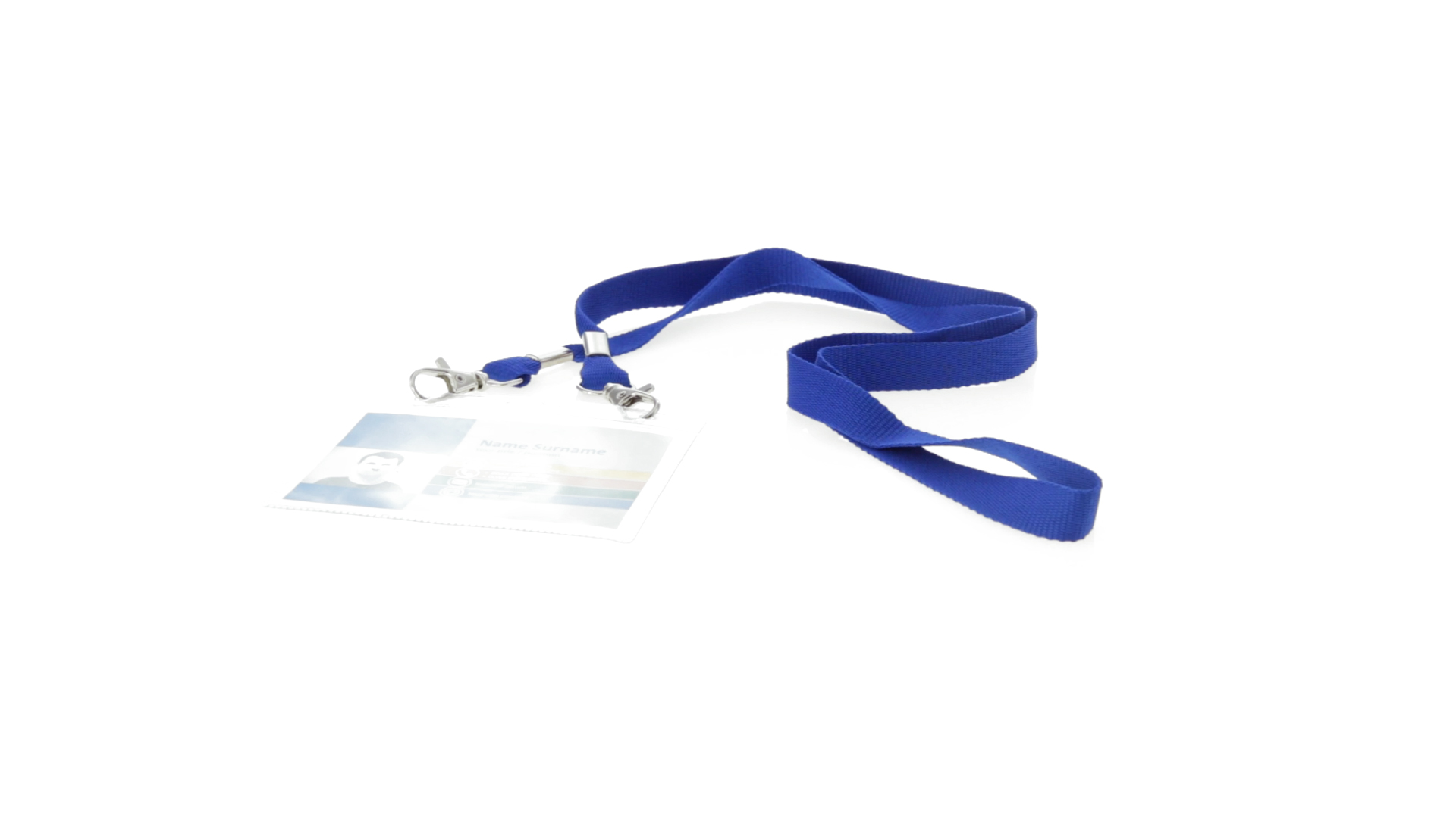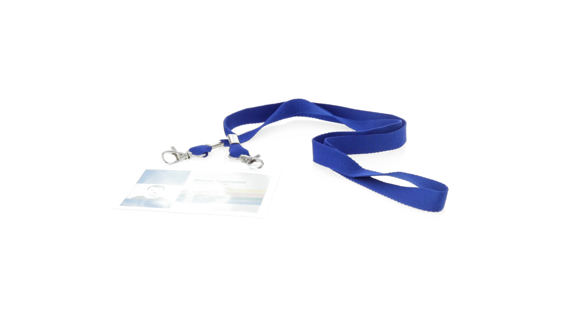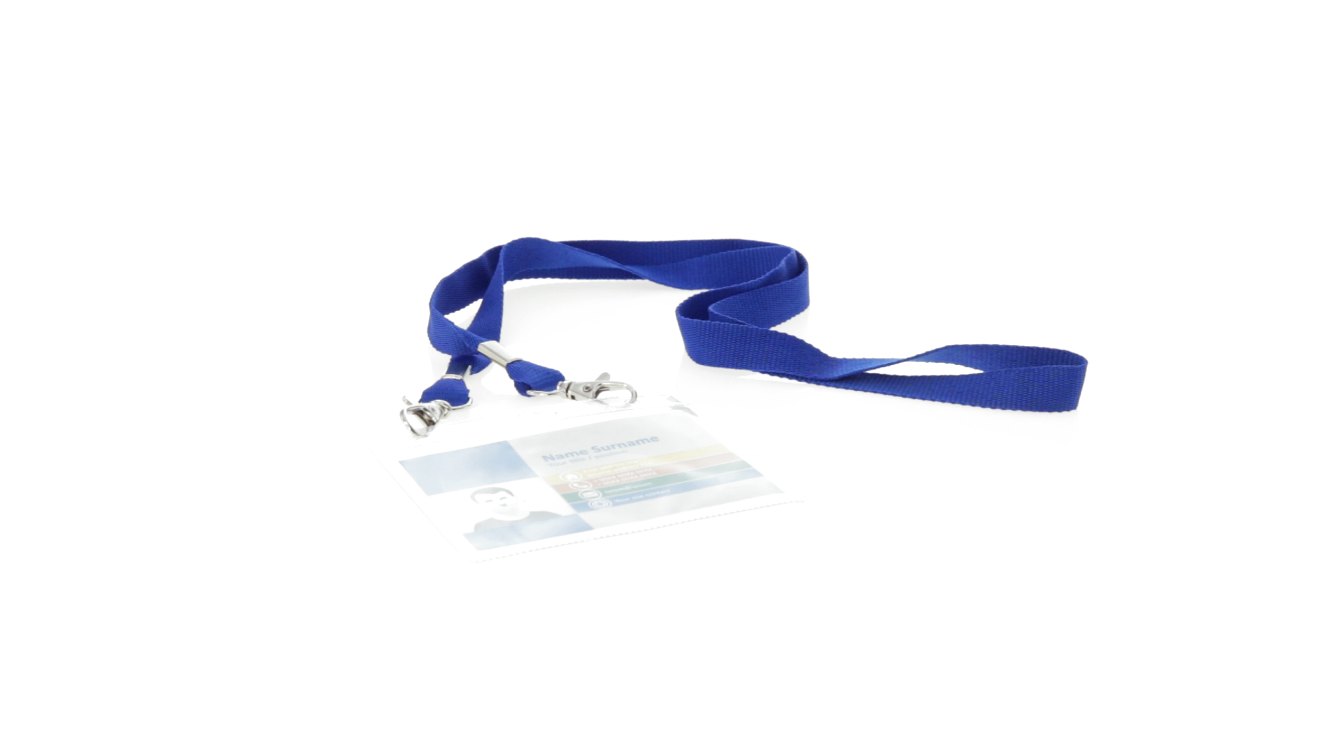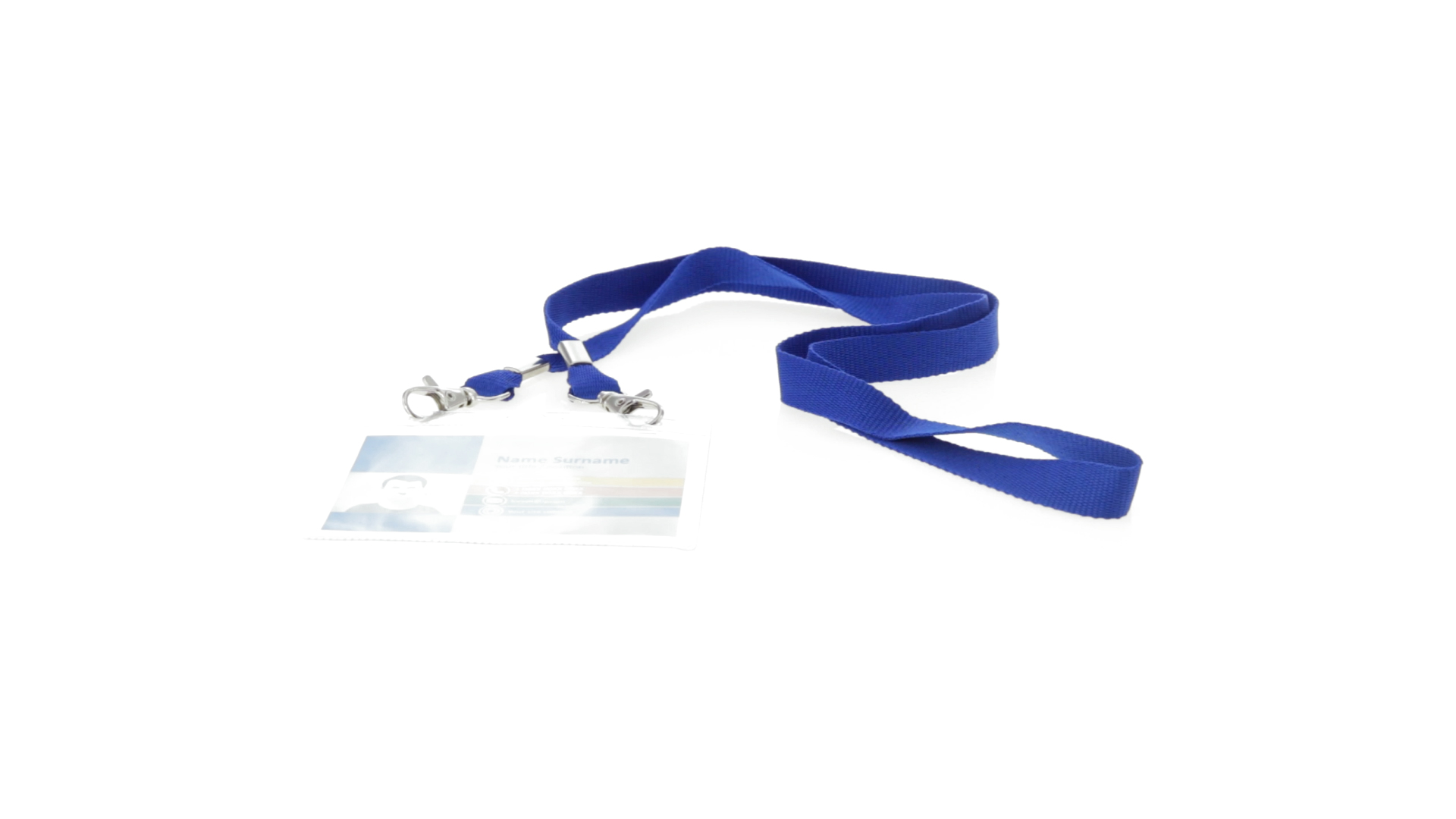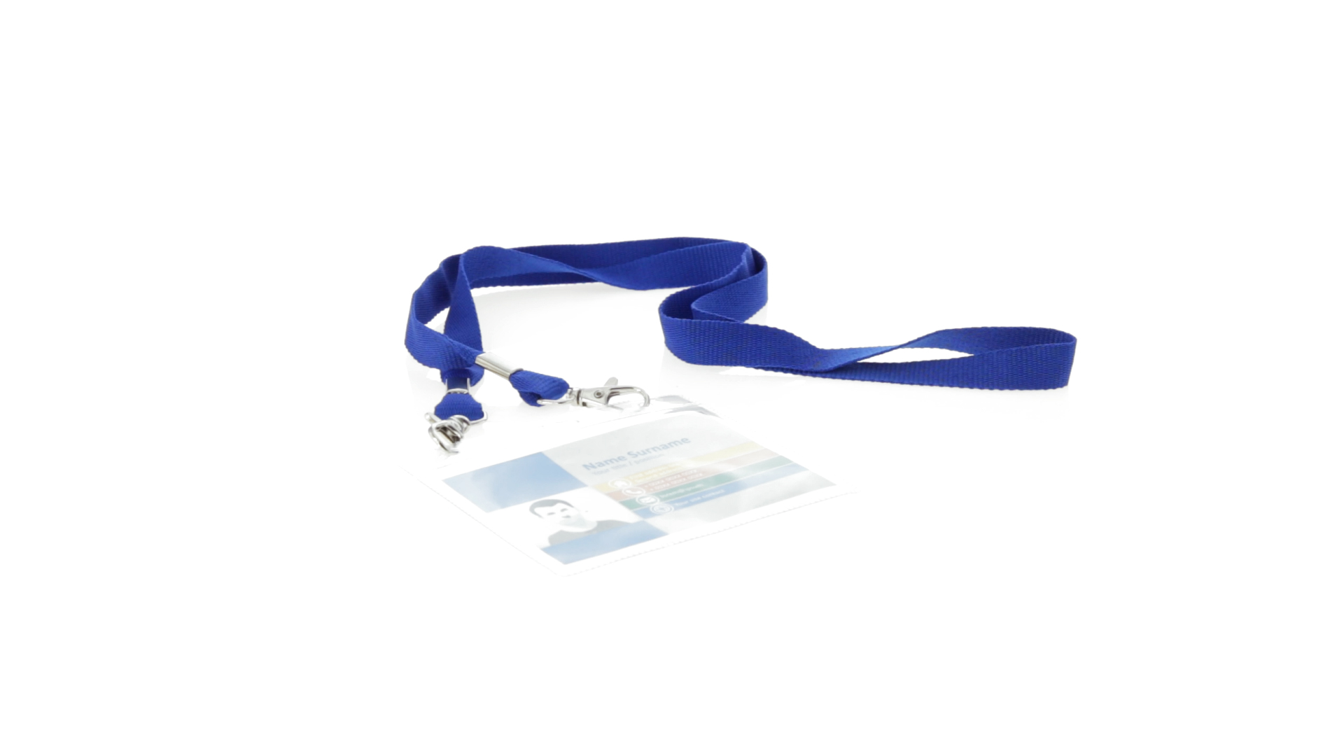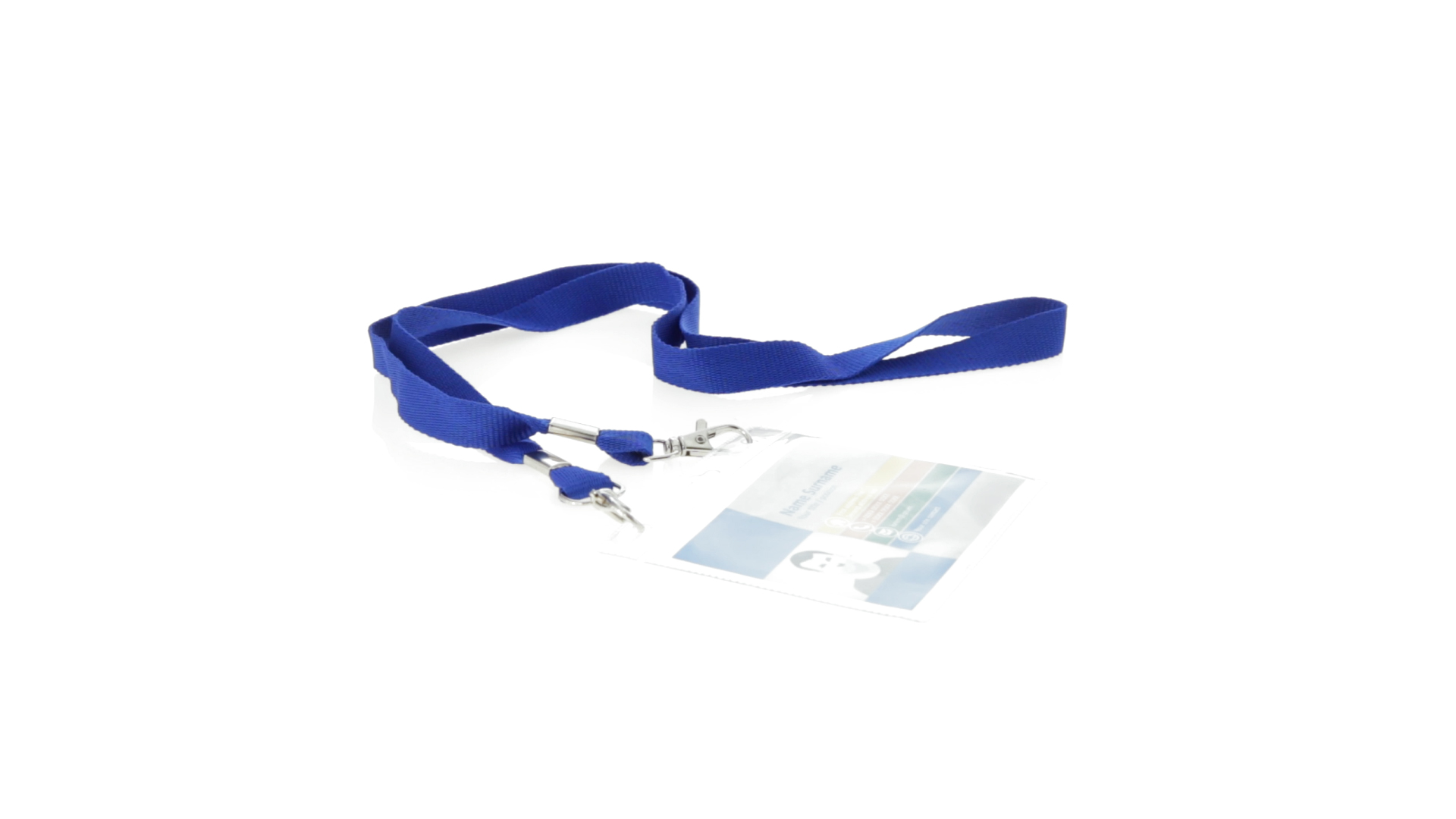Gestanzter Ausweishalter aus PVC mit Lanyard in verschiedenen Farben und Metallkarabiner.