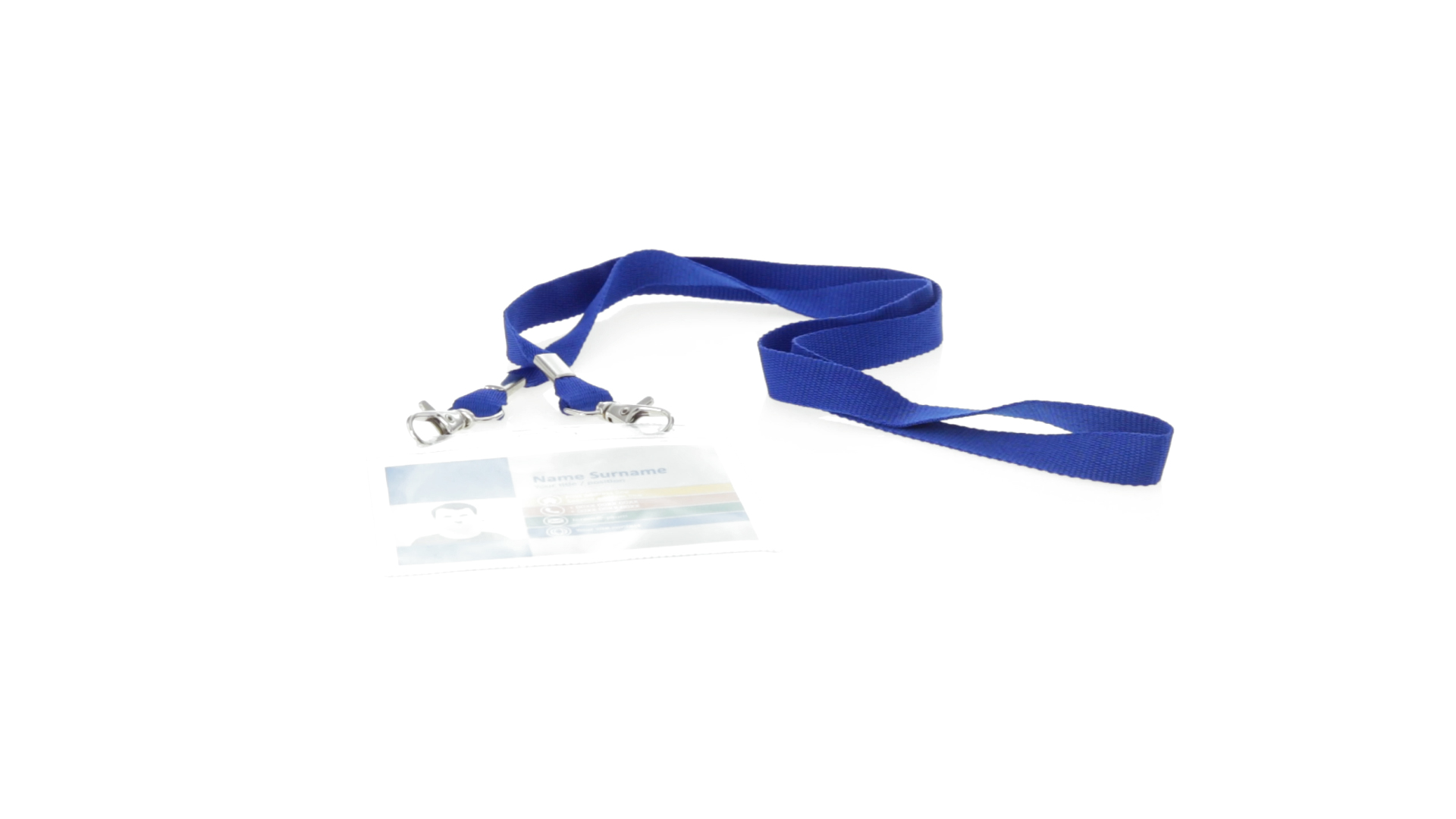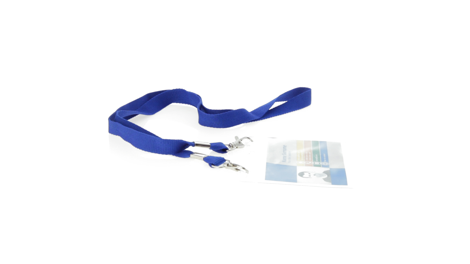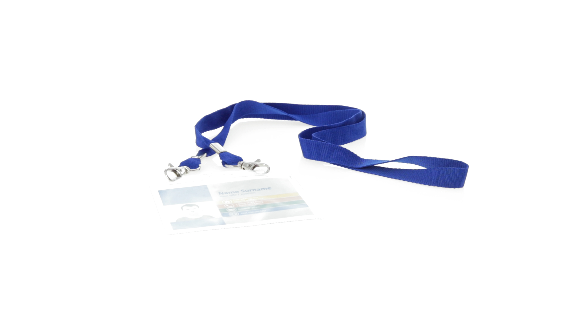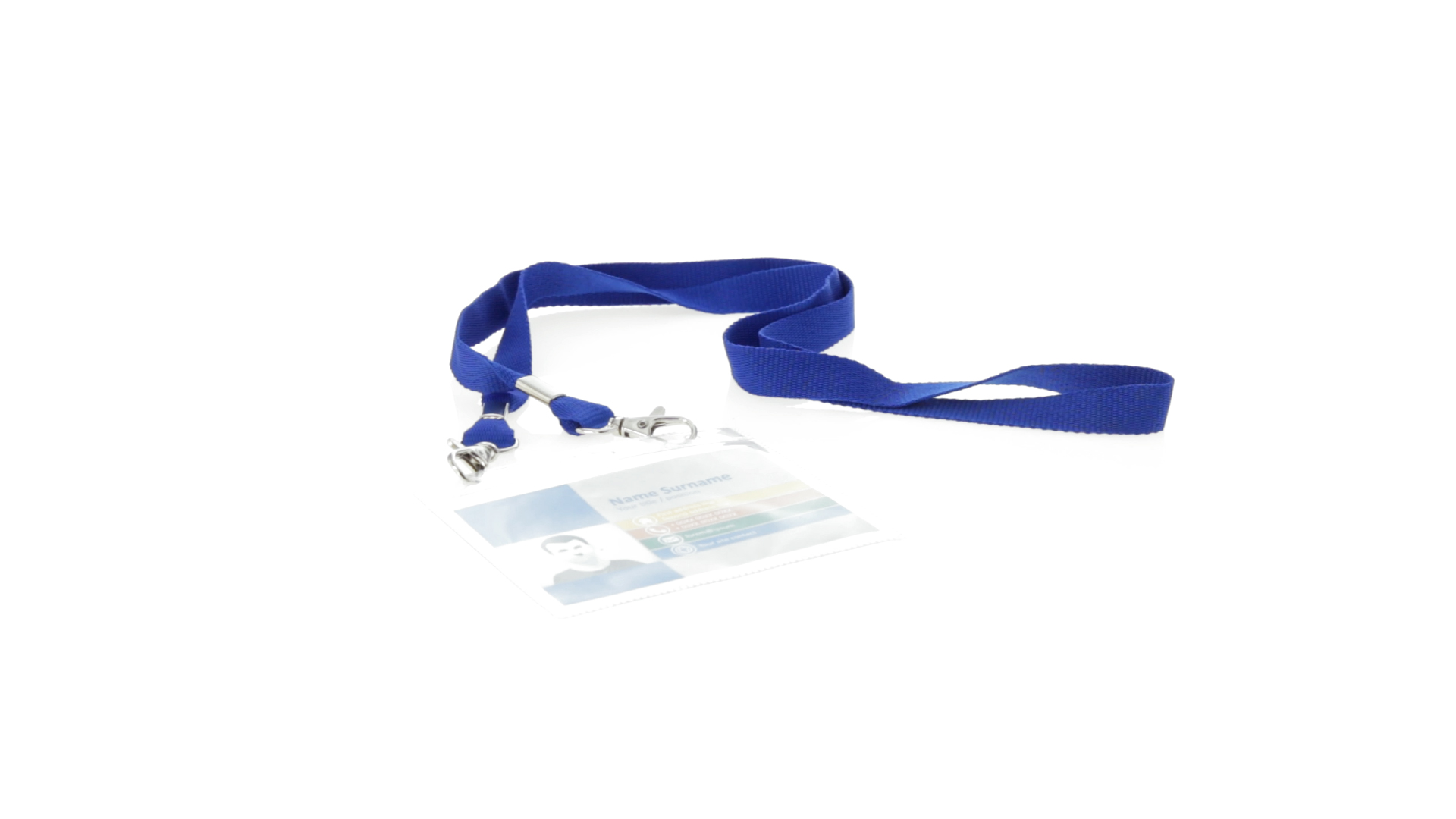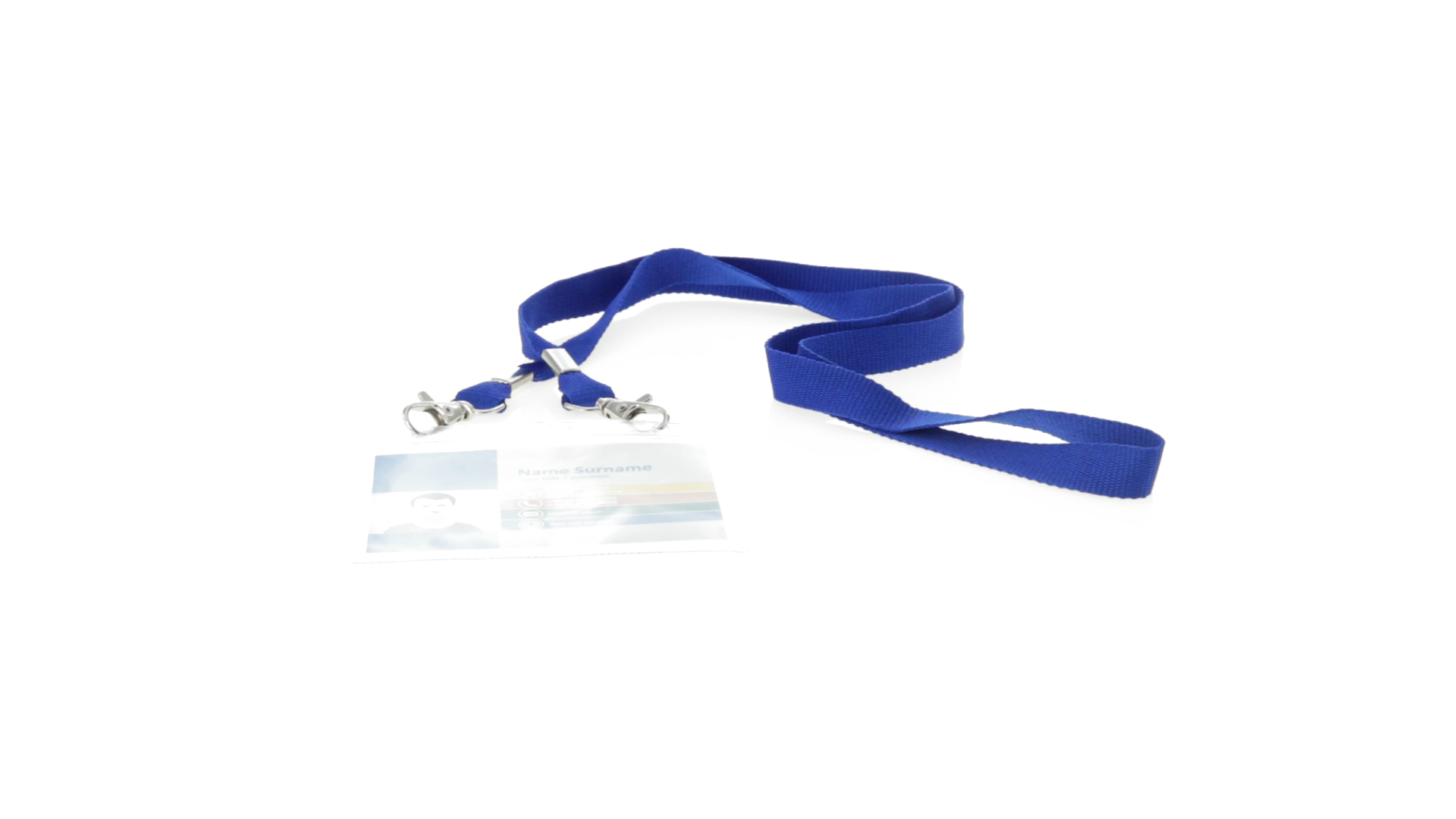 Gestanzter Ausweishalter aus PVC mit Lanyard in verschiedenen Farben und Metallkarabiner.