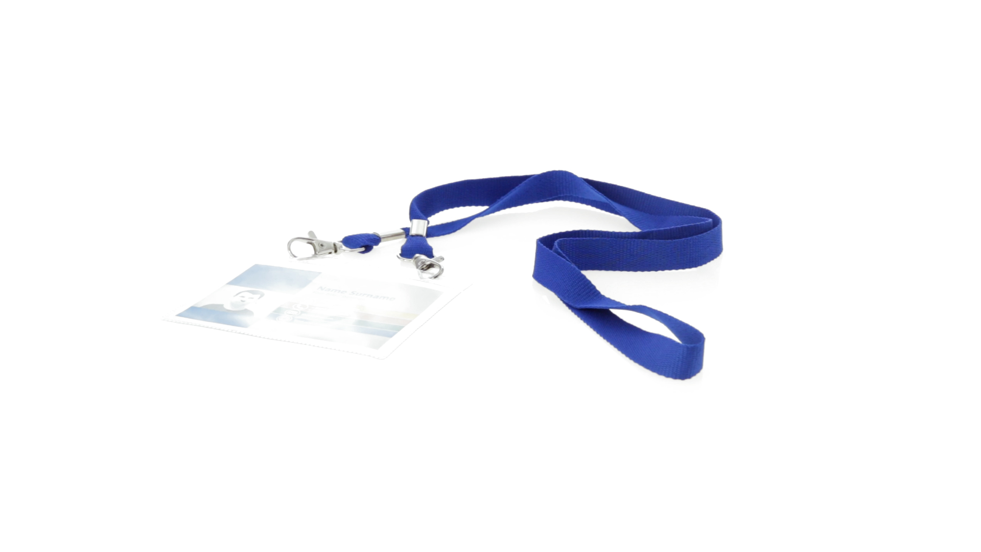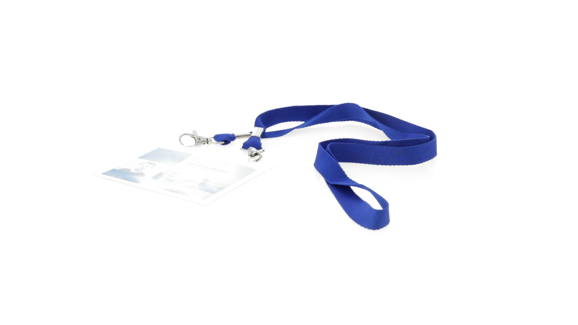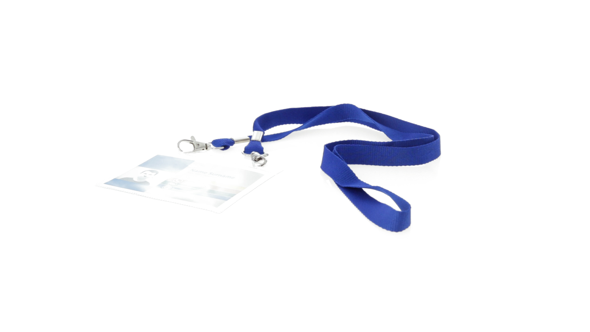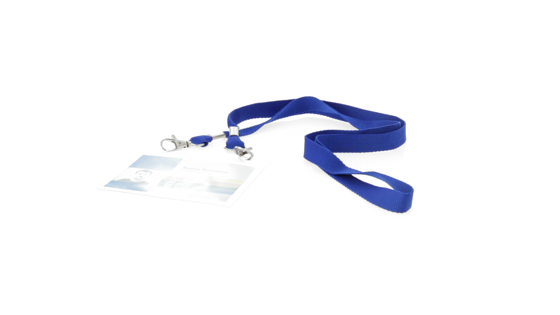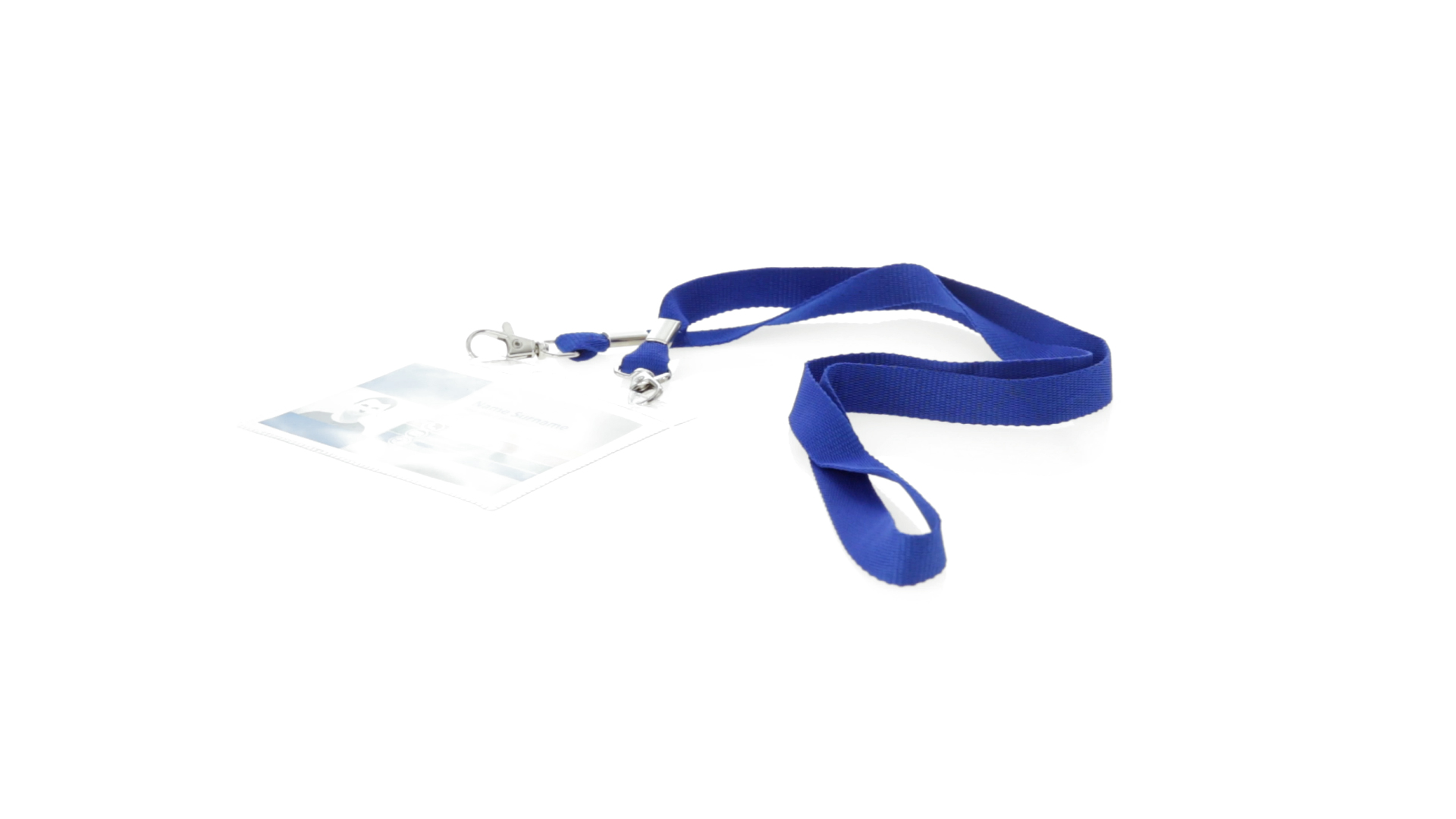 Gestanzter Ausweishalter aus PVC mit Lanyard in verschiedenen Farben und Metallkarabiner.
