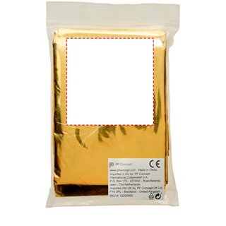 Notfalldecke, die vor Hitze, Kälte und Feuchtigkeit schützen kann. Sie ist perfekt für Campingreisen, Sportveranstaltungen und für Notfälle. Wenn die silberne Seite gegen den Körper anliegt, bietet sie Schutz vor Kälte. Die goldene Seite am Körper hält Sie kühl. Die Deckengrösse beträgt 160x210 cm. Die Decke ist reguliert, geprüft und als Medizinprodukt der Klasse I gemäss der Medizinprodukterichtlinie MDD 93/42/EWG vom 14. Juni 1993 zertifiziert.