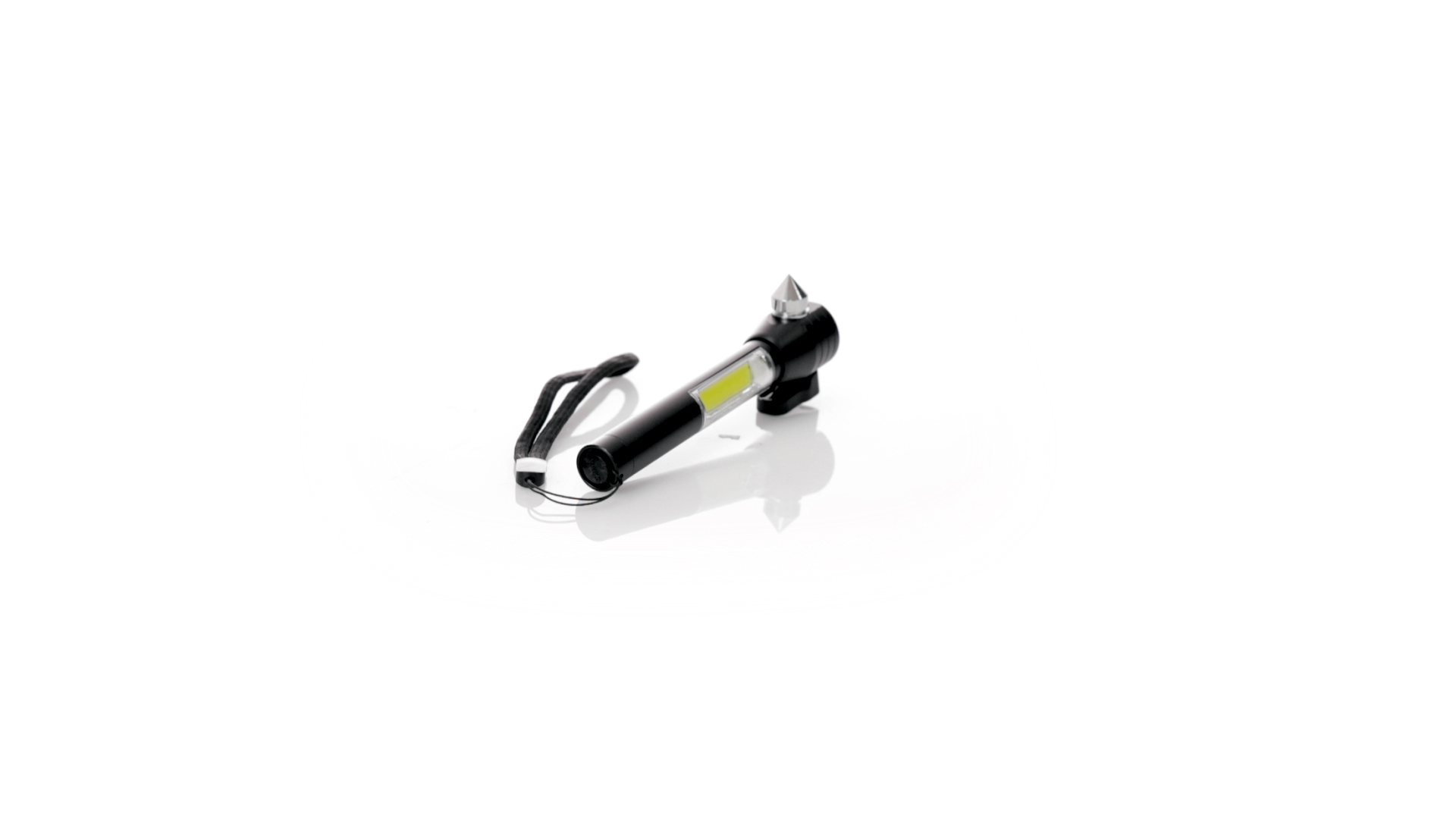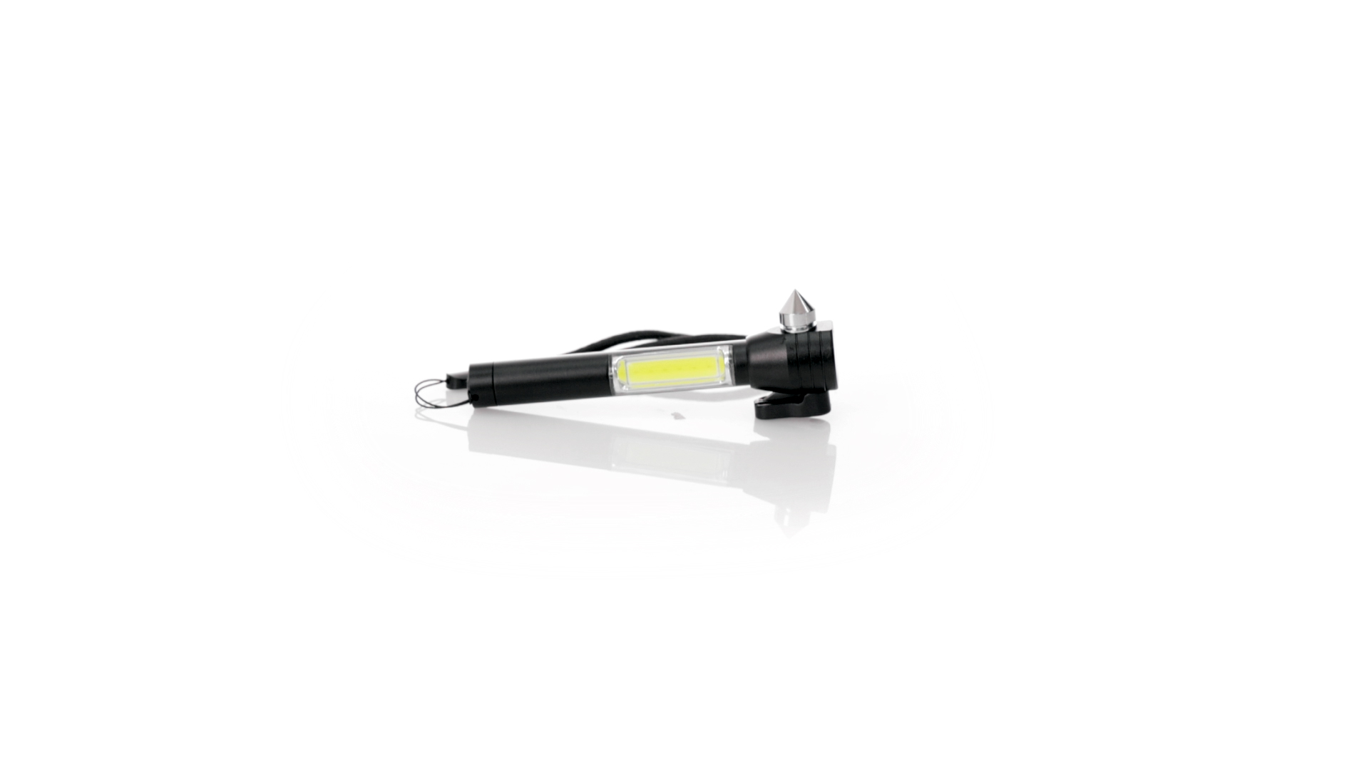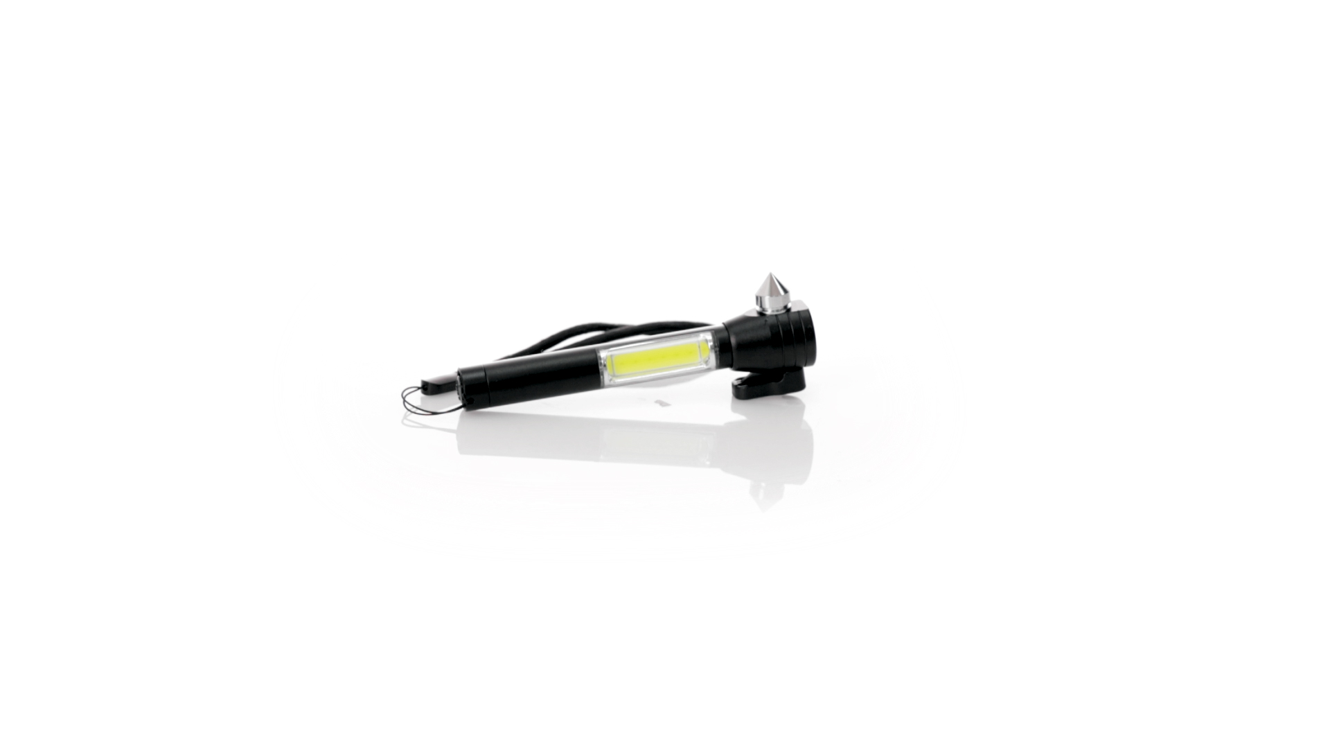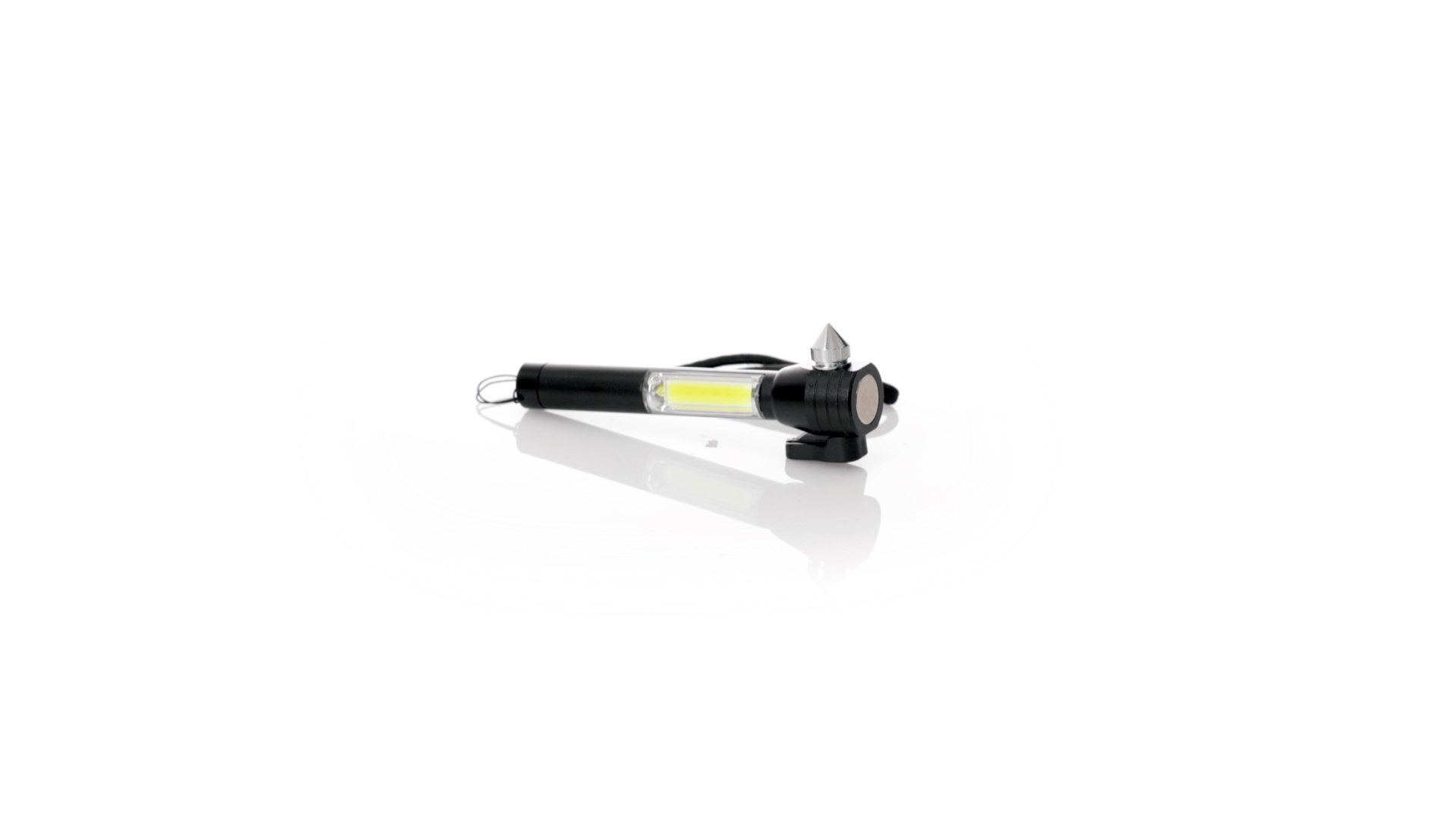 Vielseitiger Nothammer mit drei Funktionen: eine leistungsstarke Taschenlampe mit 6 COB-Leuchten, die mit Knopfbatterien (im Lieferumfang enthalten) betrieben werden, eine Metall-Glasbrecherspitze und eine Gurtschneideklinge. Mit einem Riemen für besseren Halt und einem magnetischen Bereich an der Oberseite. Präsentiert in einer individuellen Kraftbox.