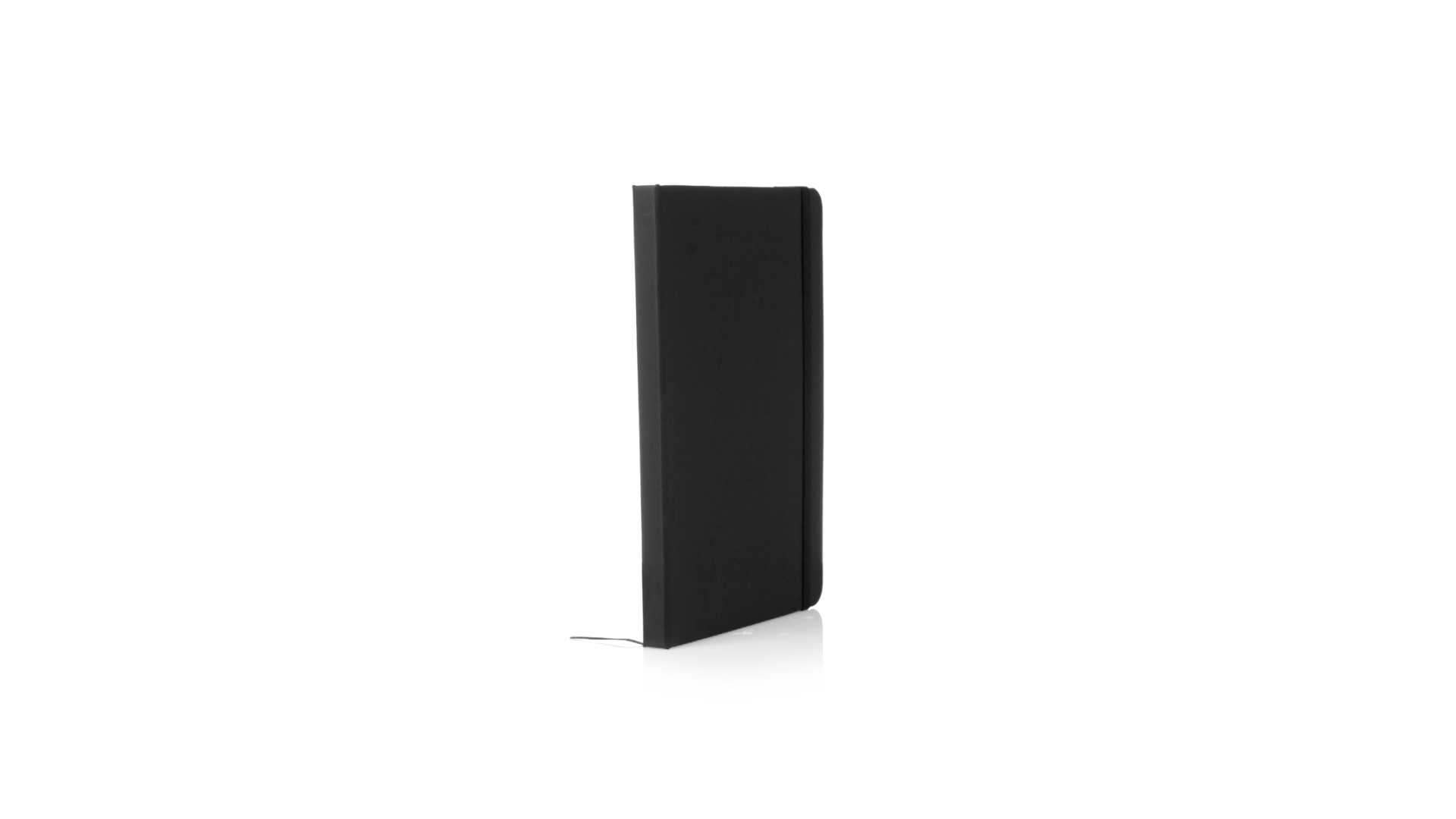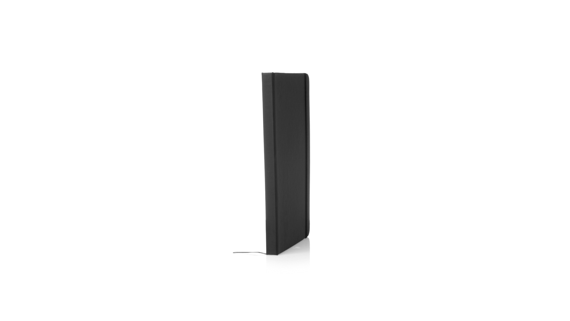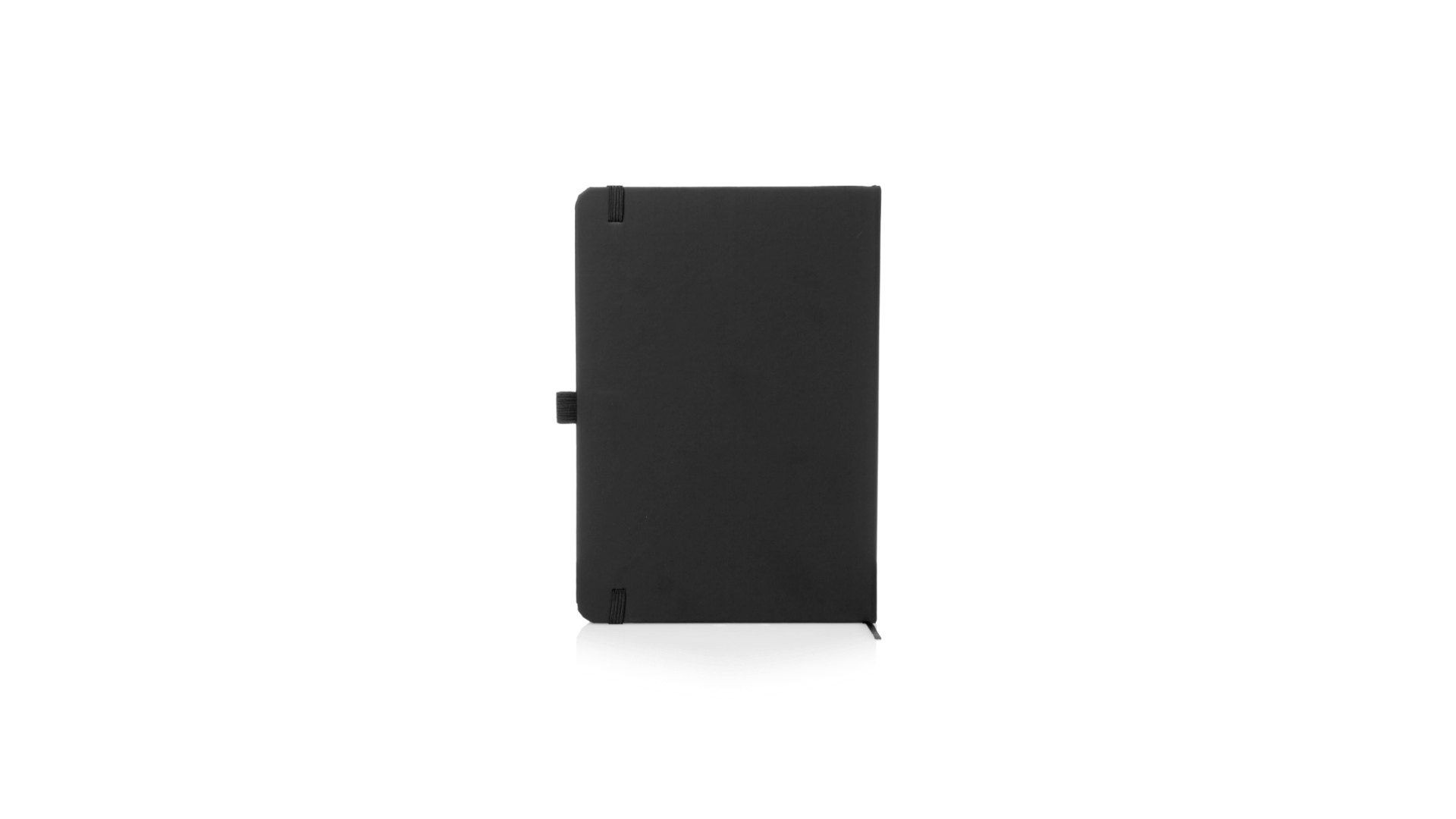 Notizblock aus PU-Leder mit eleganter schwarzer Oberfläche. Mit festem Einband, farblich passendem Lesezeichen und Gummiband. Innen mit 100 Blatt Einstreifen-Layout und Kugelschreiberhalter (Kugelschreiber nicht enthalten).
