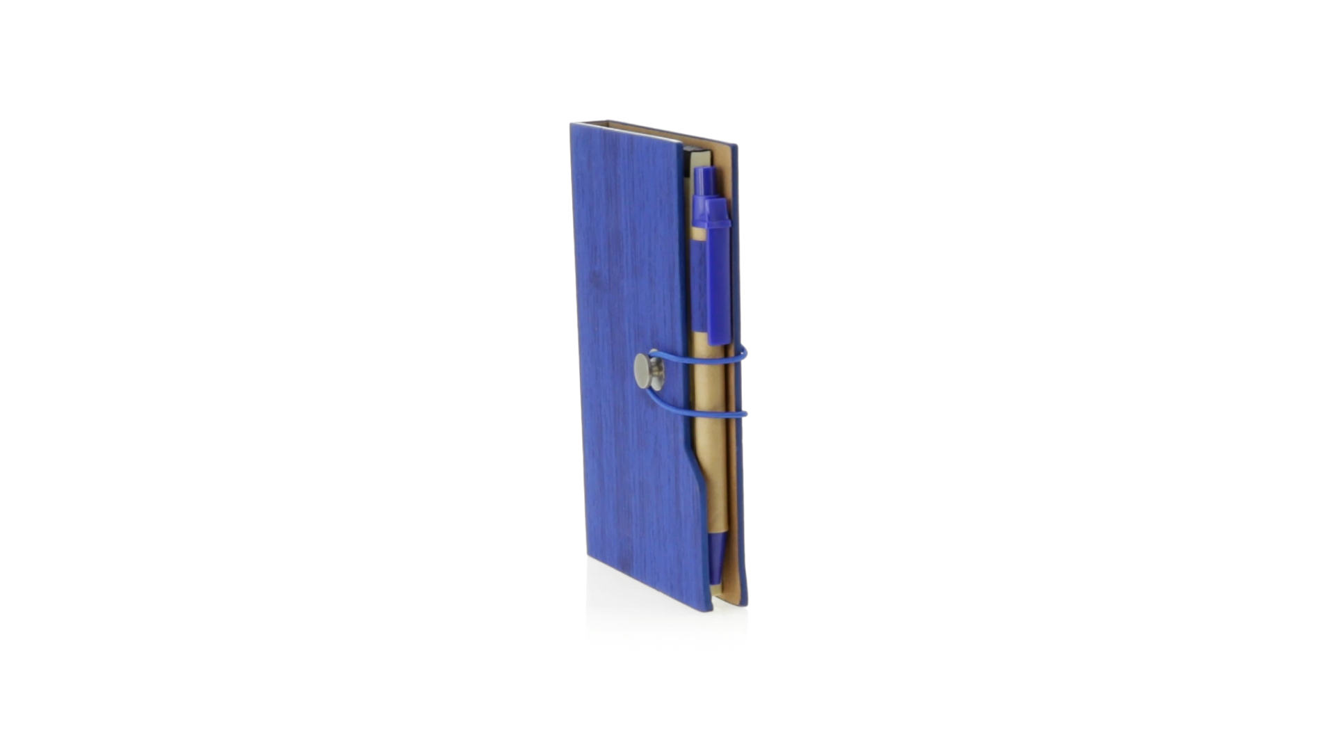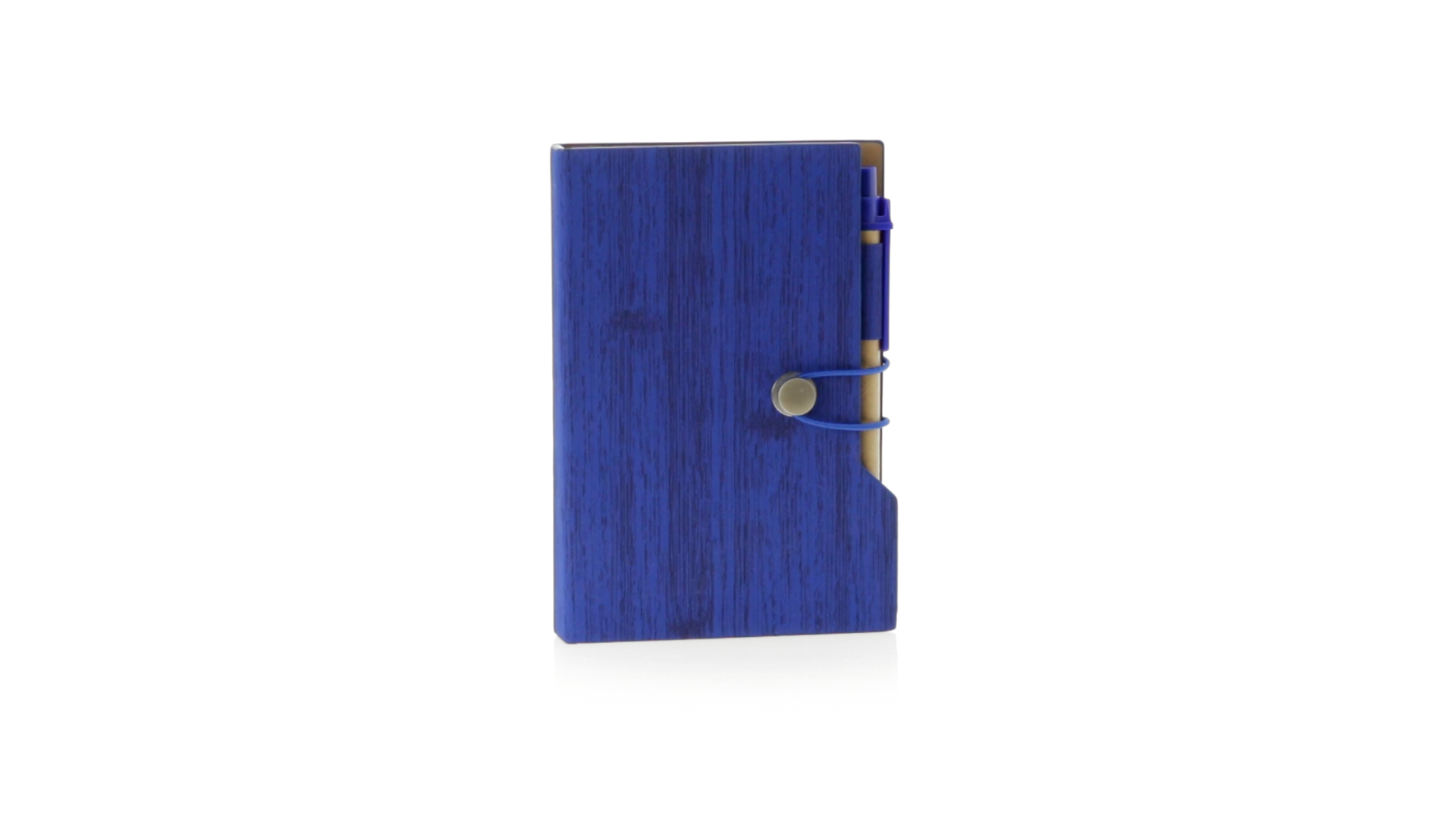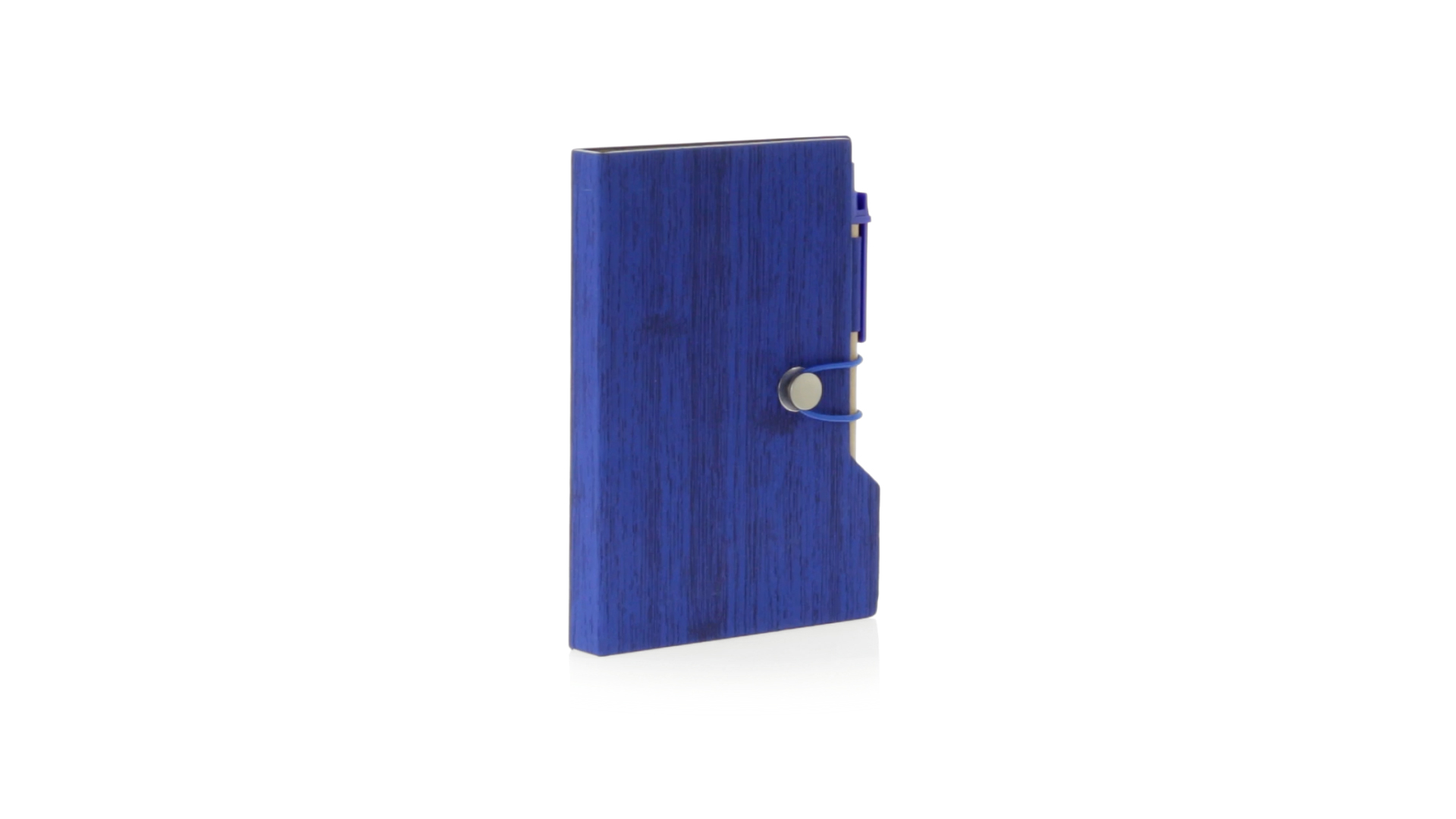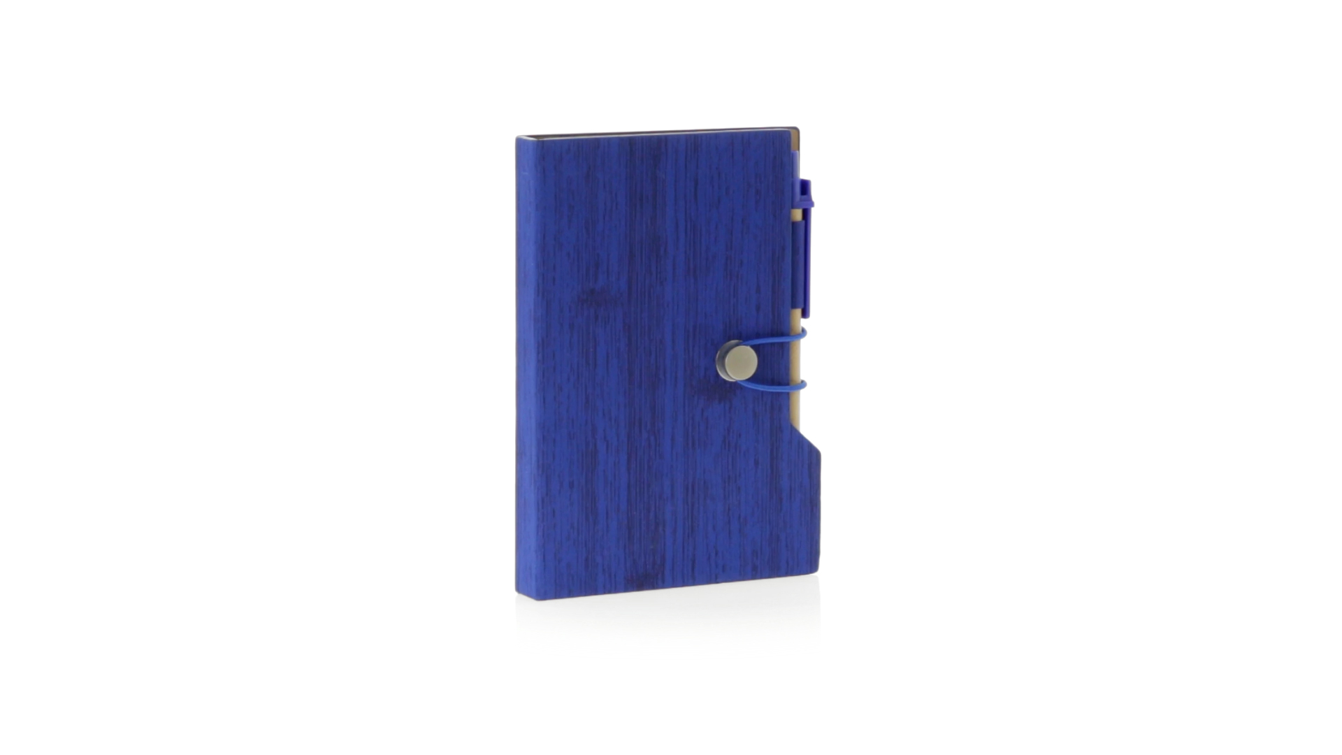 Notizblock mit originellem Kunstleder-Cover mit Holzmaserung in einer Vielzahl von Farben. Kugelschreiber aus recyceltem Karton inklusive. Ökologisches Design mit Soft-Touch-Cover und Gummibandverschluss. Mit integriertem Stifthalter, Block mit 70 linierten Blättern sowie 25 mittelgrossen und 125 Mini-Haftnotizen.