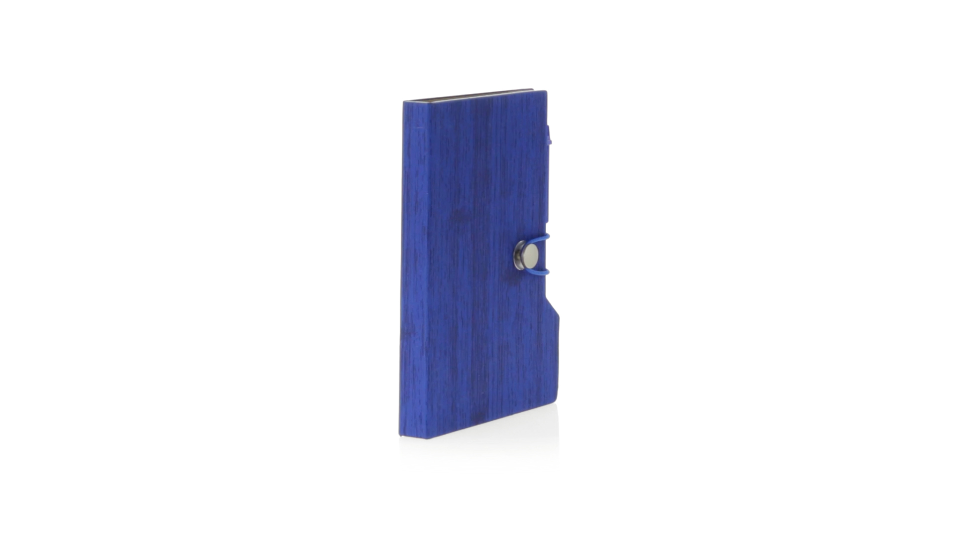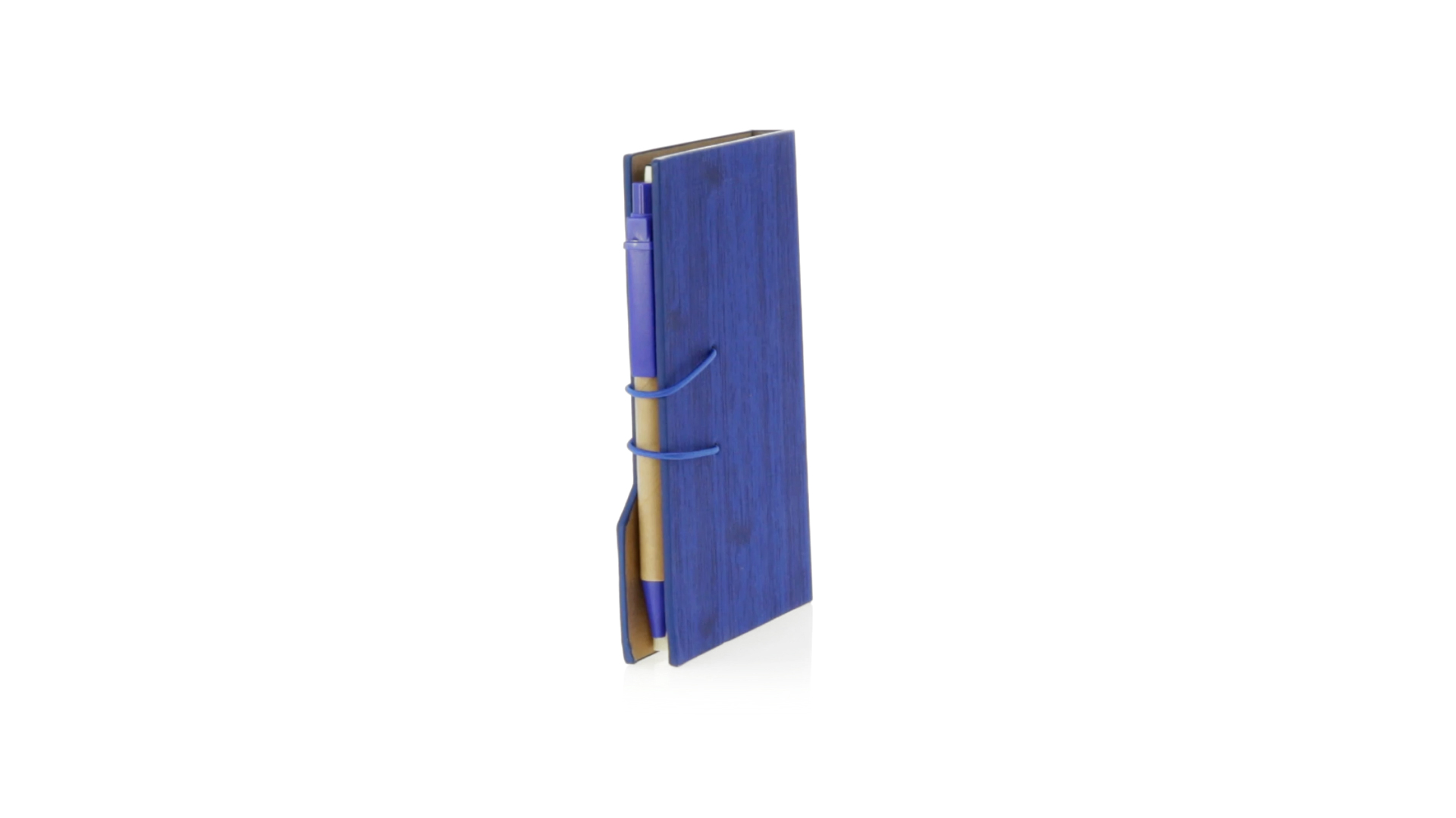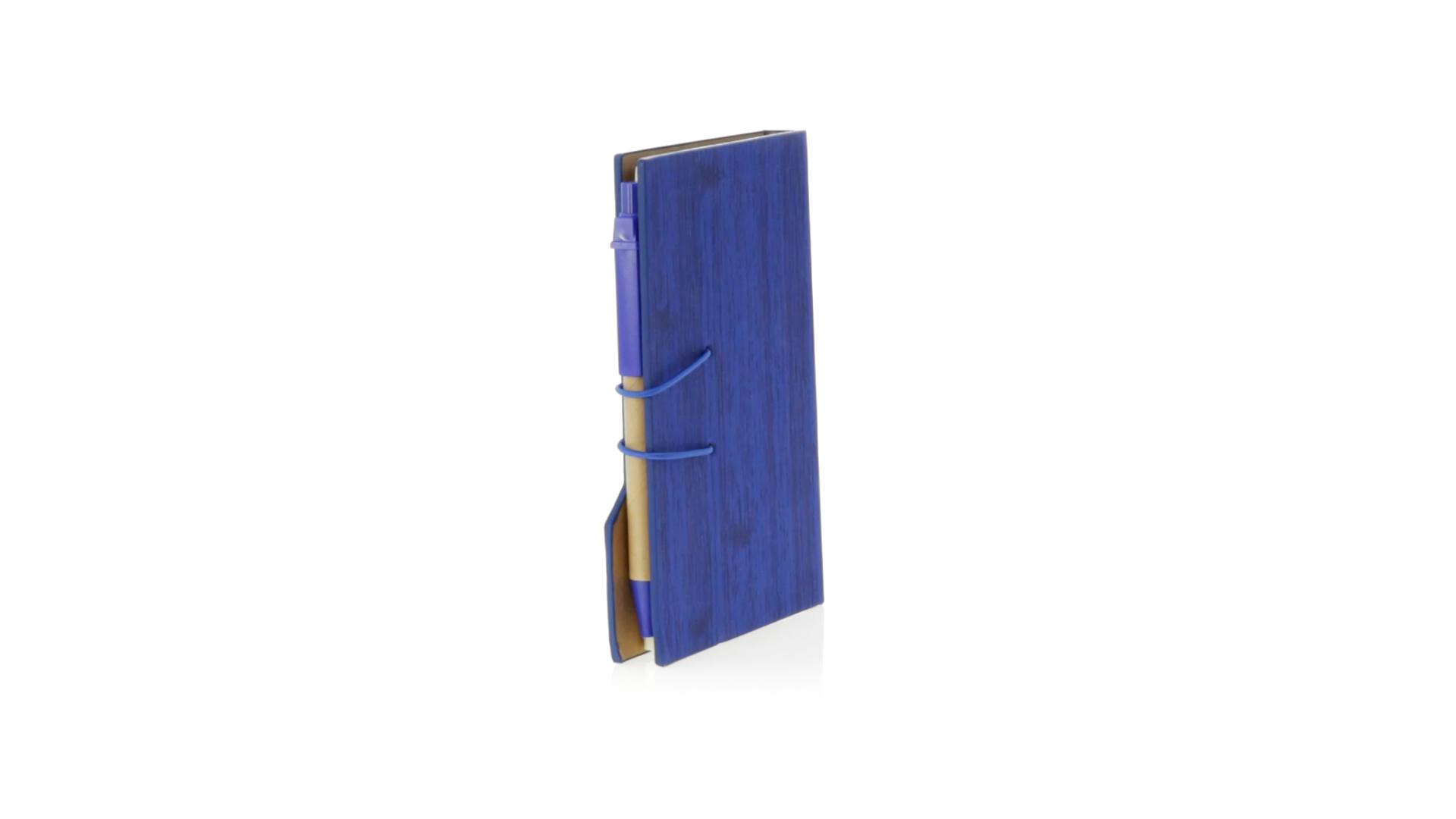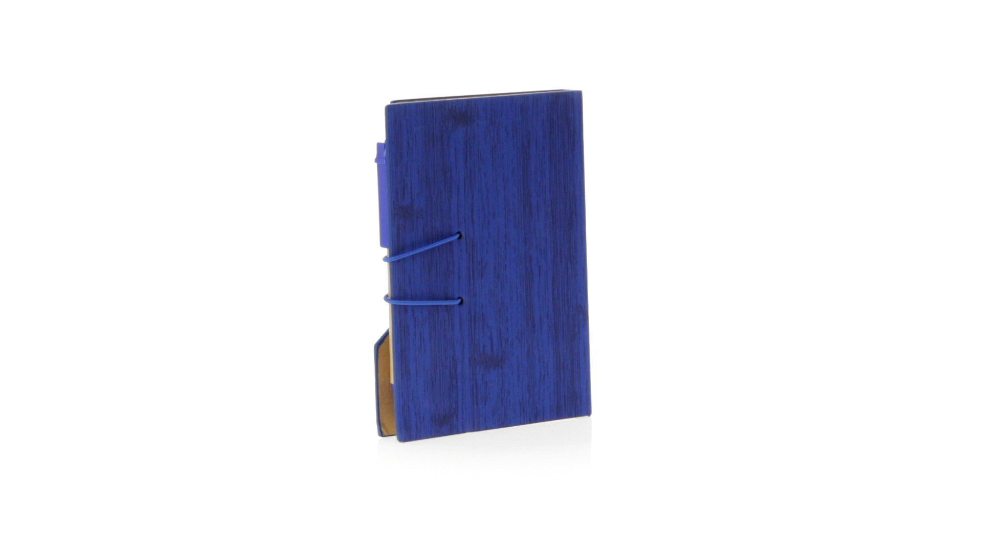Notizblock mit originellem Kunstleder-Cover mit Holzmaserung in einer Vielzahl von Farben. Kugelschreiber aus recyceltem Karton inklusive. Ökologisches Design mit Soft-Touch-Cover und Gummibandverschluss. Mit integriertem Stifthalter, Block mit 70 linierten Blättern sowie 25 mittelgrossen und 125 Mini-Haftnotizen.