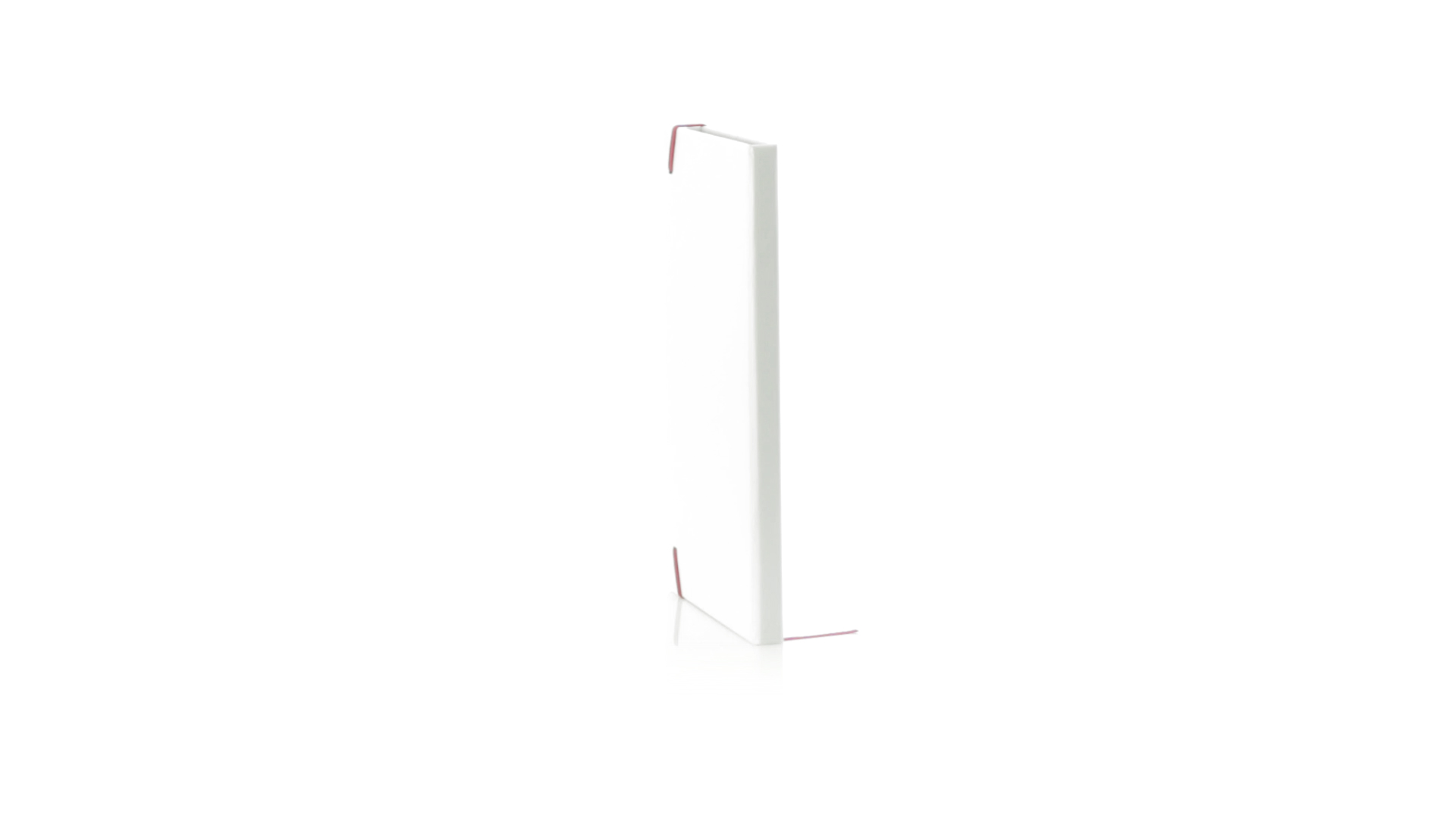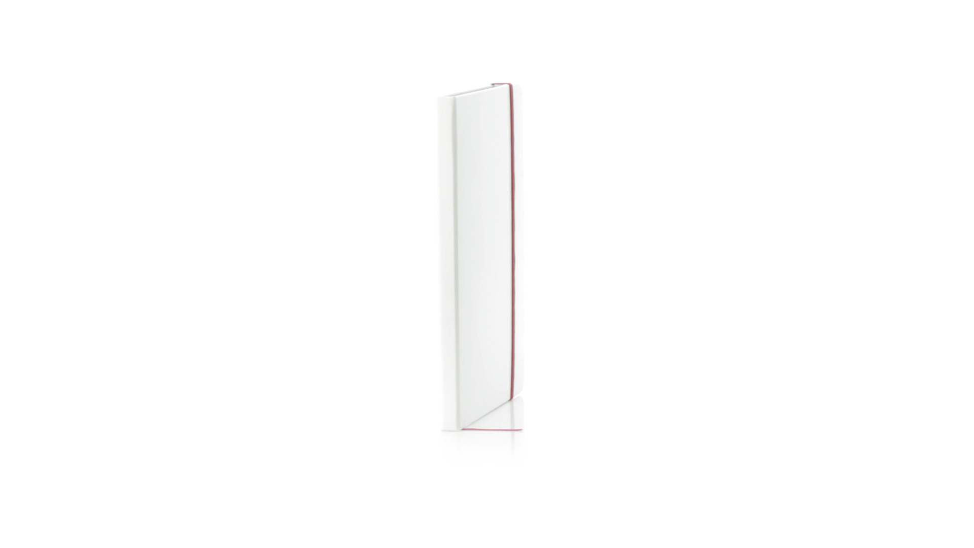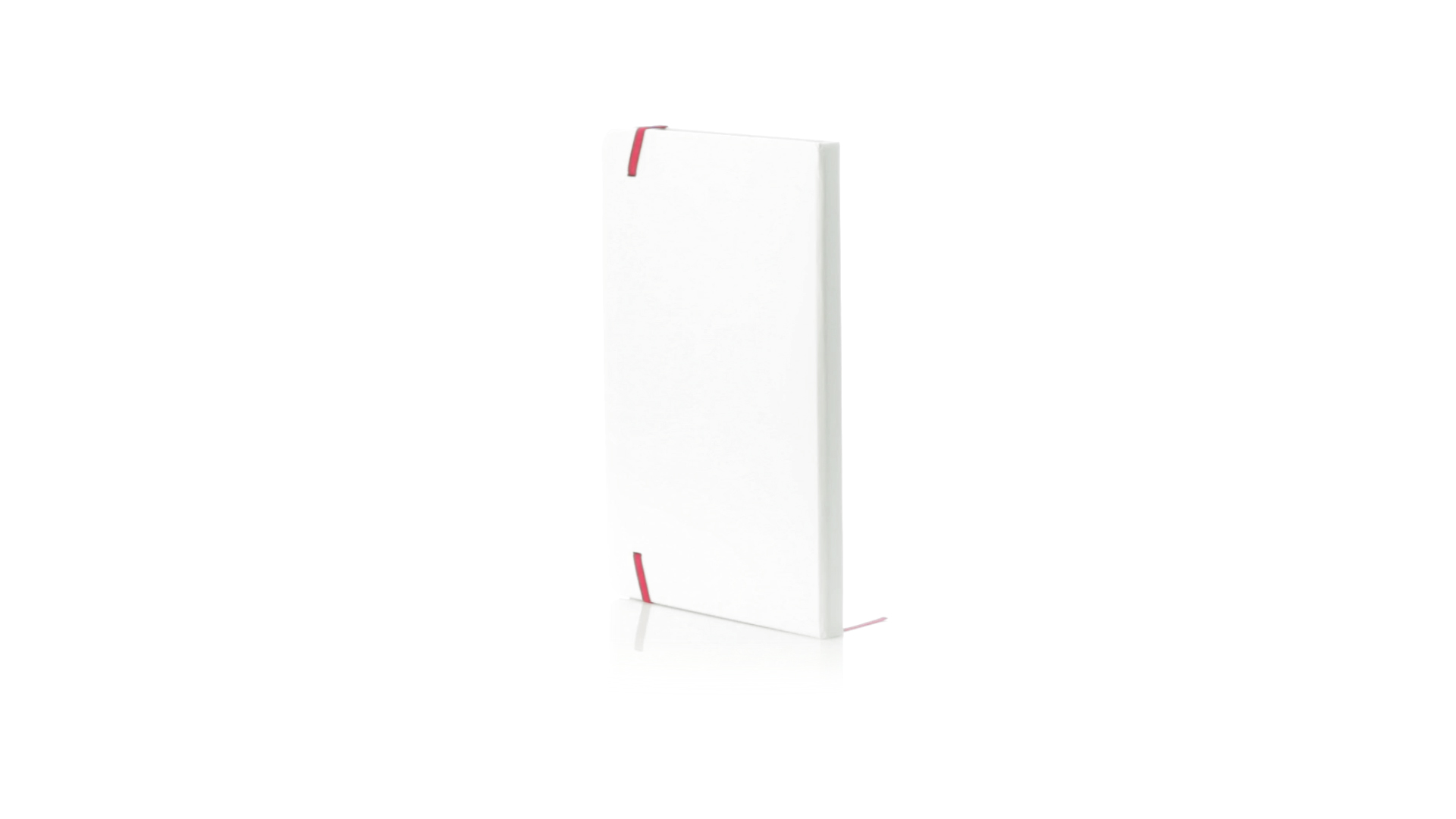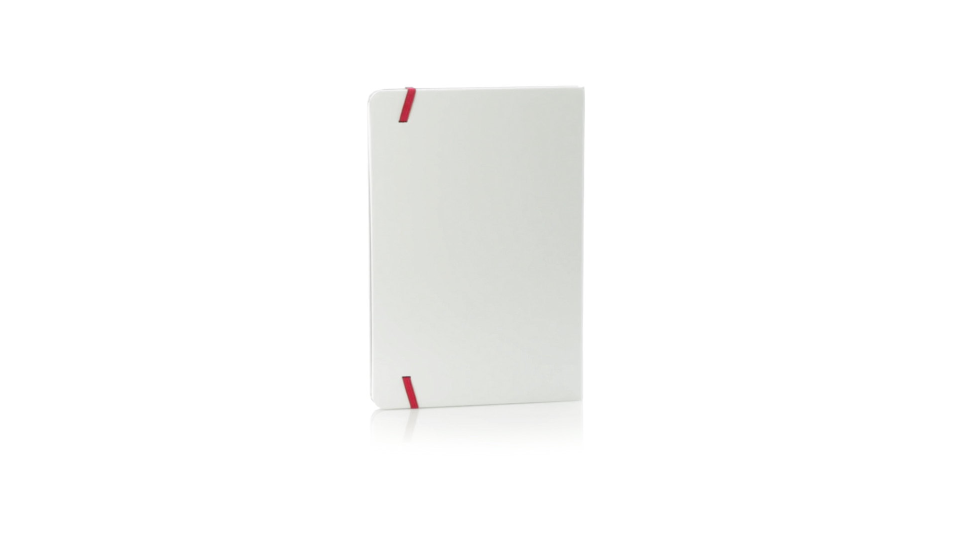 Notizblock mit solidem Soft-Touch-Cover in Weiss. Mit 100 Blättern mit farbigen Kanten, Gummibandverschluss und farblich passendem Lesezeichenband.