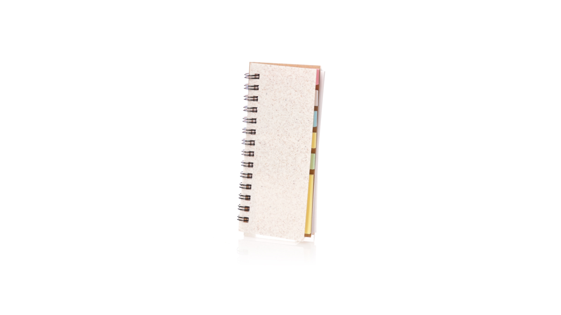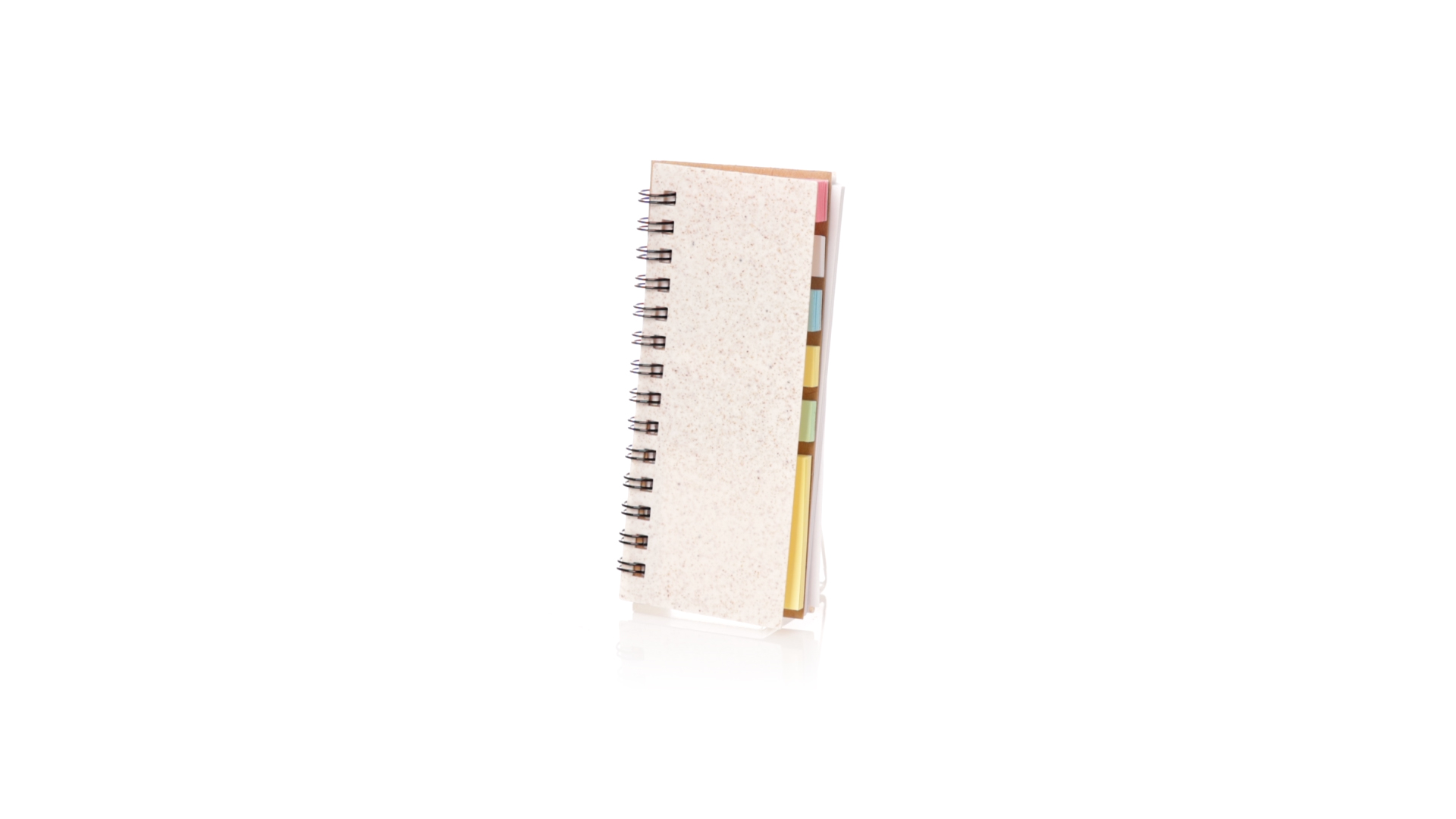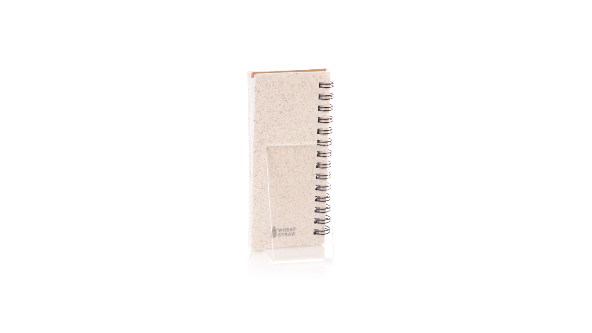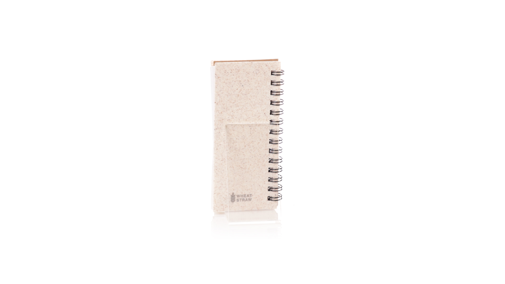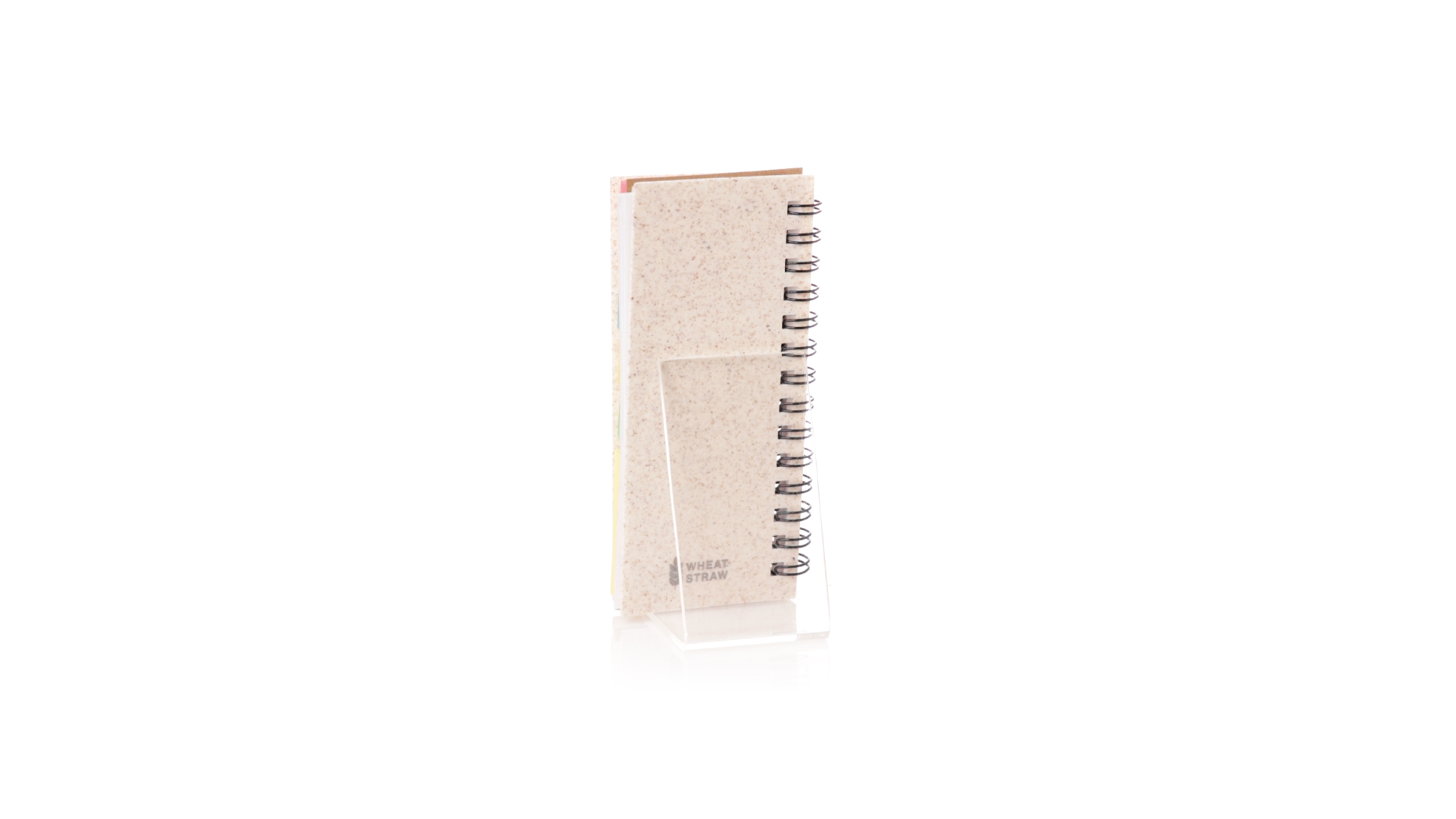 Notizbuch mit Weizenstroheinband. Mit Weizenstrohabzeichen auf dem hinteren Umschlag. Enthält:Weisser Ringordner mit 30 Blättern, einstreifigem Layout und Recycling-Aufkleber auf beiden Seiten.25 mittlere Haftnotizen.125 Mini-Haftnotizen in verschiedenen Farben. Hergestellt aus pflanzlichen Bestandteilen, um die Verwendung natürlicher Rohstoffe zu fördern und Schadstoffemissionen zu reduzieren.Präsentiert in einer individuellen, recycelten Tasche.