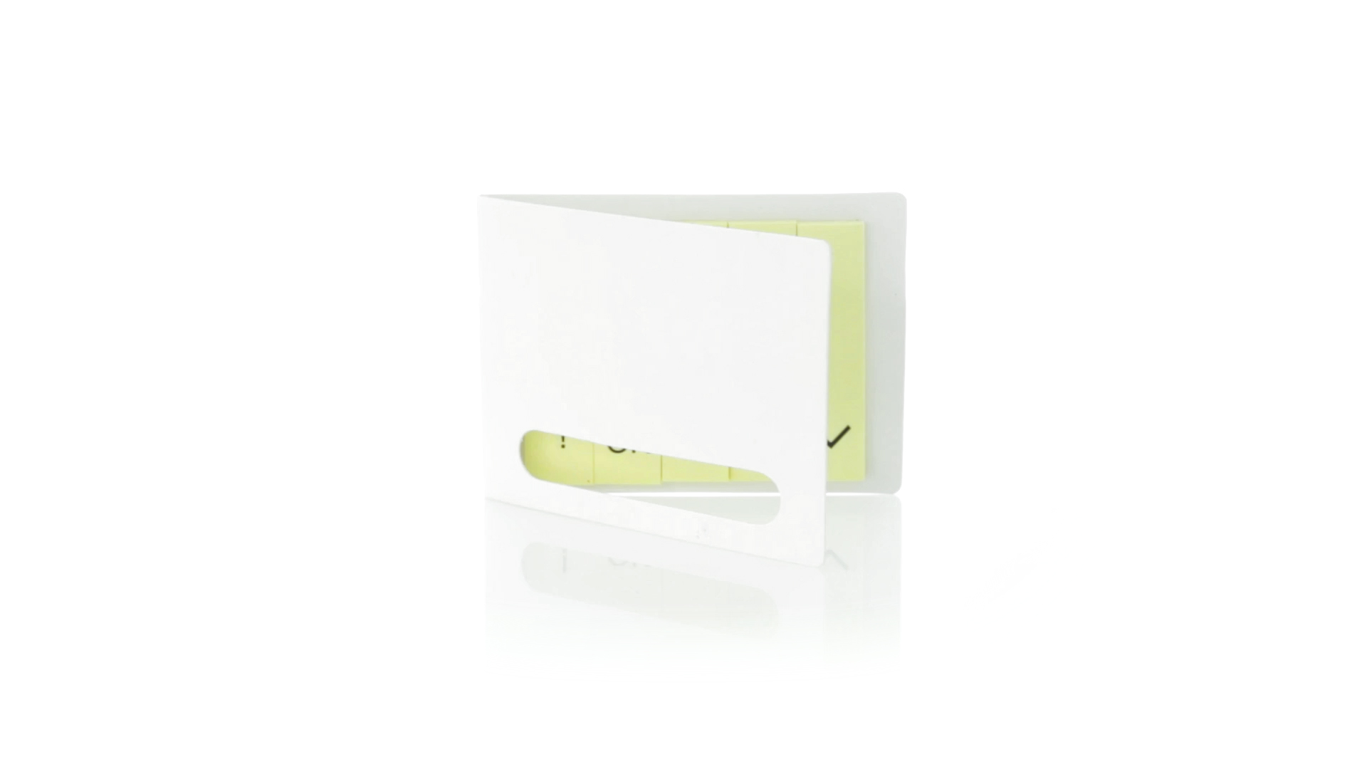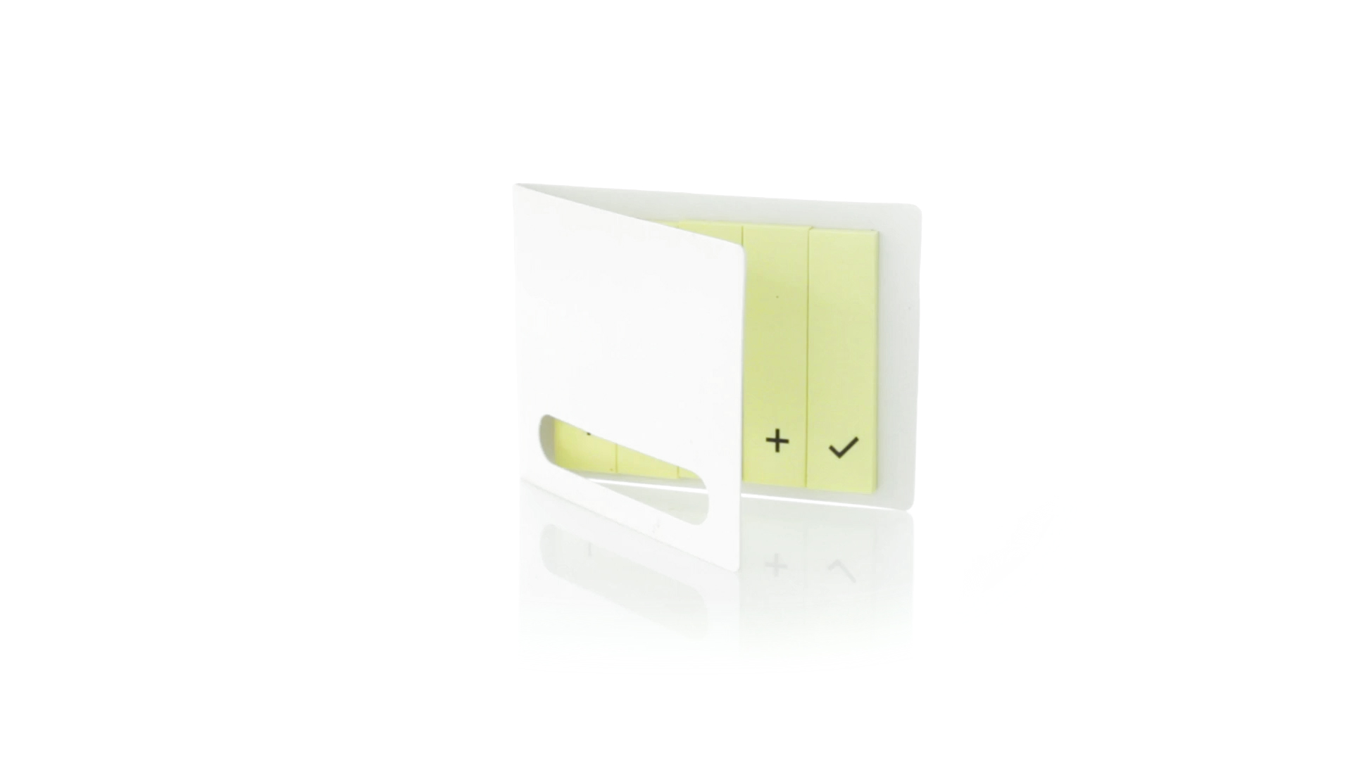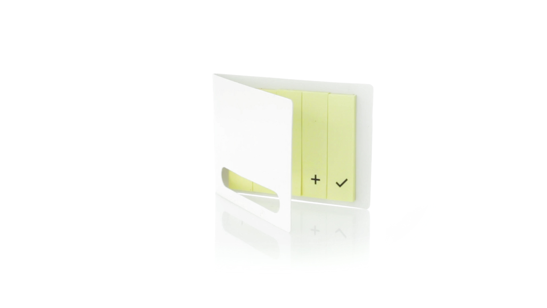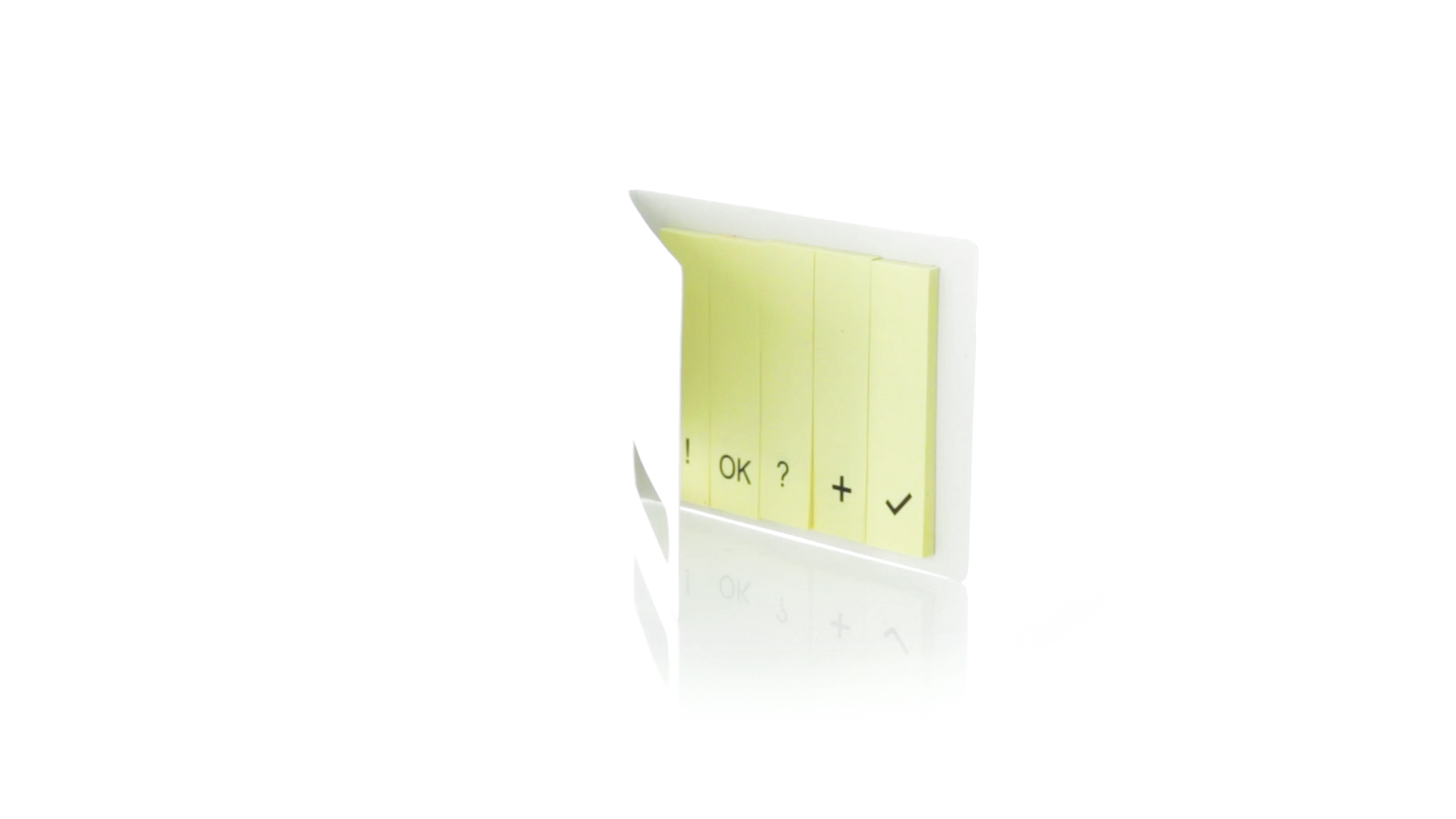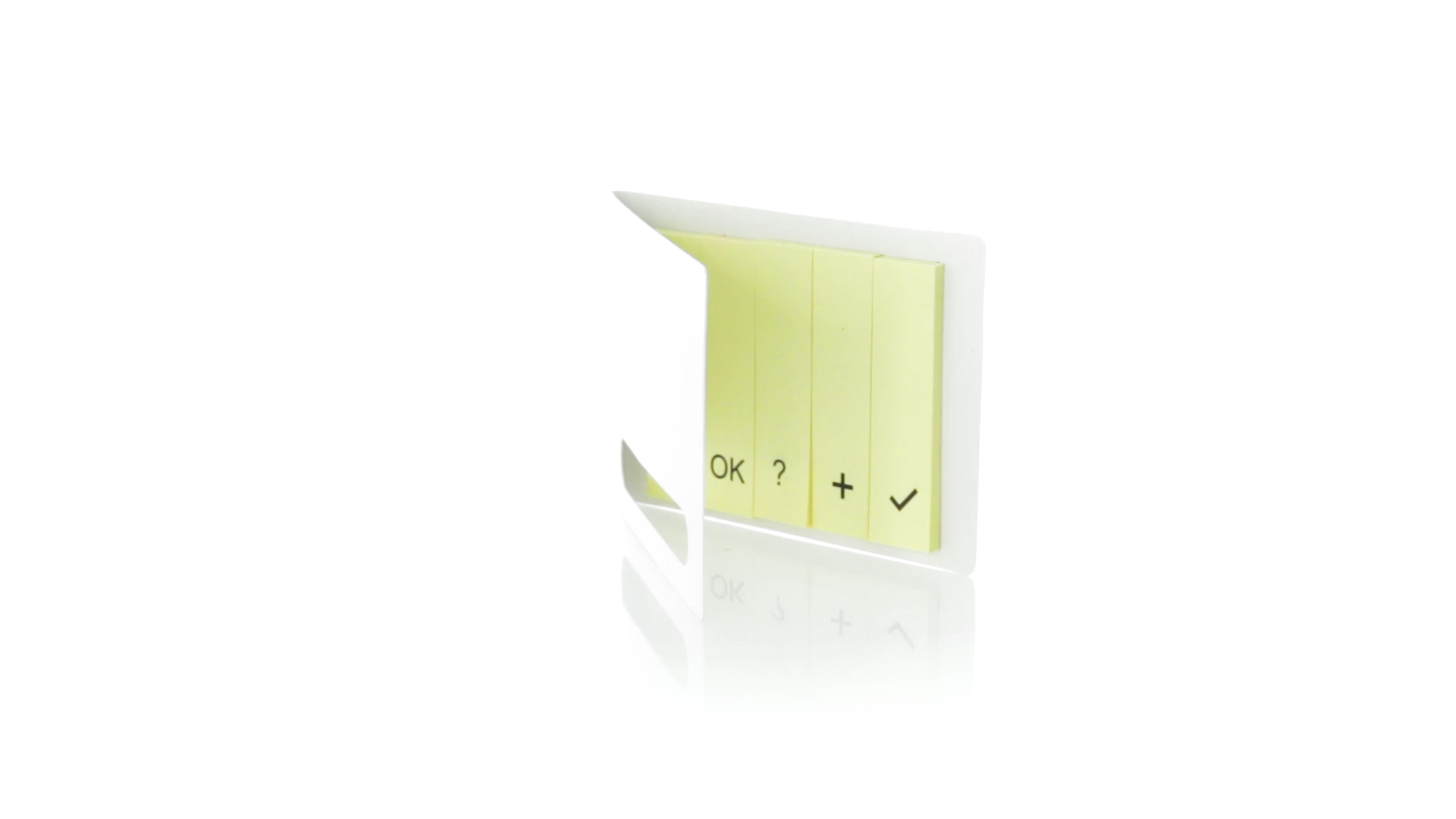Haftnotizblock mit Soft-Touch-Cover aus elegantem weissem Karton mit Stanzung. Mit 125 Mini-Haftnotizen mit verschiedenen Symbolen - je nach Verwendung.