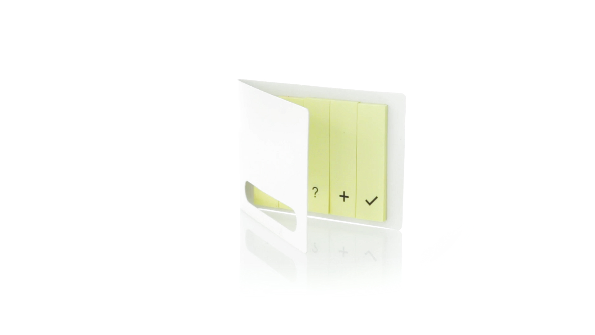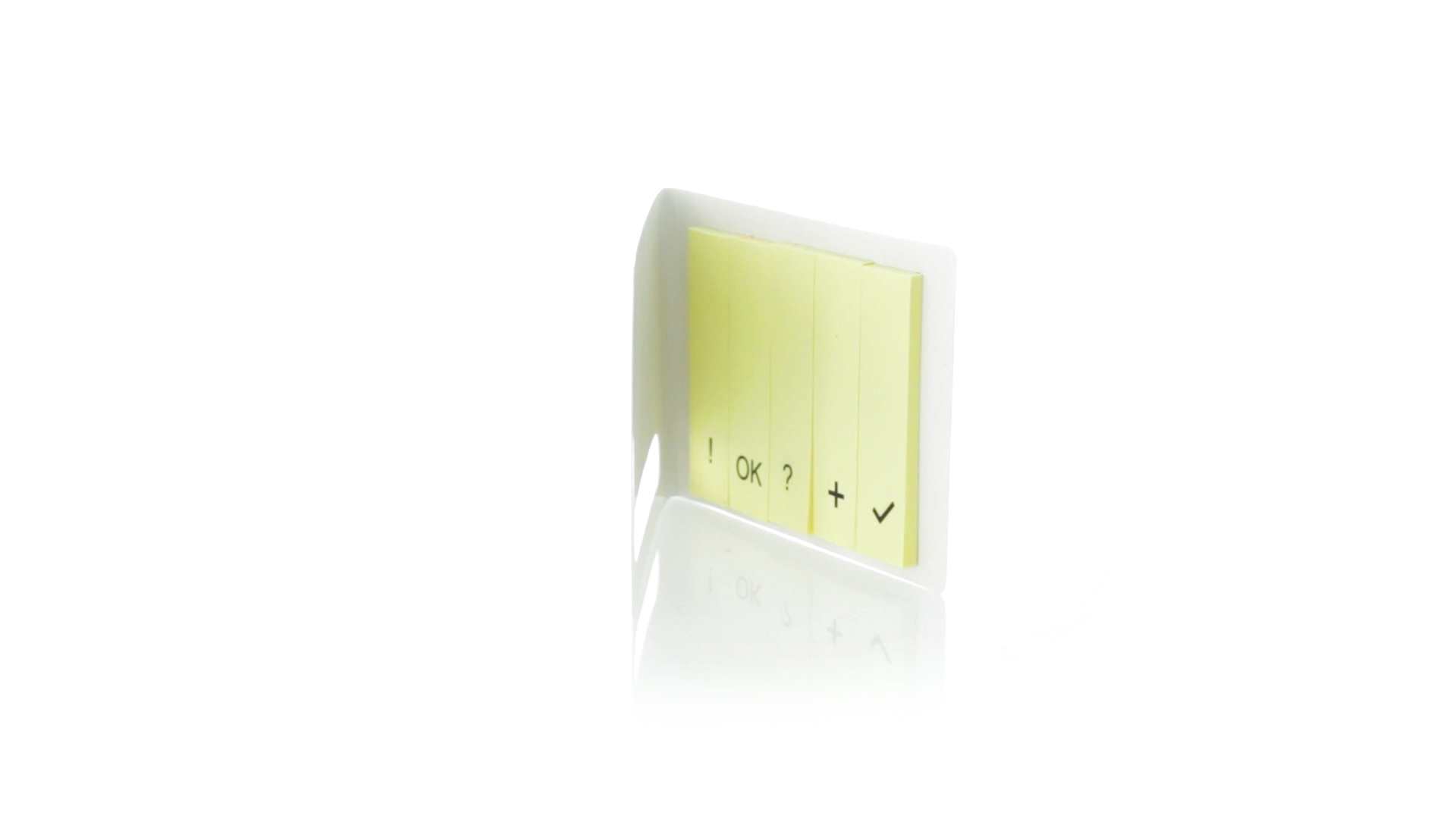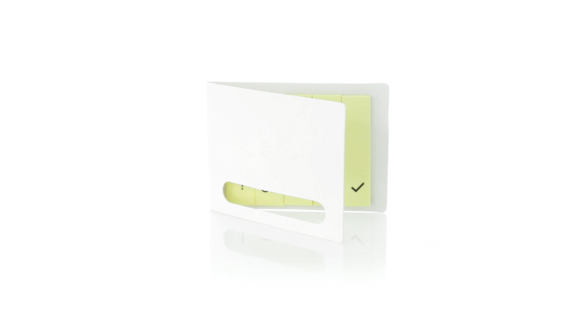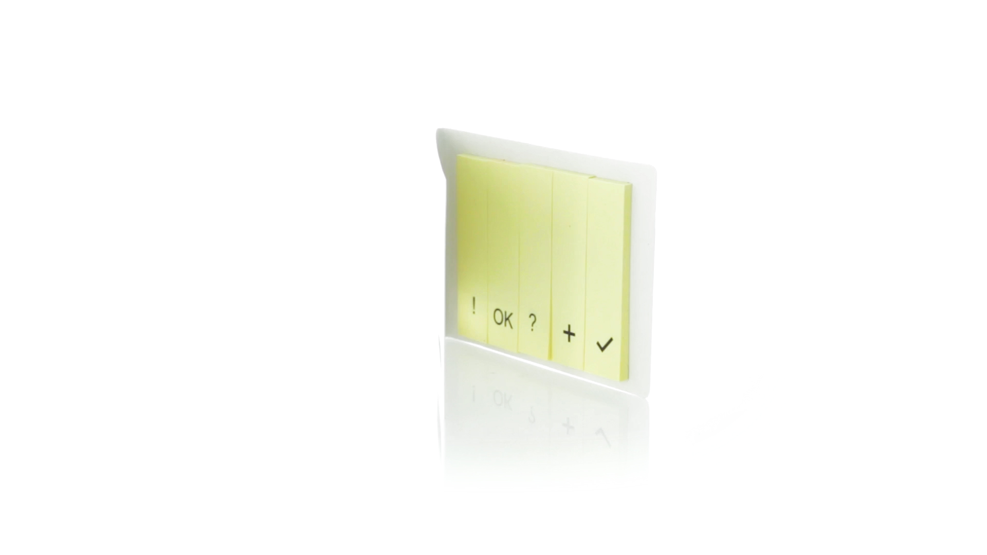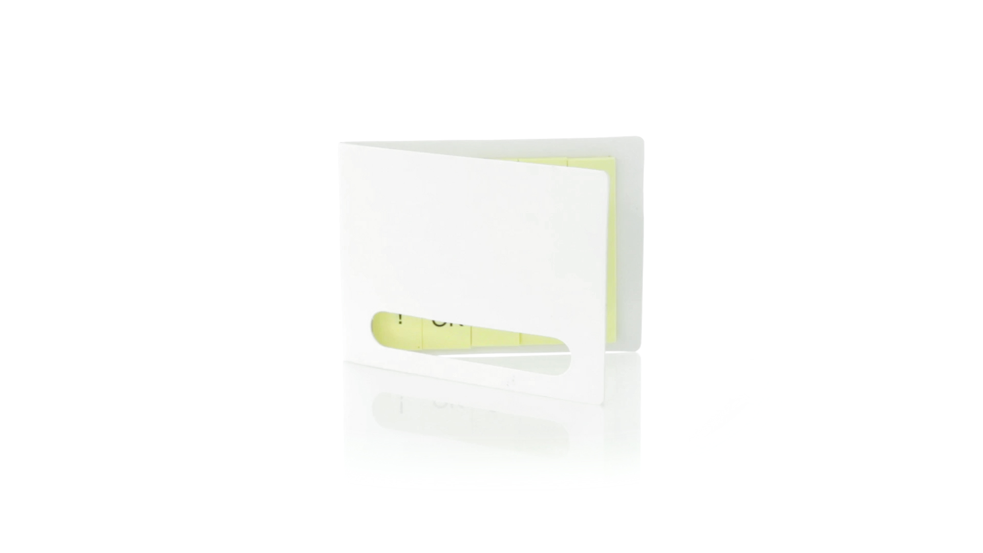 Haftnotizblock mit Soft-Touch-Cover aus elegantem weissem Karton mit Stanzung. Mit 125 Mini-Haftnotizen mit verschiedenen Symbolen - je nach Verwendung.