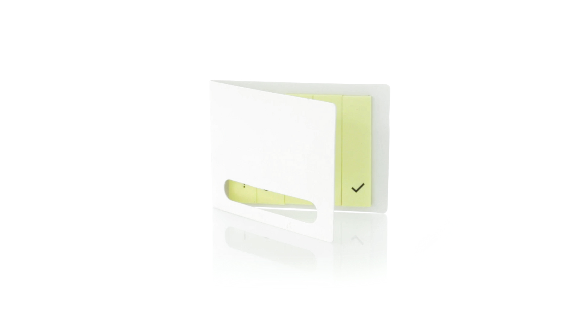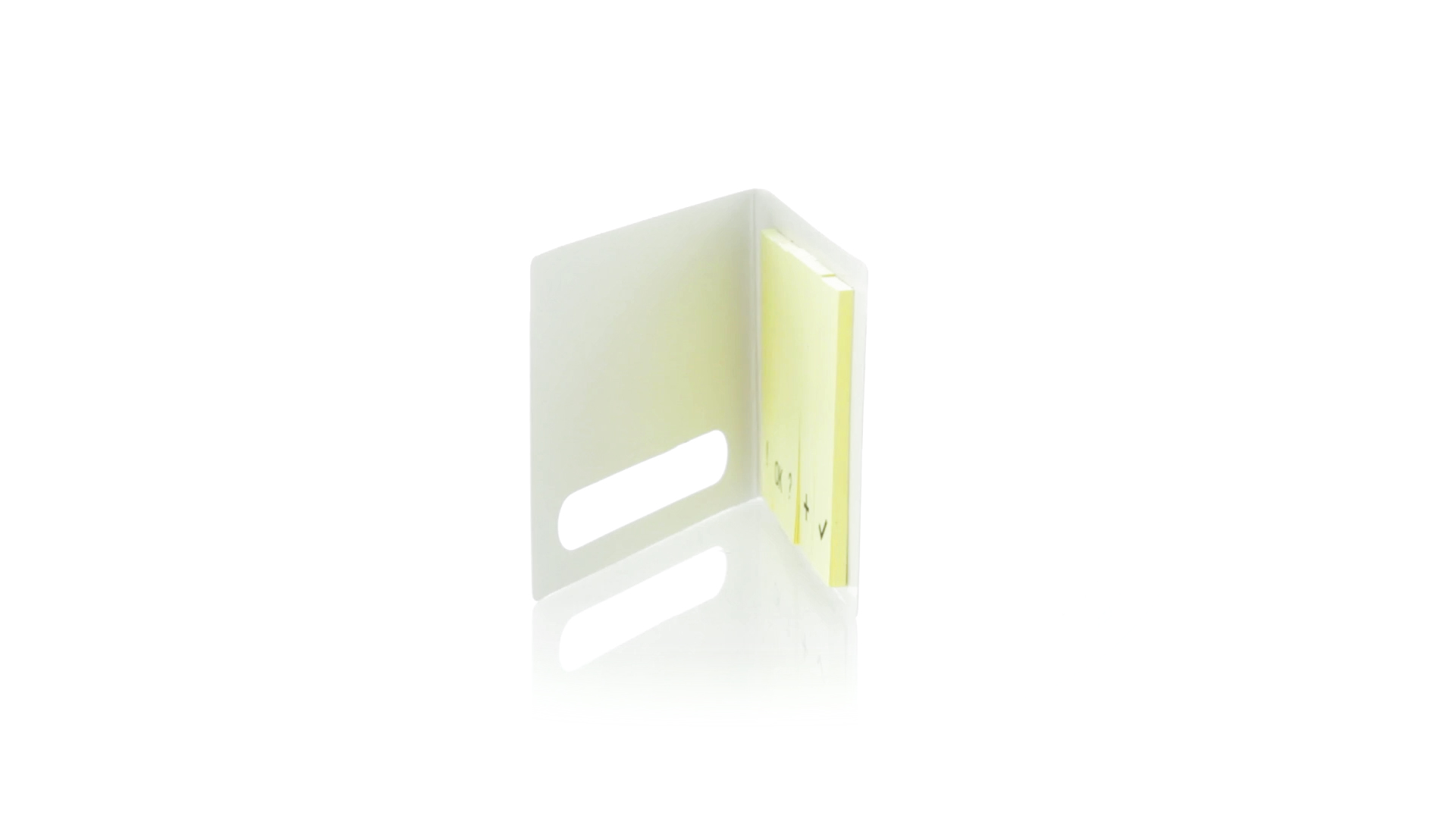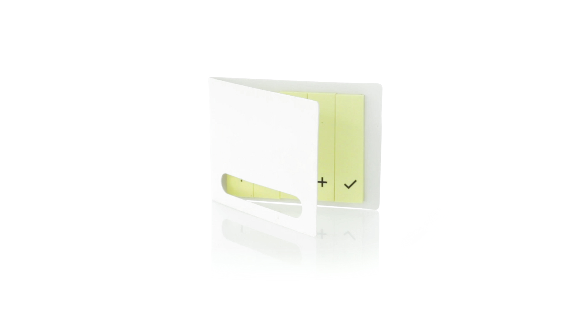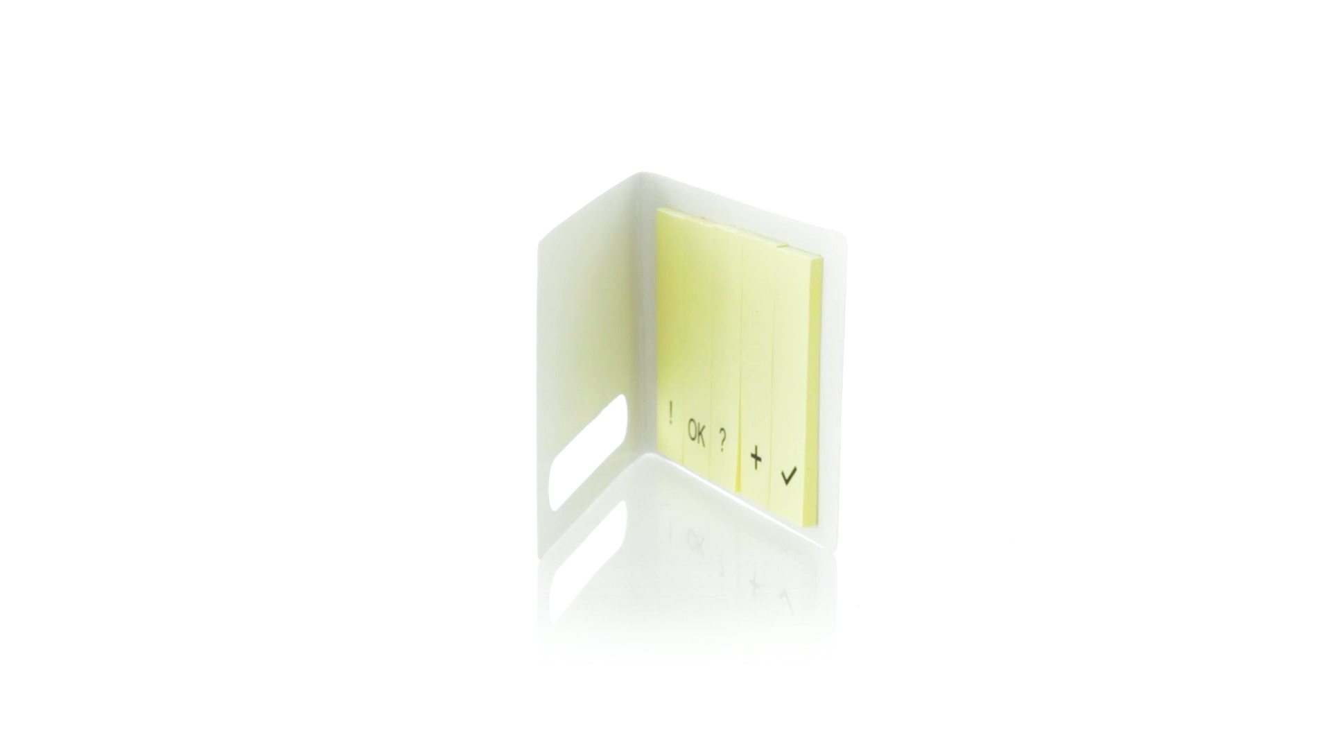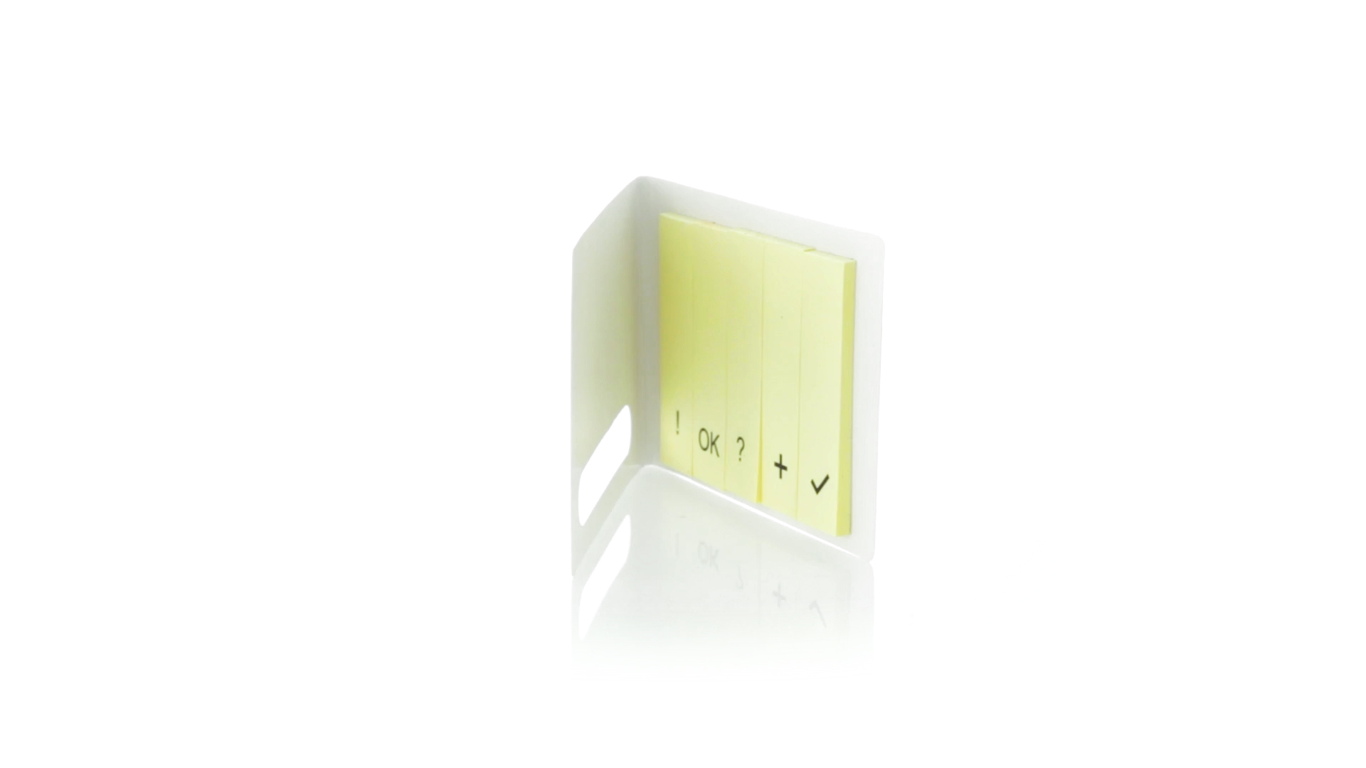 Haftnotizblock mit Soft-Touch-Cover aus elegantem weissem Karton mit Stanzung. Mit 125 Mini-Haftnotizen mit verschiedenen Symbolen - je nach Verwendung.