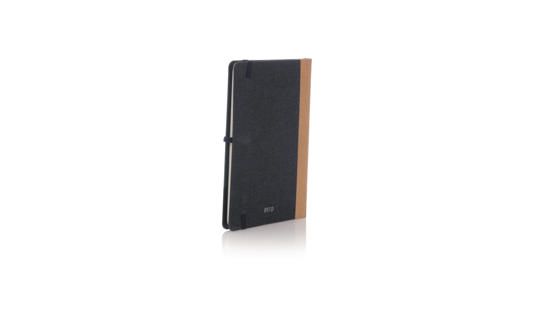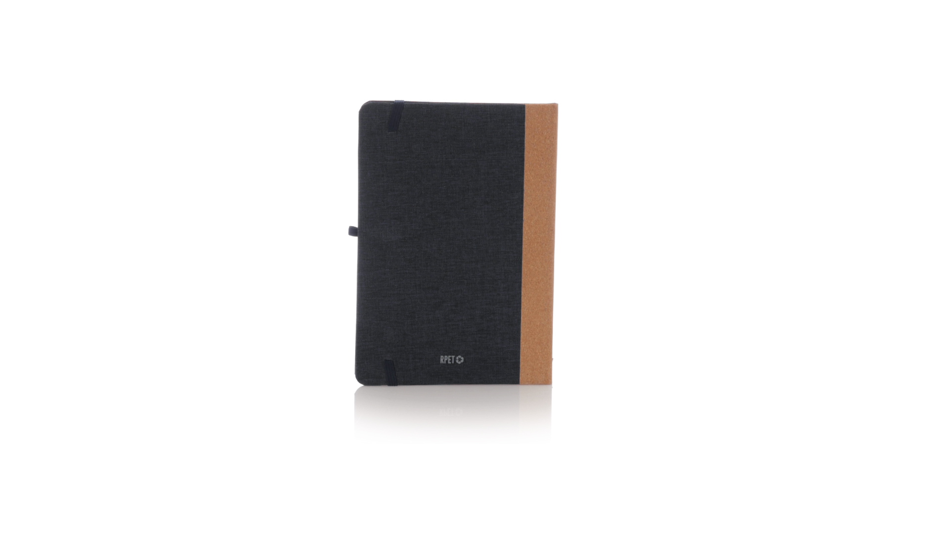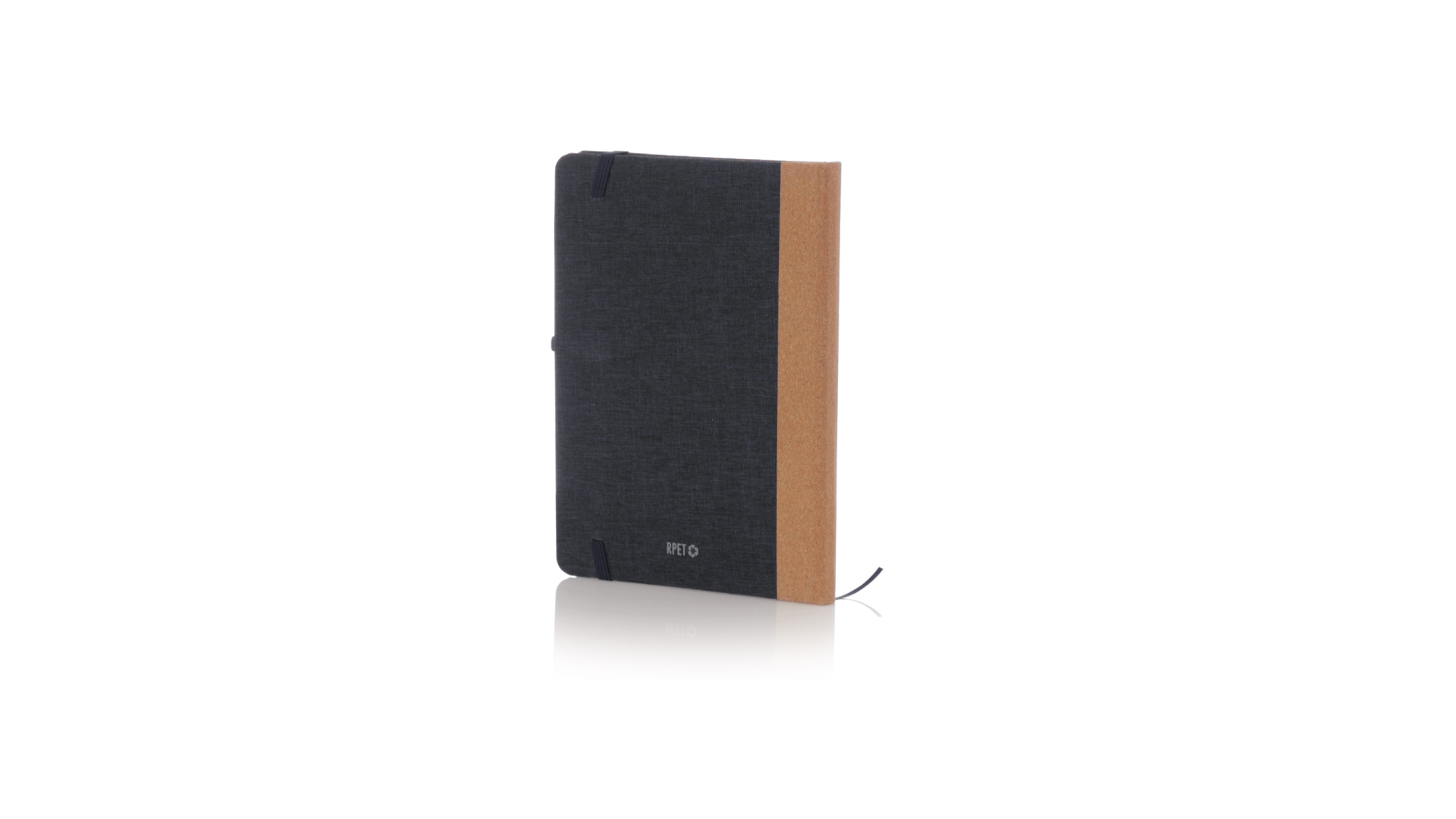 Notizblock mit festem Einband aus RPET und Korkrücken. Mit 80 unbedruckten Innenseiten, Lesezeichen, elastischem Verschluss und passendem Kugelschreiberhalter. Mit RPET-Logo auf der hinteren Umschlagseite. Erhältlich in modischen Farben und präsentiert in einer individuellen Tasche aus Recyclingpapier.Das RPET-Material wird aus recyceltem Kunststoff hergestellt, wodurch die Wiederverwendung von Kunststoffabfällen gefördert und ein Beitrag zur Nachhaltigkeit unseres Planeten geleistet wird.