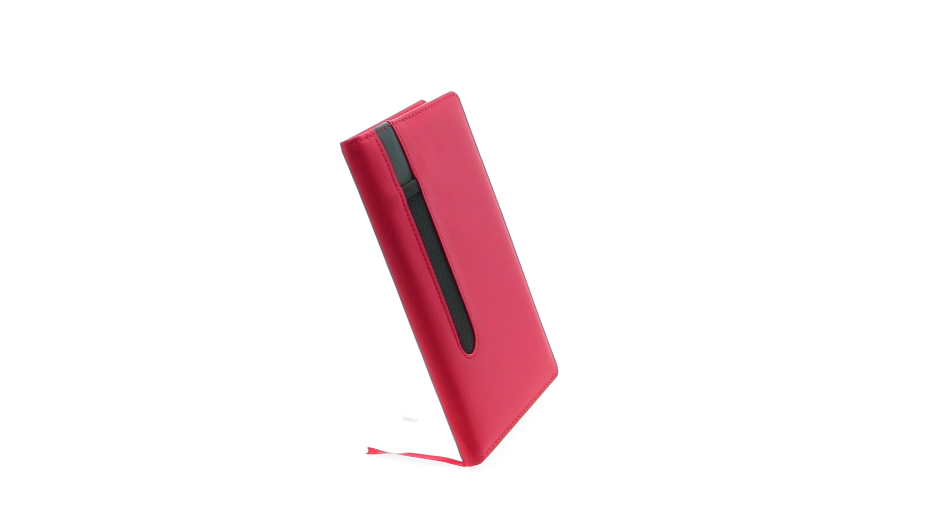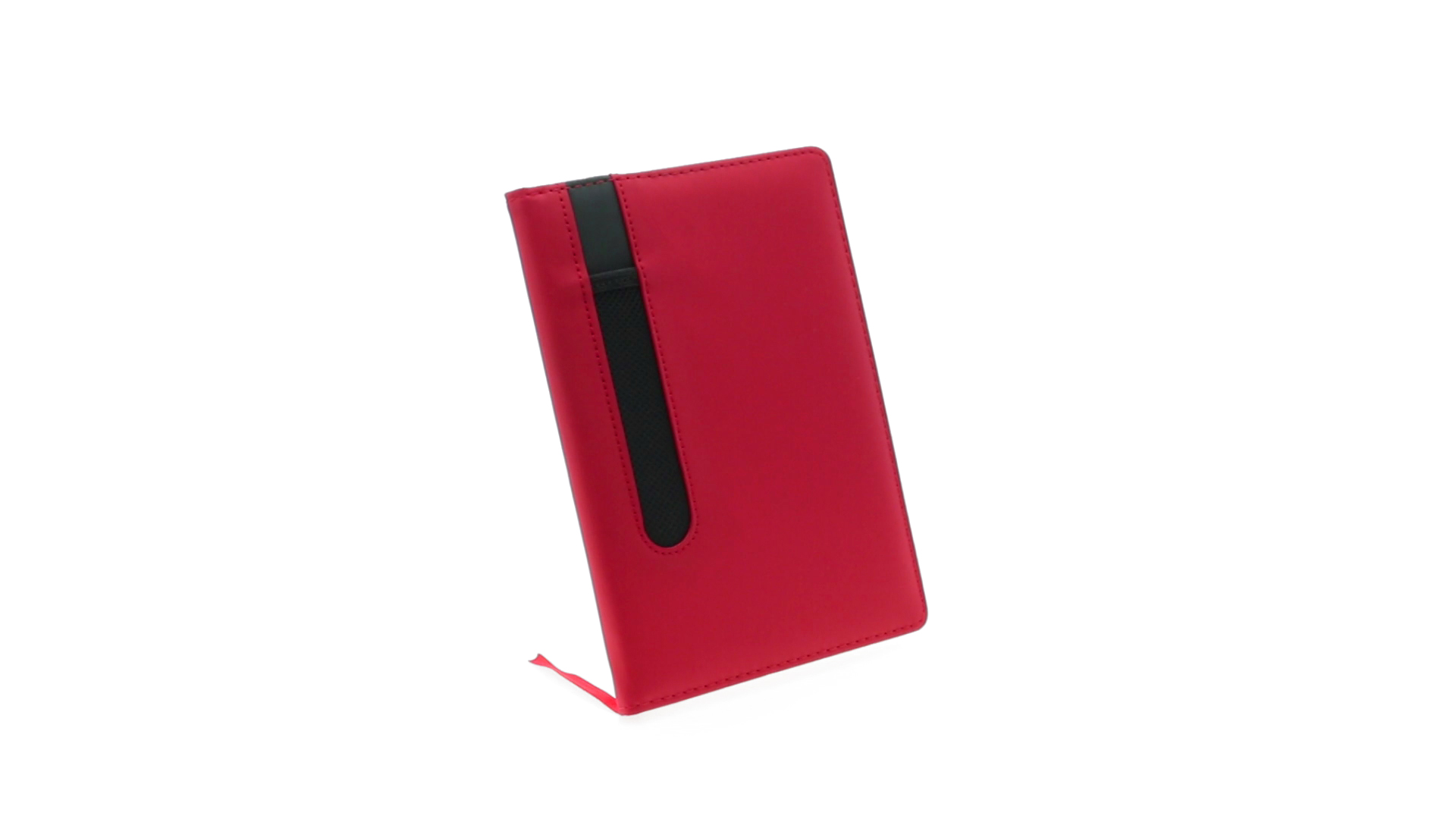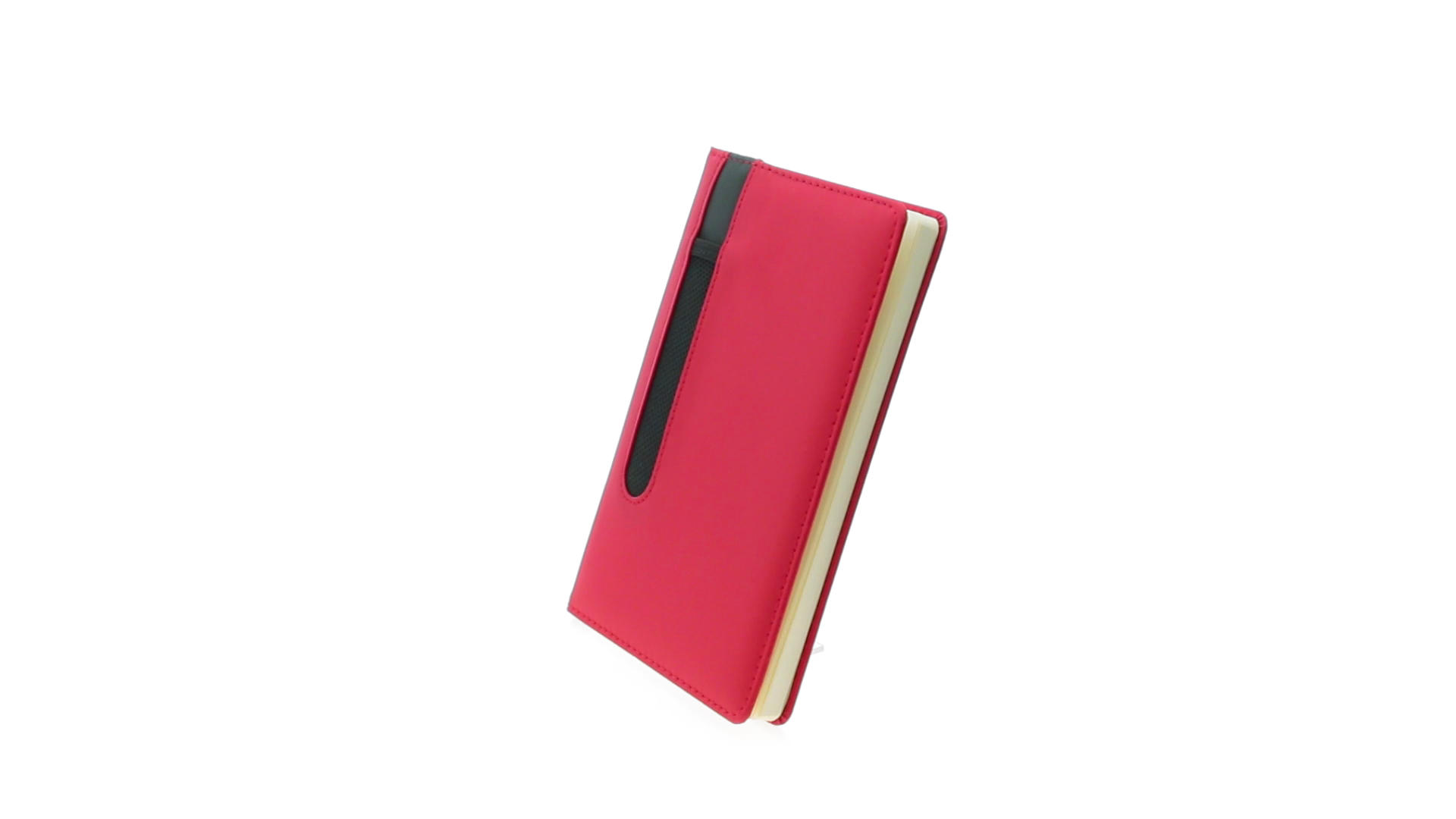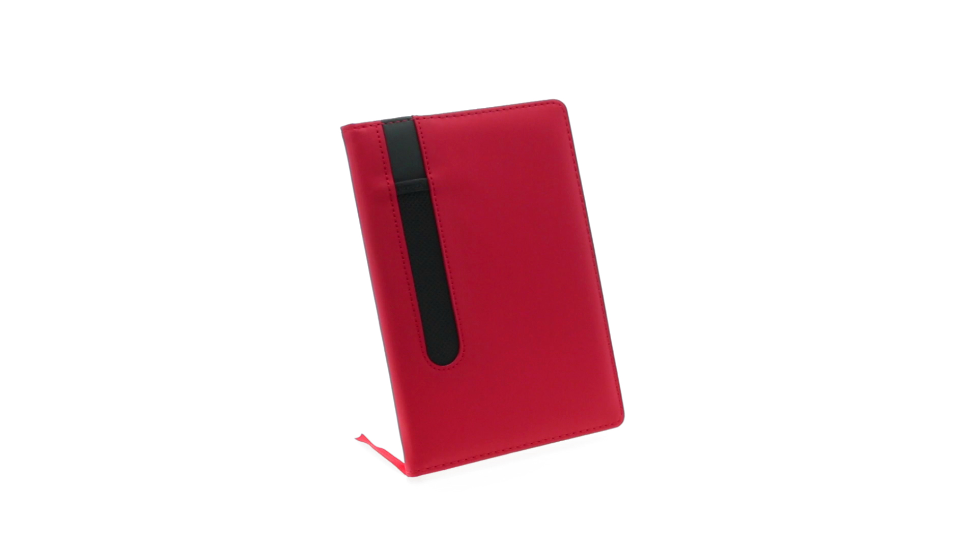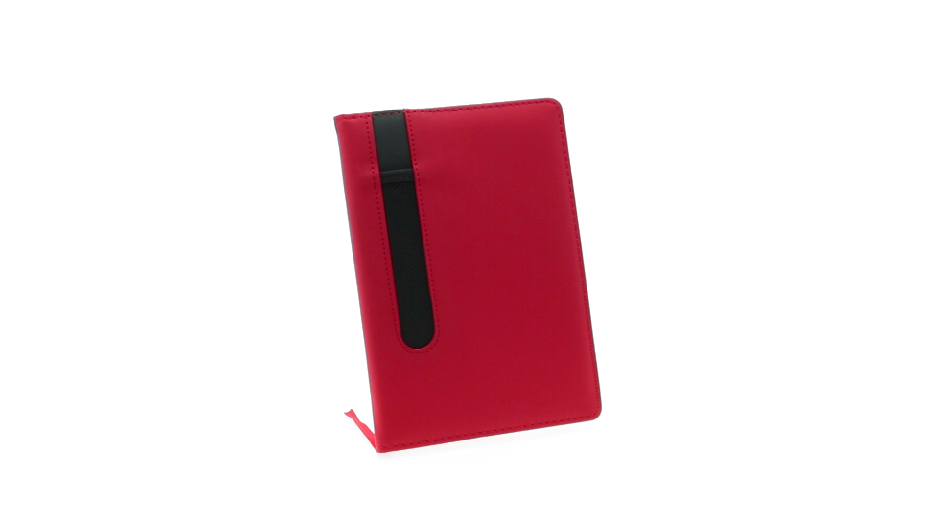 Notizblock mit Soft-Touch-Cover aus Kunstleder und Stifthalter auf der Rückseite. Mit 80 Blättern sowie Gummibandverschluss und farblich passendem Lesezeichenband.