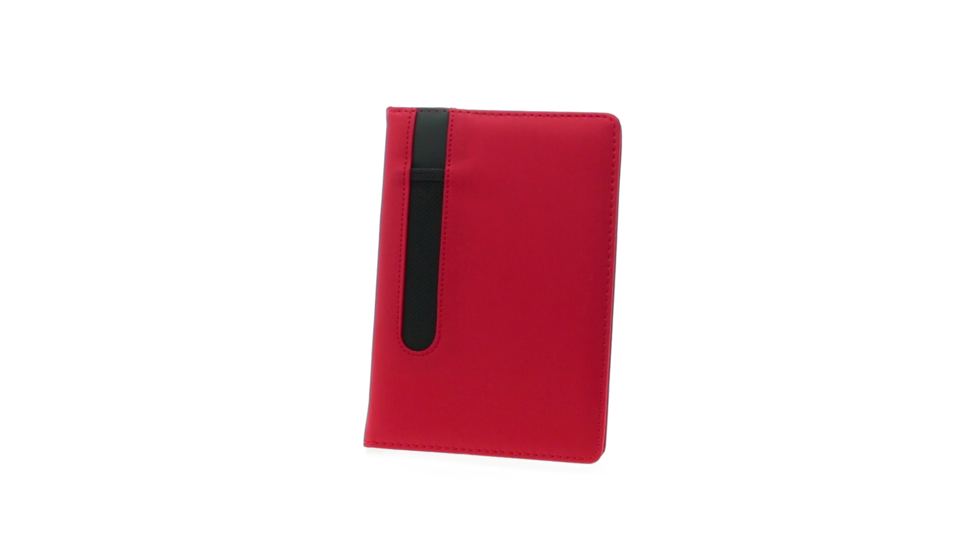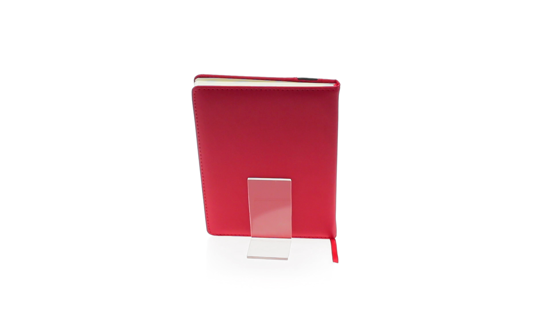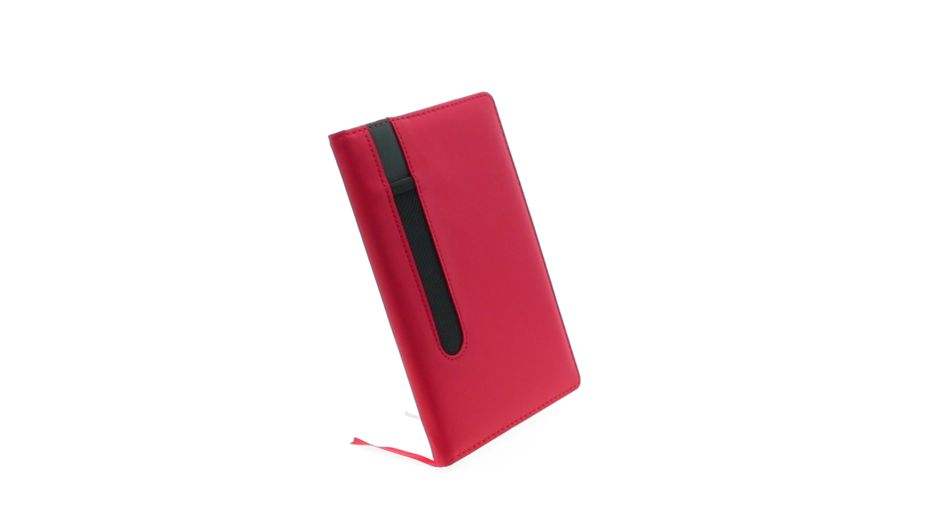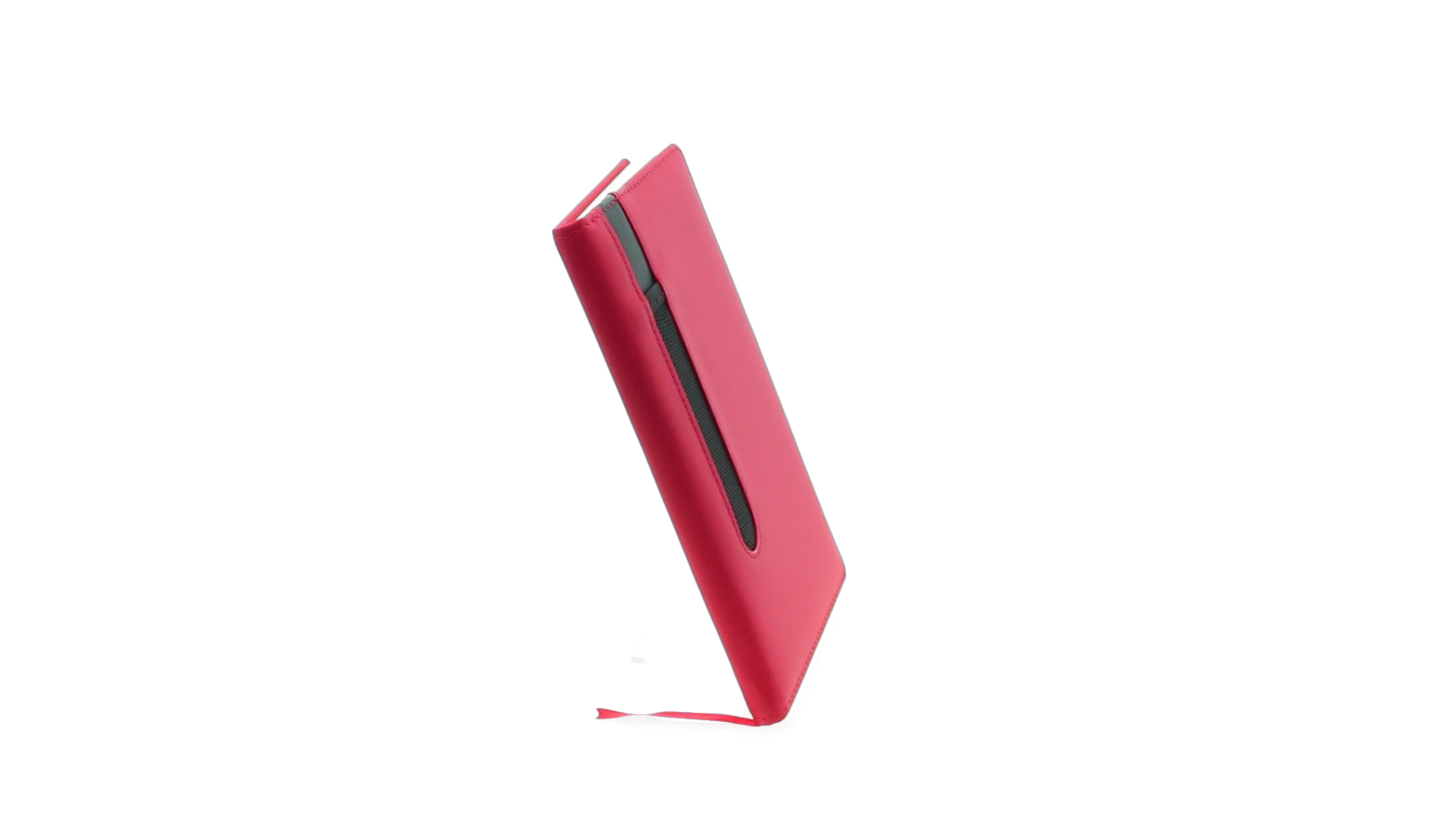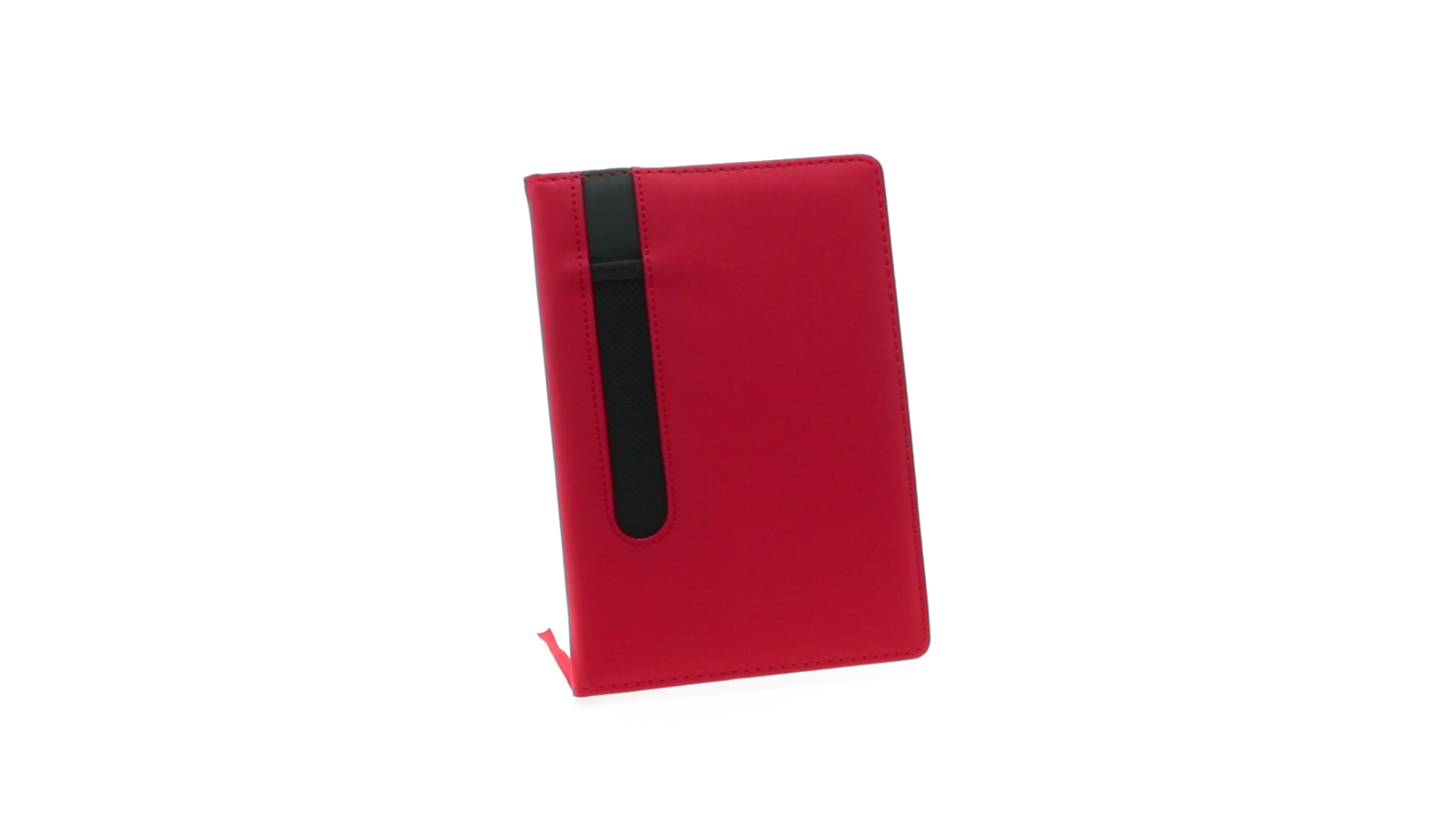 Notizblock mit Soft-Touch-Cover aus Kunstleder und Stifthalter auf der Rückseite. Mit 80 Blättern sowie Gummibandverschluss und farblich passendem Lesezeichenband.