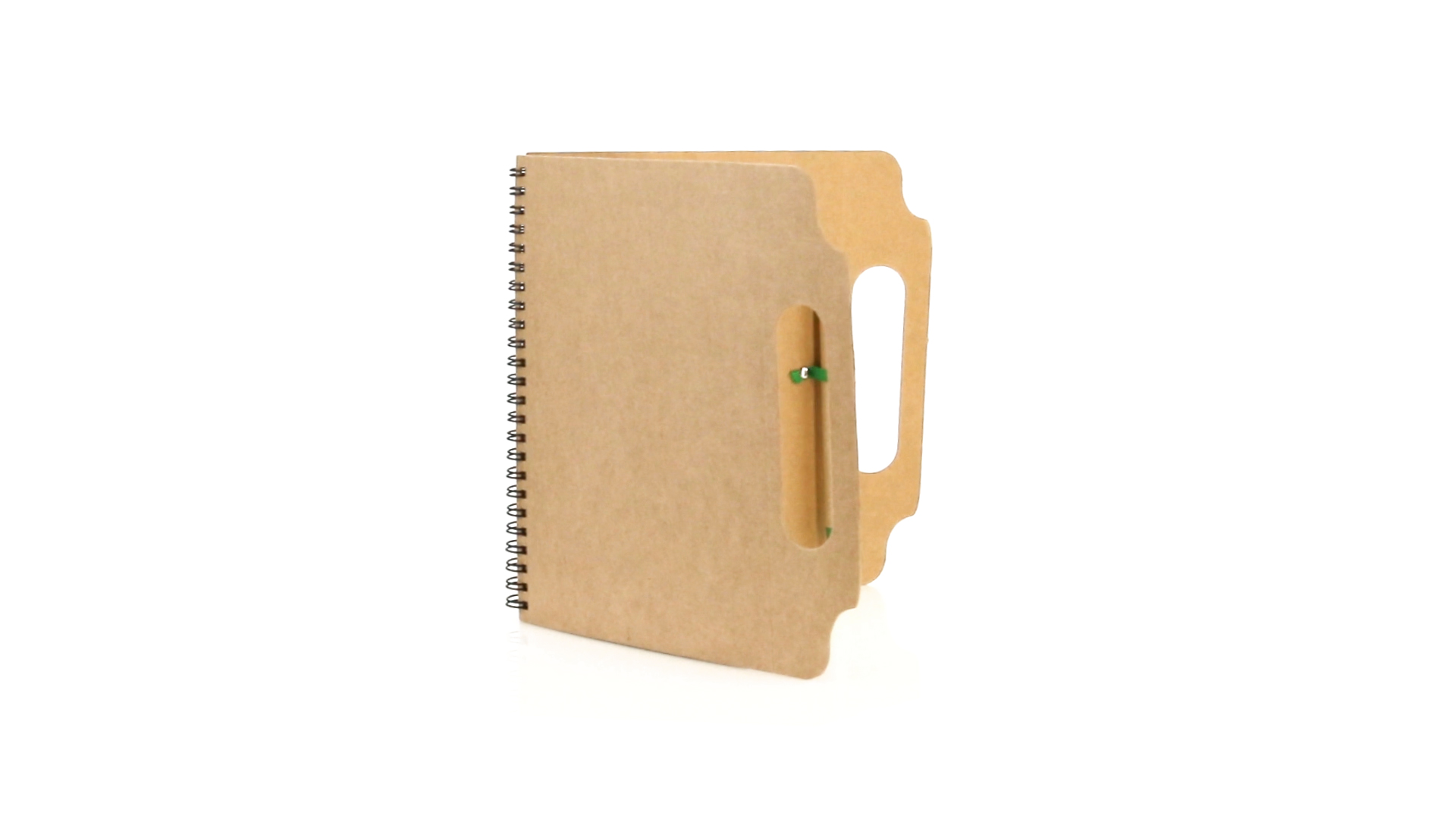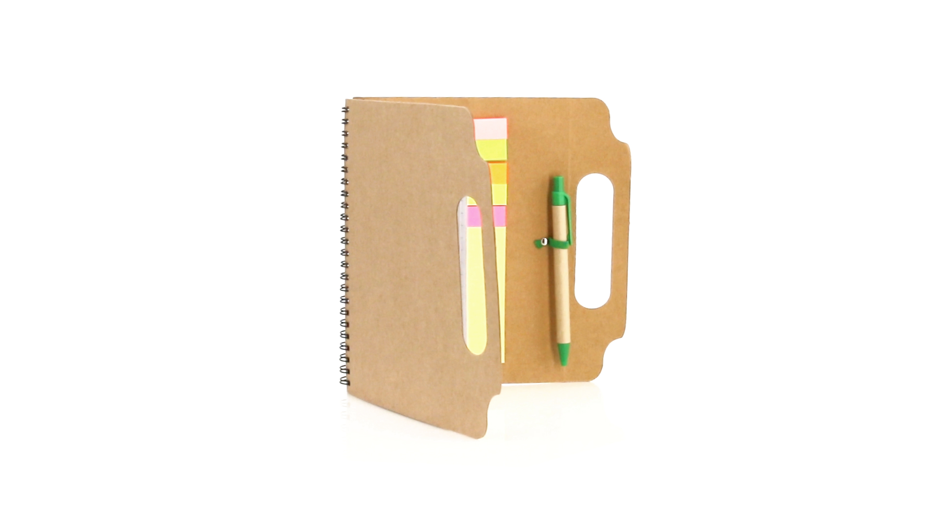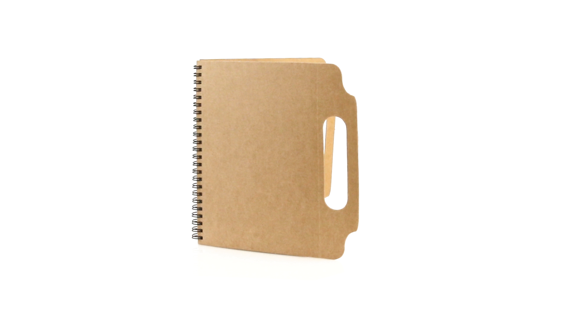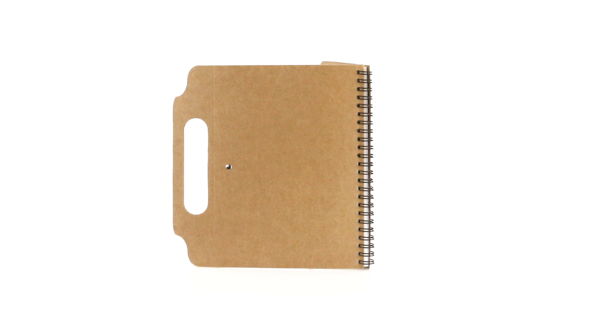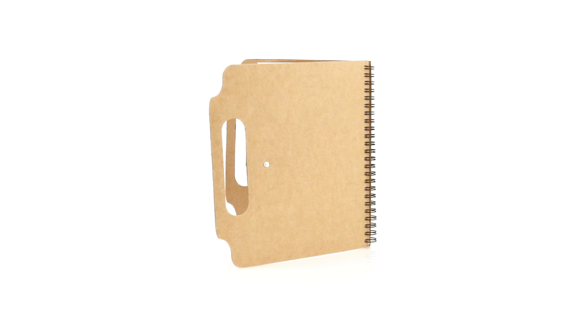Ring-Notizblock mit Haftnotizen am Deckelinneren sowie Kugelschreiber aus Recyclingkarton. Originelles Design mit gestanztem Tragegriff und Soft-Touch-Cover aus widerstandsfähigem, stabilem Recyclingkarton. Mit integriertem Kugelschreiberhalter sowie 70 linierten Blättern, 25 mittelgrossen Haftnotizen und 125 Mini-Haftnotizen.