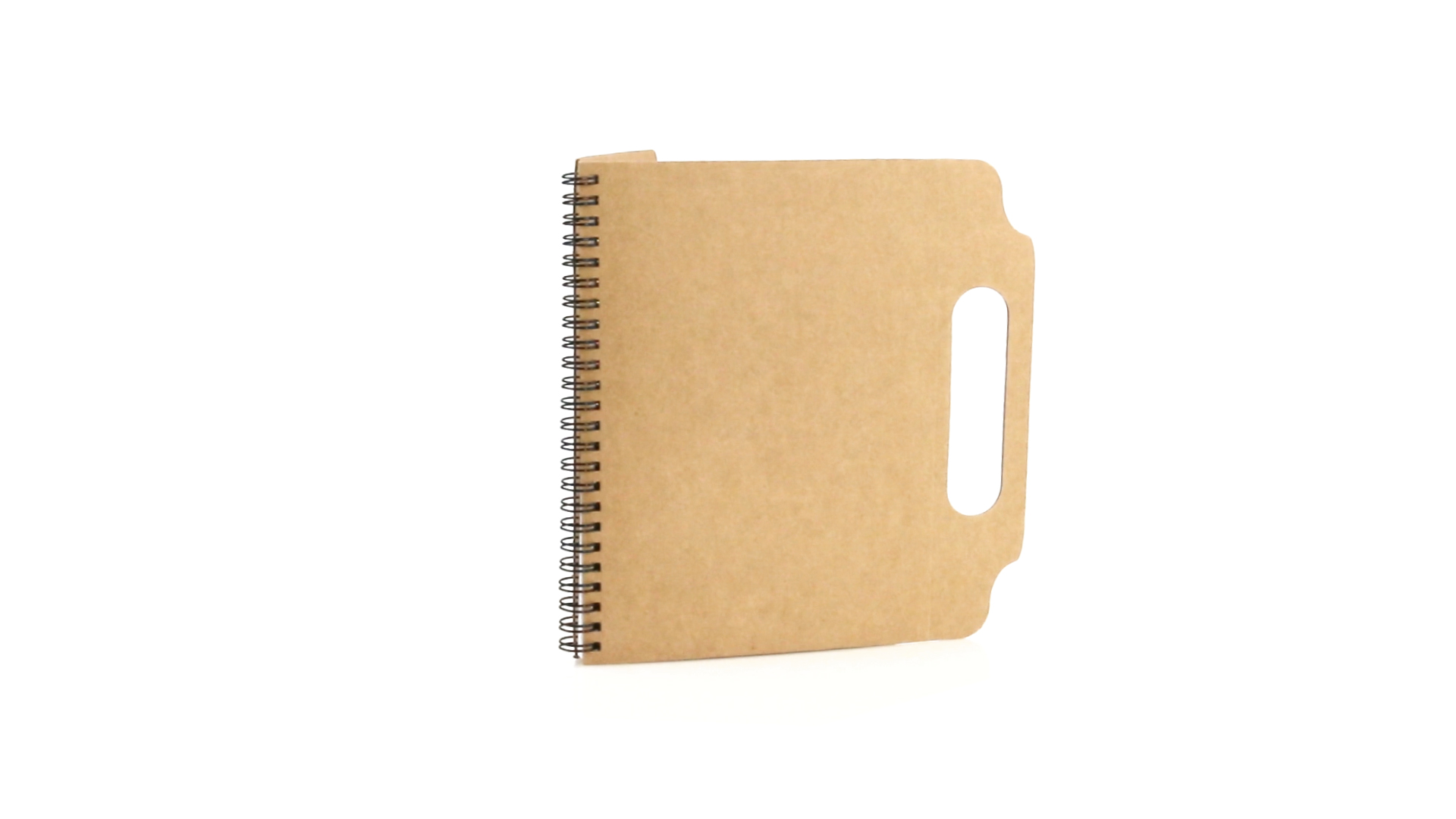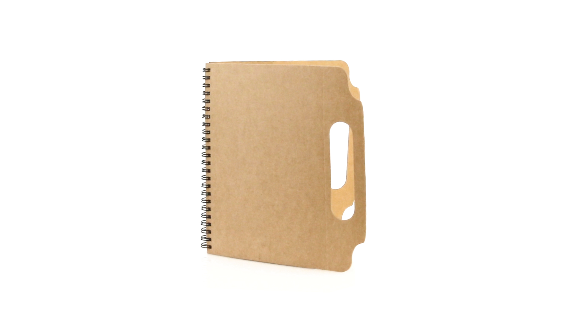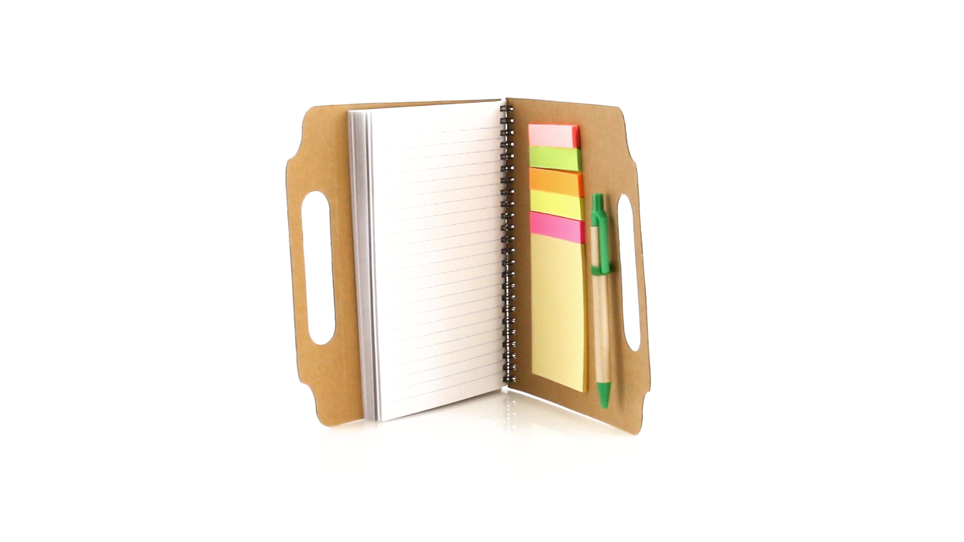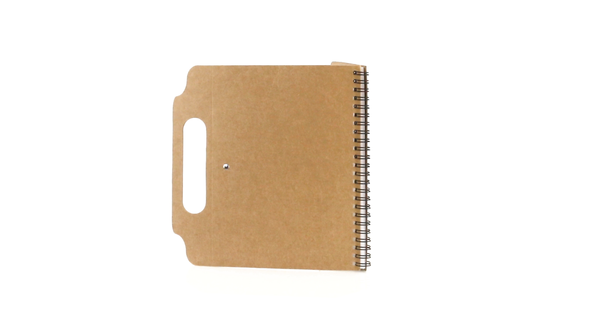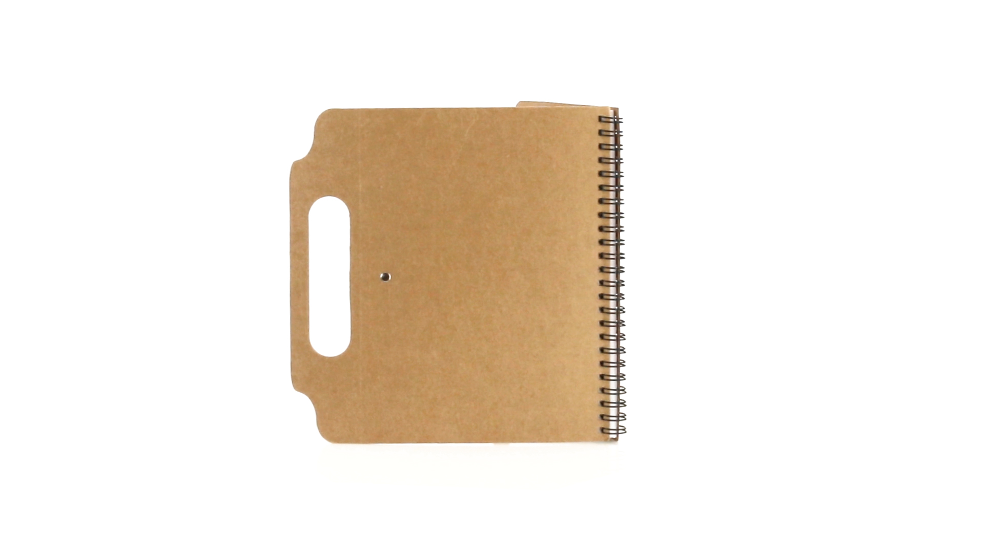 Ring-Notizblock mit Haftnotizen am Deckelinneren sowie Kugelschreiber aus Recyclingkarton. Originelles Design mit gestanztem Tragegriff und Soft-Touch-Cover aus widerstandsfähigem, stabilem Recyclingkarton. Mit integriertem Kugelschreiberhalter sowie 70 linierten Blättern, 25 mittelgrossen Haftnotizen und 125 Mini-Haftnotizen.