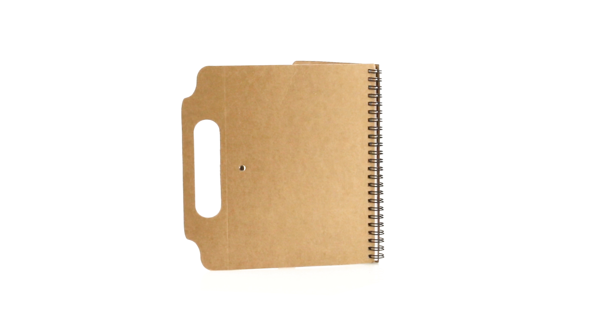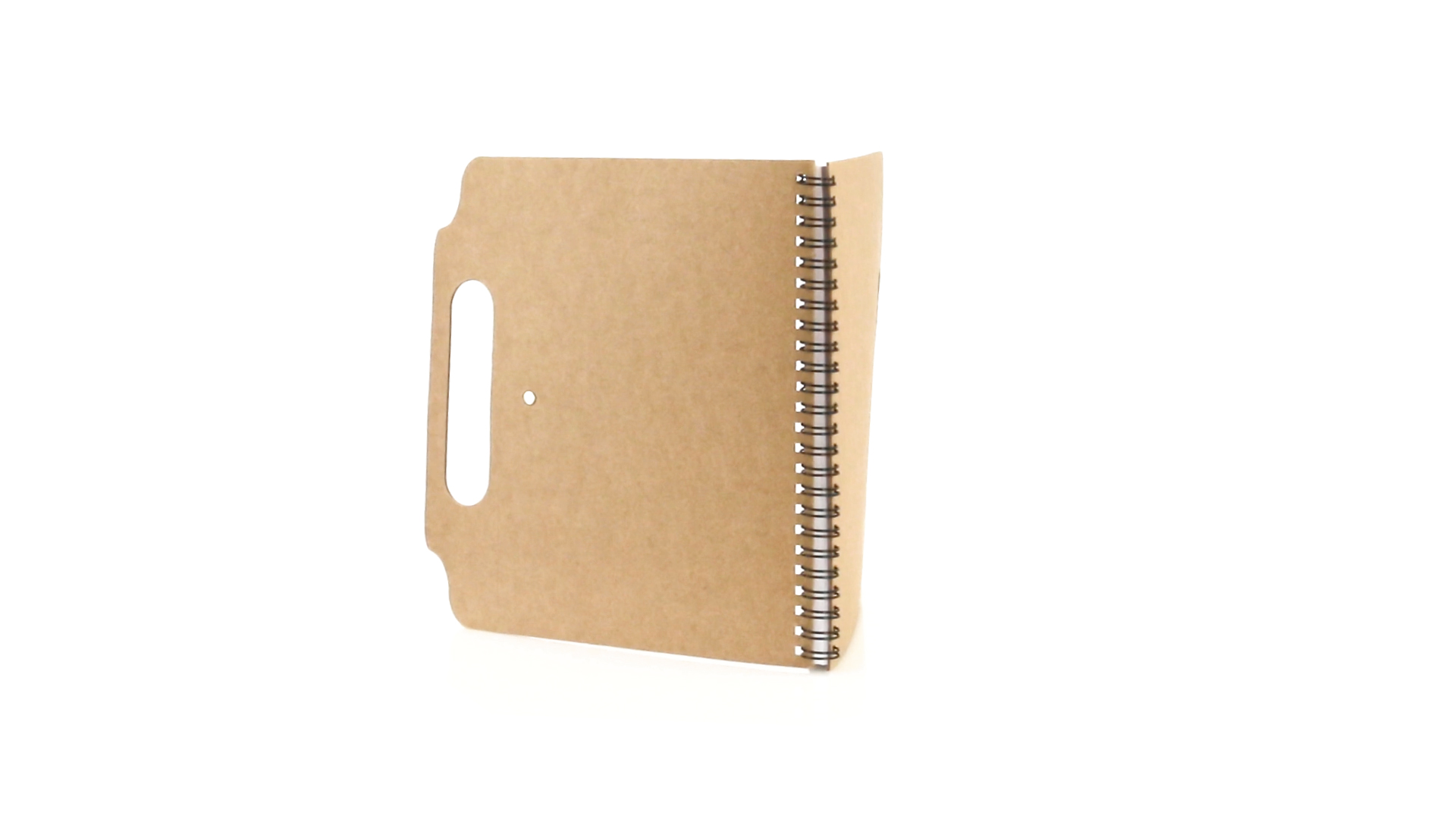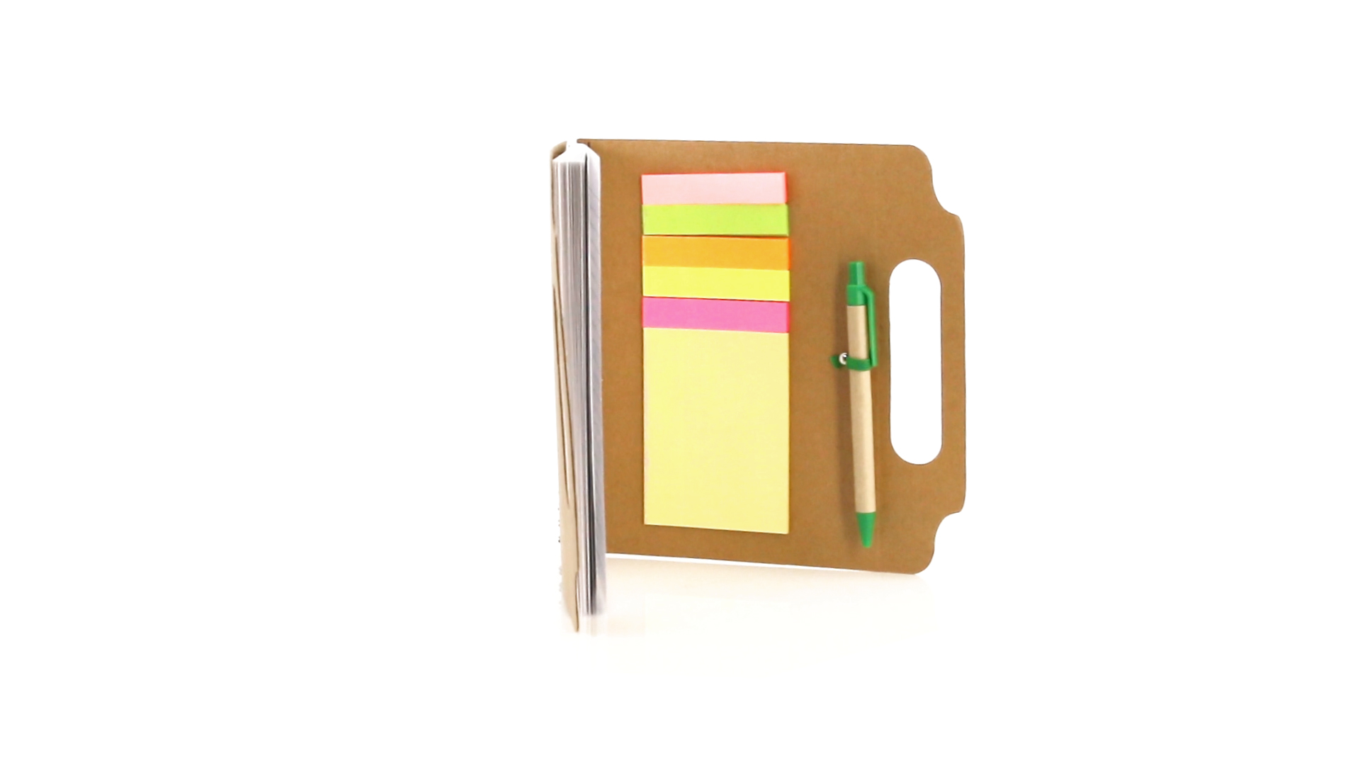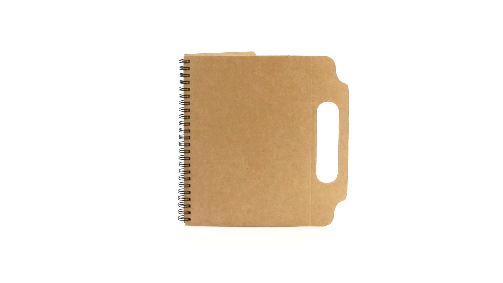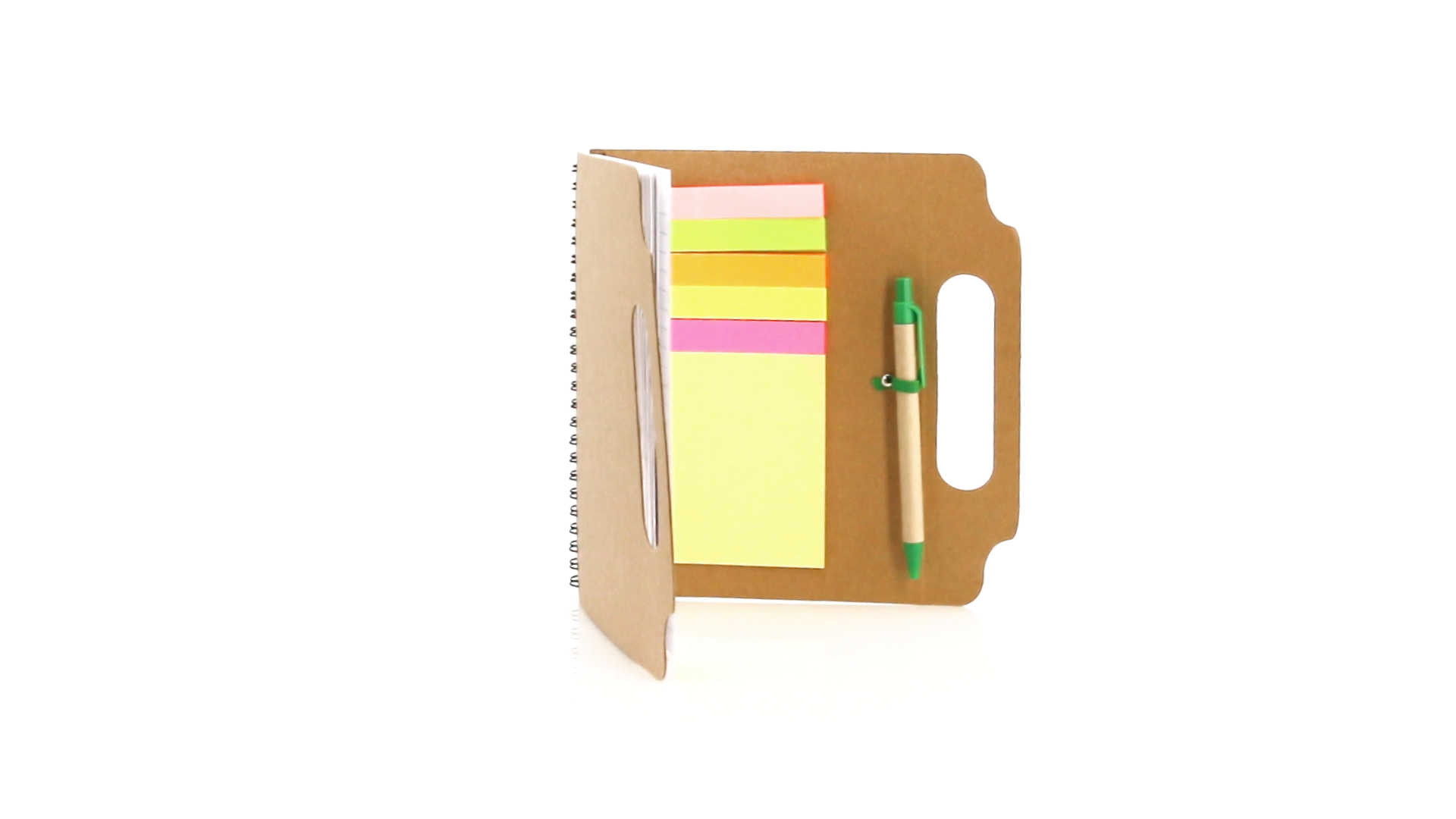Ring-Notizblock mit Haftnotizen am Deckelinneren sowie Kugelschreiber aus Recyclingkarton. Originelles Design mit gestanztem Tragegriff und Soft-Touch-Cover aus widerstandsfähigem, stabilem Recyclingkarton. Mit integriertem Kugelschreiberhalter sowie 70 linierten Blättern, 25 mittelgrossen Haftnotizen und 125 Mini-Haftnotizen.