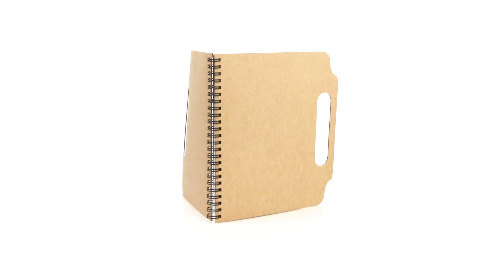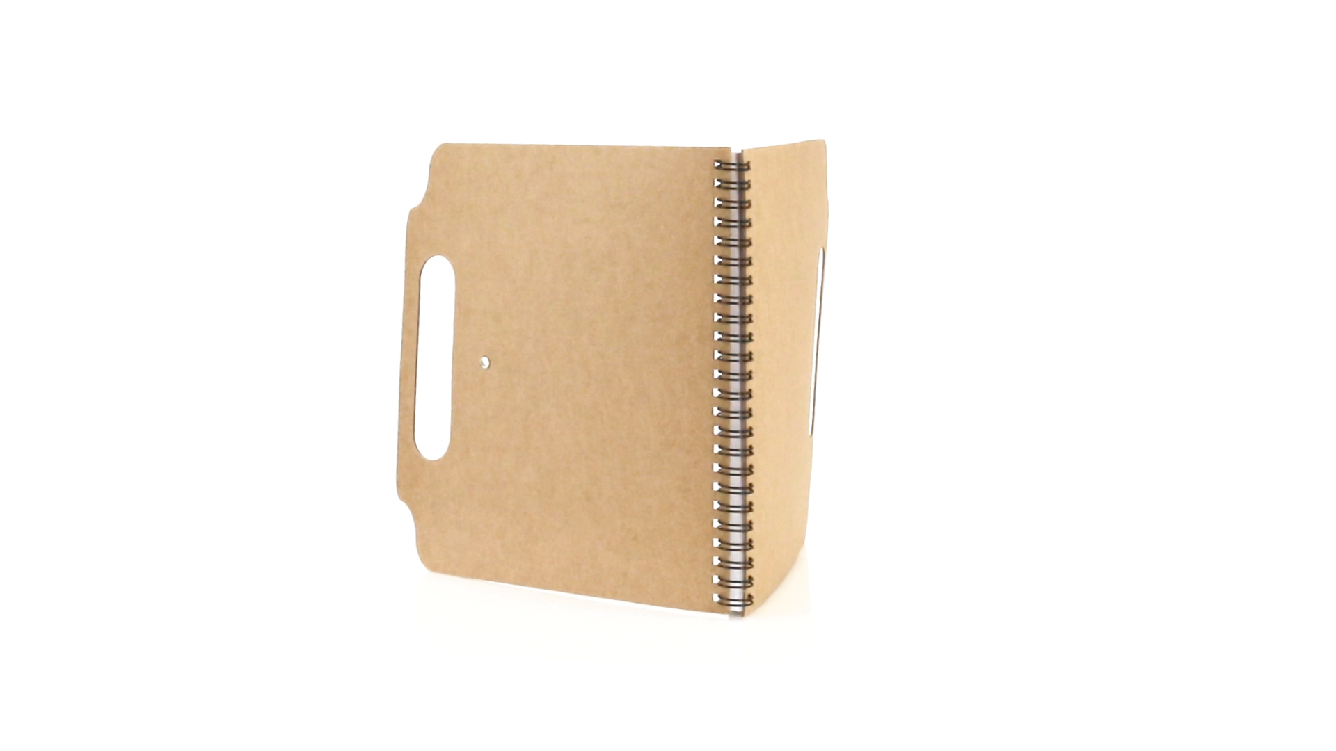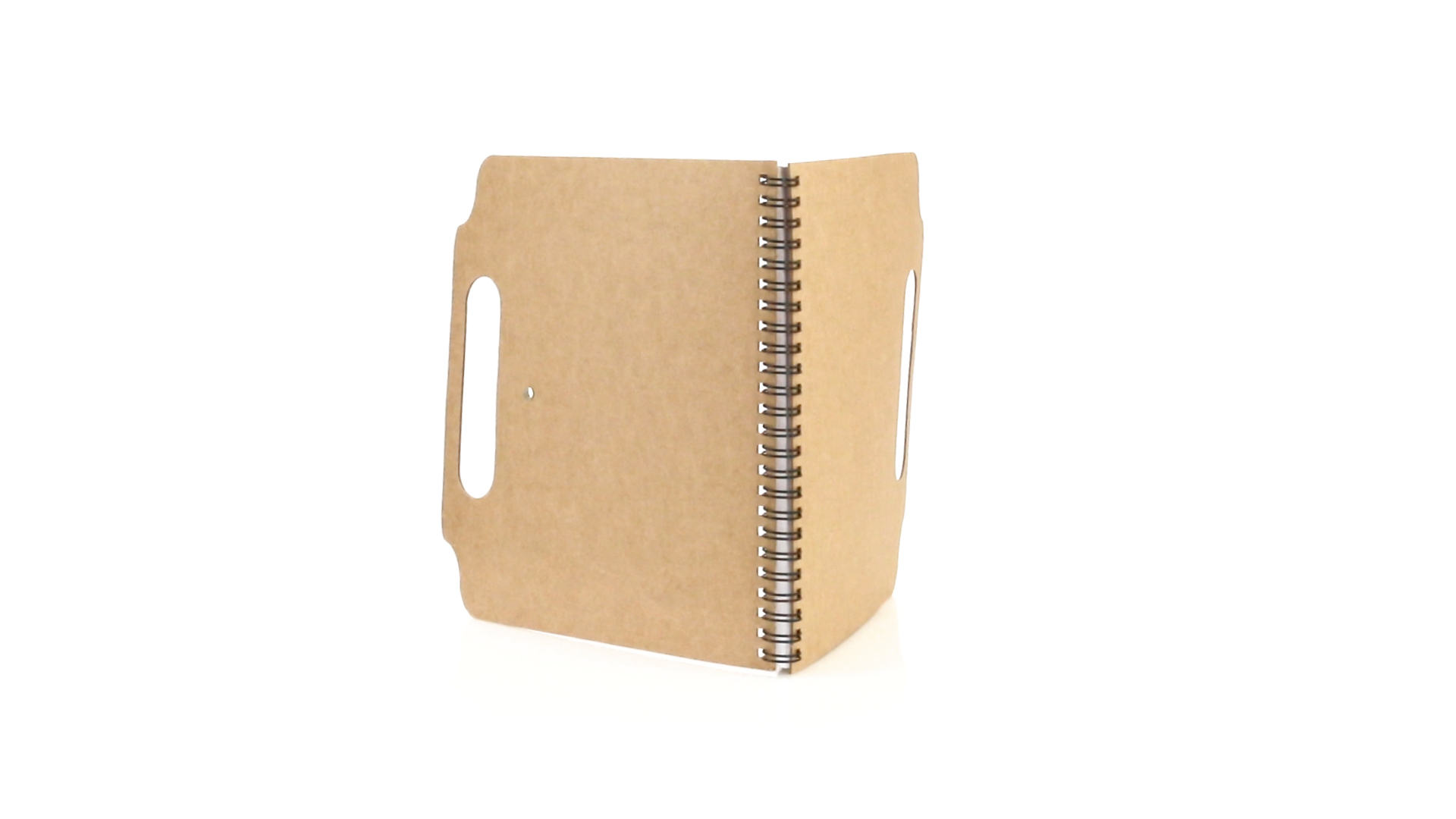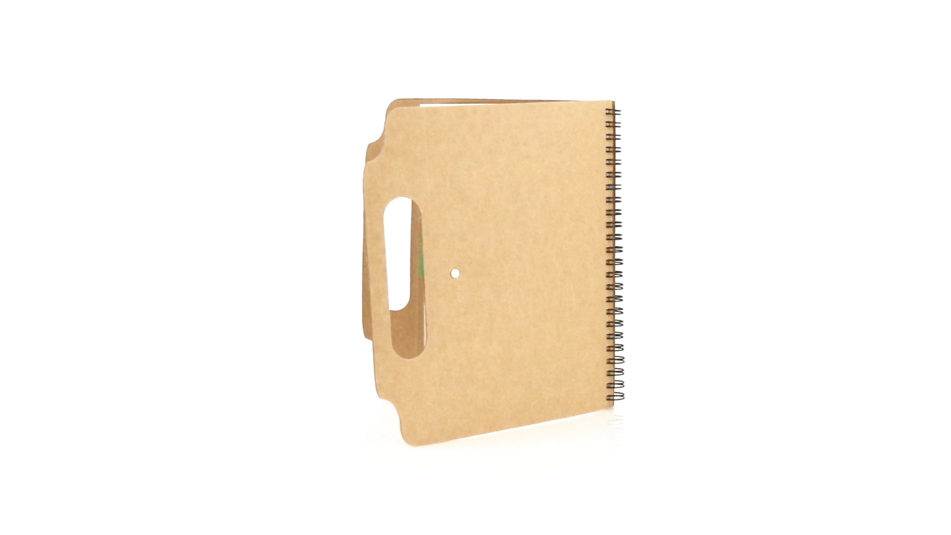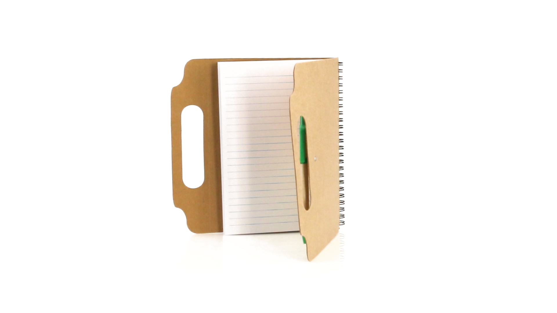 Ring-Notizblock mit Haftnotizen am Deckelinneren sowie Kugelschreiber aus Recyclingkarton. Originelles Design mit gestanztem Tragegriff und Soft-Touch-Cover aus widerstandsfähigem, stabilem Recyclingkarton. Mit integriertem Kugelschreiberhalter sowie 70 linierten Blättern, 25 mittelgrossen Haftnotizen und 125 Mini-Haftnotizen.