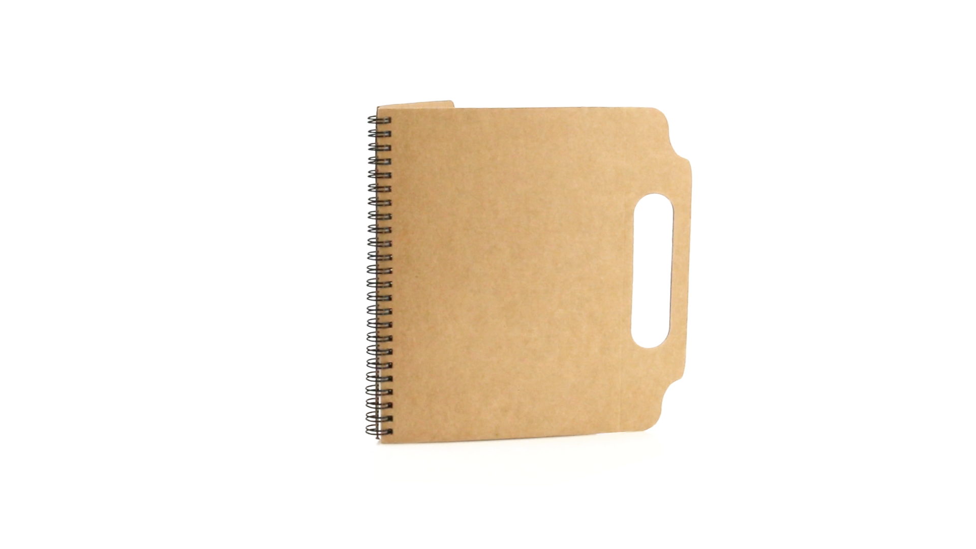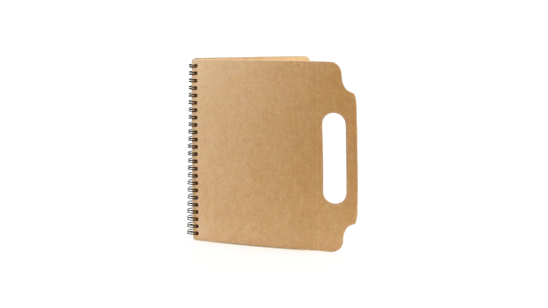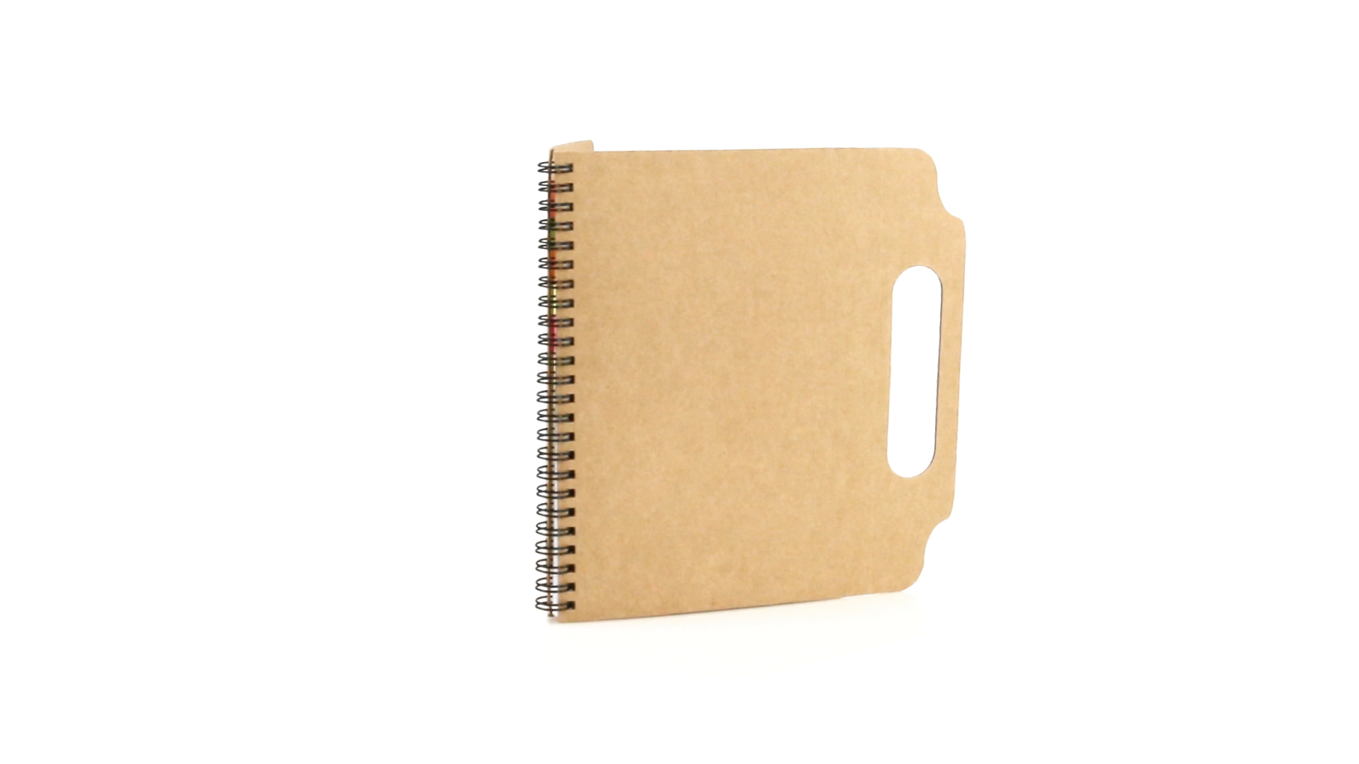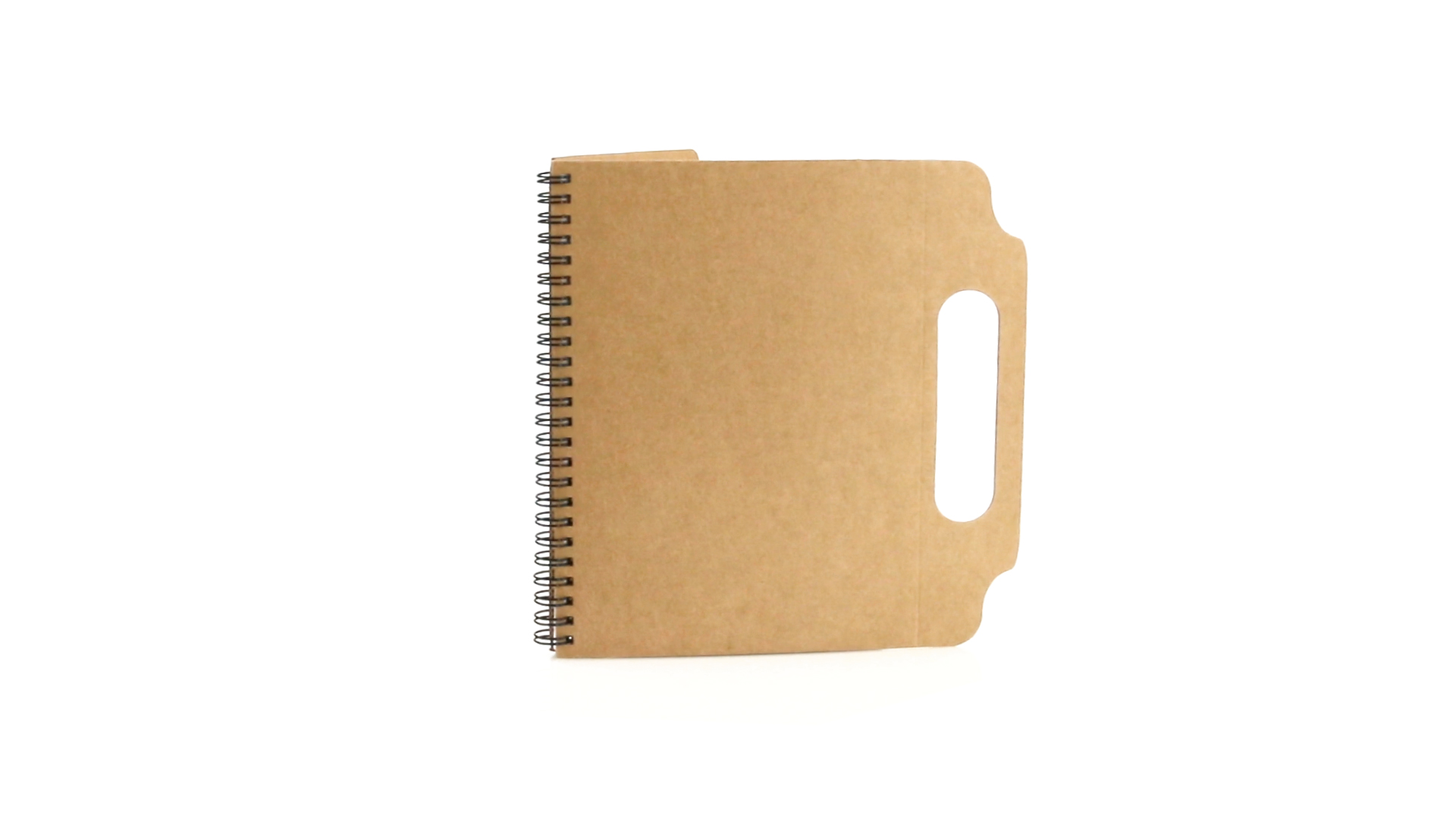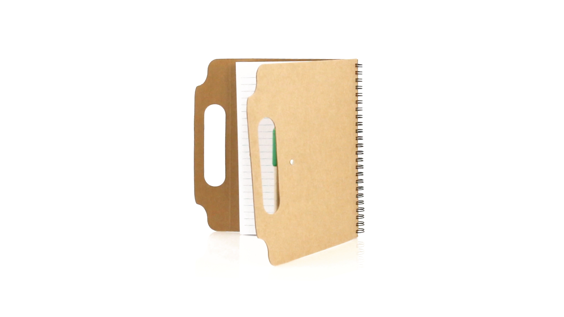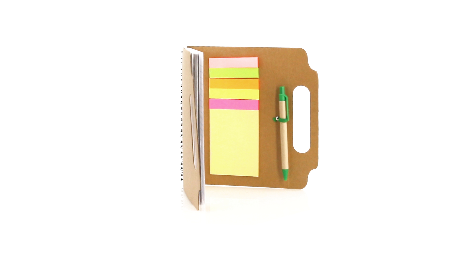 Ring-Notizblock mit Haftnotizen am Deckelinneren sowie Kugelschreiber aus Recyclingkarton. Originelles Design mit gestanztem Tragegriff und Soft-Touch-Cover aus widerstandsfähigem, stabilem Recyclingkarton. Mit integriertem Kugelschreiberhalter sowie 70 linierten Blättern, 25 mittelgrossen Haftnotizen und 125 Mini-Haftnotizen.
