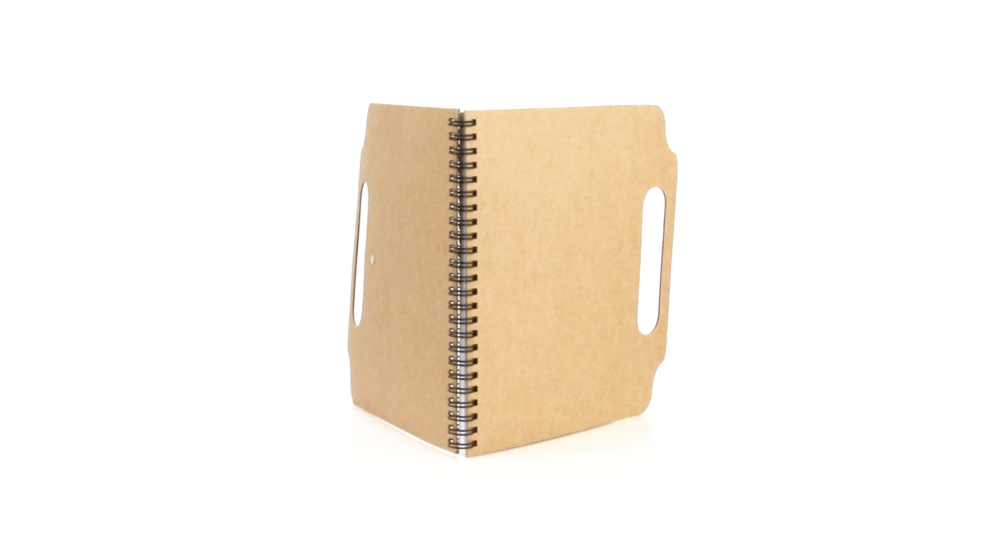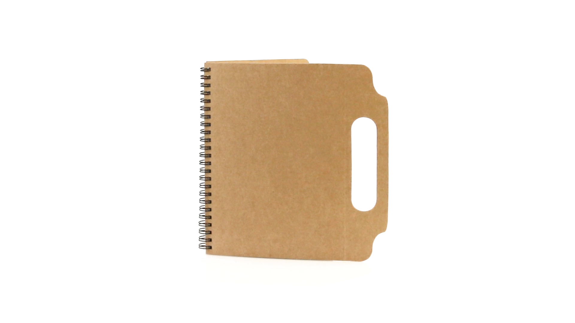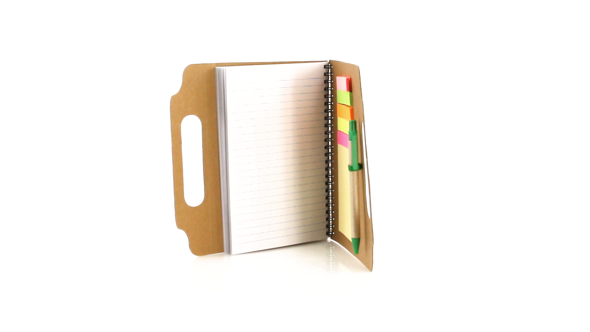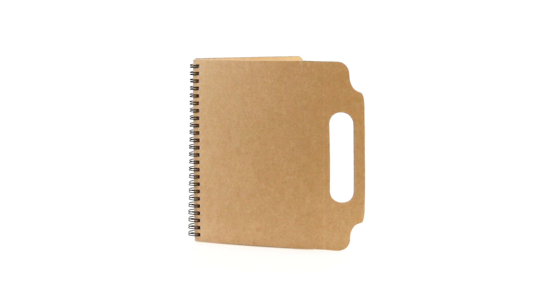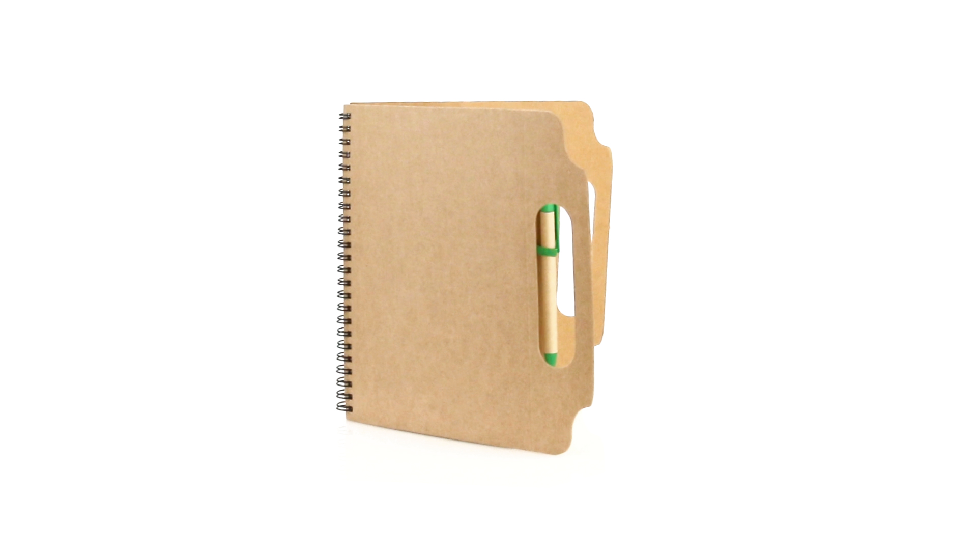 Ring-Notizblock mit Haftnotizen am Deckelinneren sowie Kugelschreiber aus Recyclingkarton. Originelles Design mit gestanztem Tragegriff und Soft-Touch-Cover aus widerstandsfähigem, stabilem Recyclingkarton. Mit integriertem Kugelschreiberhalter sowie 70 linierten Blättern, 25 mittelgrossen Haftnotizen und 125 Mini-Haftnotizen.