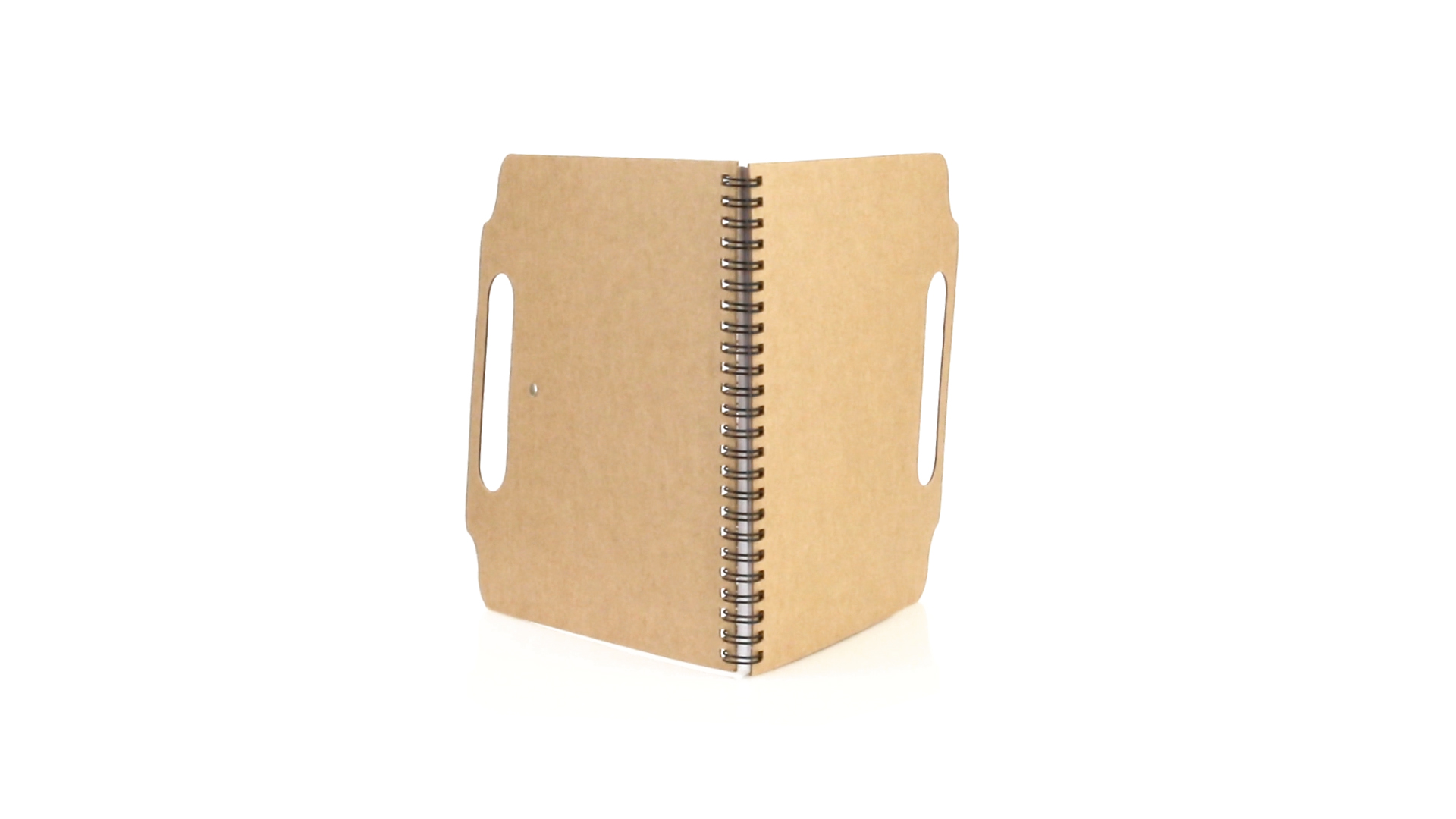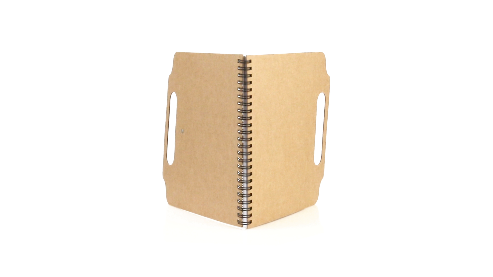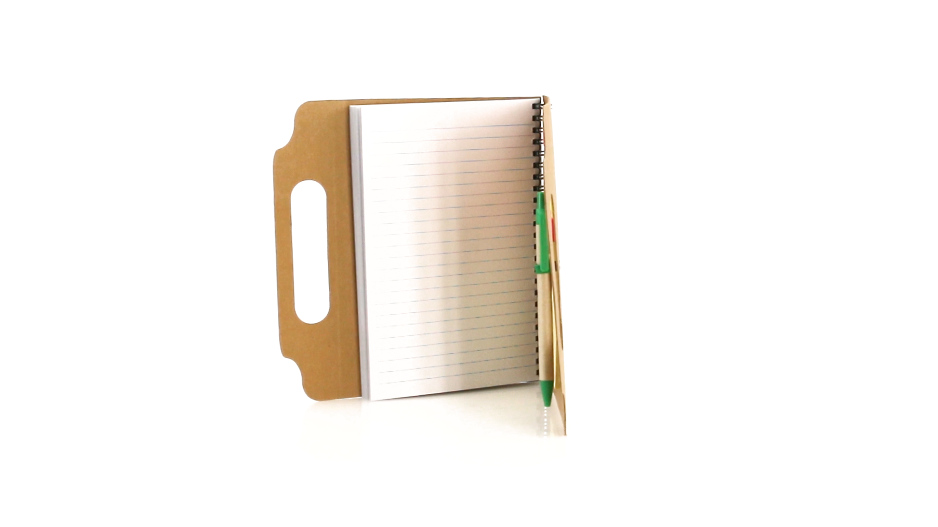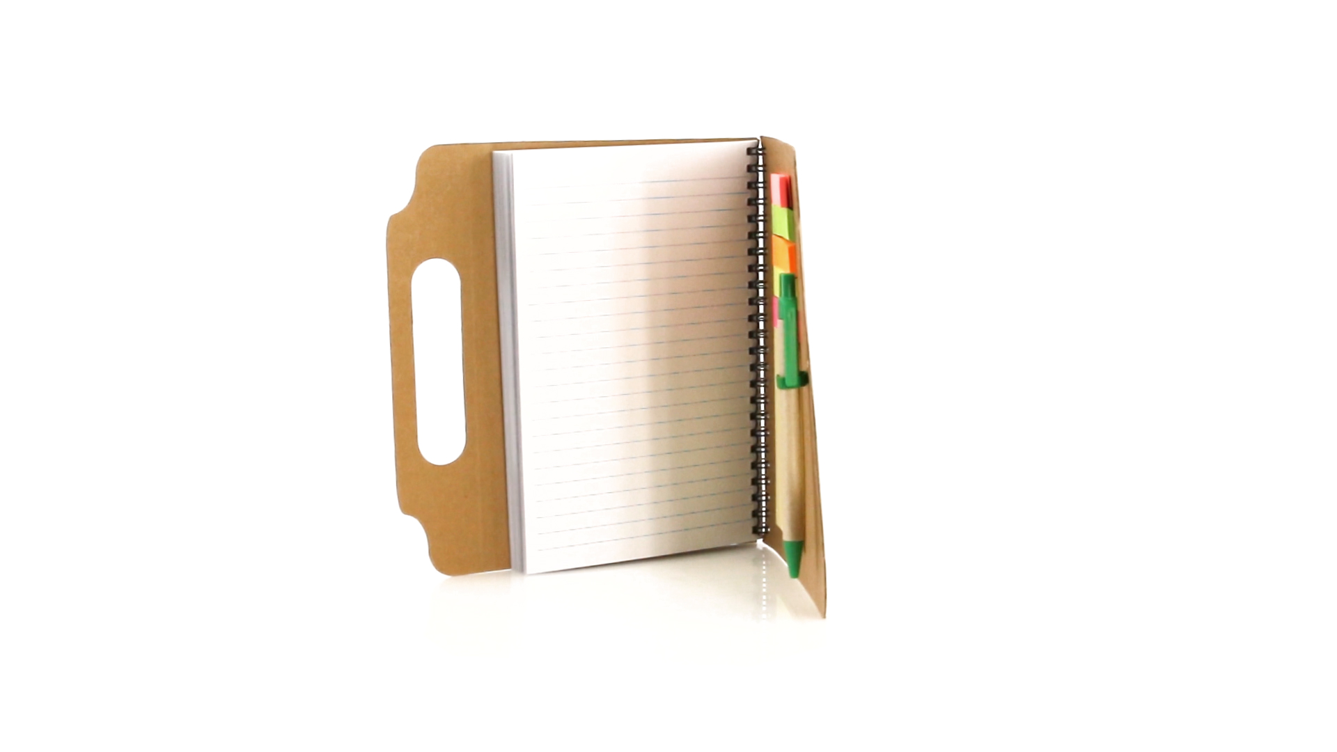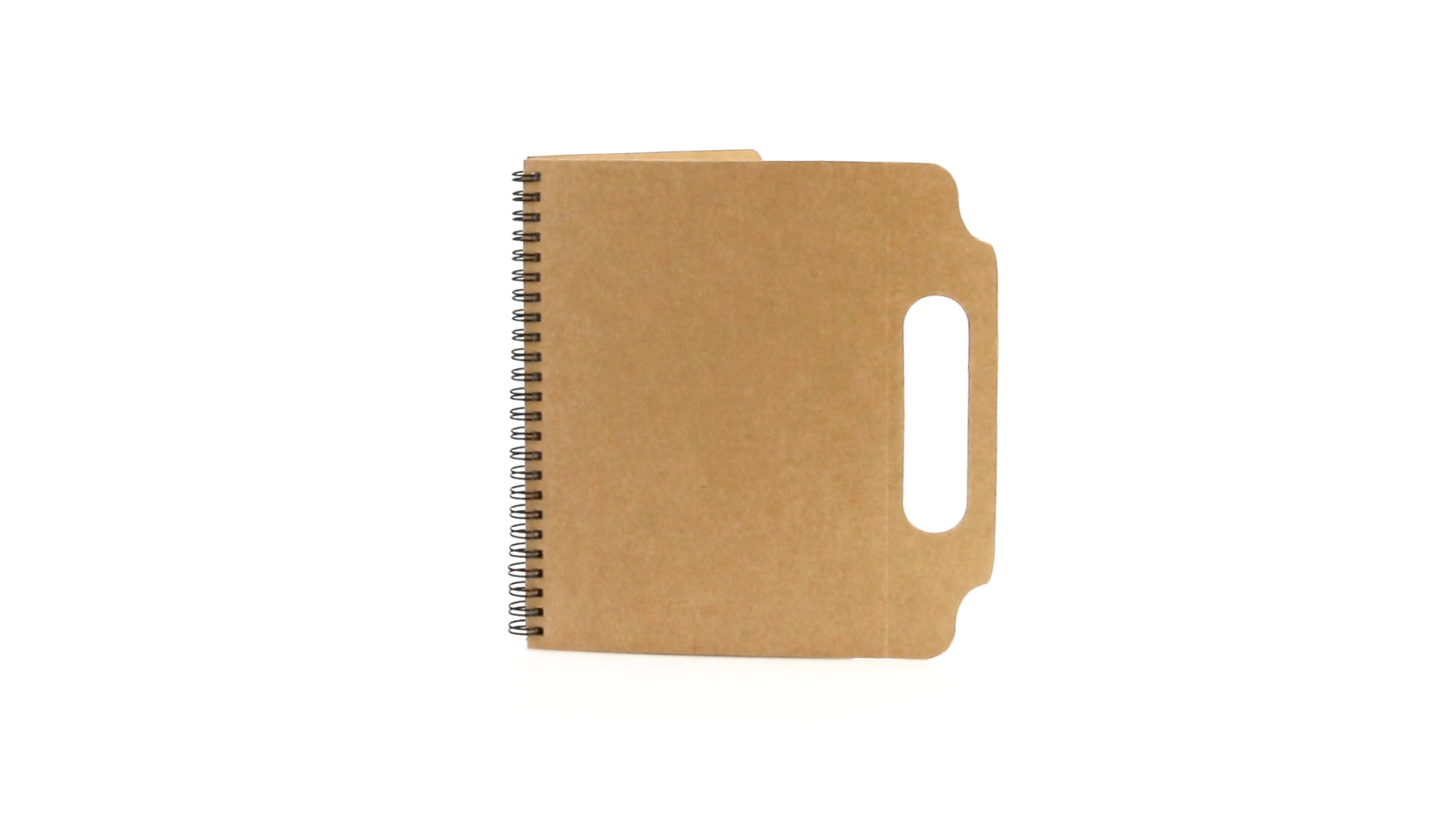 Ring-Notizblock mit Haftnotizen am Deckelinneren sowie Kugelschreiber aus Recyclingkarton. Originelles Design mit gestanztem Tragegriff und Soft-Touch-Cover aus widerstandsfähigem, stabilem Recyclingkarton. Mit integriertem Kugelschreiberhalter sowie 70 linierten Blättern, 25 mittelgrossen Haftnotizen und 125 Mini-Haftnotizen.