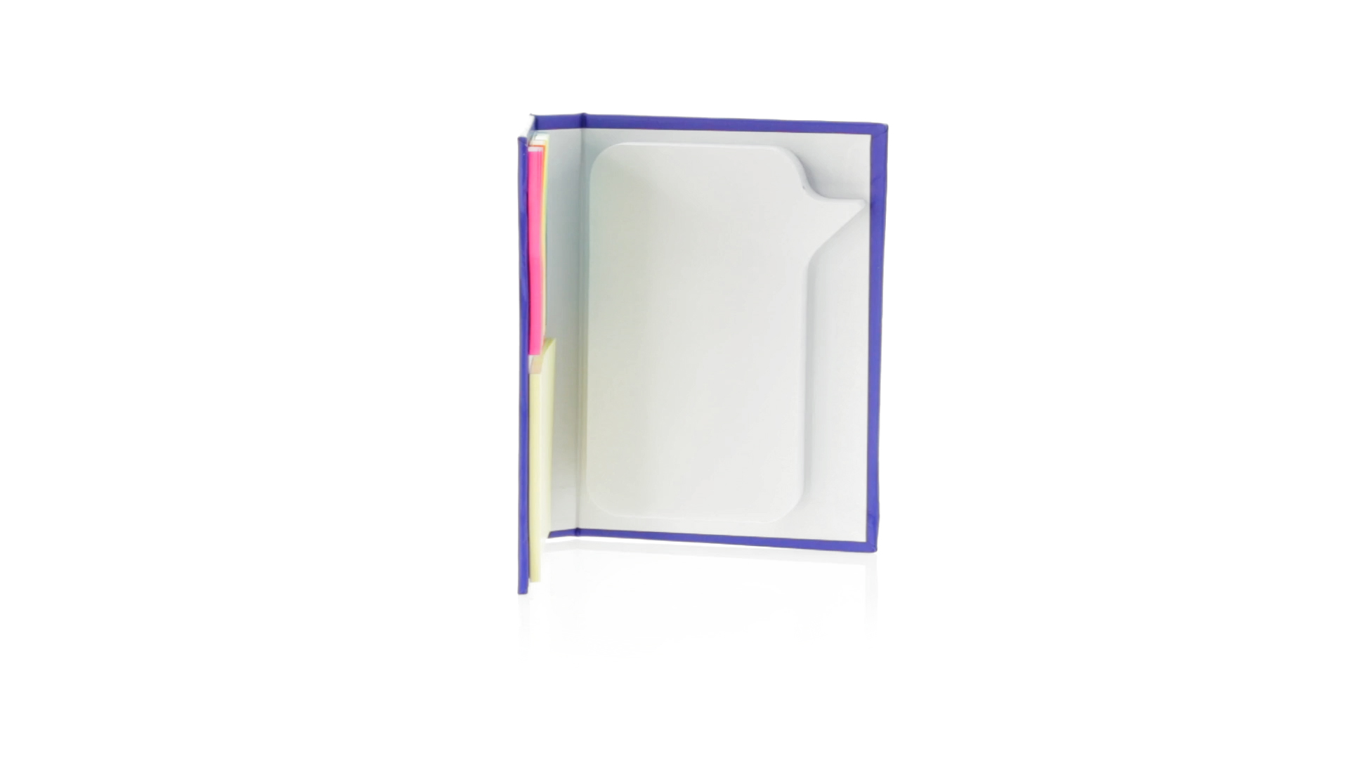 Origineller Notizblock mit Sprechblasen-Design und Soft-Touch-Cover aus solidem Recycling-Karton in verschiedenen Farben. Mit 100 grossen Haftnotizen in Form einer Sprechblase sowie 25 mittelgrossen und 125 Mini-Haftnotizen.