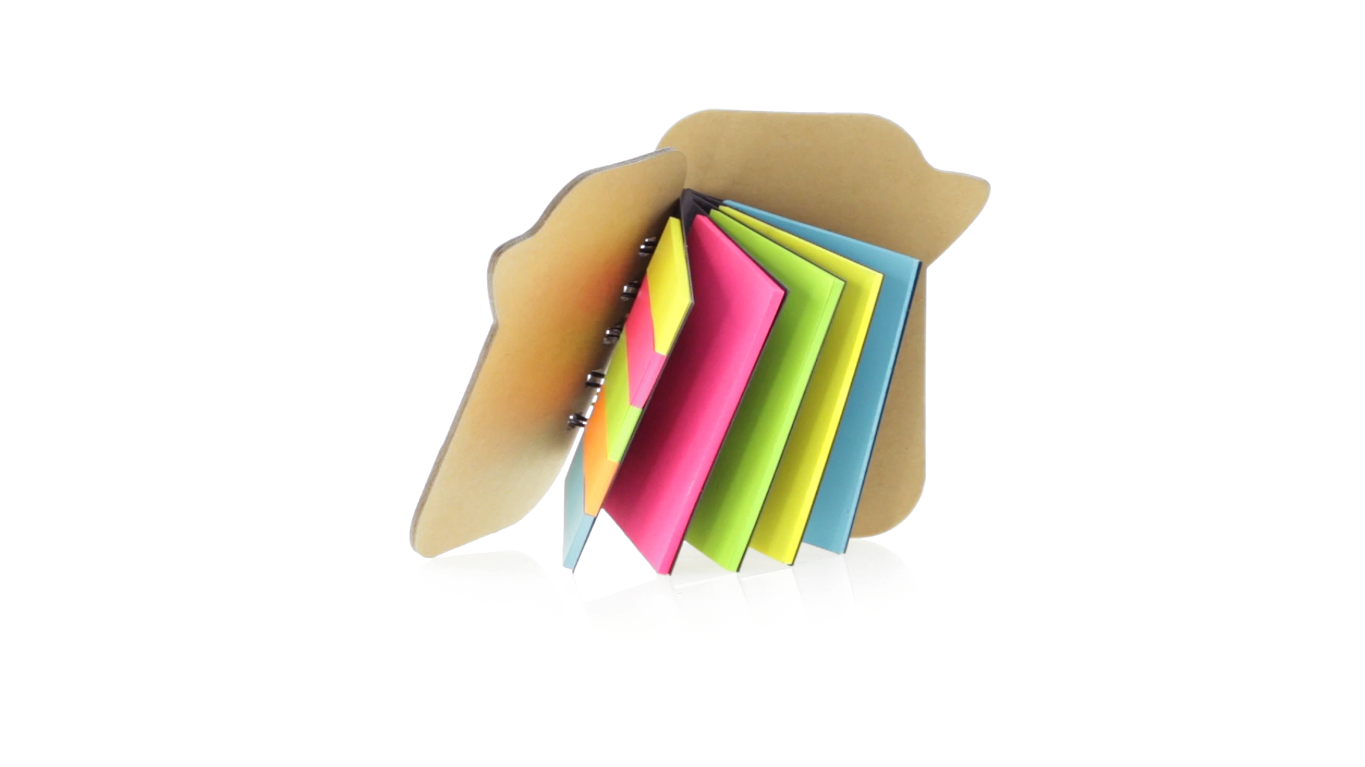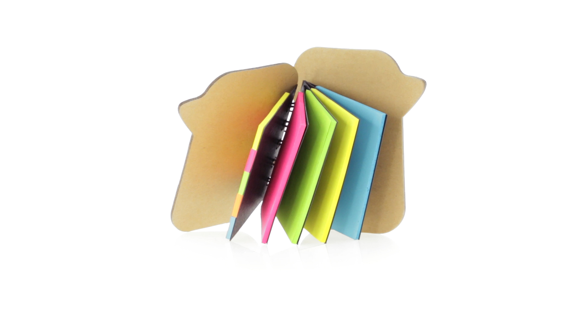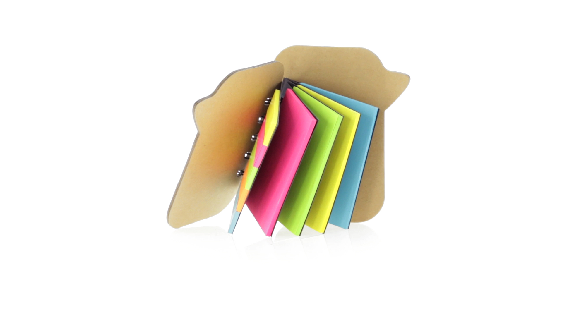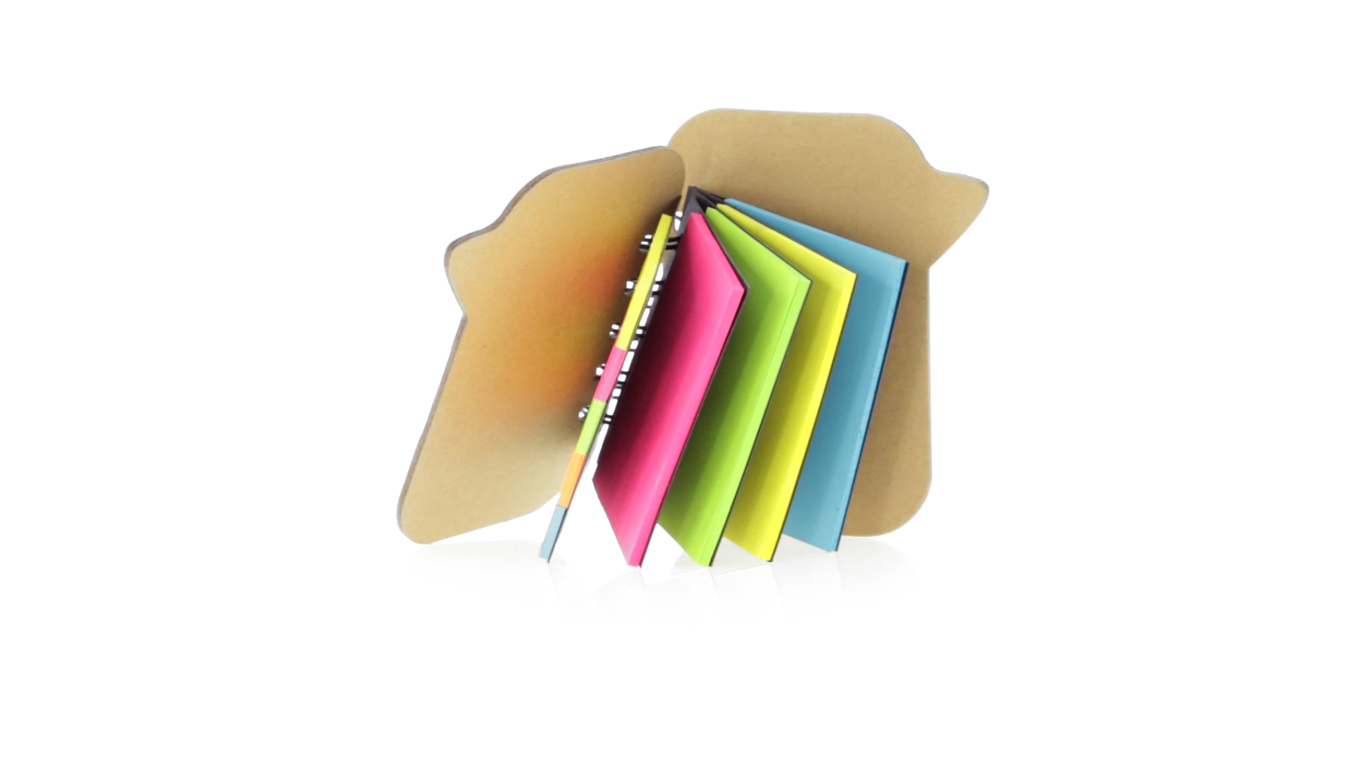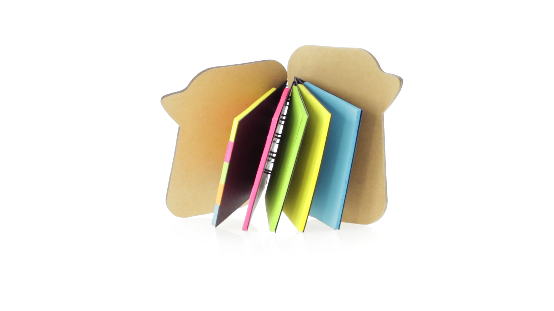 Origineller Spiral-Haftnotizblock mit Sprechblasen-Design und Soft-Touch-Cover aus solidem Recycling-Karton. Mit 100 grossen und 125 Mini-Haftnotizen.