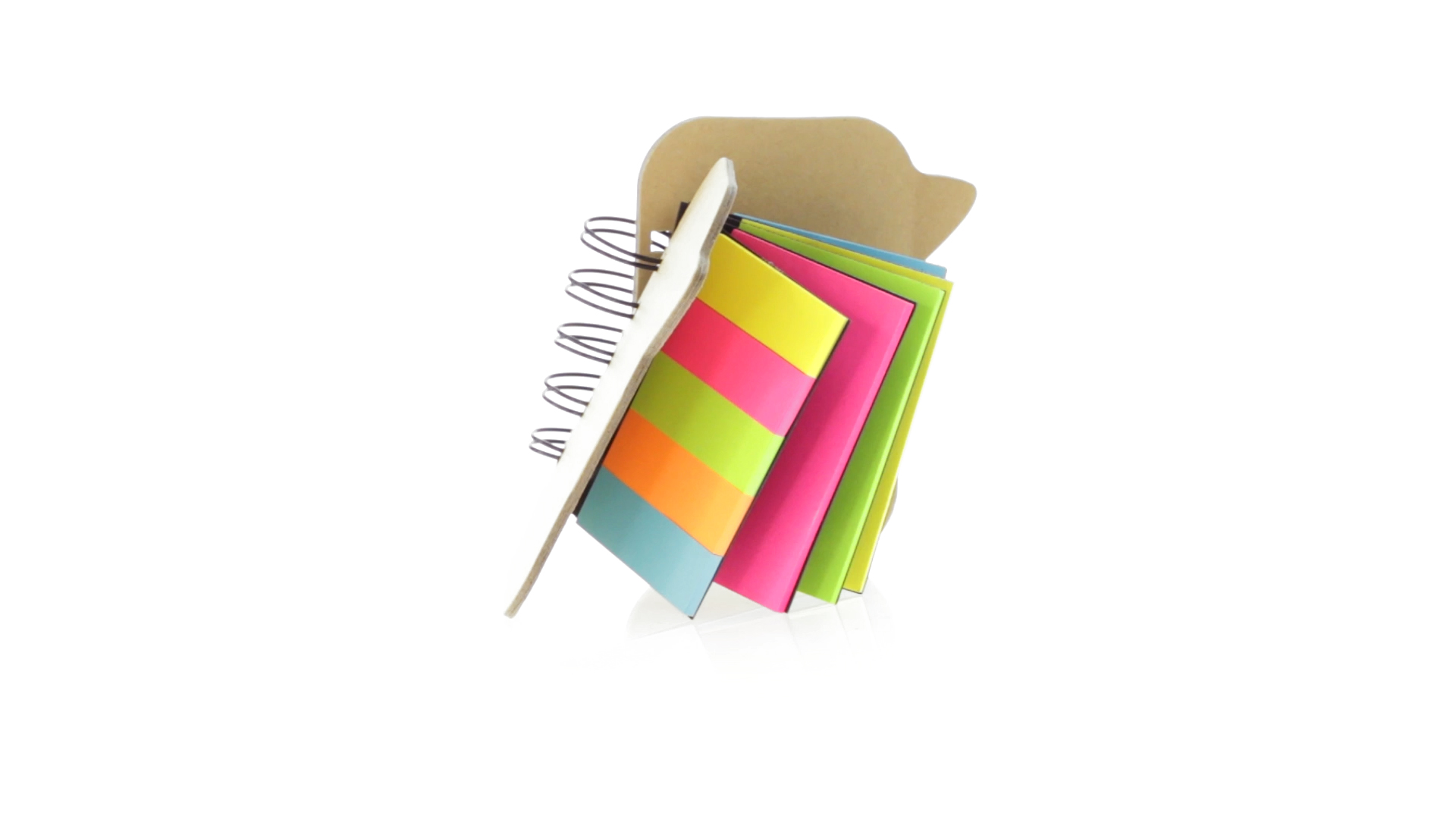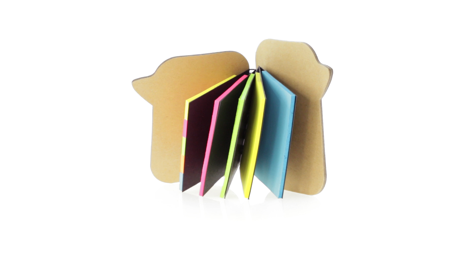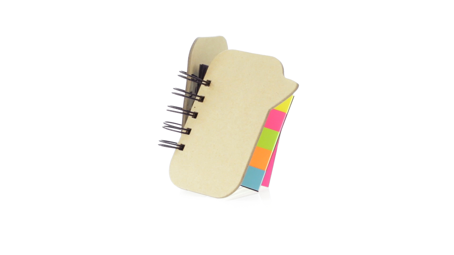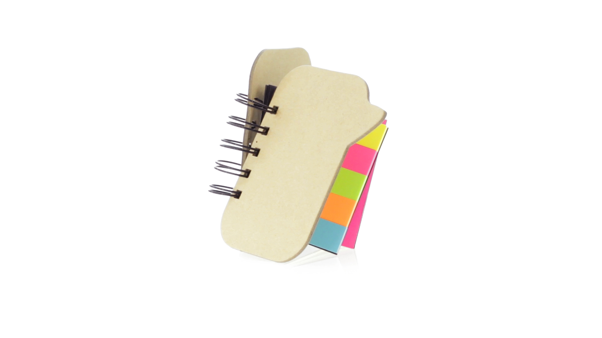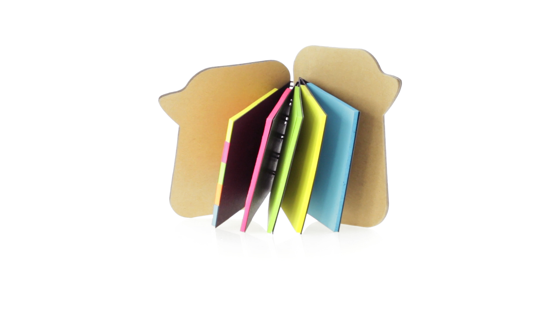 Origineller Spiral-Haftnotizblock mit Sprechblasen-Design und Soft-Touch-Cover aus solidem Recycling-Karton. Mit 100 grossen und 125 Mini-Haftnotizen.
