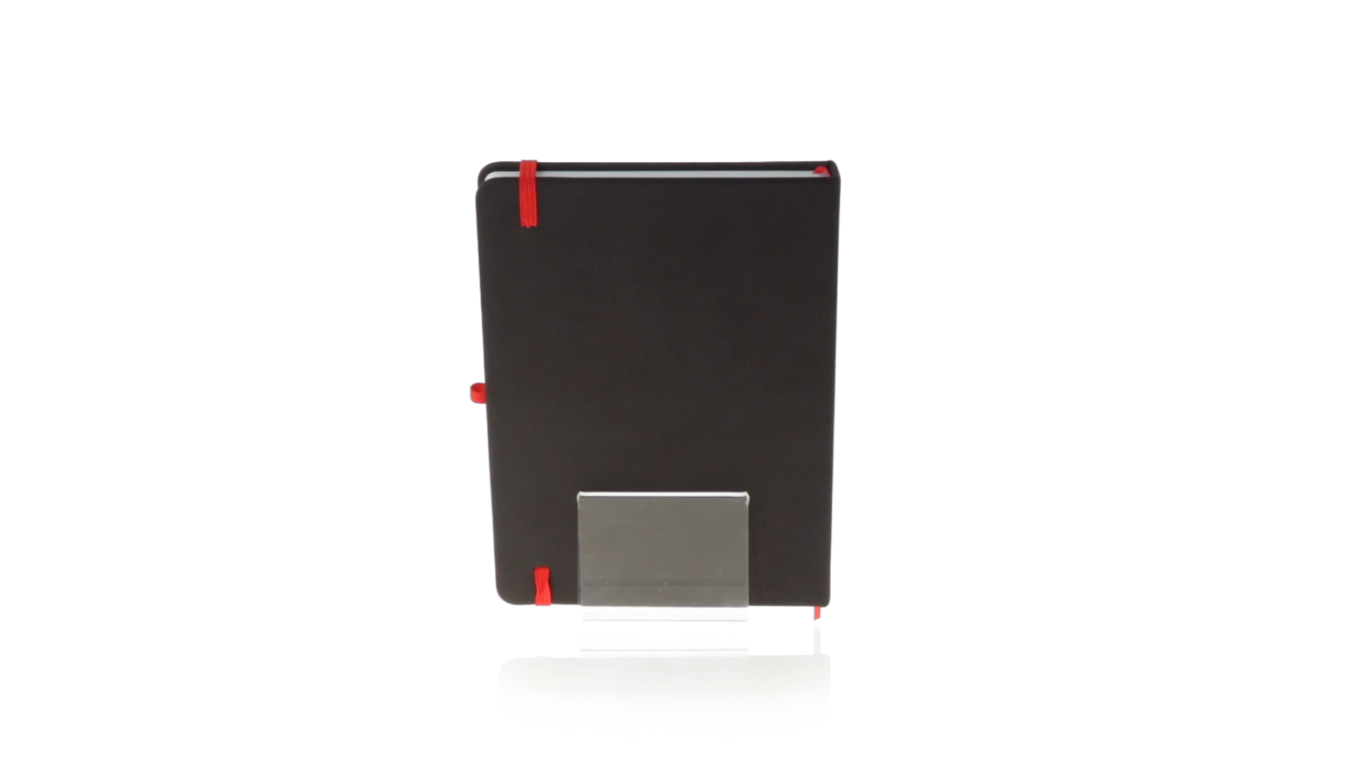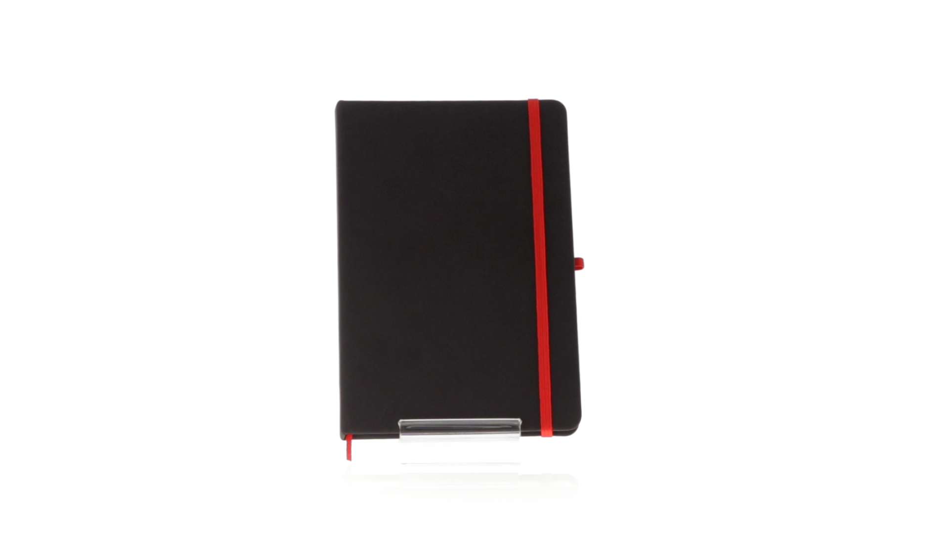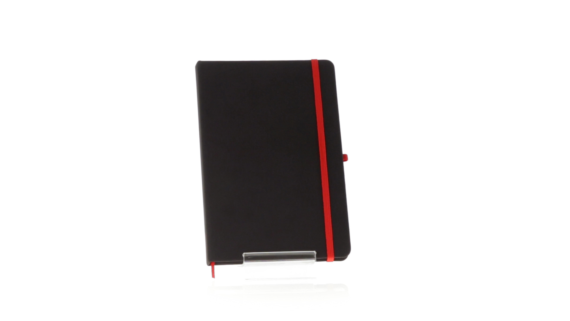Notizbuch mit Soft-Touch-Cover aus Kunstleder in elegantem Schwarz. Mit Gummibandverschluss, Lesezeichenband und elastischem Stifthalter in lebendigen Farben. Mit einer speziell für den Laserdruck entwickelten Aussenbeschichtung, durch die Ihre Werbung oder Ihr Logo perfekt graviert wird - passend zur Farbe der Kontrastdetails. Enthält 100 linierte Blätter.