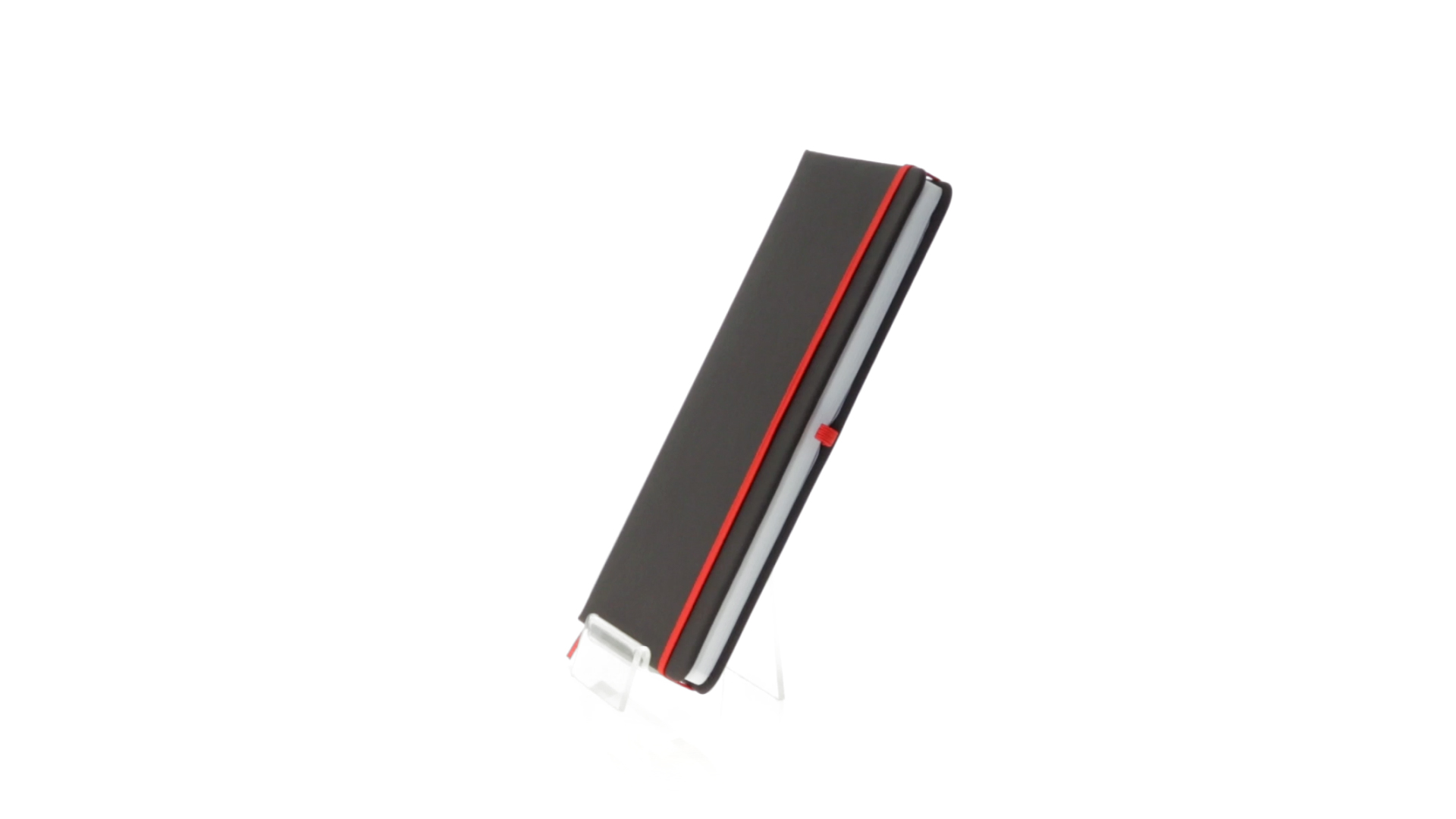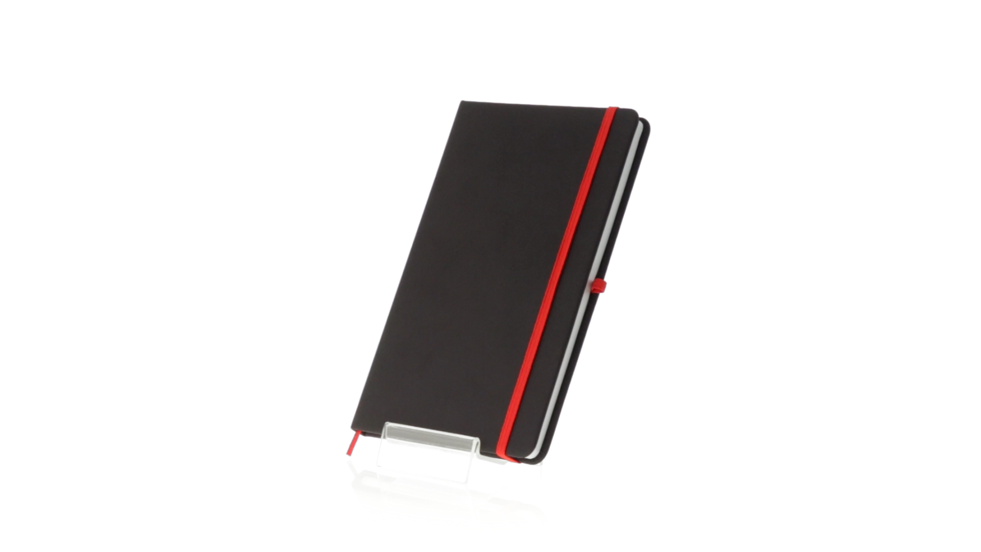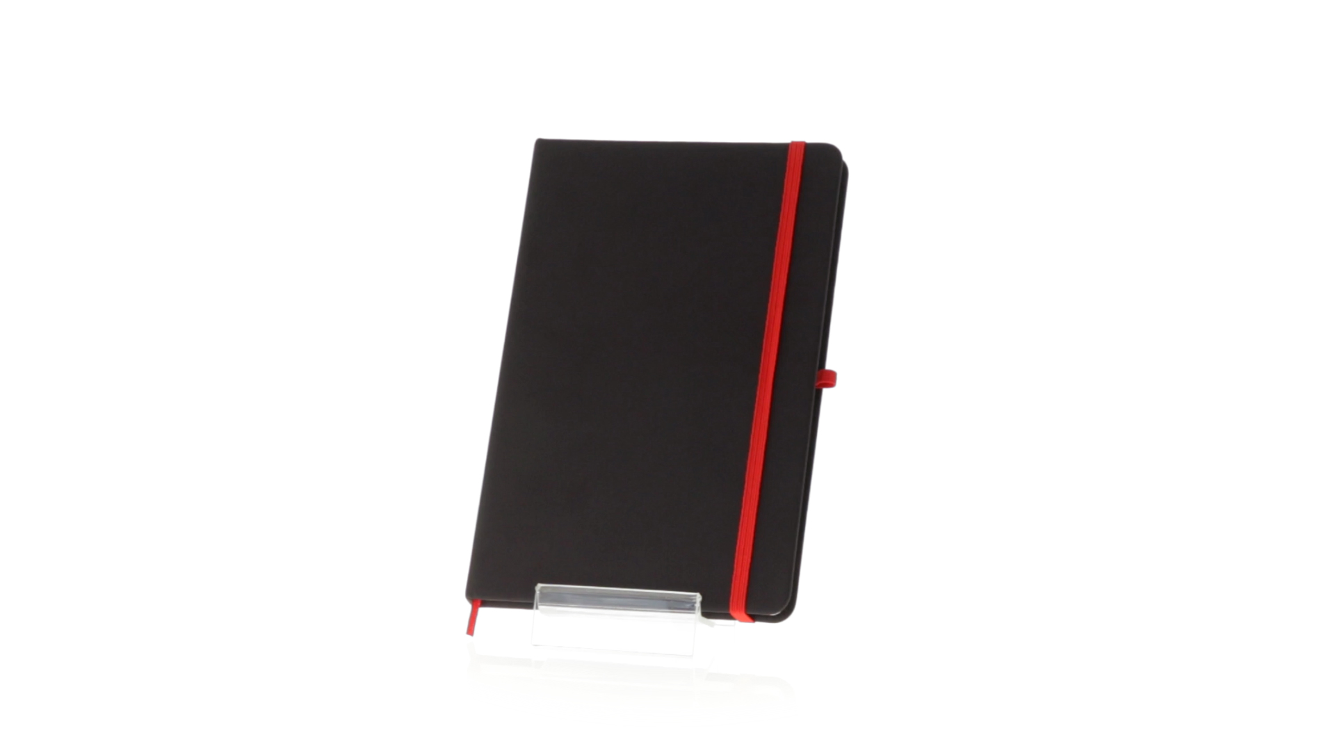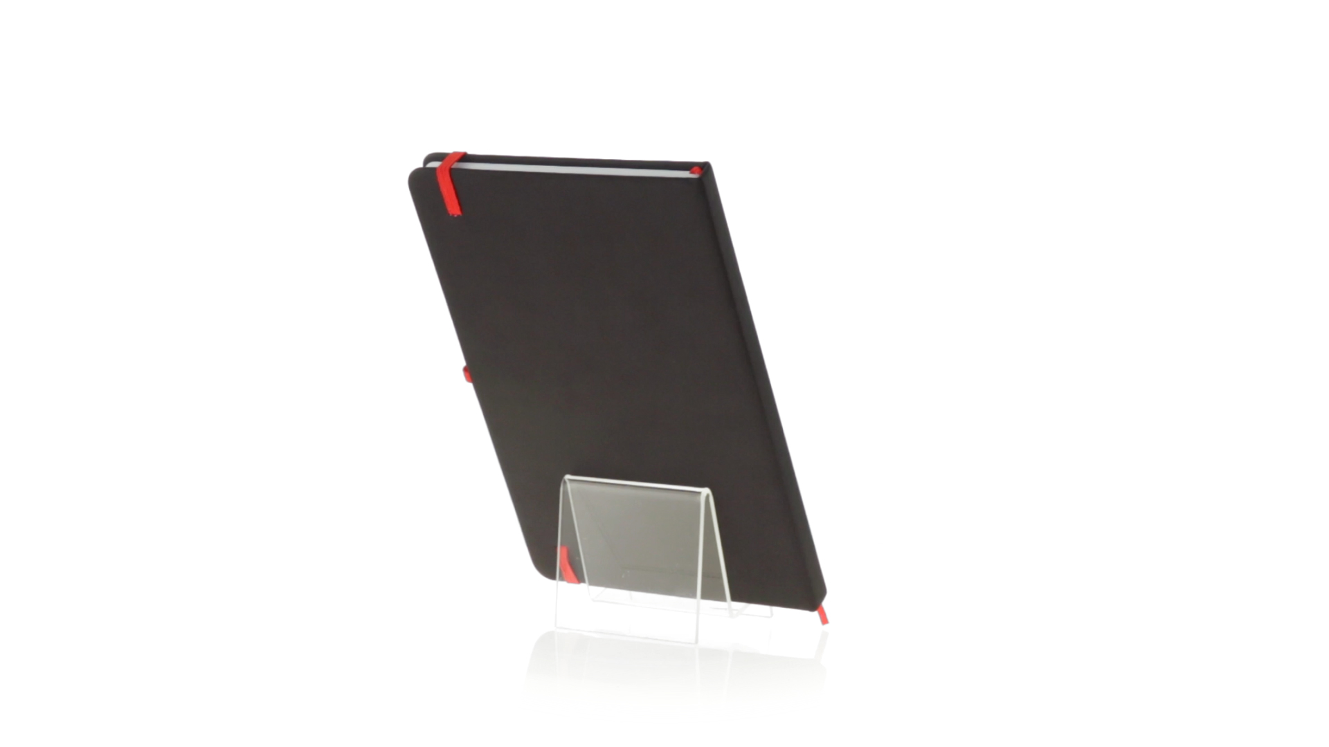 Notizbuch mit Soft-Touch-Cover aus Kunstleder in elegantem Schwarz. Mit Gummibandverschluss, Lesezeichenband und elastischem Stifthalter in lebendigen Farben. Mit einer speziell für den Laserdruck entwickelten Aussenbeschichtung, durch die Ihre Werbung oder Ihr Logo perfekt graviert wird - passend zur Farbe der Kontrastdetails. Enthält 100 linierte Blätter.