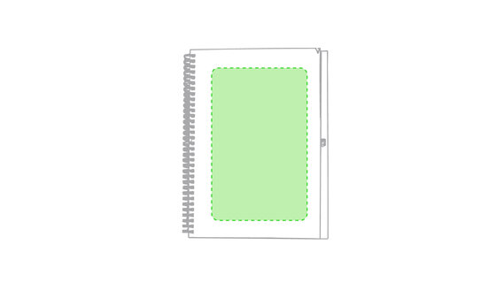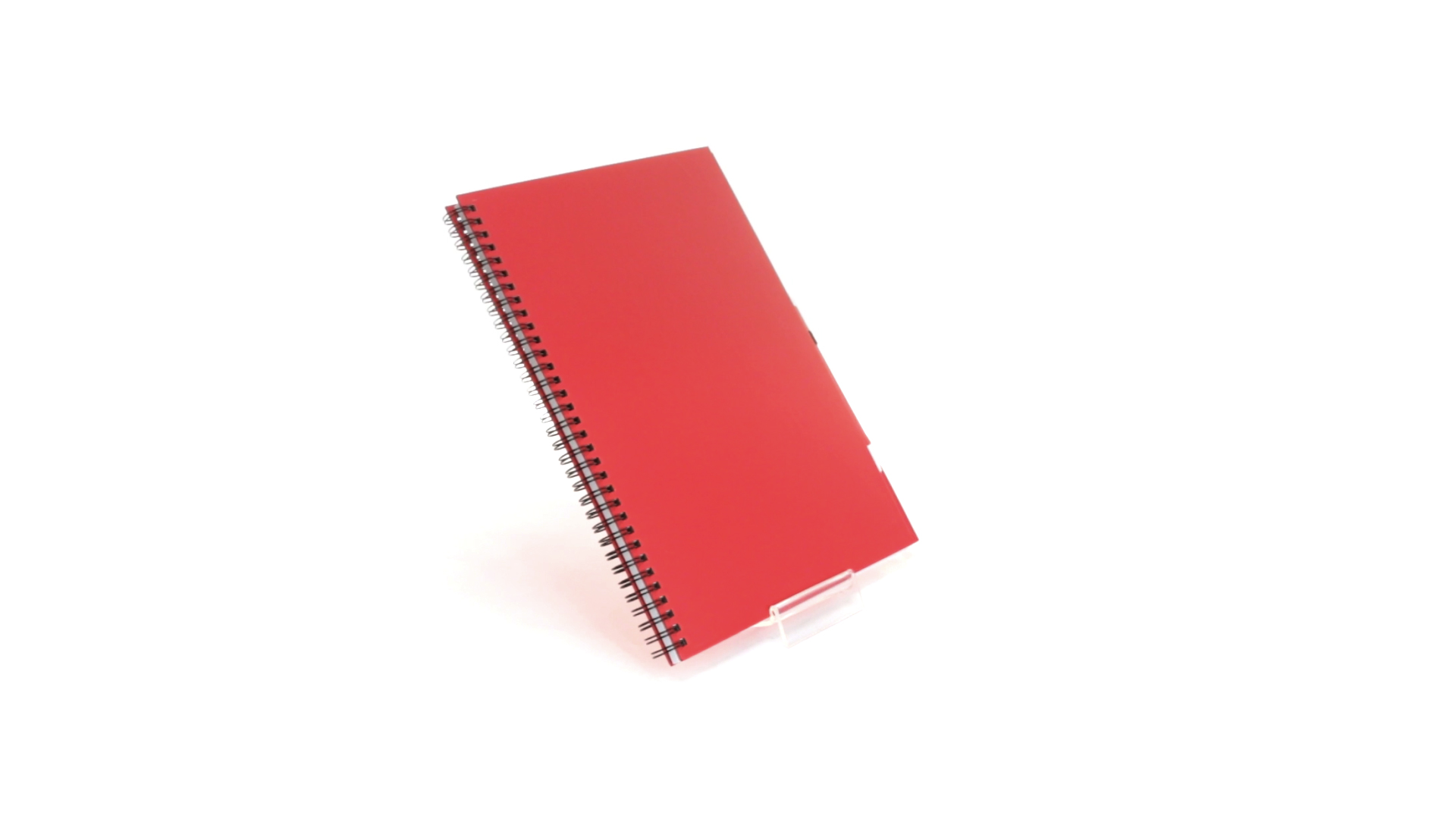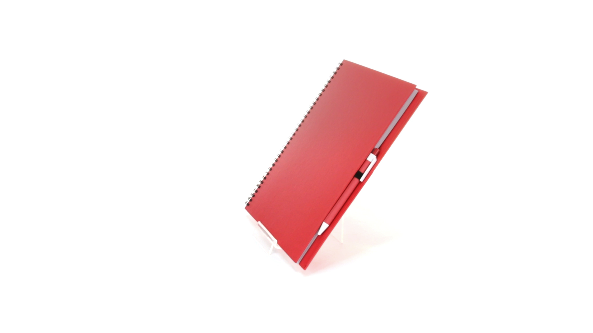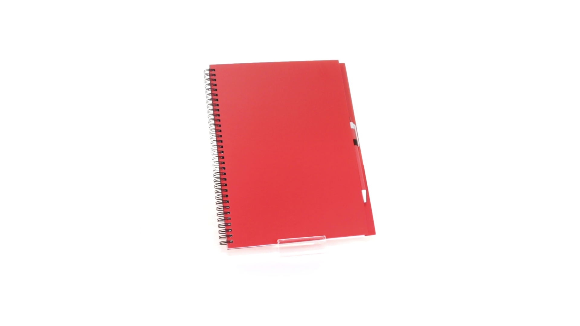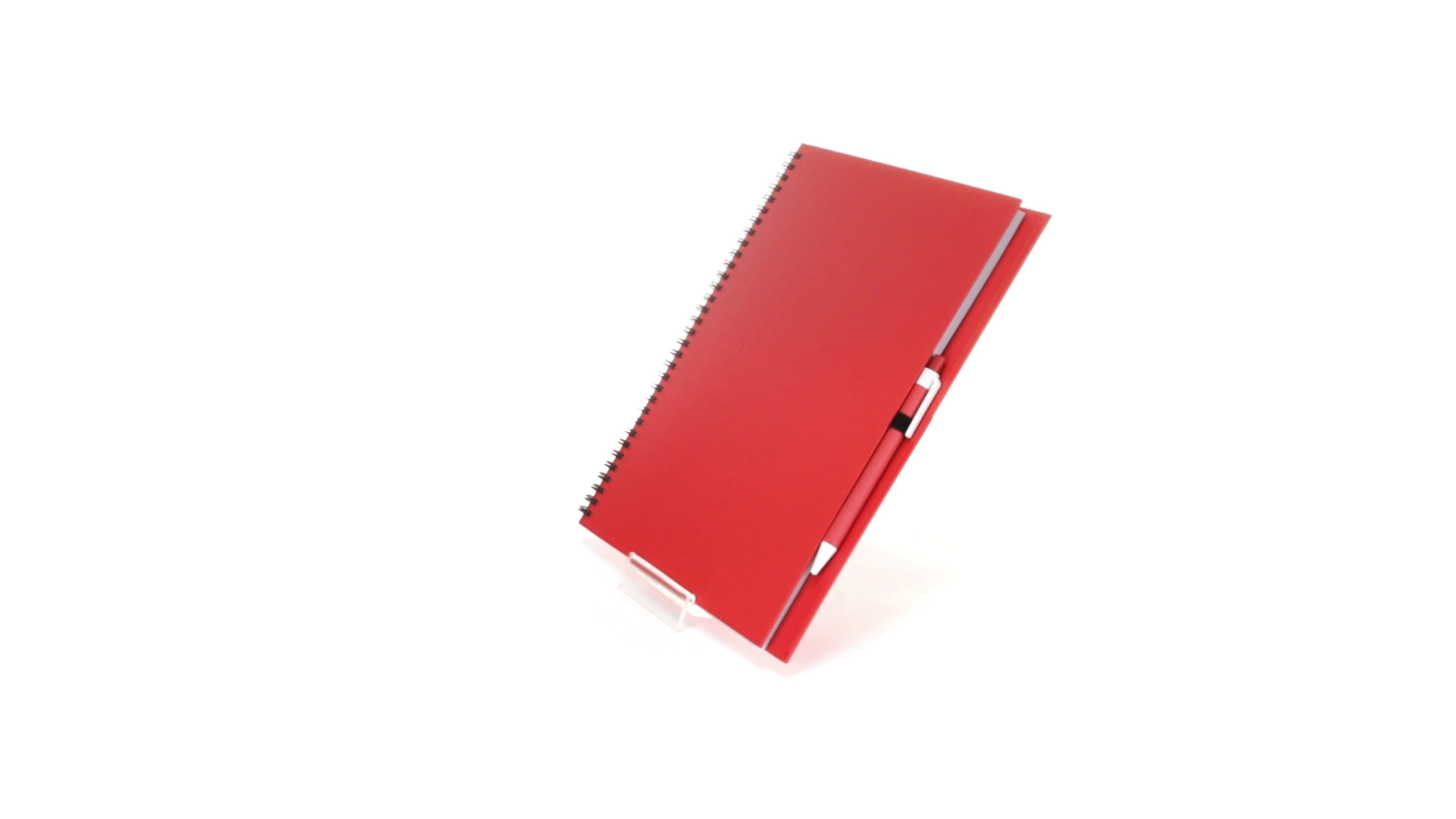 Ring-Notizbuch mit Soft-Touch-Cover aus resistentem Recyclingkarton und Kugelschreiber aus dem gleichen Material in passender Farbe. Mit 80 Blättern sowie Stifthalter auf der Rückseite. Verfügbar in verschiedenen auffälligen Farben.