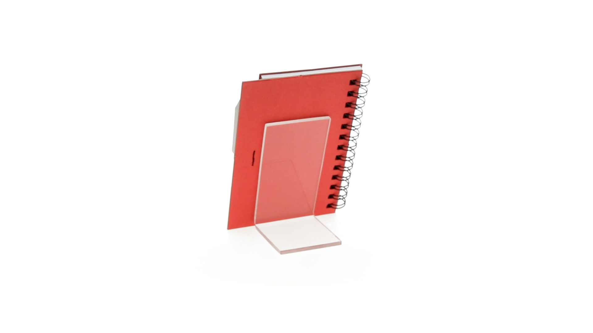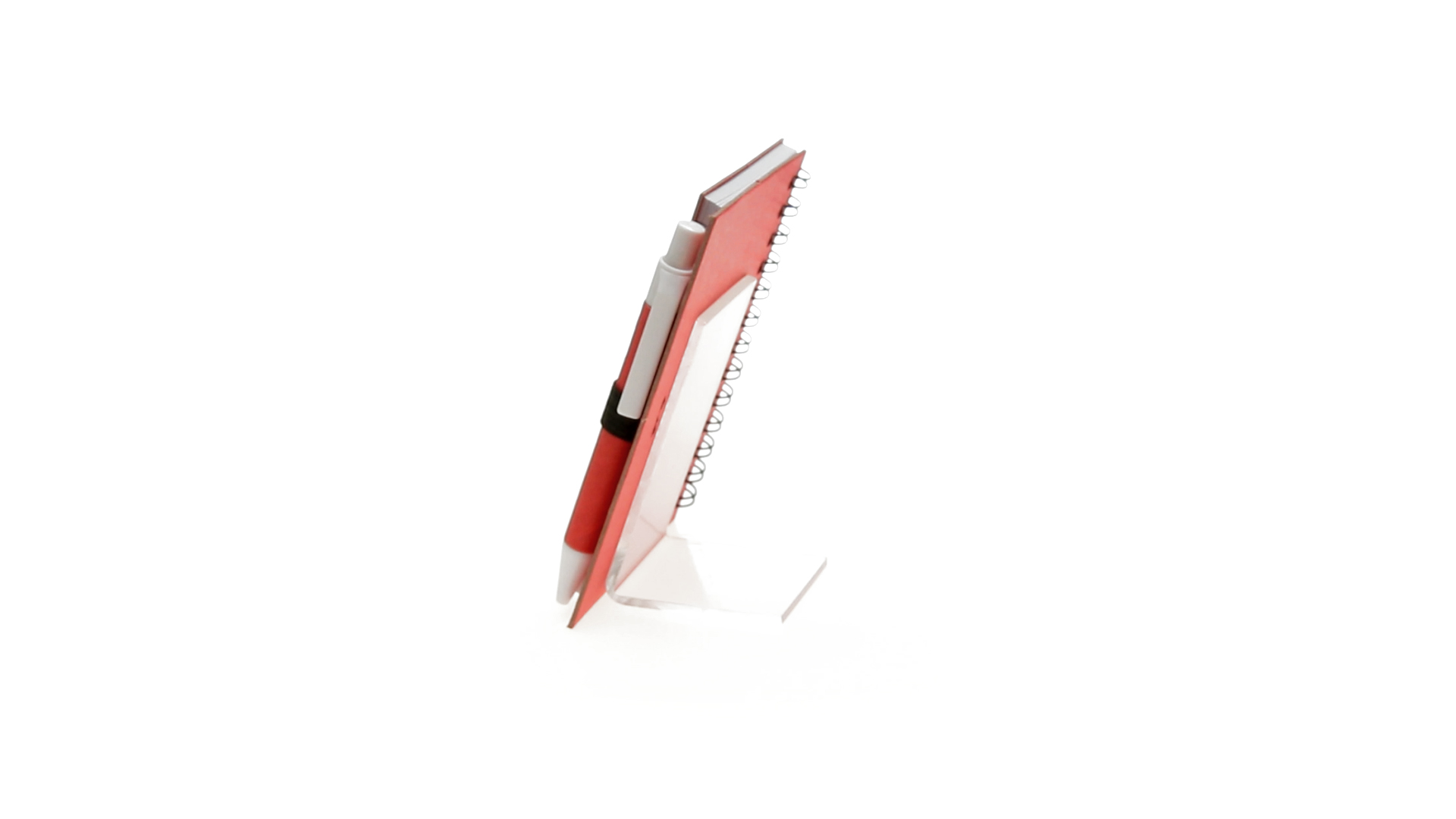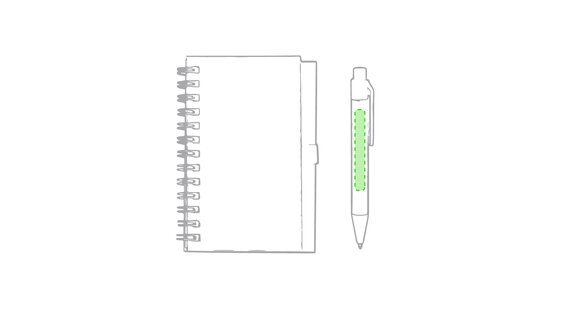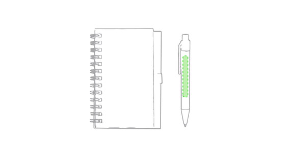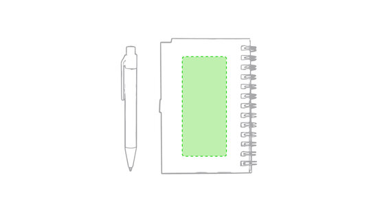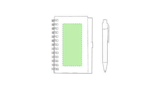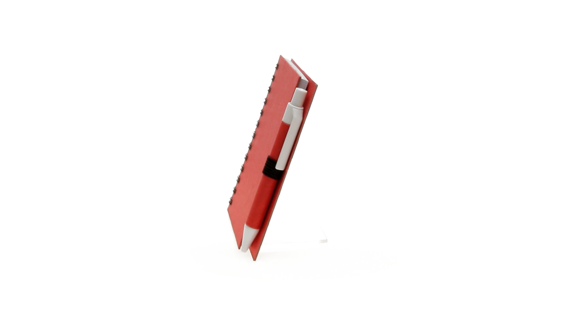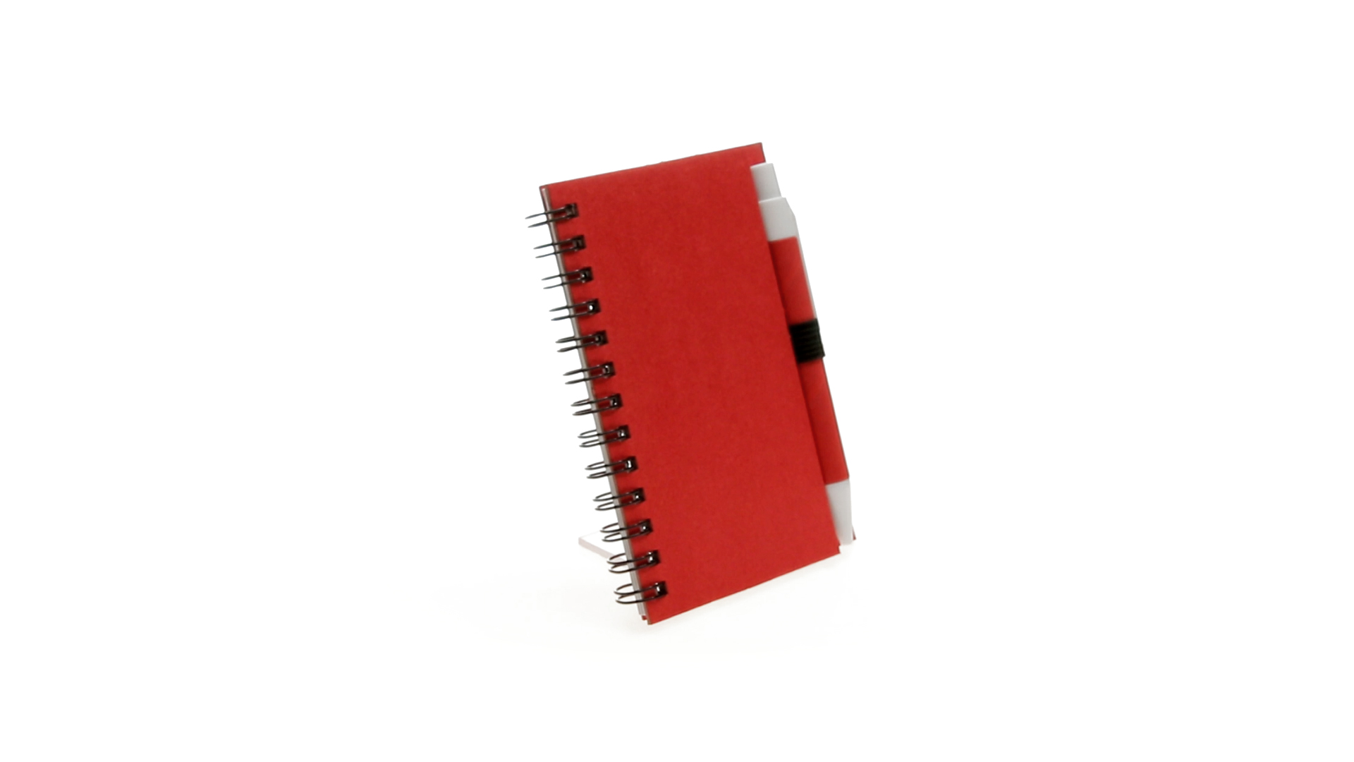 Ring-Notizbuch mit Soft-Touch-Cover aus resistentem Recyclingkarton und Kugelschreiber aus farblich passendem Recyclingkarton. In auffälligen Farben und mit 50 linierten Blättern sowie Kugelschreiberhalter auf der Rückseite.