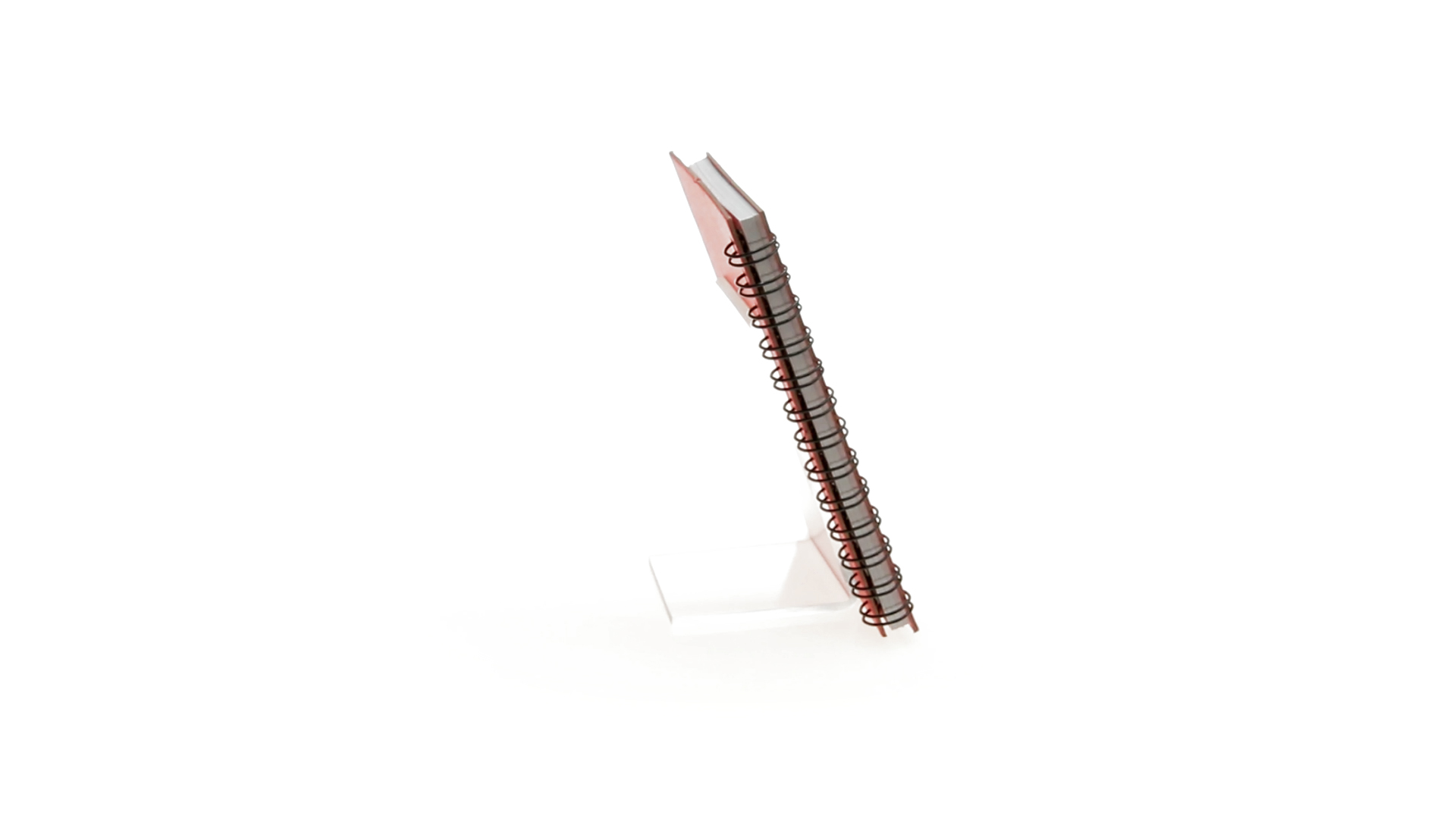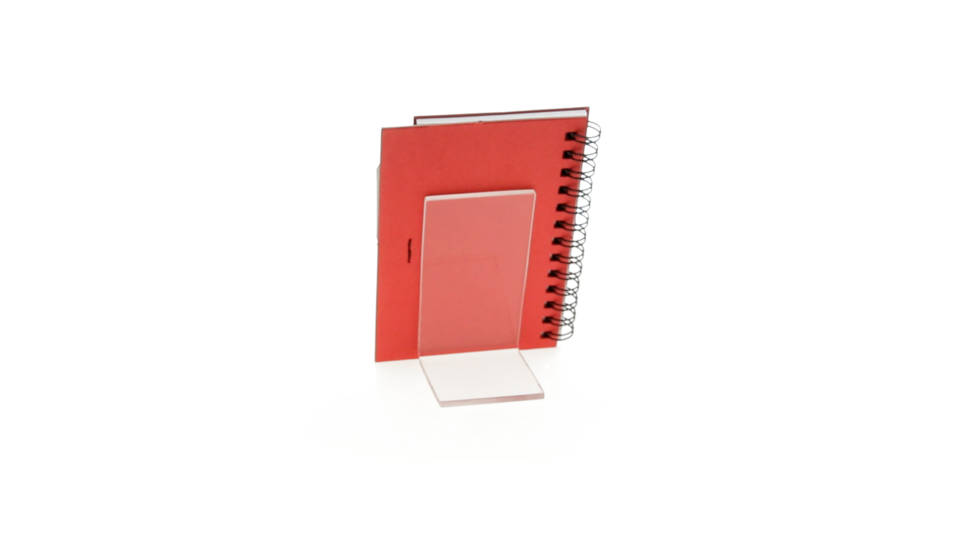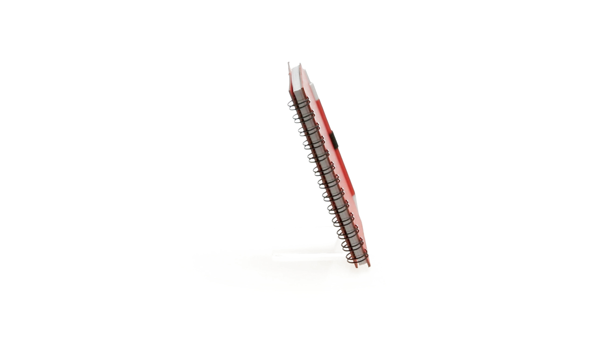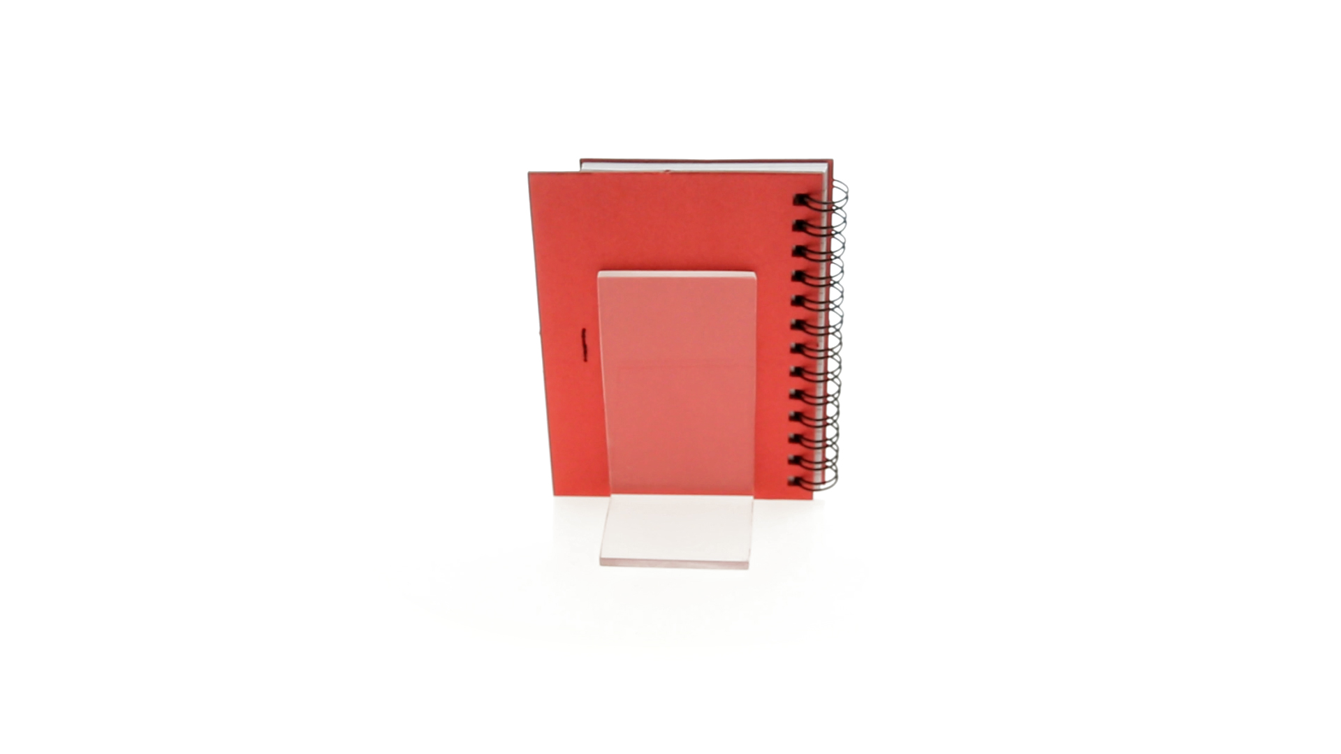 Ring-Notizbuch mit Soft-Touch-Cover aus resistentem Recyclingkarton und Kugelschreiber aus farblich passendem Recyclingkarton. In auffälligen Farben und mit 50 linierten Blättern sowie Kugelschreiberhalter auf der Rückseite.