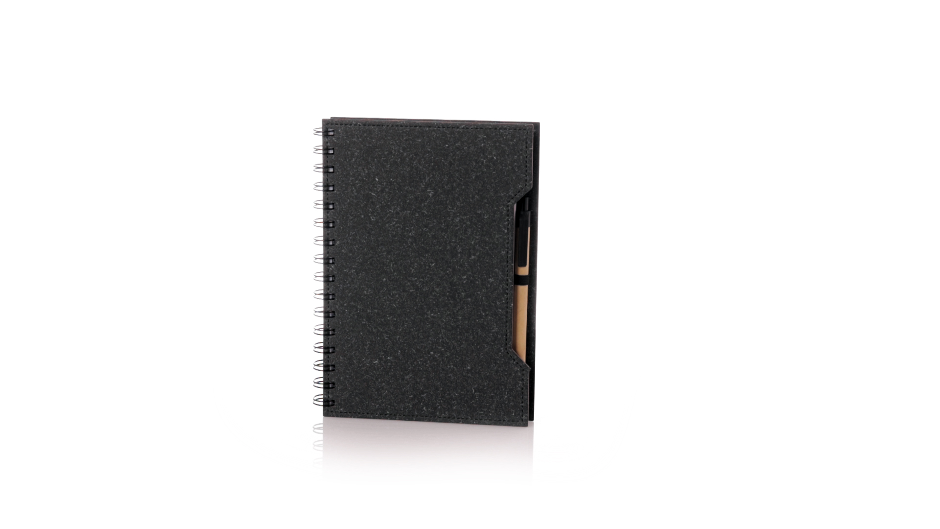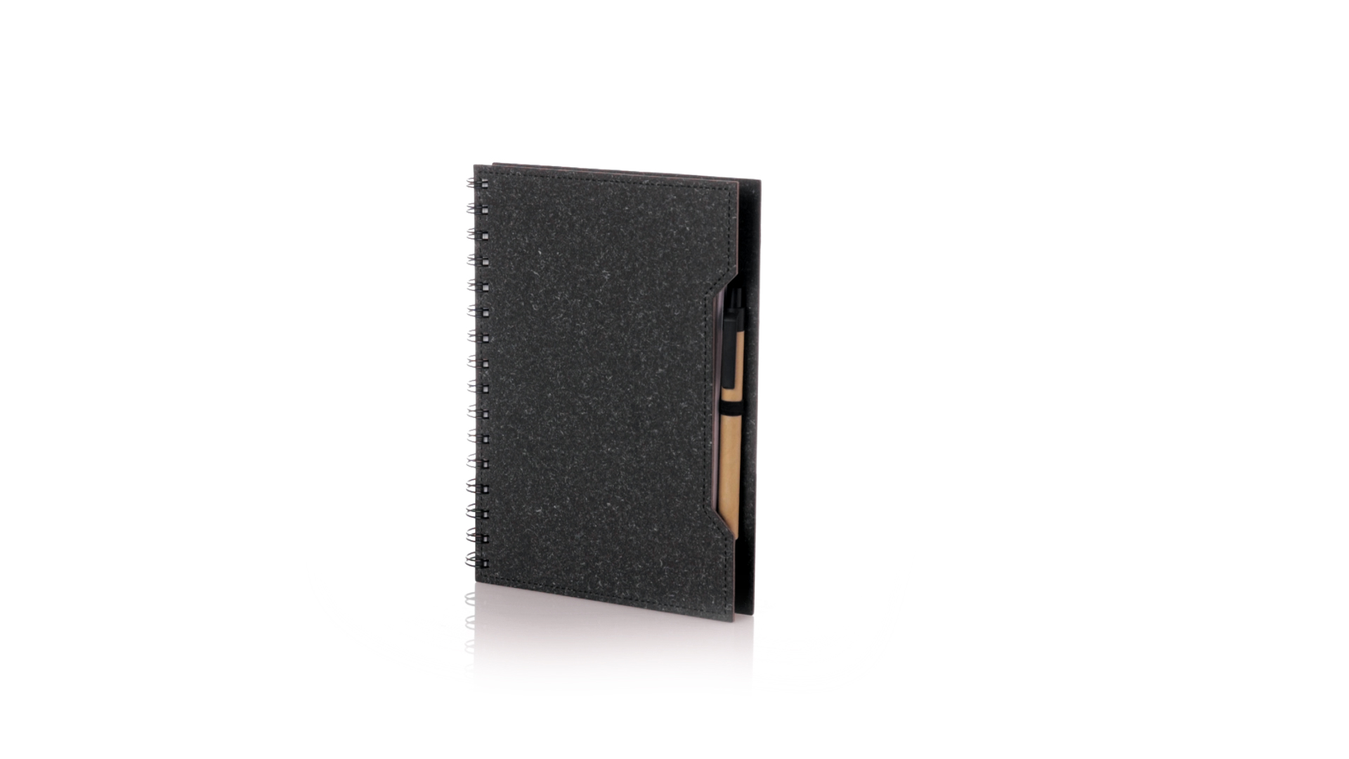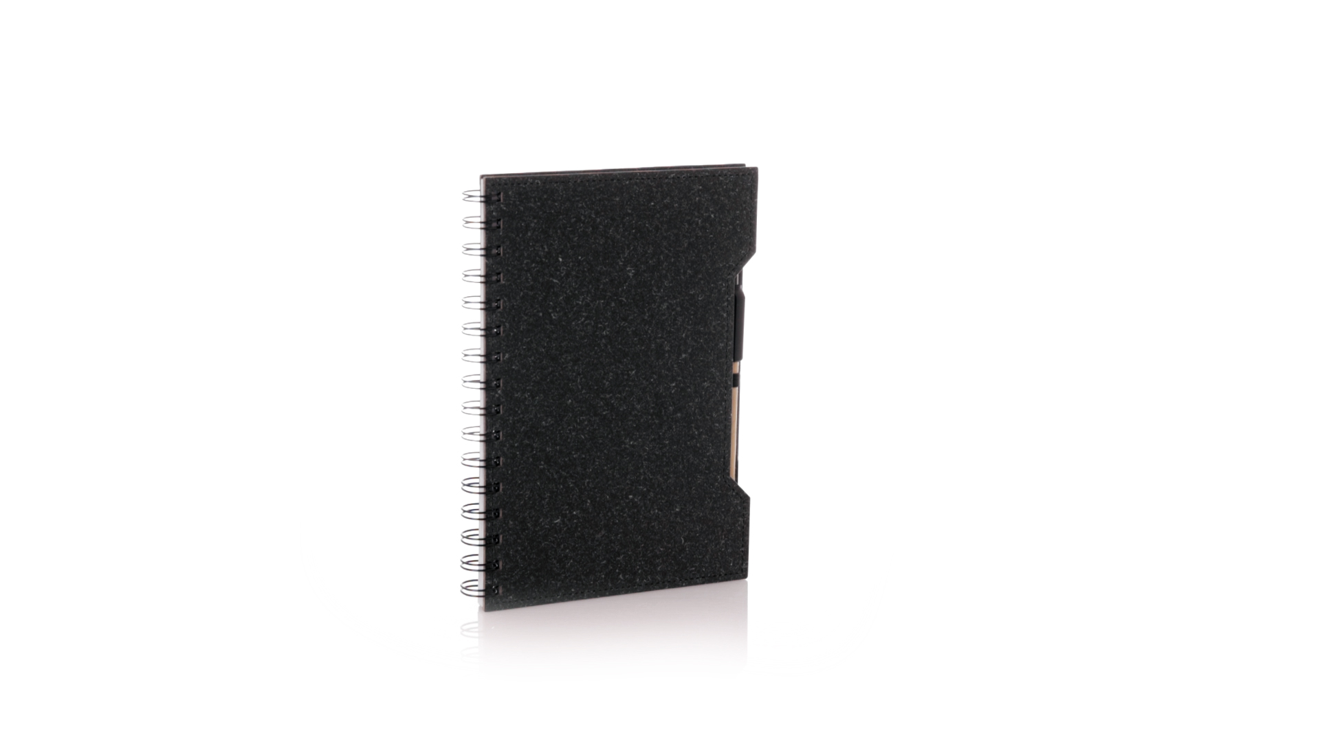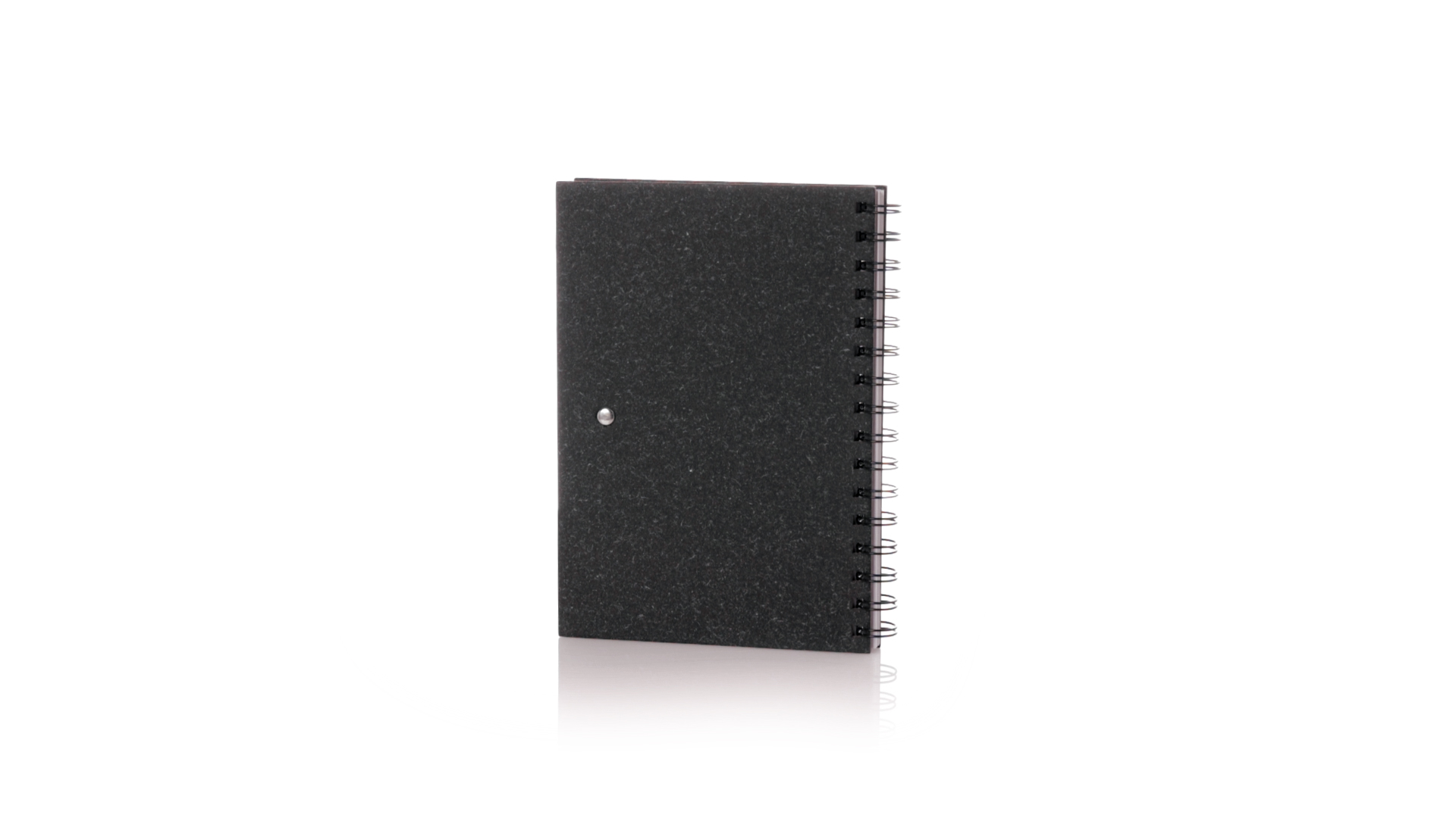Notizbuchset aus recyceltem Karton. Inklusive Ringnotizbuch mit starrem Einband aus recyceltem Karton und Nähten in Kontrastfarben. 80 einfarbige Innenblätter in Naturfarbe, 25 grosse Haftnotizen und 100 Mini-Haftnotizen in 4 verschiedenen Pastellfarben. Inklusive praktischem Stifthalter und Kugelschreiber aus recyceltem Karton und mit blauer Tinte. Präsentiert in einer individuellen Papiertüte.