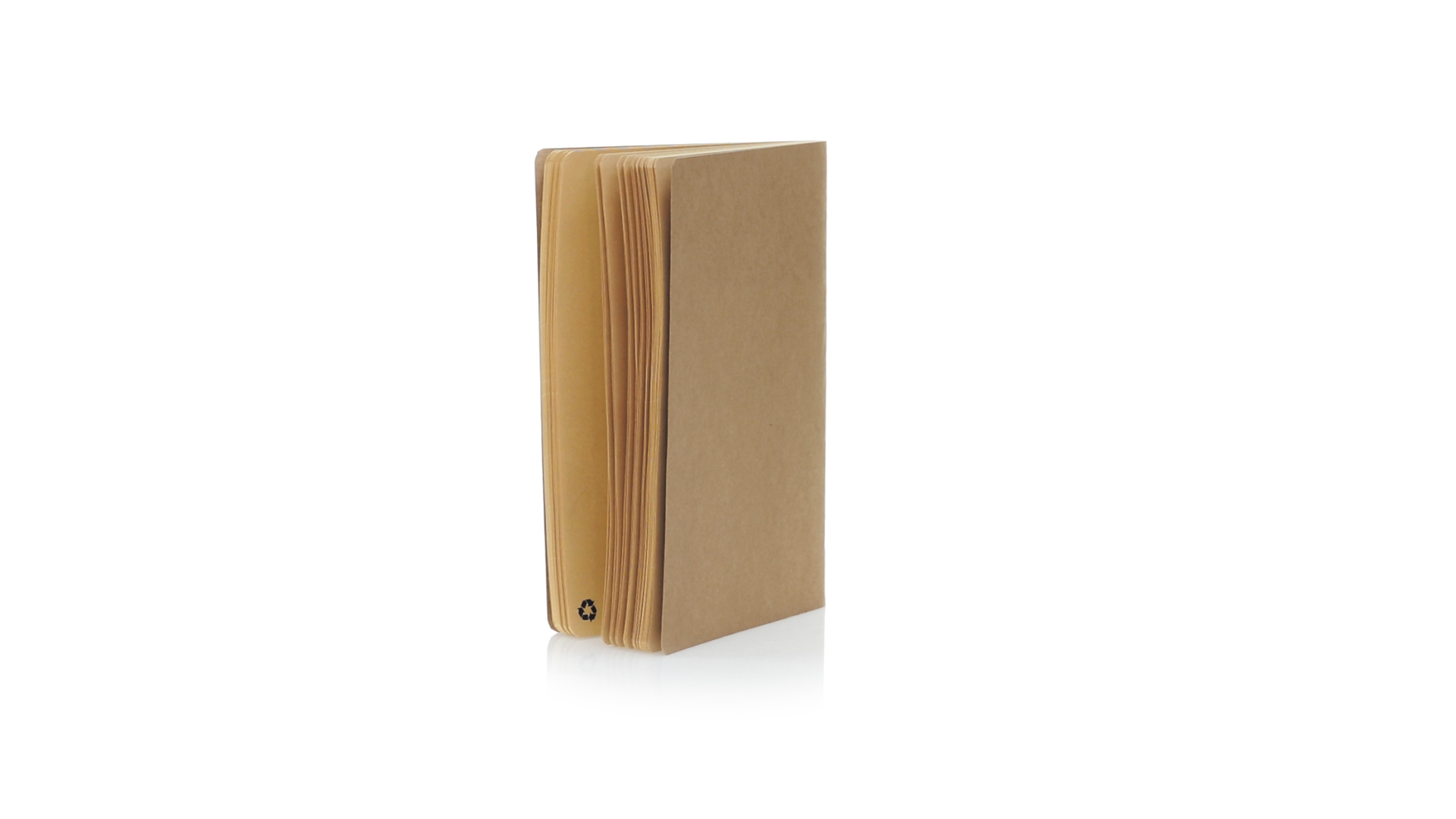 A5 Notizbuch der Liene "Natur" mit weichen Einbänden aus widerstandsfähigem Recyclingkarton. 60 einfache Blätter mit Kraft-Finish und recyceltem Abzeichen.