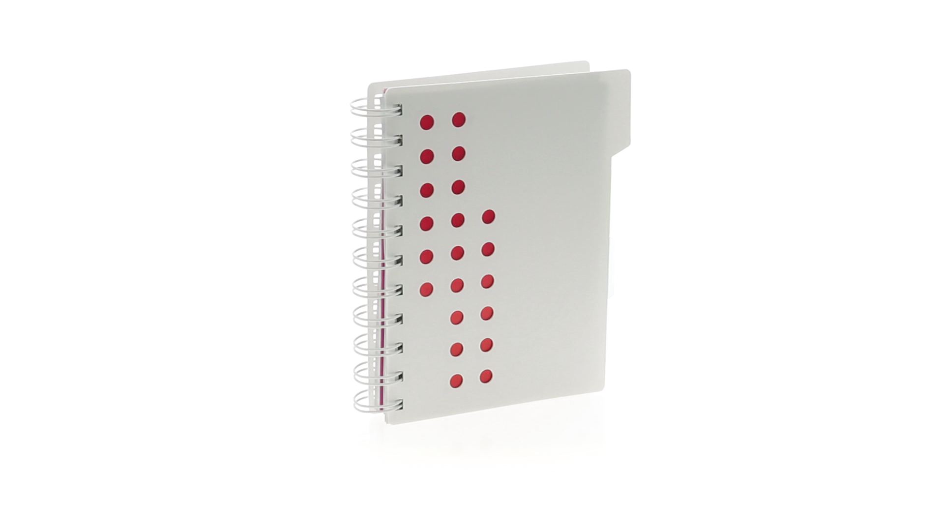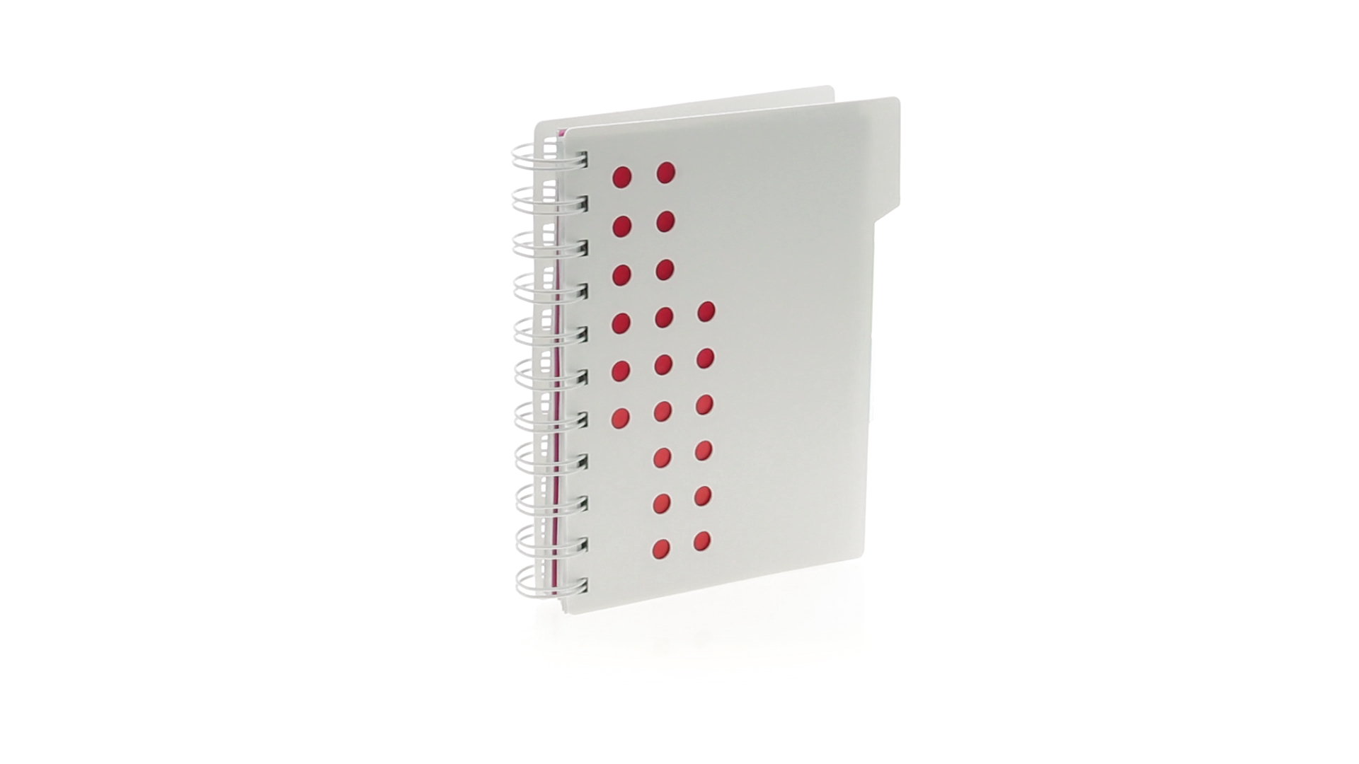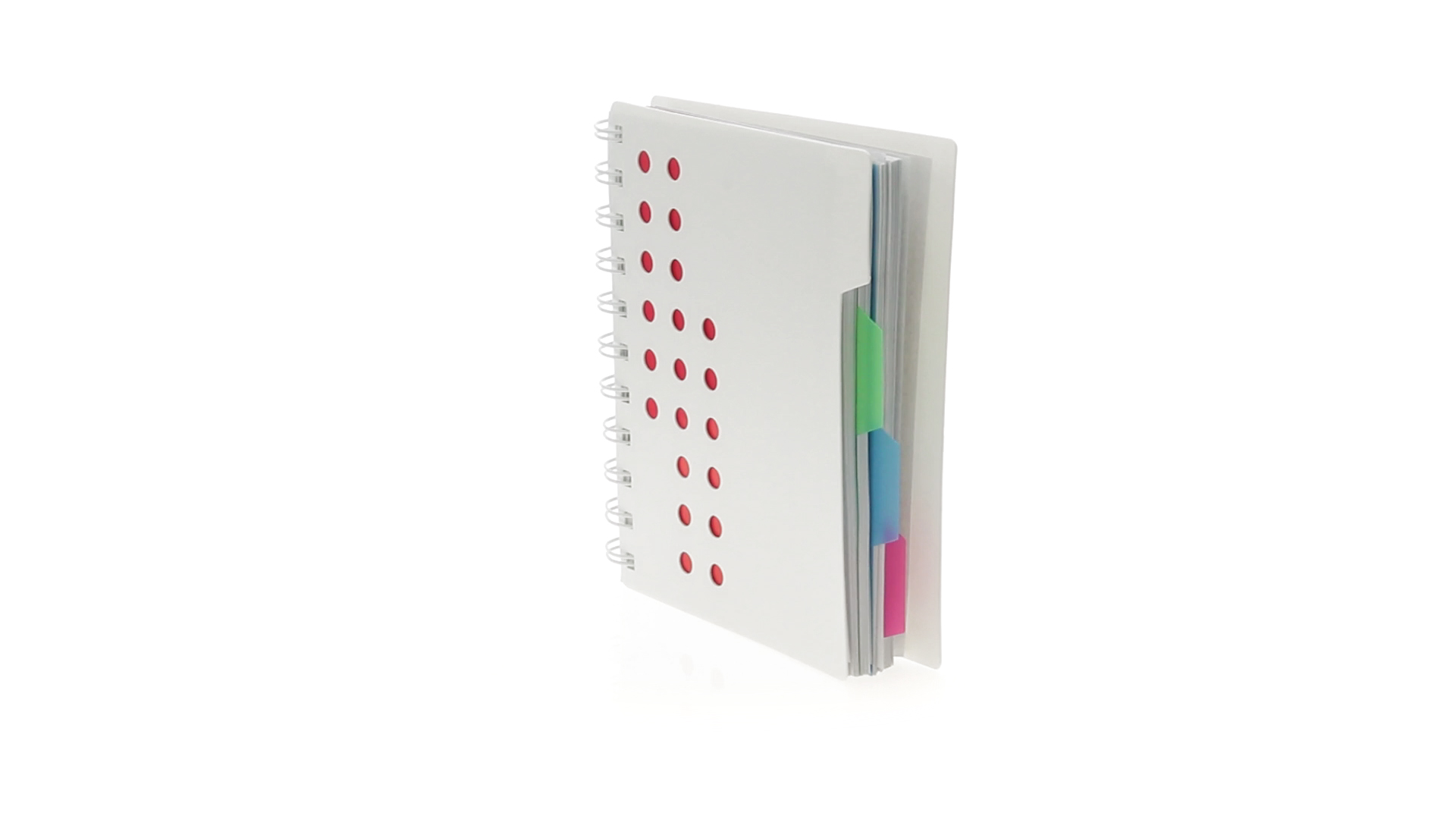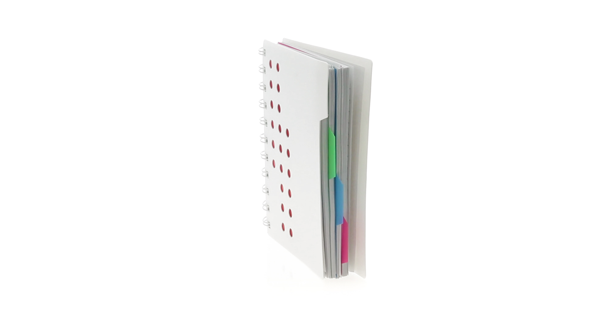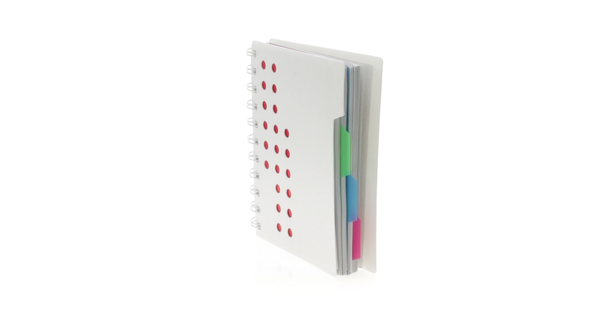 Originelles, zweifarbiges Ring-Notizbuch mit perforiertem Cover und 116 linierten Blättern mit Kopfzeile -Datum-/- Nummer- und Register-Trenner zum Beschriften.