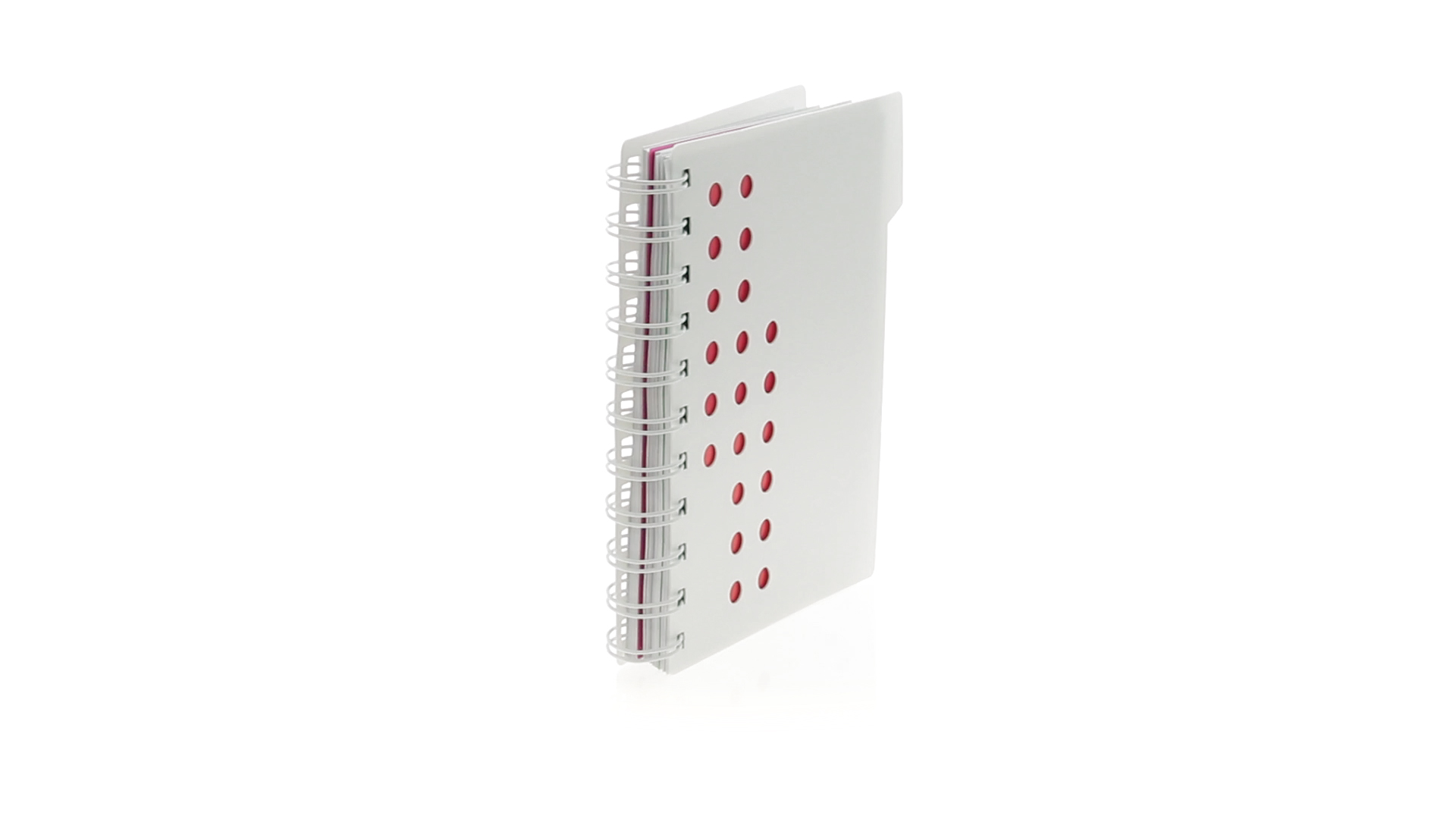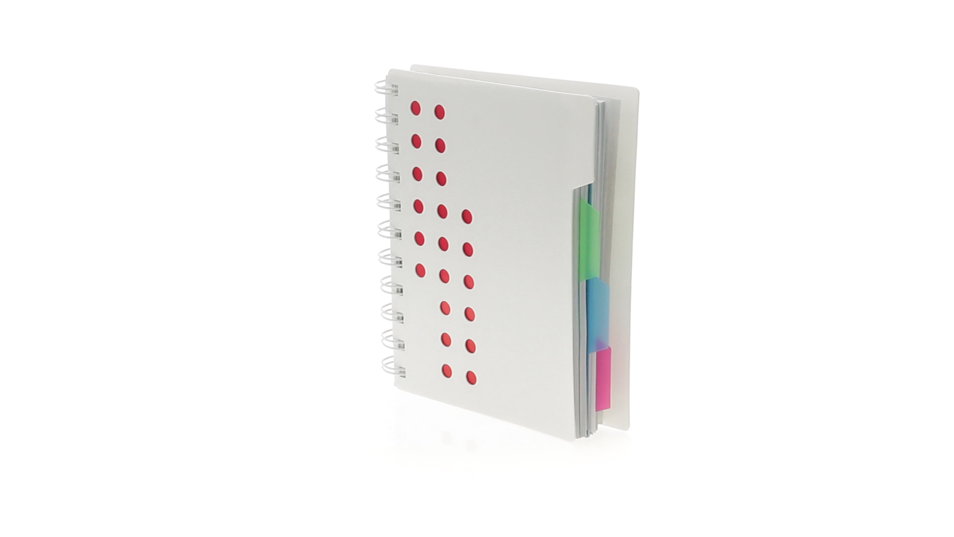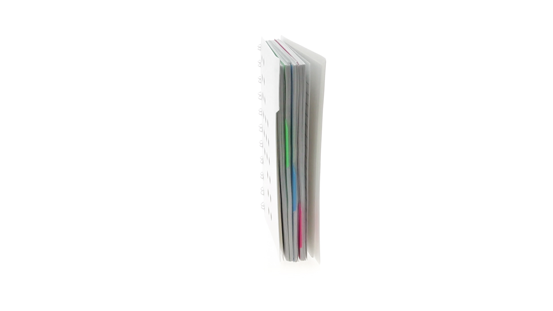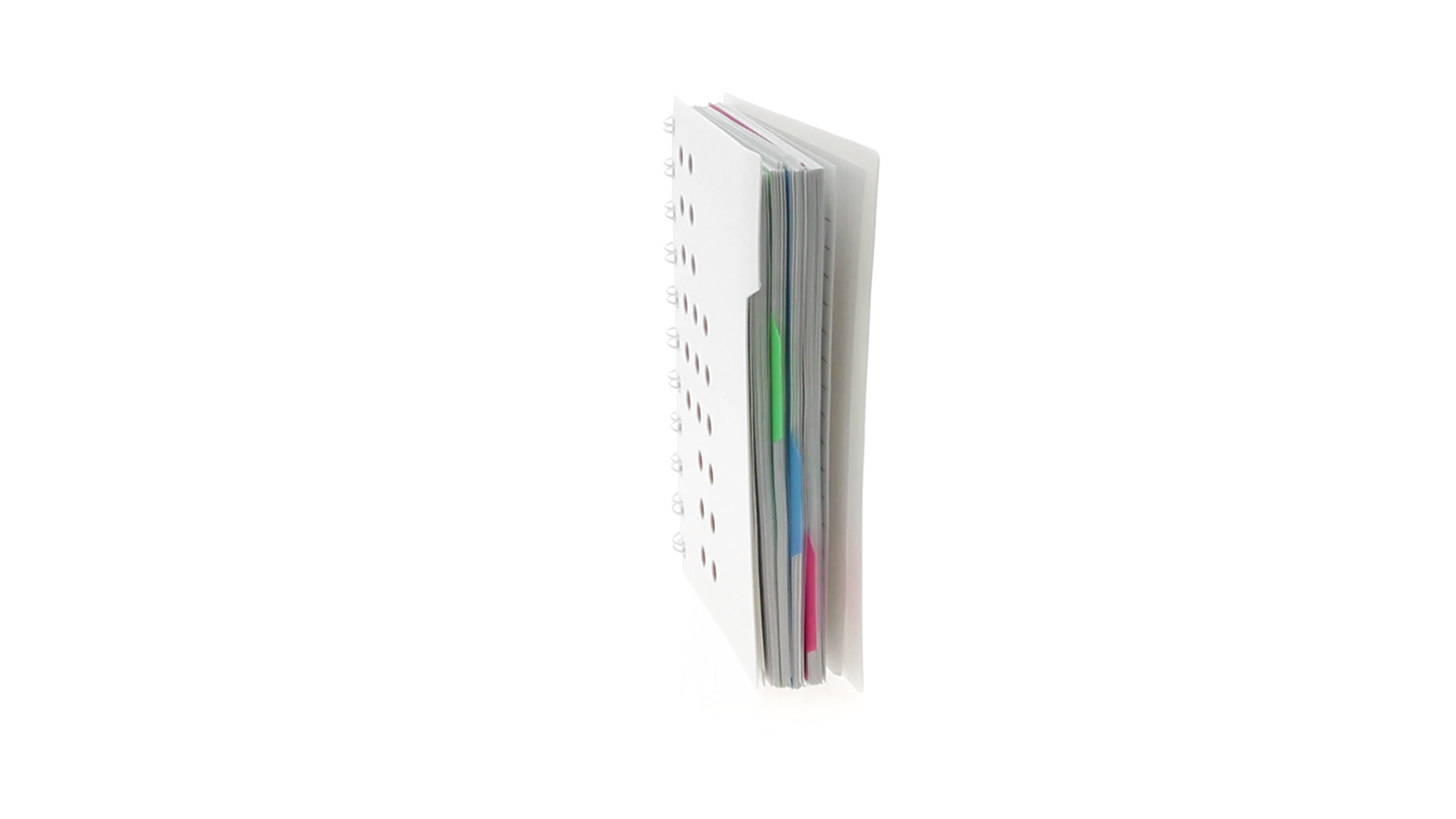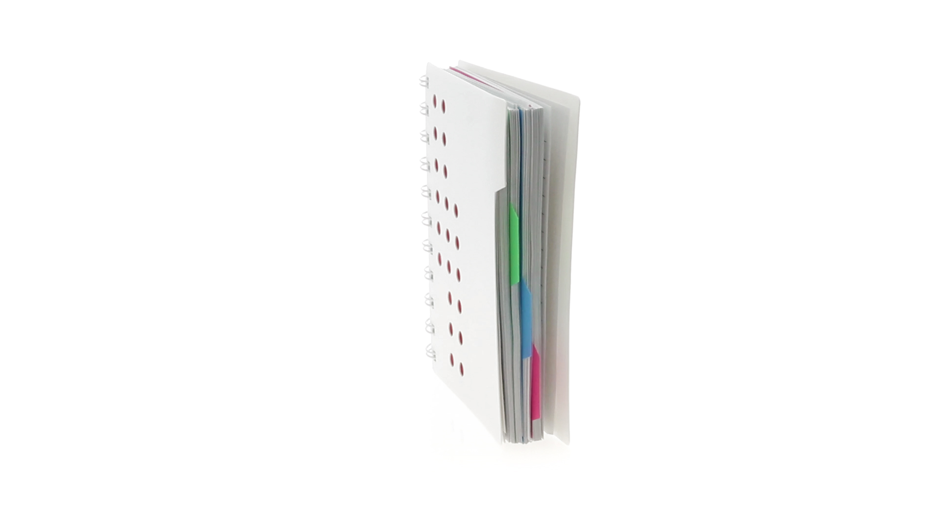 Originelles, zweifarbiges Ring-Notizbuch mit perforiertem Cover und 116 linierten Blättern mit Kopfzeile -Datum-/- Nummer- und Register-Trenner zum Beschriften.
