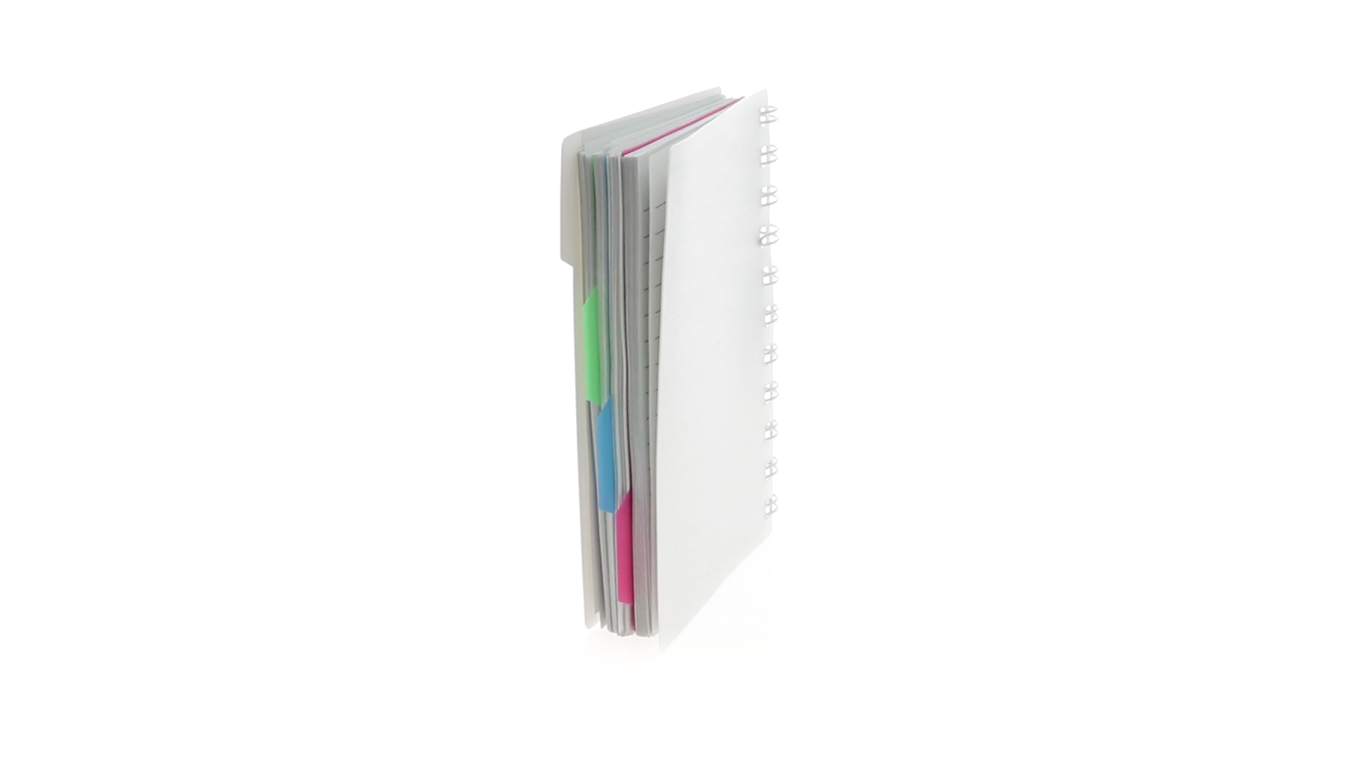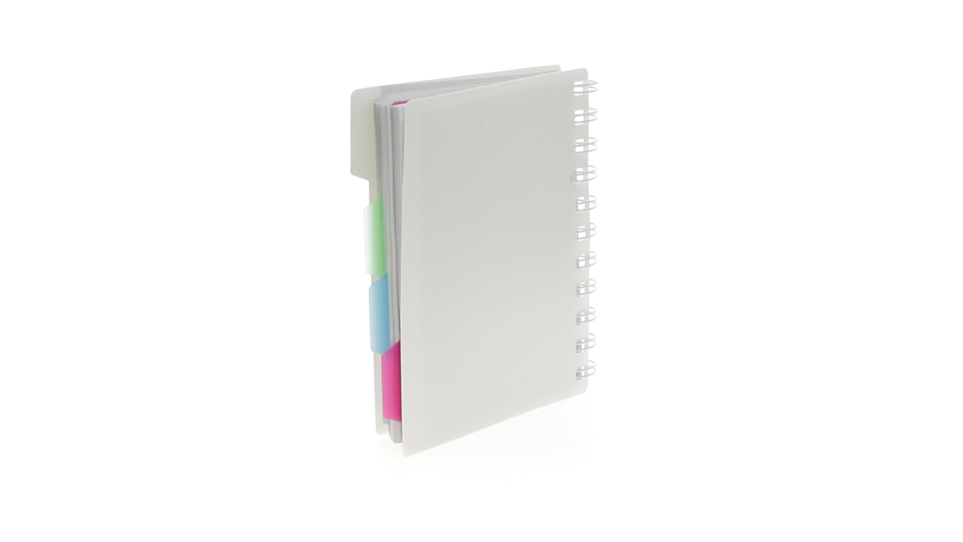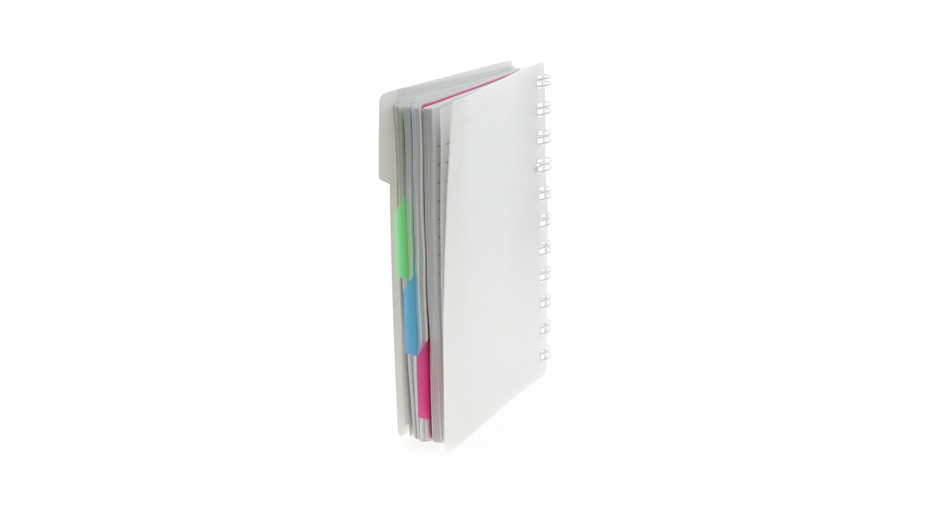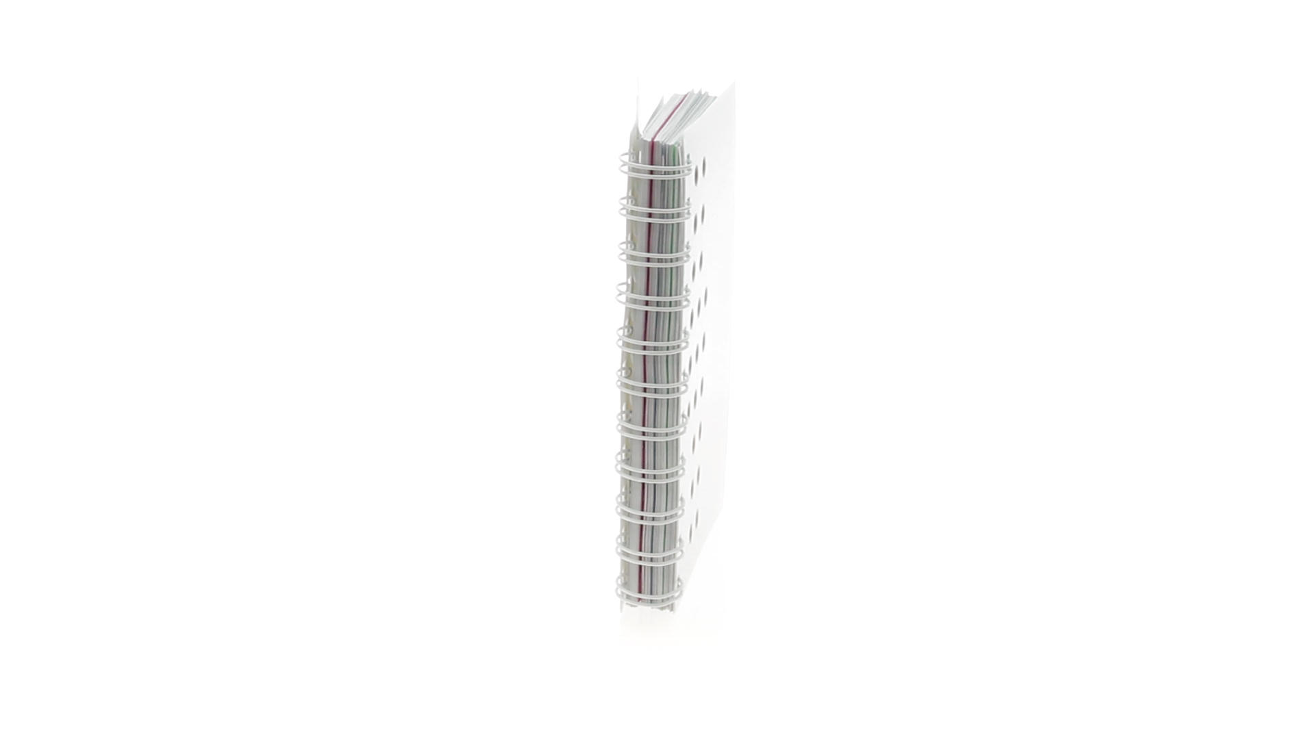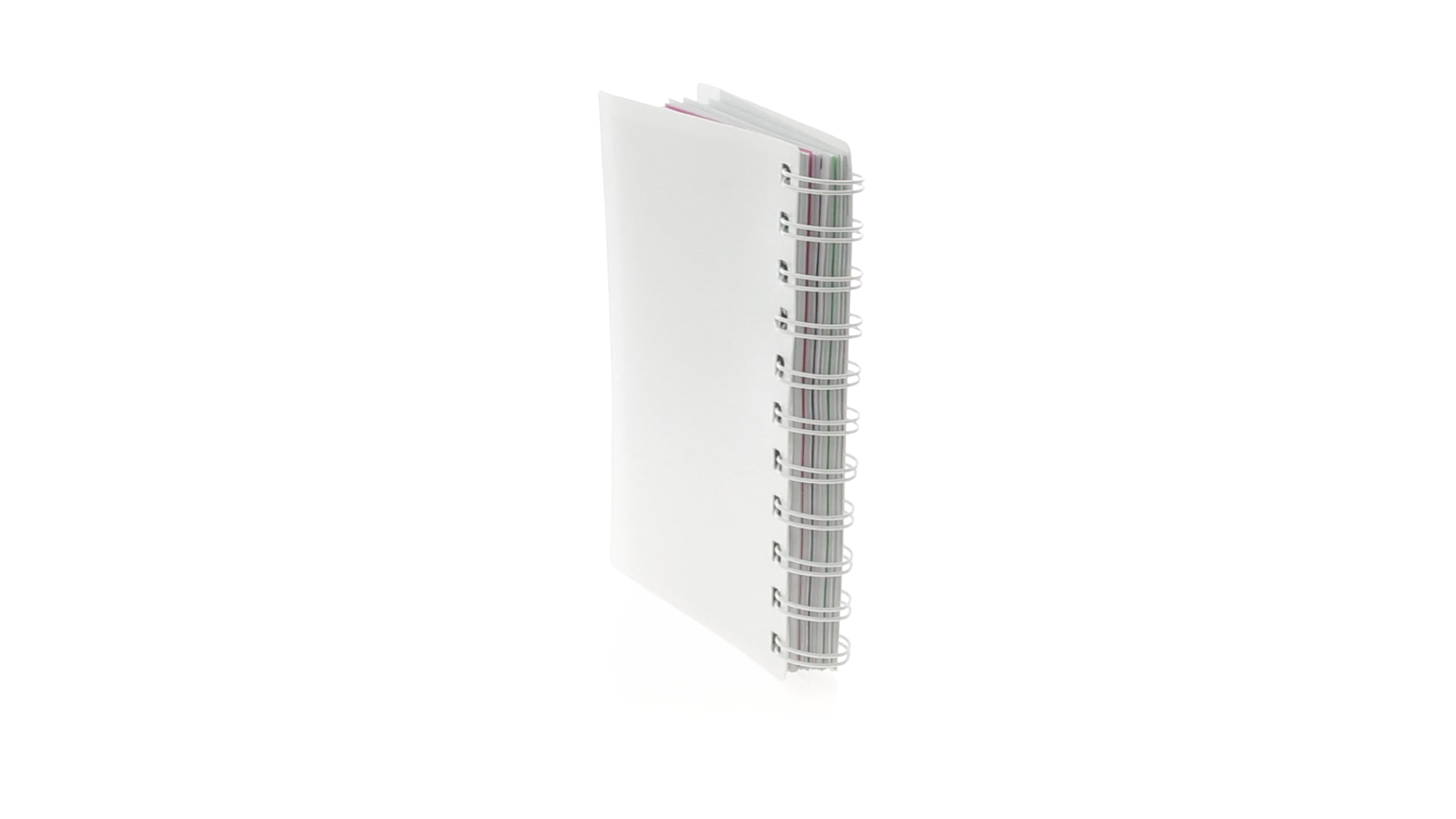 Originelles, zweifarbiges Ring-Notizbuch mit perforiertem Cover und 116 linierten Blättern mit Kopfzeile -Datum-/- Nummer- und Register-Trenner zum Beschriften.