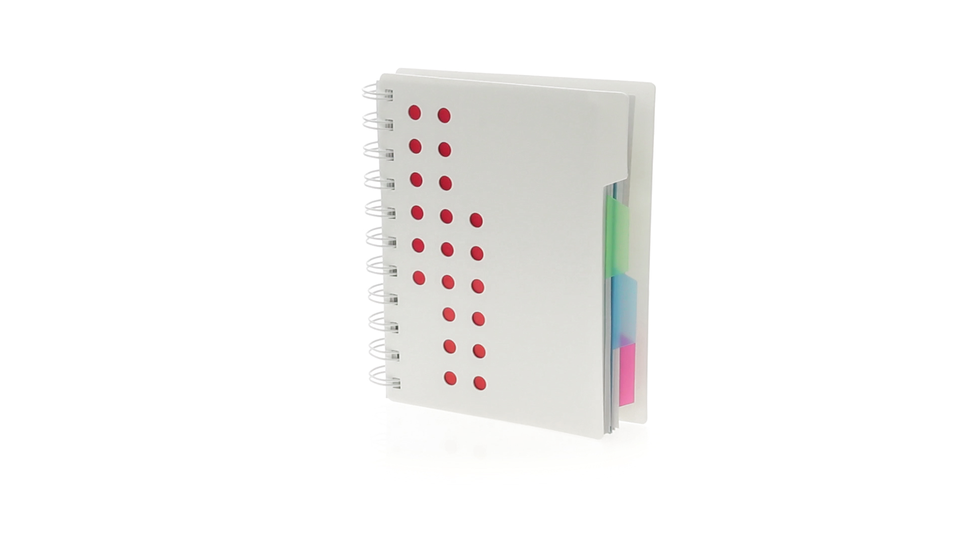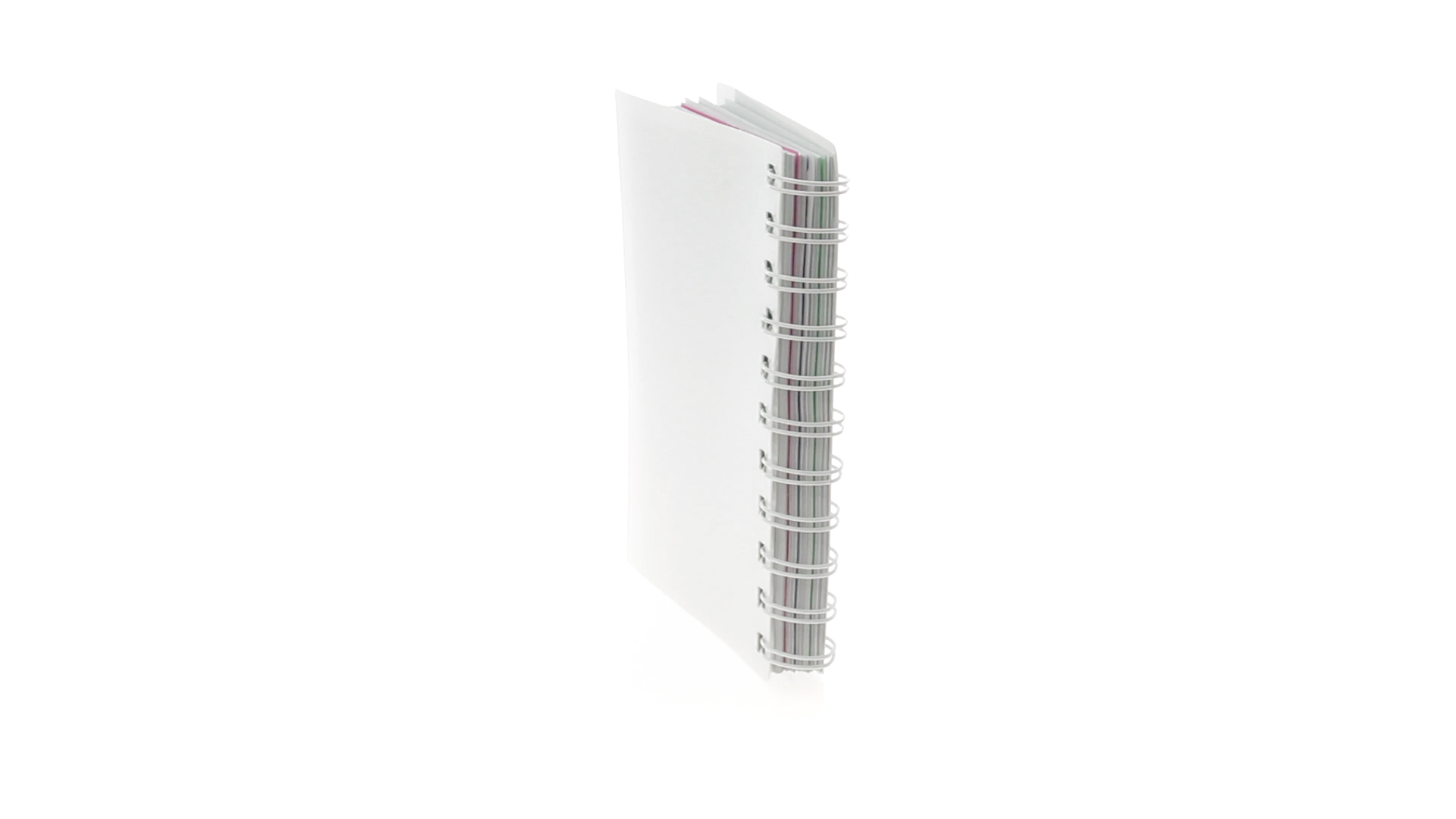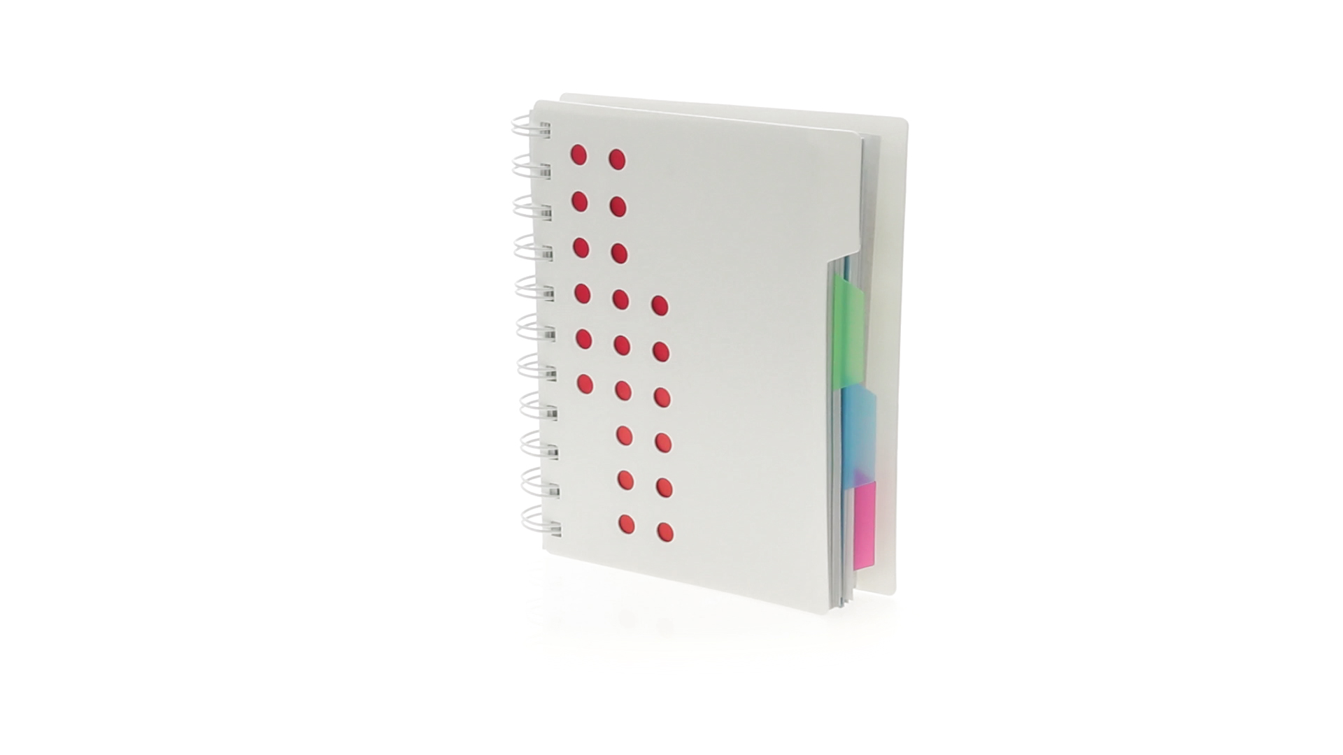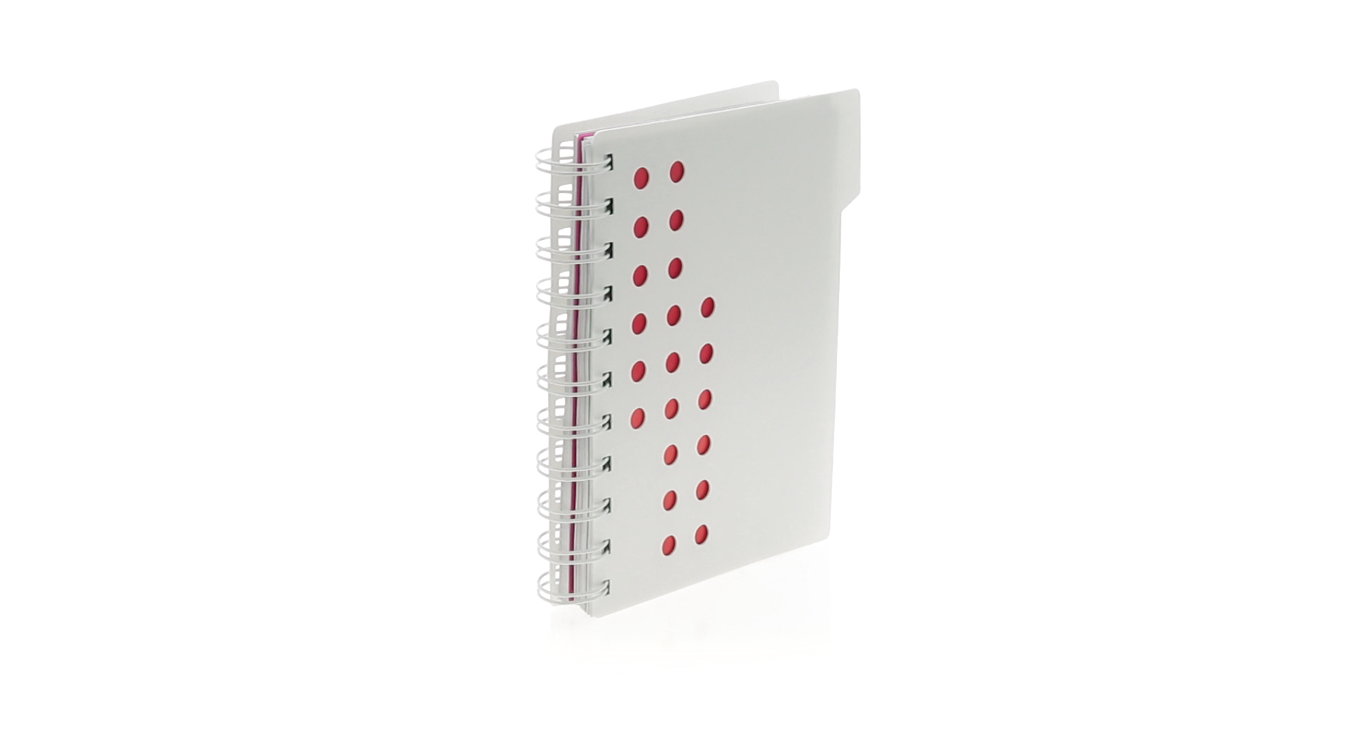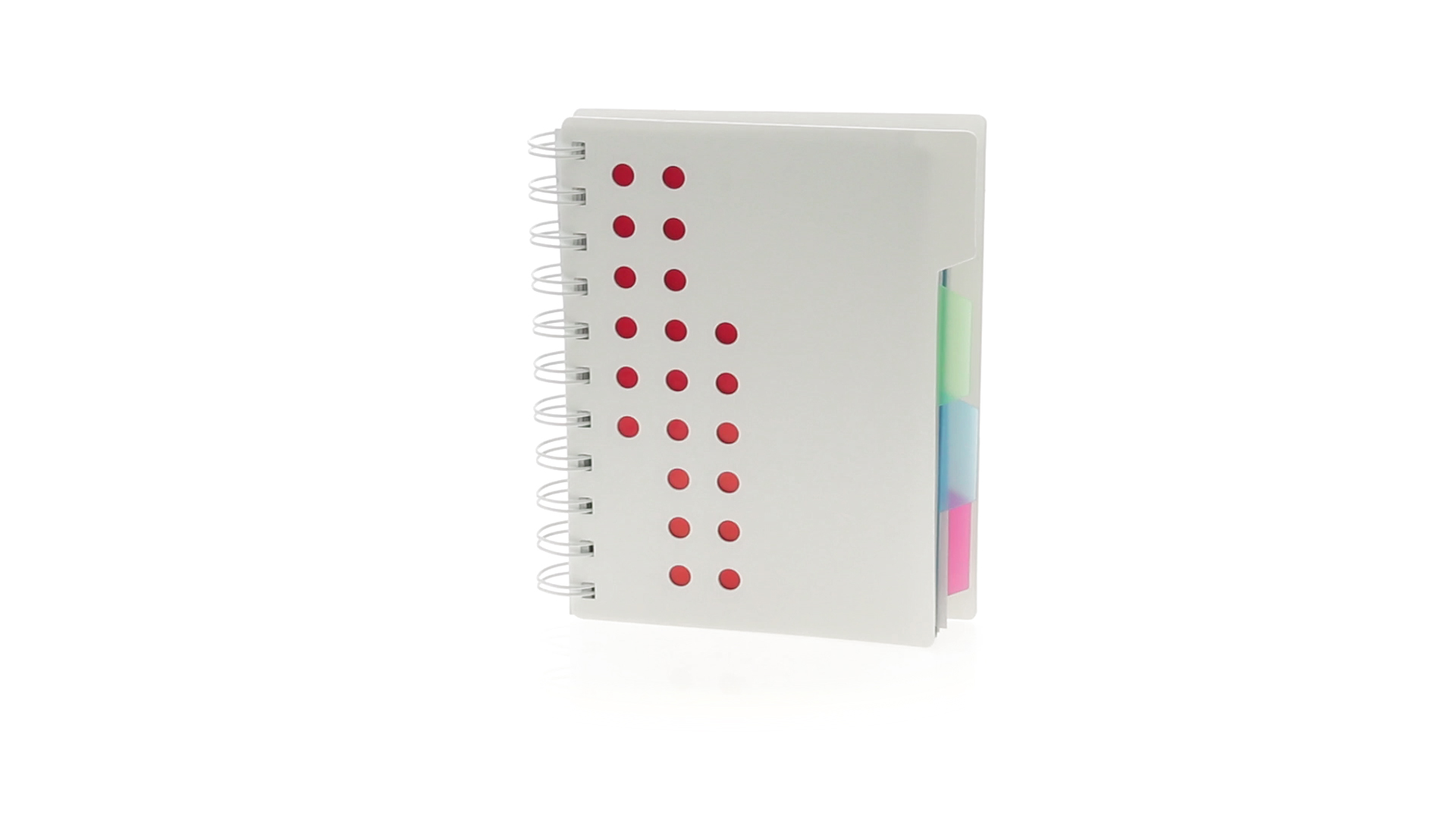 Originelles, zweifarbiges Ring-Notizbuch mit perforiertem Cover und 116 linierten Blättern mit Kopfzeile -Datum-/- Nummer- und Register-Trenner zum Beschriften.
