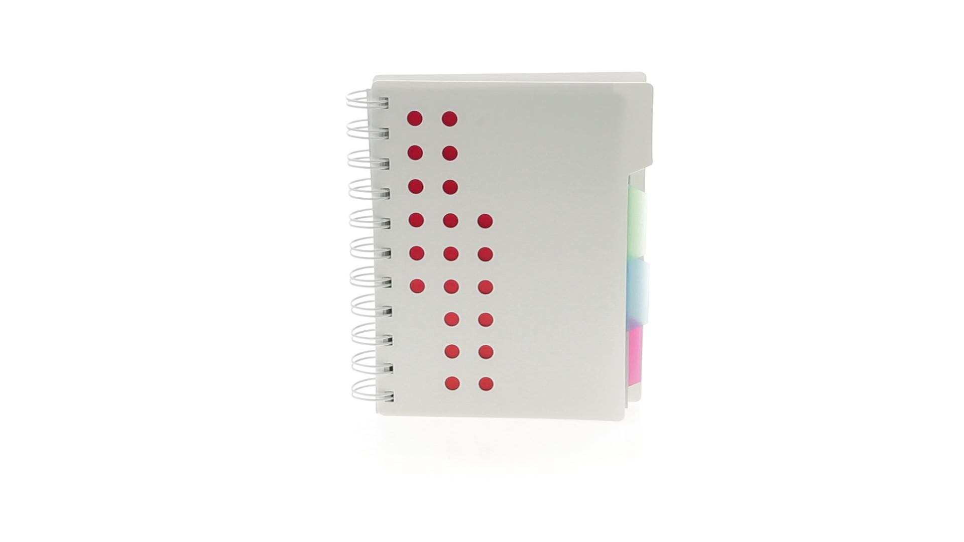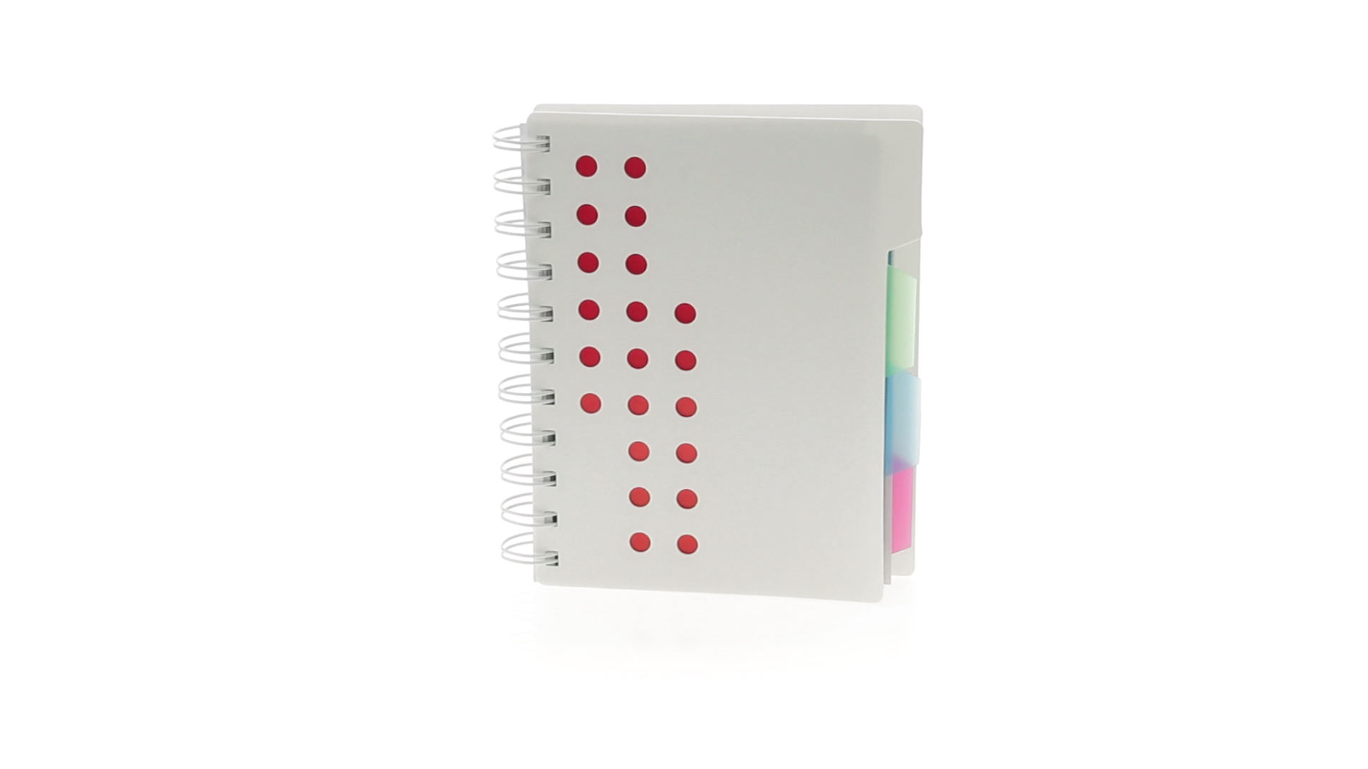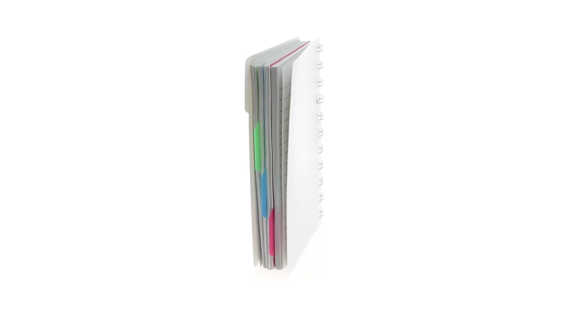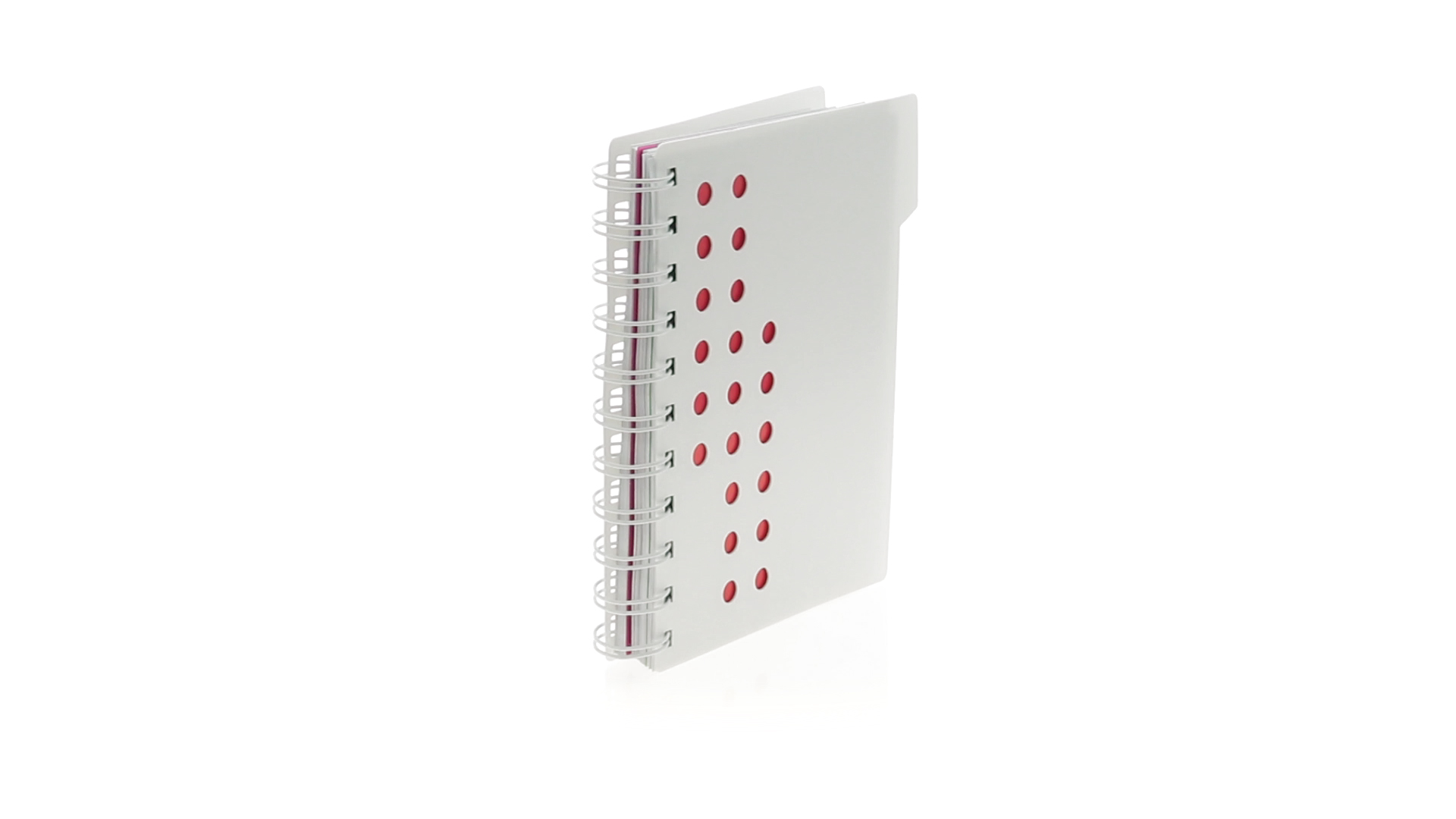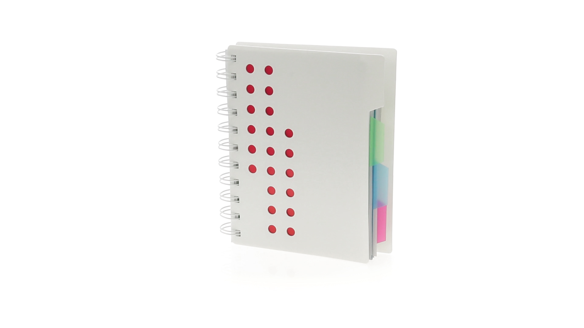 Originelles, zweifarbiges Ring-Notizbuch mit perforiertem Cover und 116 linierten Blättern mit Kopfzeile -Datum-/- Nummer- und Register-Trenner zum Beschriften.