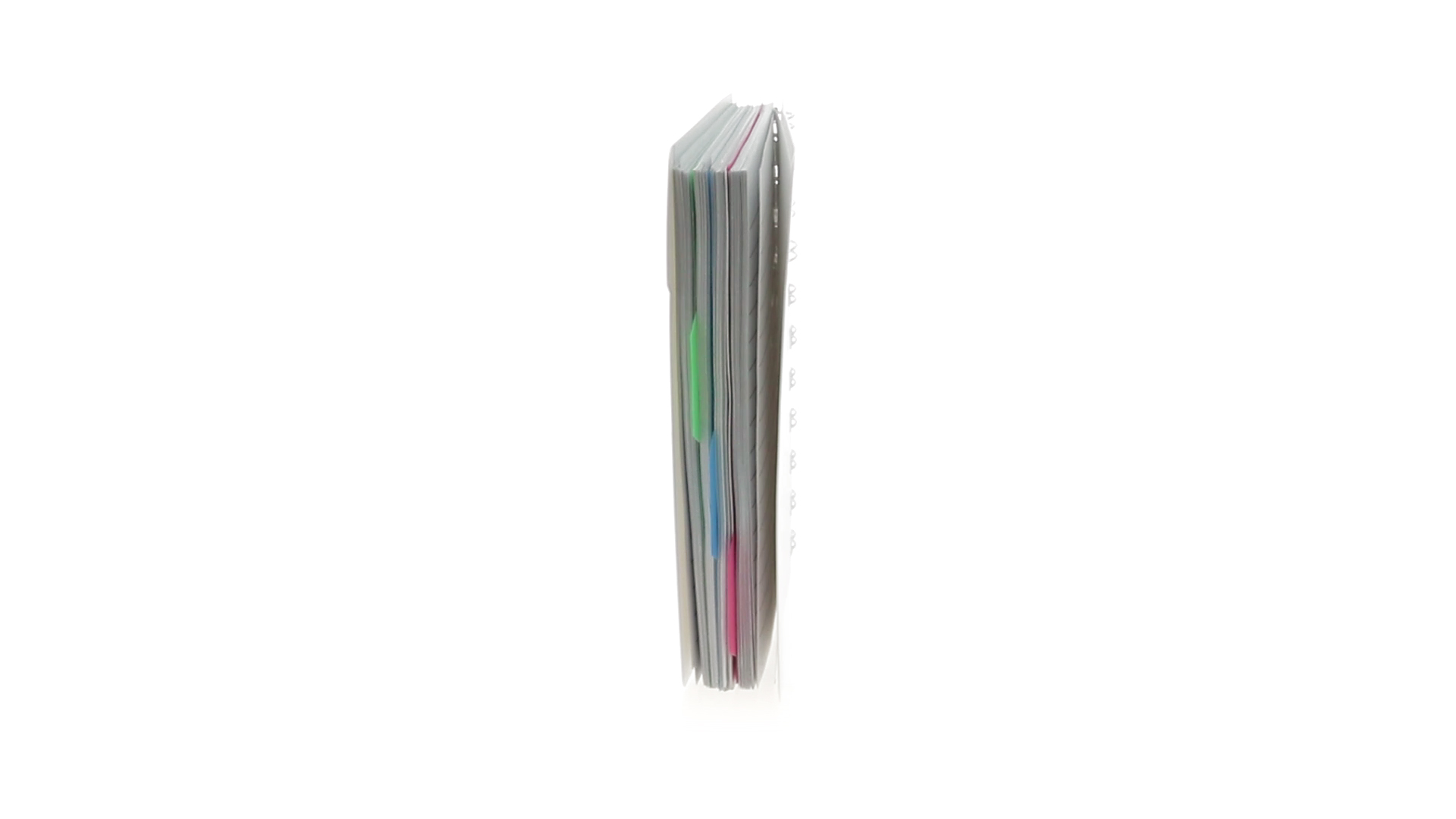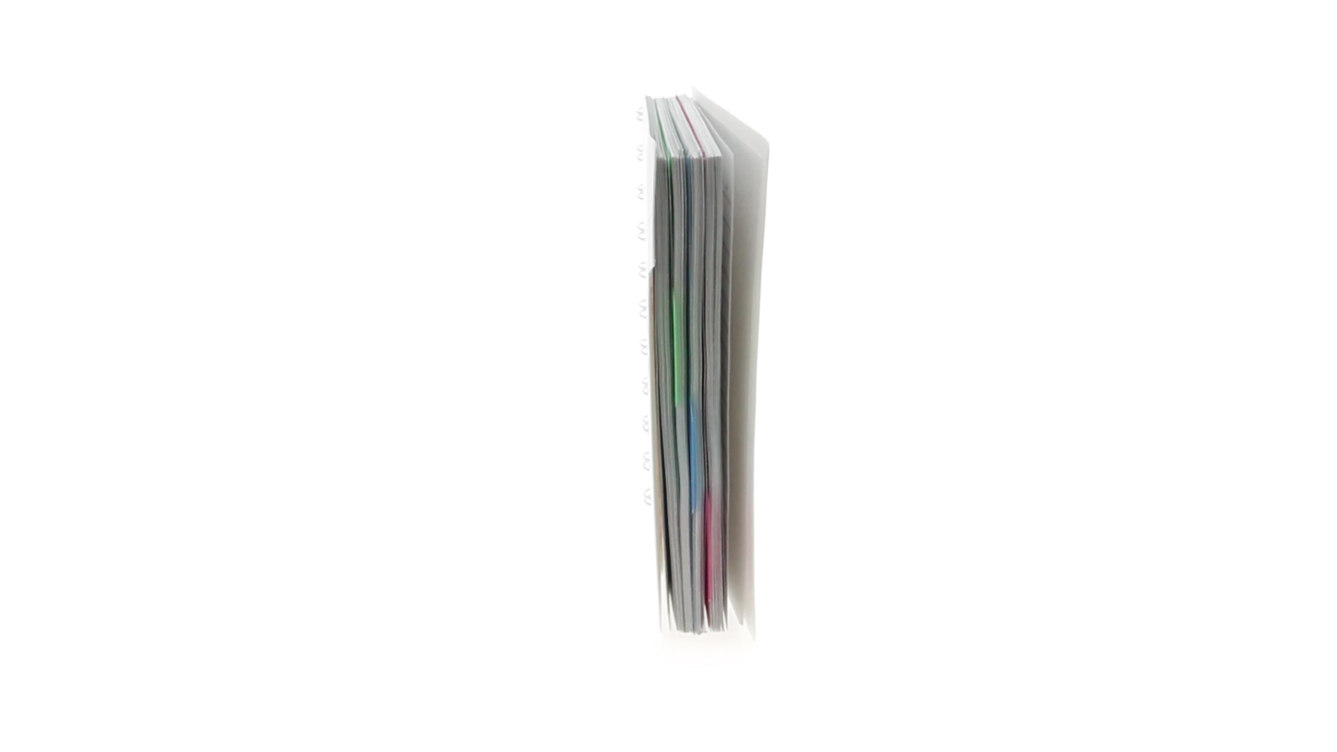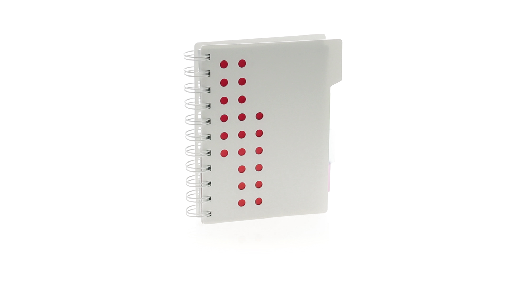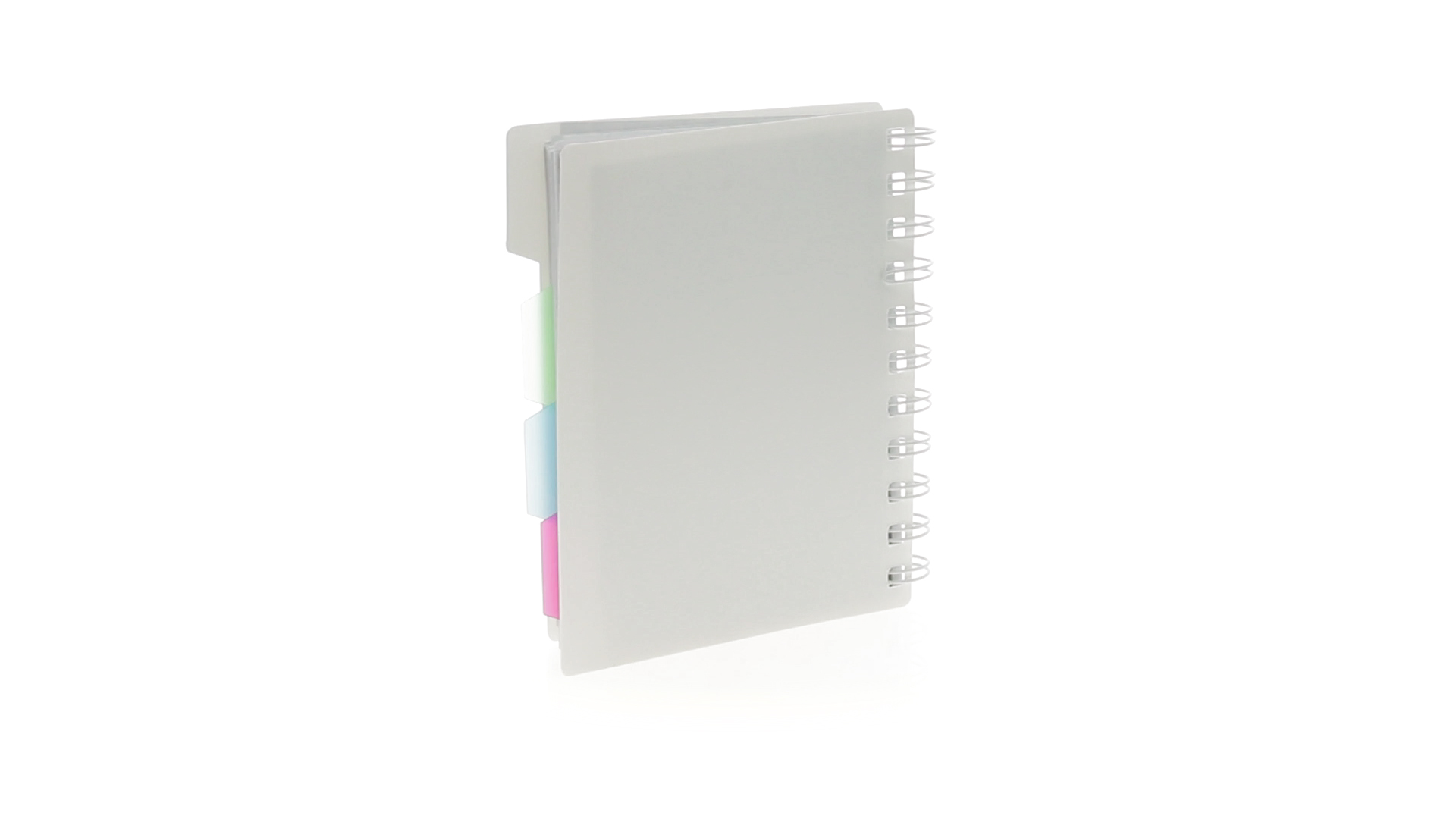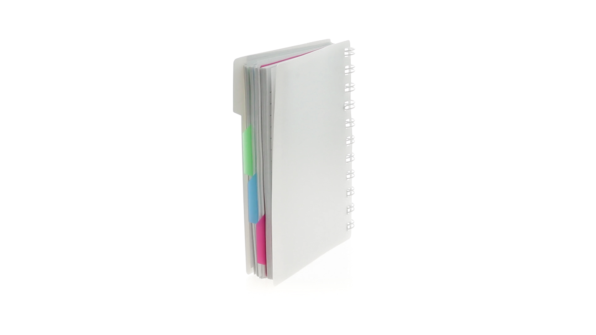 Originelles, zweifarbiges Ring-Notizbuch mit perforiertem Cover und 116 linierten Blättern mit Kopfzeile -Datum-/- Nummer- und Register-Trenner zum Beschriften.