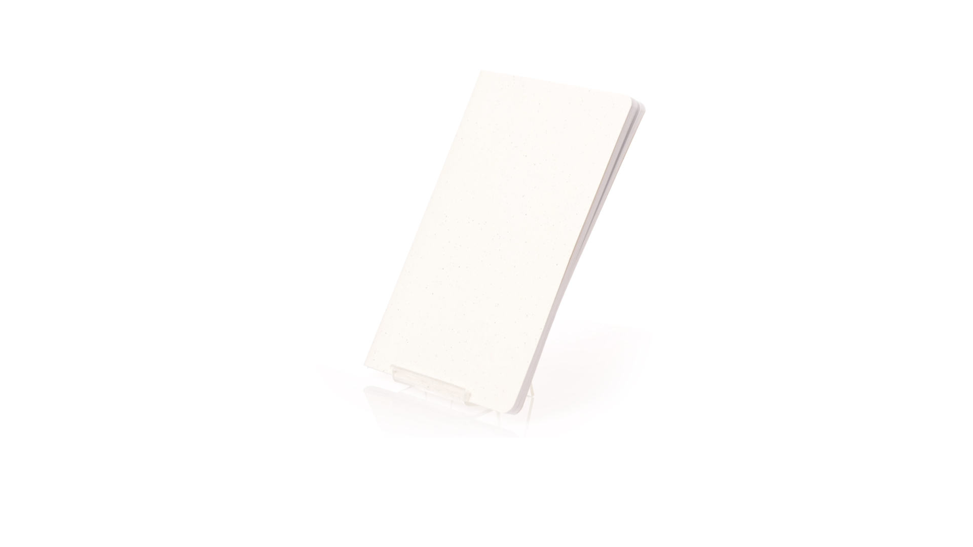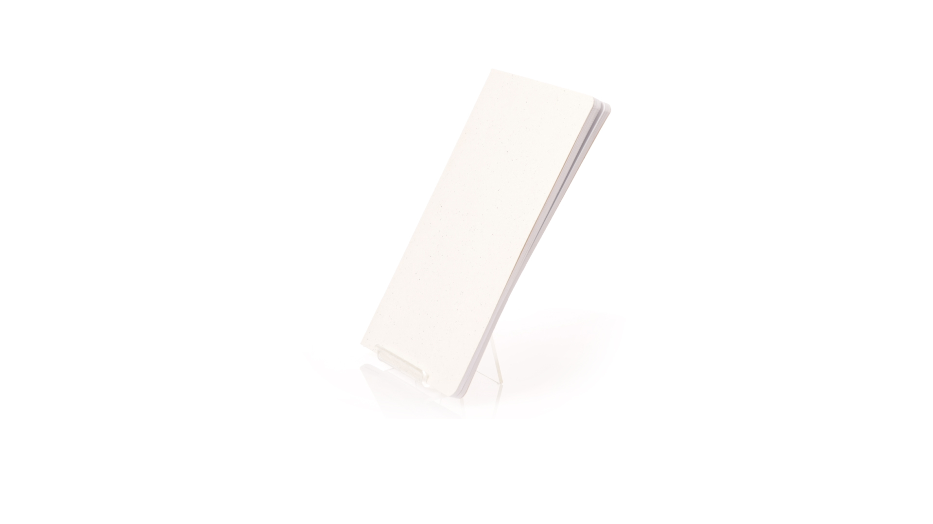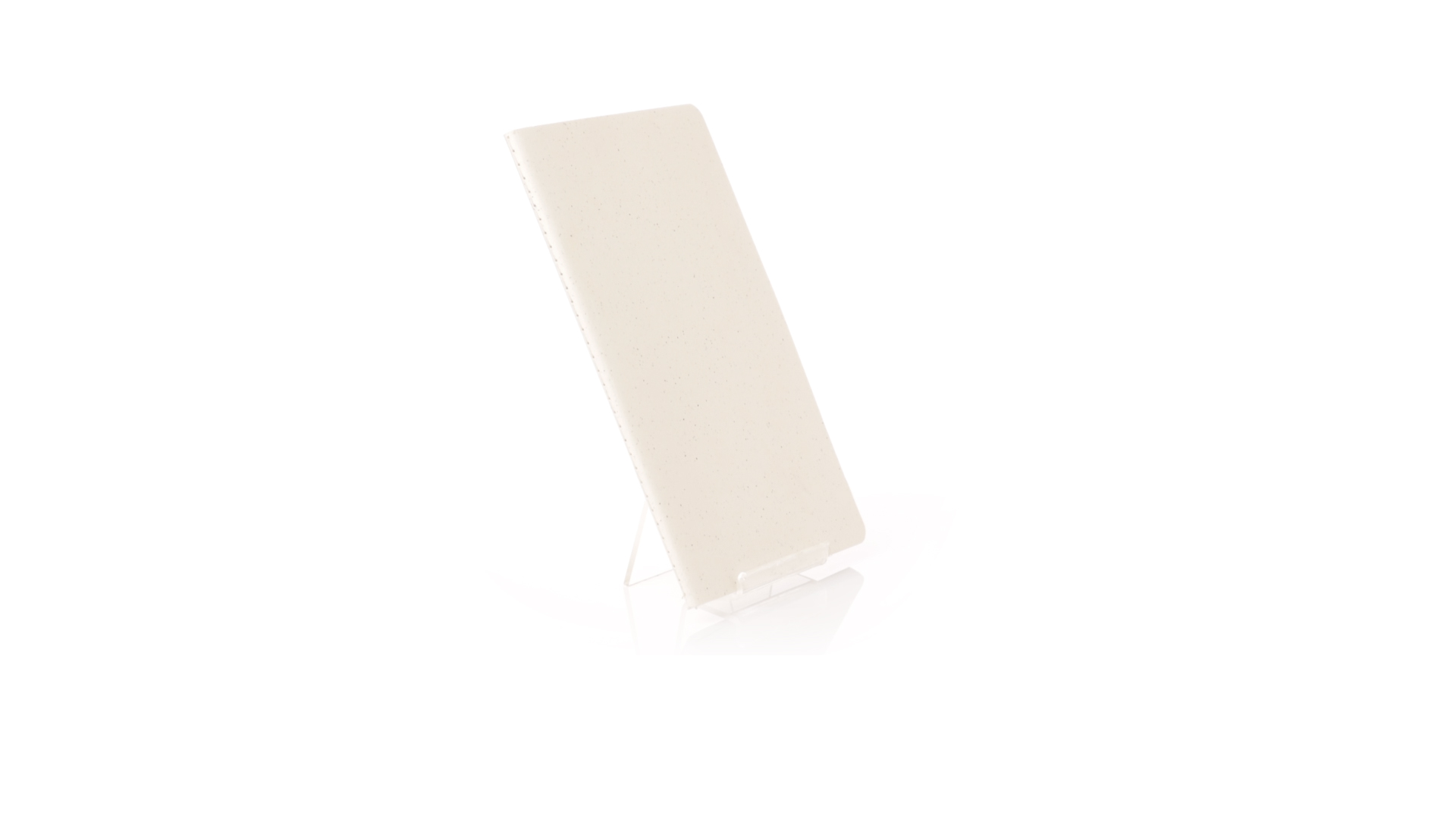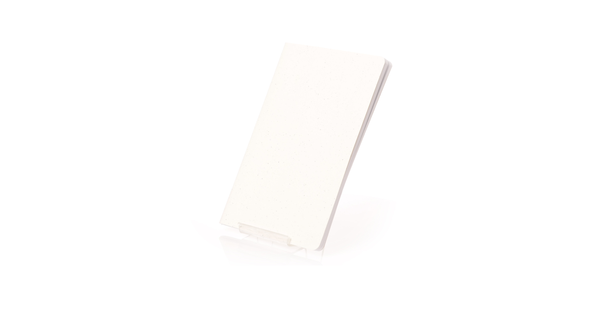 Notizbuch mit Einband aus recyceltem Karton und passender Heftung am Rücken. Innen mit 60 einfachen weissen Seiten. Präsentiert in einer individuellen, recycelten Tasche.