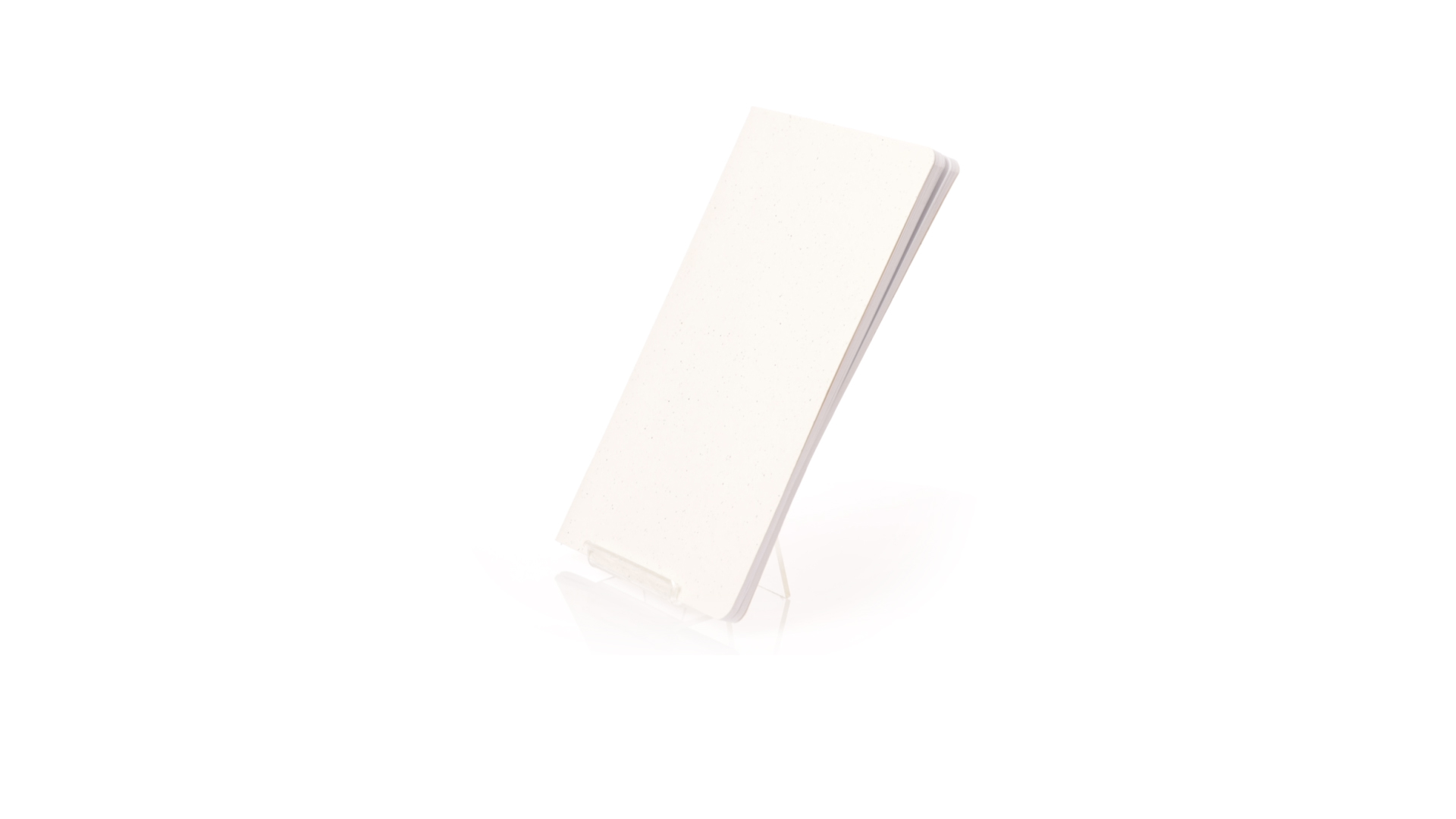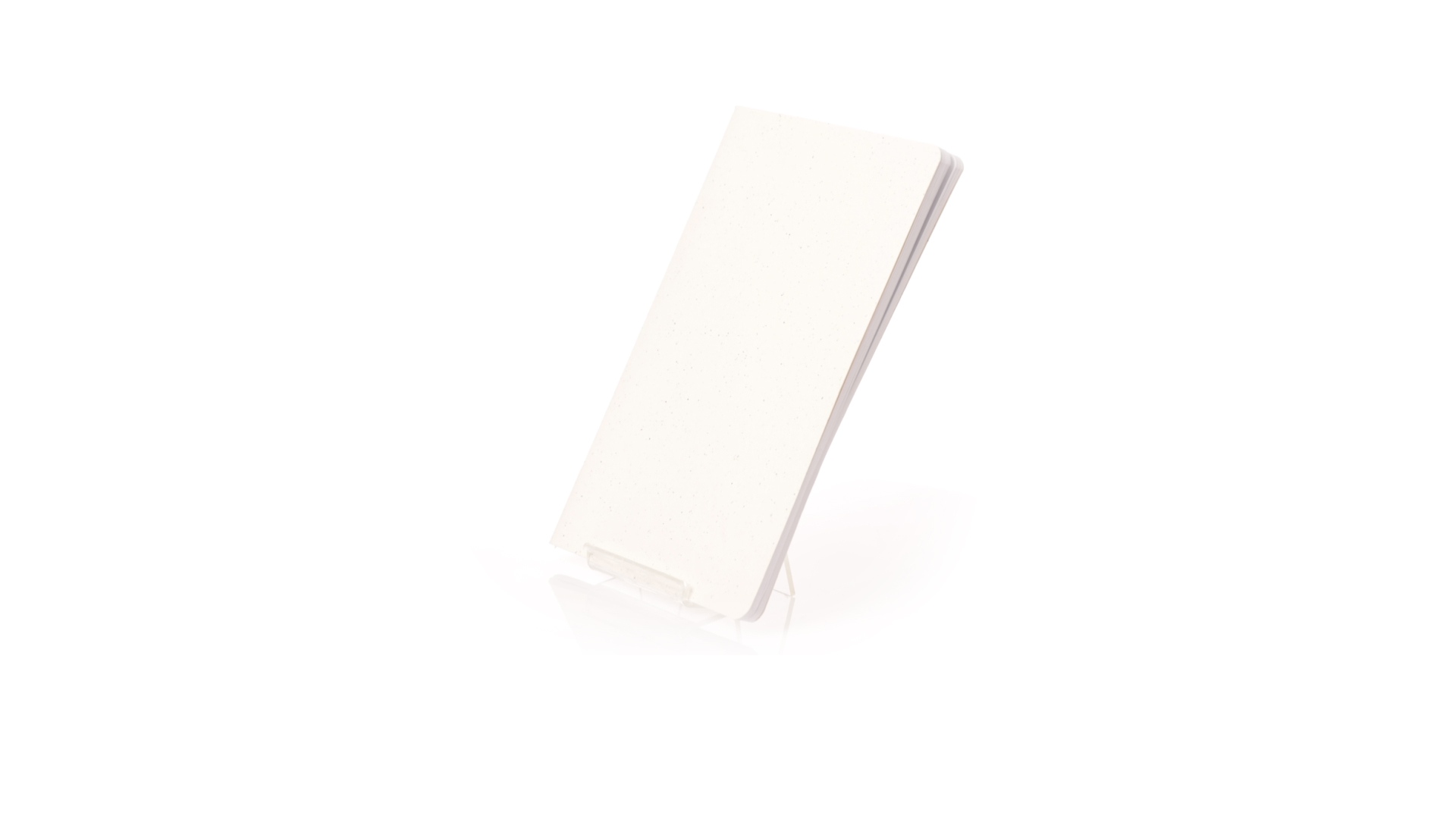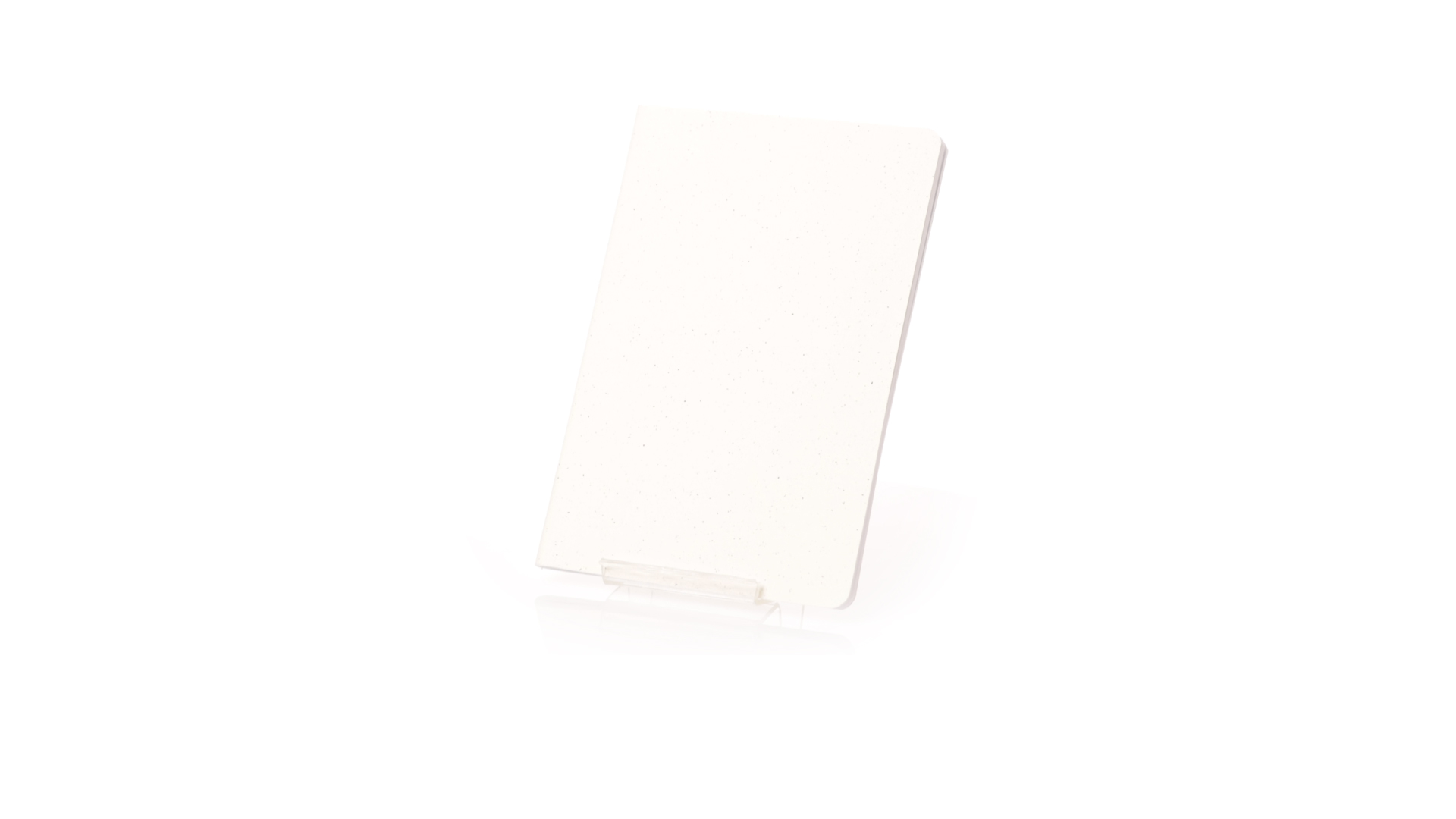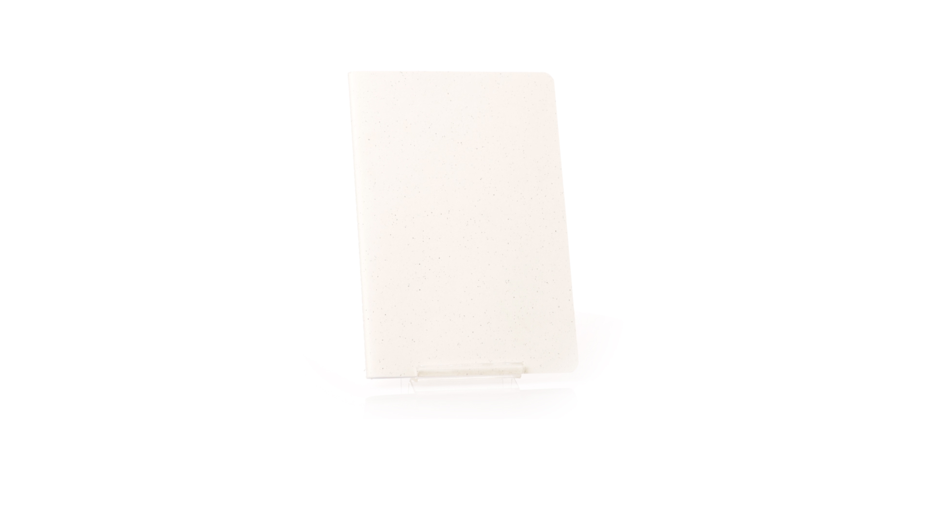 Notizbuch mit Einband aus recyceltem Karton und passender Heftung am Rücken. Innen mit 60 einfachen weissen Seiten. Präsentiert in einer individuellen, recycelten Tasche.