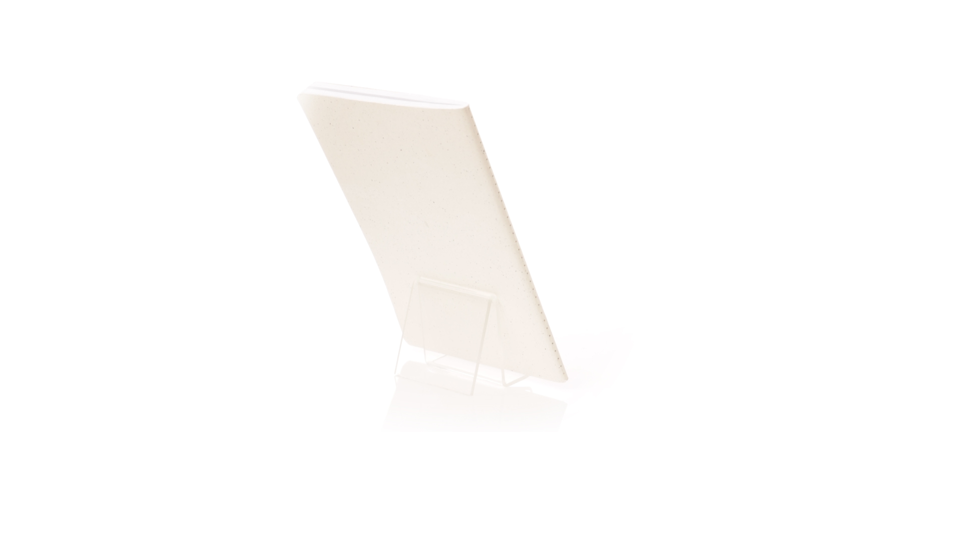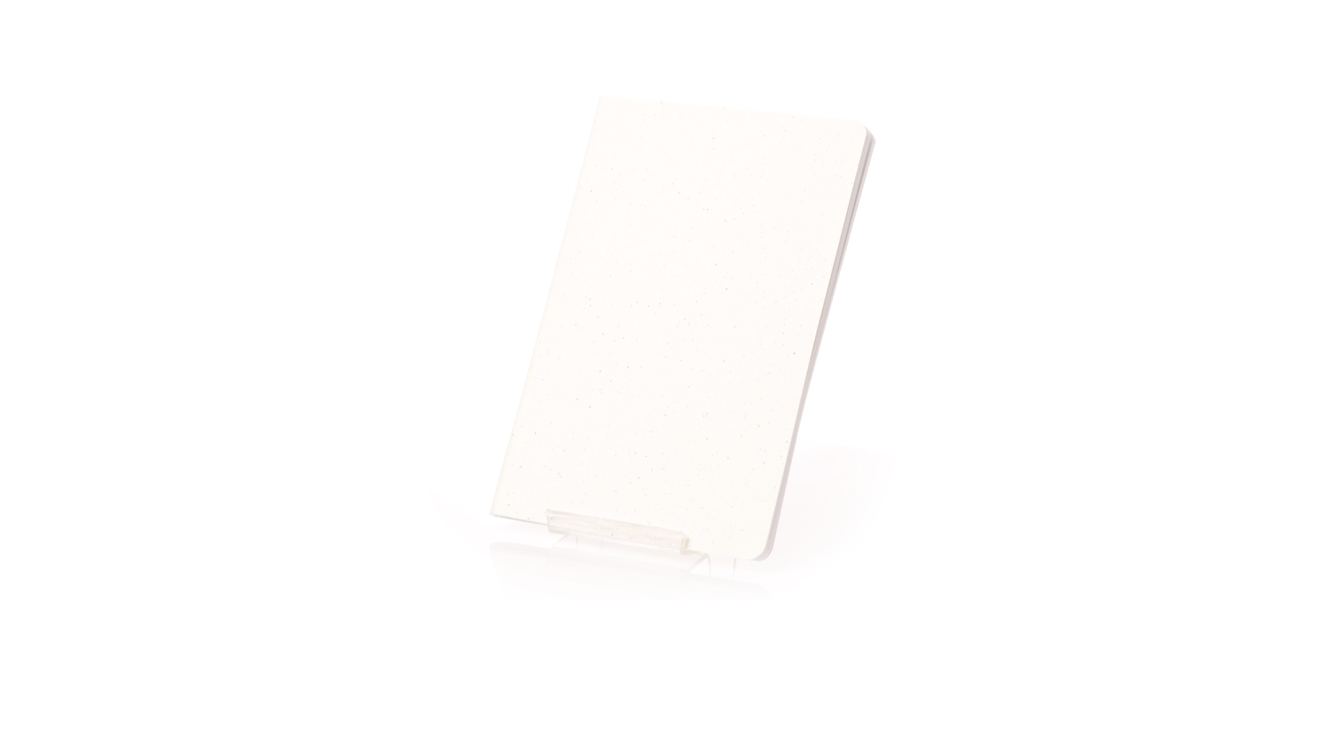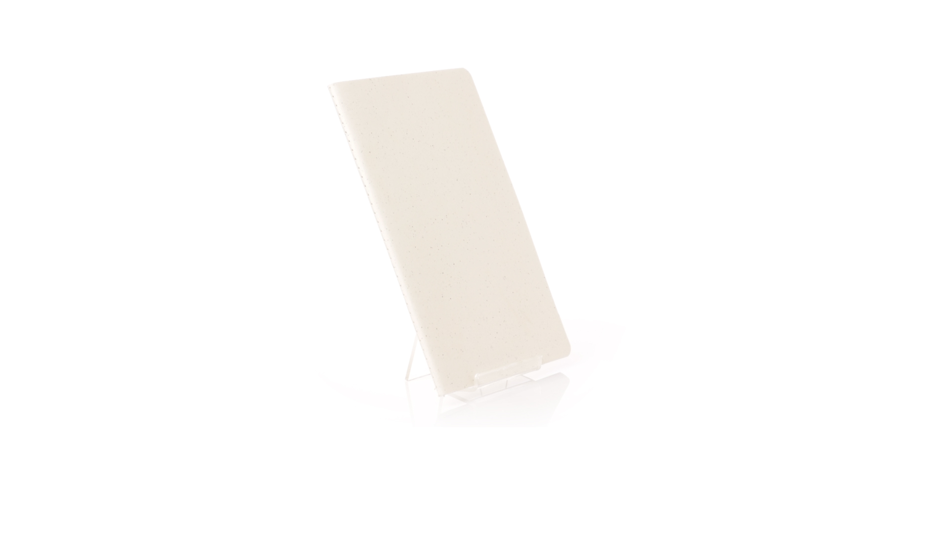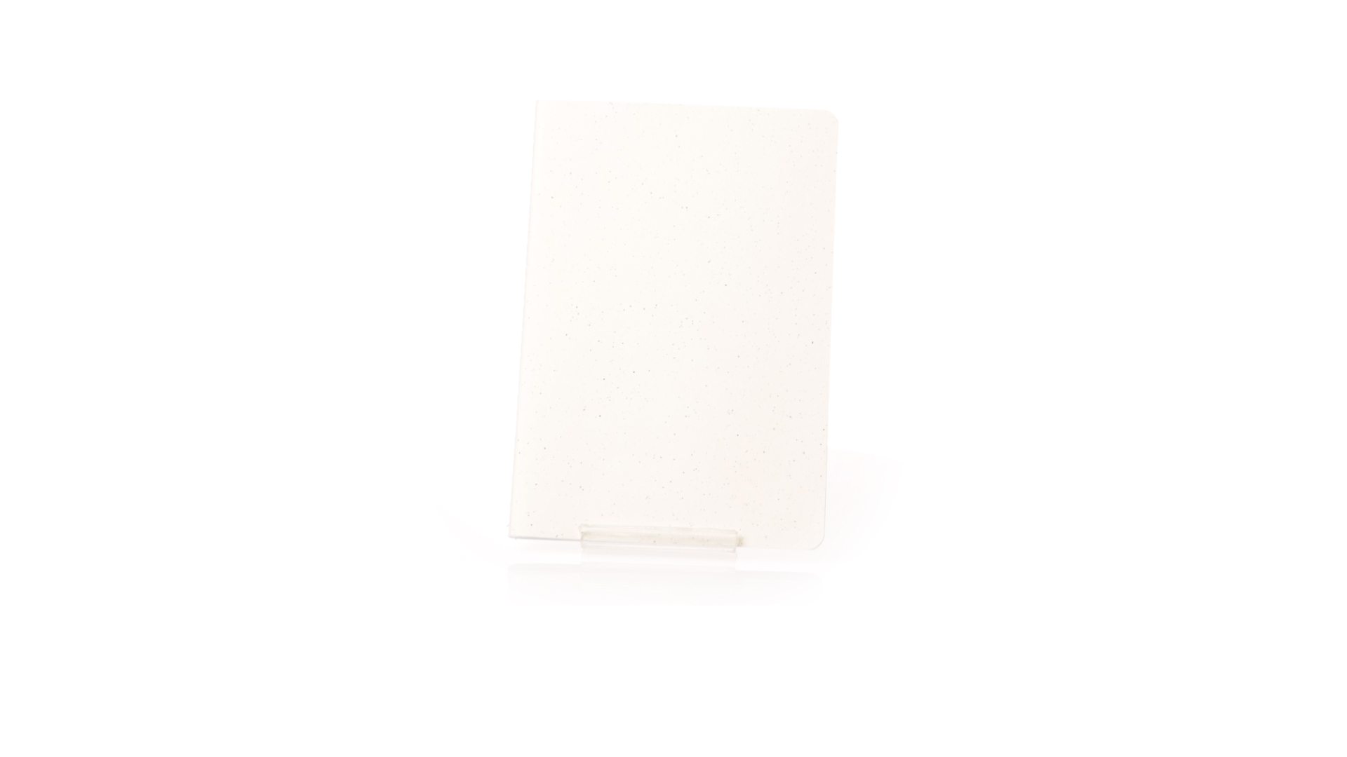 Notizbuch mit Einband aus recyceltem Karton und passender Heftung am Rücken. Innen mit 60 einfachen weissen Seiten. Präsentiert in einer individuellen, recycelten Tasche.